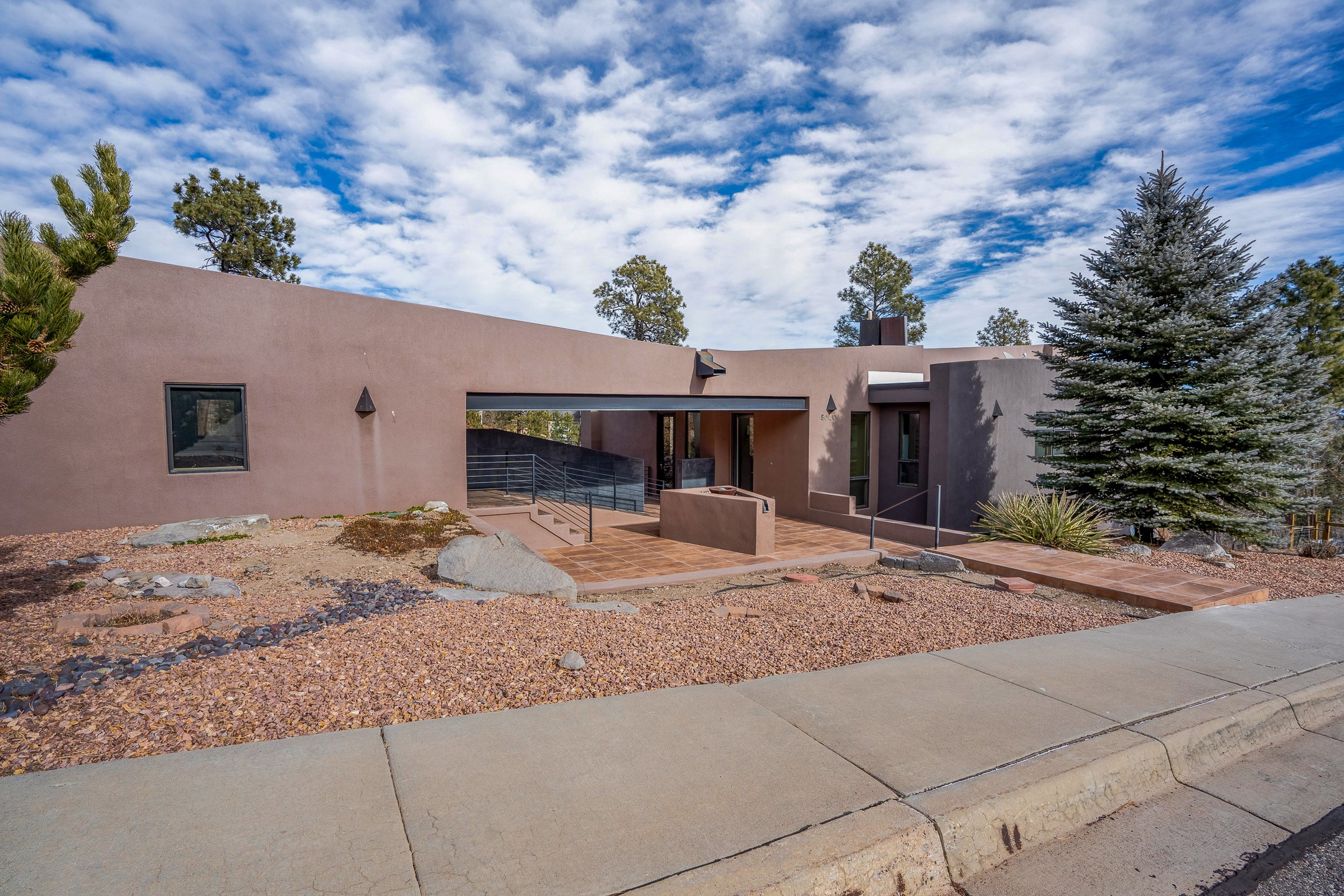 Discover a contemporary sanctuary nestled in the highly sought-after Quemazon neighborhood. This stunning single-family home blends modern finishes with a nature-forward design, offering a seamless blend of style, comfort, and breathtaking surroundings. Unique architectural details throughout make this home special. Open-concept living spaces with soaring high ceilings, large windows, and a seamless flow designed for both daily living and entertaining. A dream kitchen featuring premium appliances, sleek countertops, ample cabinetry, and a large island--all open to the main living areas for effortless gatherings. Three spacious bedrooms, each designed with comfort in mind, including a luxurious primary suite, with a private deck and a spa like en-suite bathroom that invites you to unwind after a long day. The home is open to the lower level so both floors feel connected as one space. A bridge over the lower level connecting to a secondary living space, perfect for a home office, media room, or guest quarters. Step outside to enjoy the true beauty of the area. Multiple decks and outdoor living spaces immerse you in nature, providing views of the stunning canyon, tree-lined landscapes, and the majestic Sangre de Cristo range. These serene spaces are perfect for morning coffee, sunset views, or entertaining guests. The stunning .81 acre lot is large and offers garden spaces for the green thumb in your home. The adjacent .65 acre lot is owned by the sellers, and can be purchased at the same time to maintain the open space to the east, or build a home in the future.
