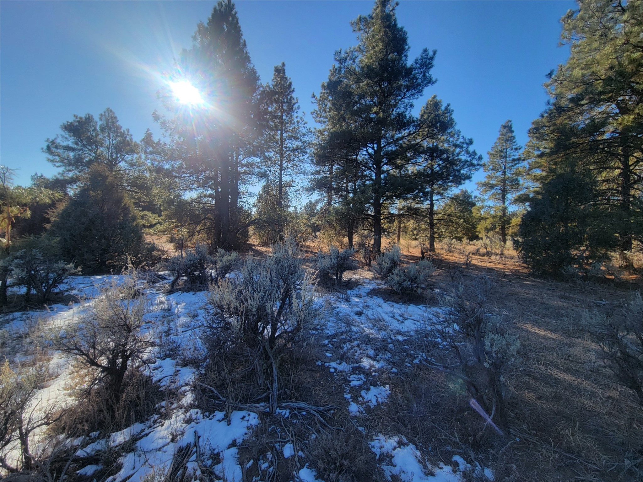 Beautiful, Wooded with Tall Mature Ponderosa Pine Trees! Only 1 mile off 84/64 onto 64 headed towards Taos. Great views of the surrounding Northern New Mexico Mountains. Great place to get a way from the hustle and bustle of the Big City! Property currently receives EPLUS tags but New Owner would have to re-apply with the state of NM.
