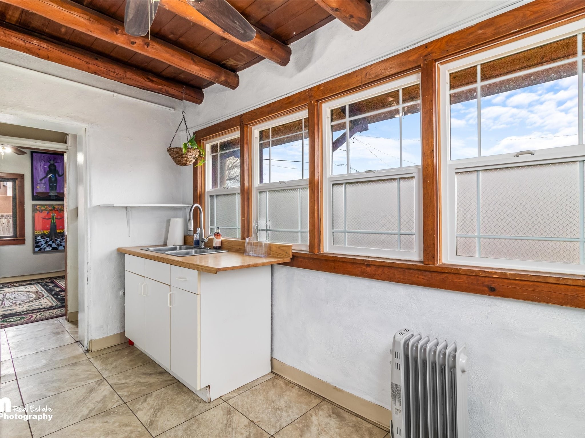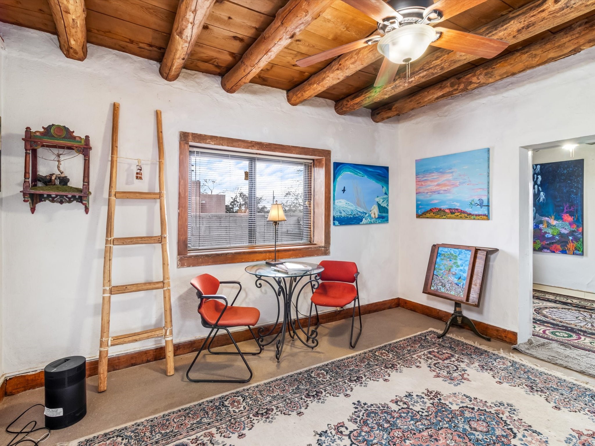 Welcome to 1217 Agua Fra Street, a versatile and charming adobe property that offers endless possibilities for families, multigenerational living, or investment opportunities.The main home features 2 bedrooms and 1 bath, complemented by a 1-bedroom, 1-bath attached unit. The main living area showcases Saltillo tile flooring, known for its durability AND scratch resistance making it a practical yet stylish choice. Lots of Santa fe Charm with wood ceilings and Vegas.In the back, you'll find a spacious 2-bedroom, 1-bath casita that exudes the same quintessential Santa Fe charm. Both homes highlight stunning adobe walls and authentic wood vigas, creating a warm and inviting atmosphere.Situated in the heart of Santa Fe, this property is perfectly positioned for easy access to local attractions, dining, and shopping. Ample parking and flexible zoning (C-1) add to its appeal, offering potential for additional development or creative uses.Don't miss the opportunity to own a piece of Santa Fe's rich heritage and vibrant culture. Schedule your private tour today!