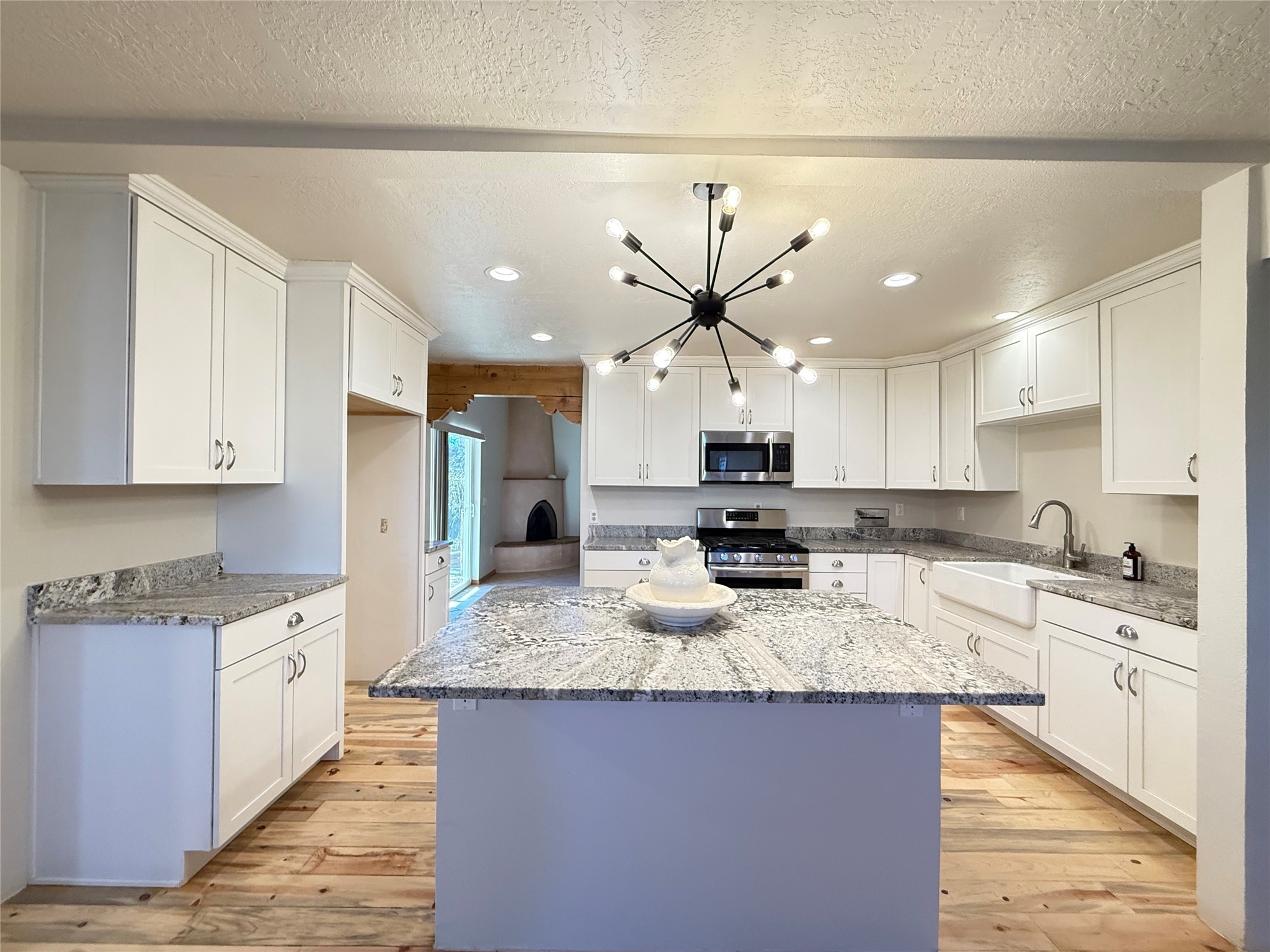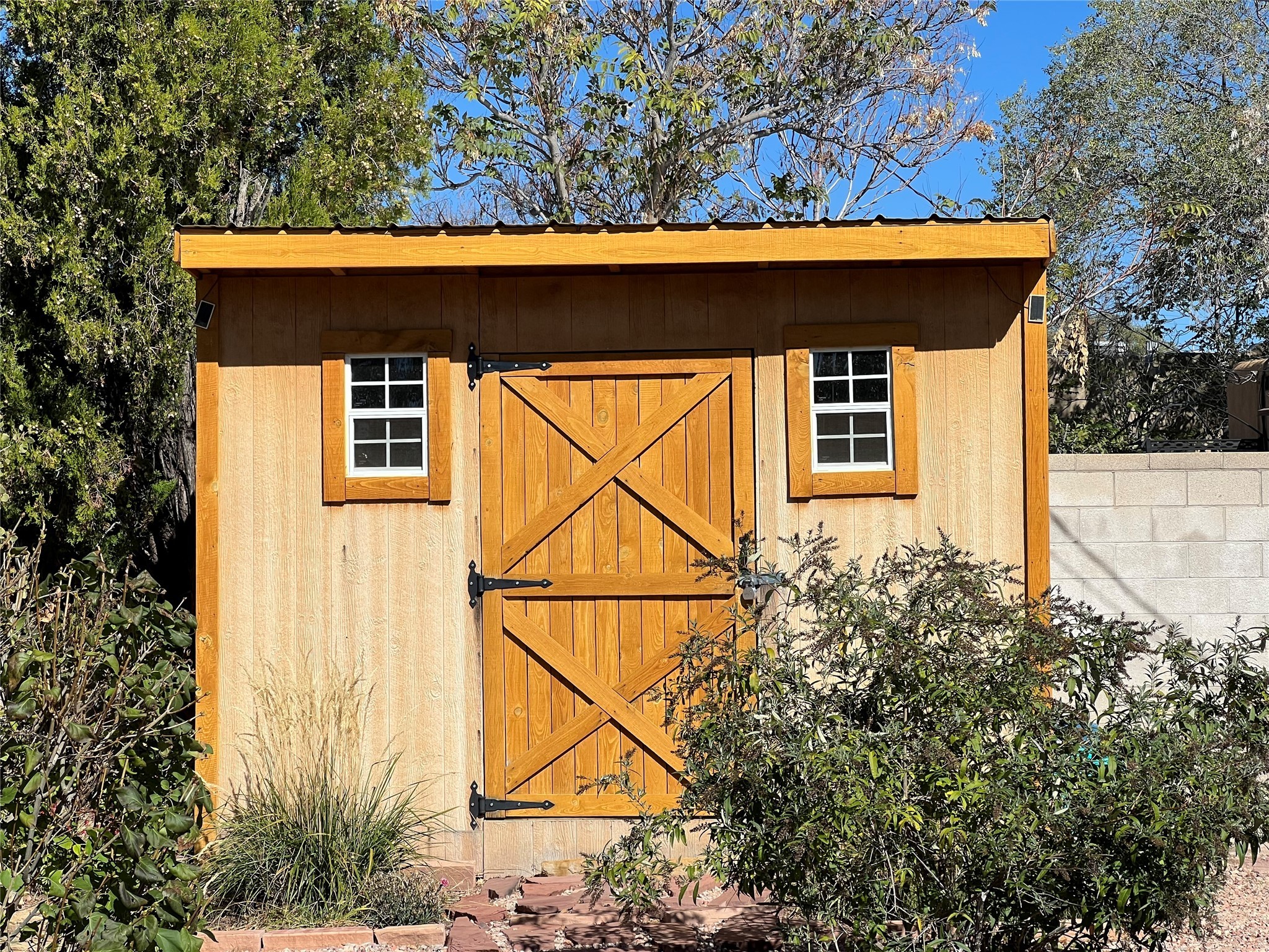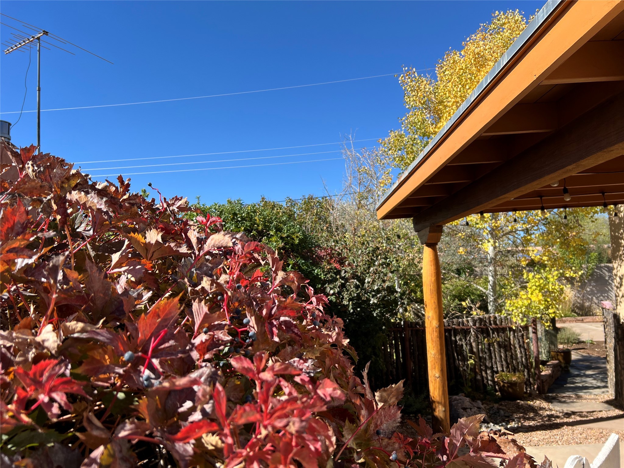 A beautiful 3 bedroom 2 bath house with both wood flooring and tile through out. Two fireplaces the warm space; one fire place insert in the great room and one traditional Kiva in the den. The den is complete with stunning vigas across the ceiling. An open kitchen, home office, and covered patio add to the appeal of the home. Stainless steel appliances throughout the house. There is a new roof scheduled to be installed with transferable warranty. The home is located on a great lot with beautiful landscaping and an additional storage shed in the back yard.
