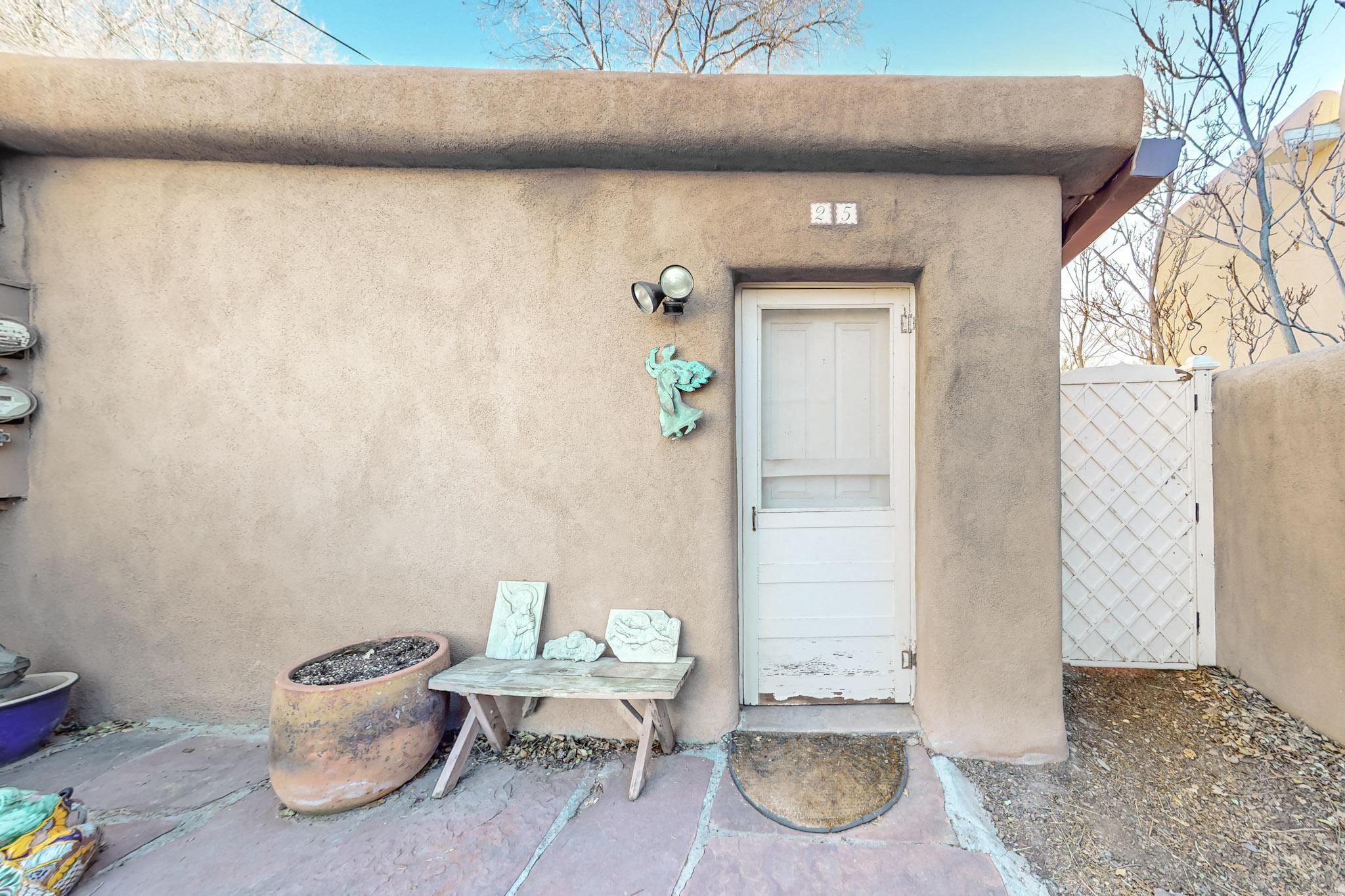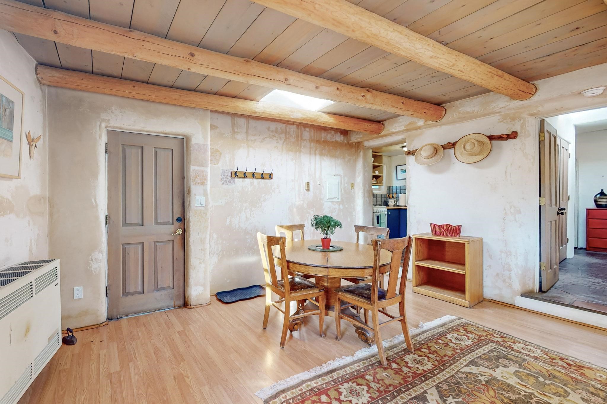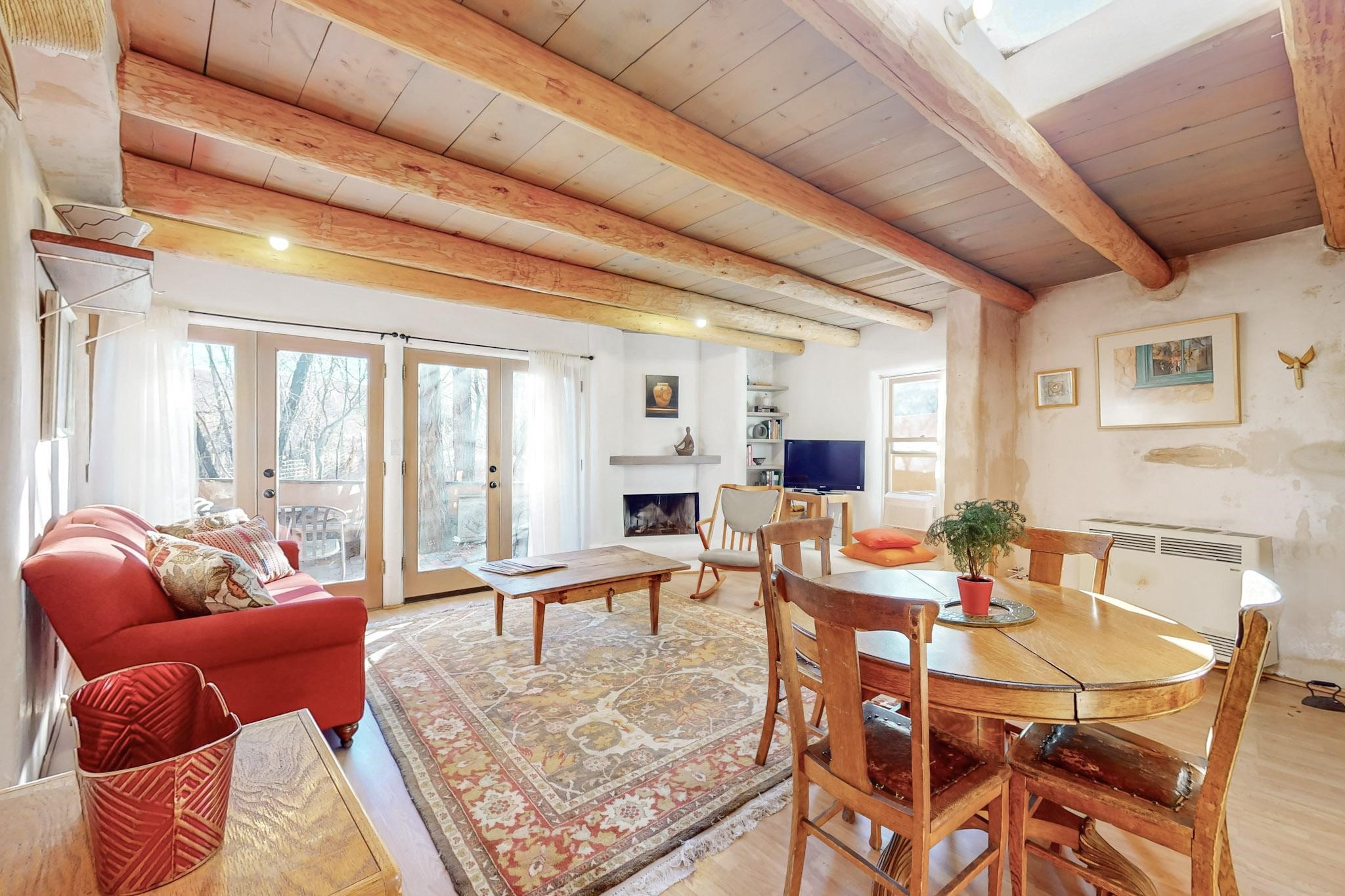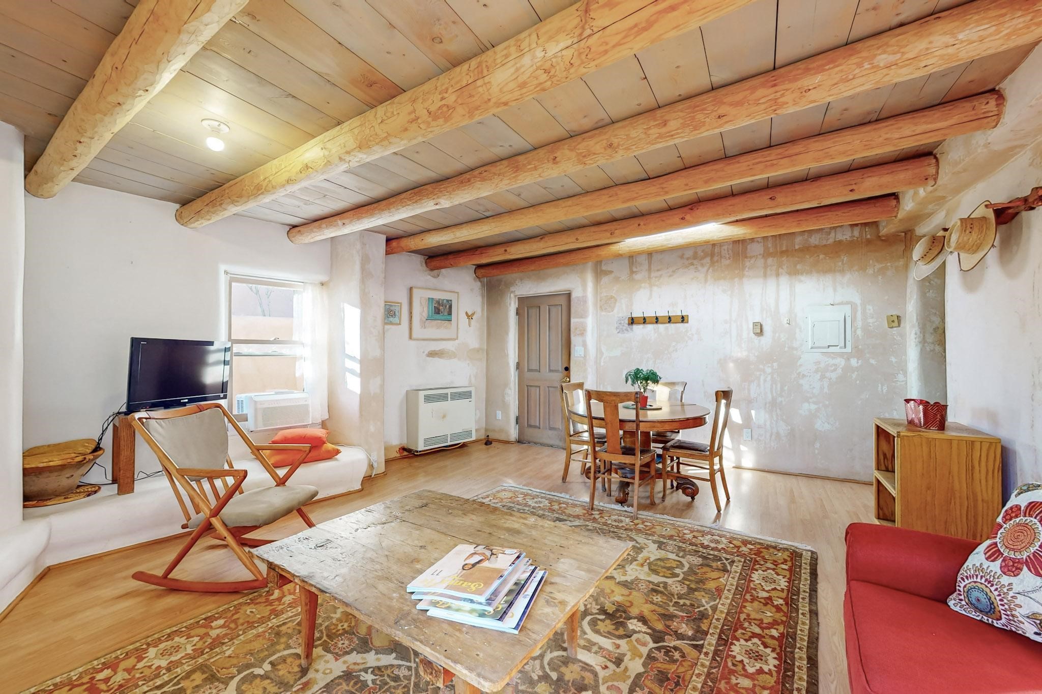 The Seller says "Sell this Condo!". I can hardly wait for you to see this! This is a part of Santa Fe History and is great as a residence, vacation rental, or artist's/writer's studio. Imagine owning this historic hideaway in the heart of old Santa Fe. Located in a writer/artist compound from which 54 books have been written and published including KON TIKI by Thor Heyerdahl. Part of the original Webster Compound founded by Ann Webster in the 1930's for artists and writers seeking a community for quiet and inspiration. It is a single level adobe condominium with its own lovely south facing courtyard. An enchanting property just blocks from Canyon Road and some of Santa Fe's finest restaurants and galleries. It is 1/2 block from Downtown Subscription and Acequia Madre. The photos tell the story. The HOA fees include gas, water, common area maintenance, liability insurance, roof maintenance, sewer & refuse, professional fees, insurance, and outside stucco. It also includes $100 towards the reserve. This is the largest unit in the compound and the price per square foot is priced below the recent "Sold" in the complex. Seller financing is available!