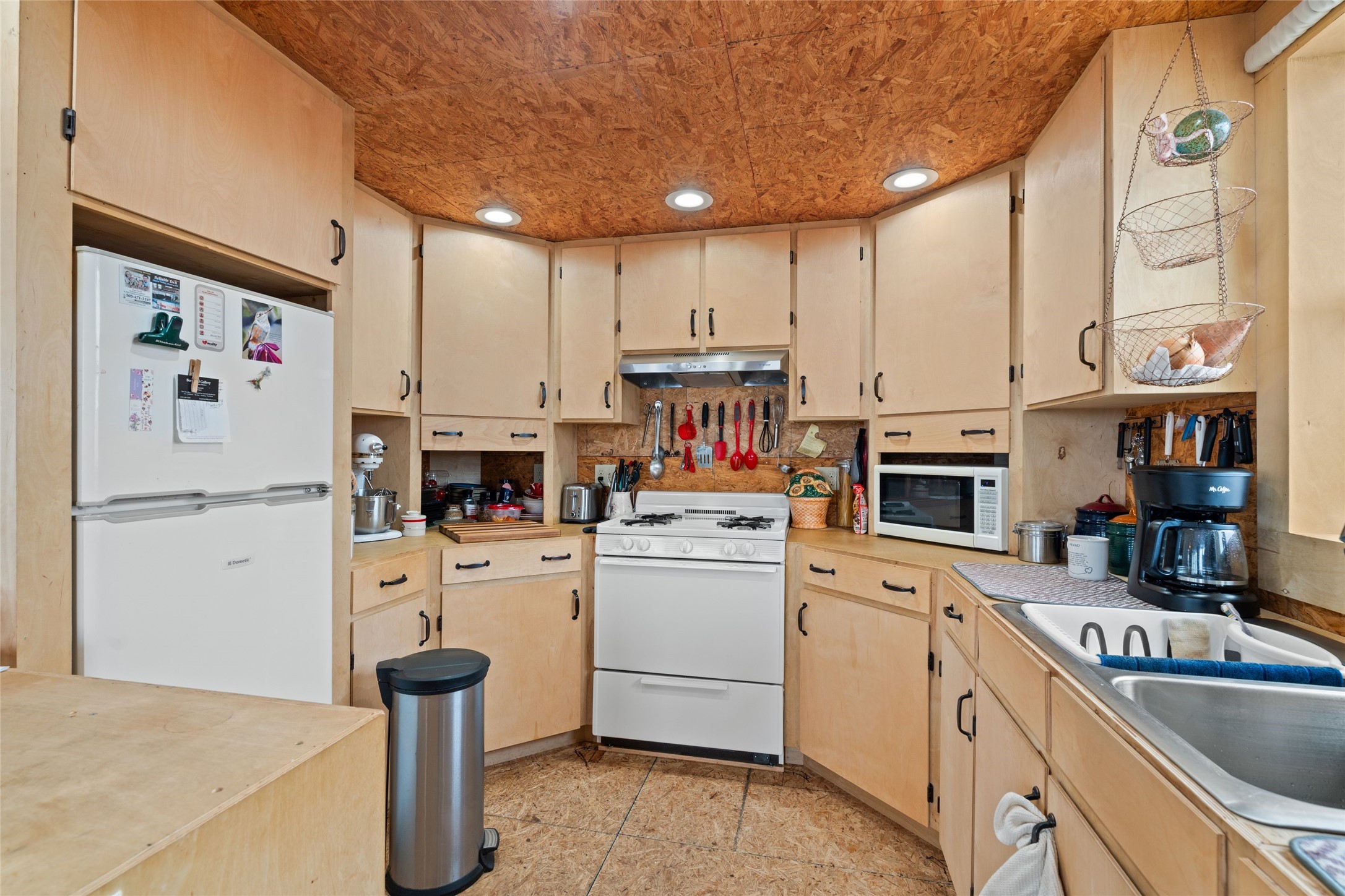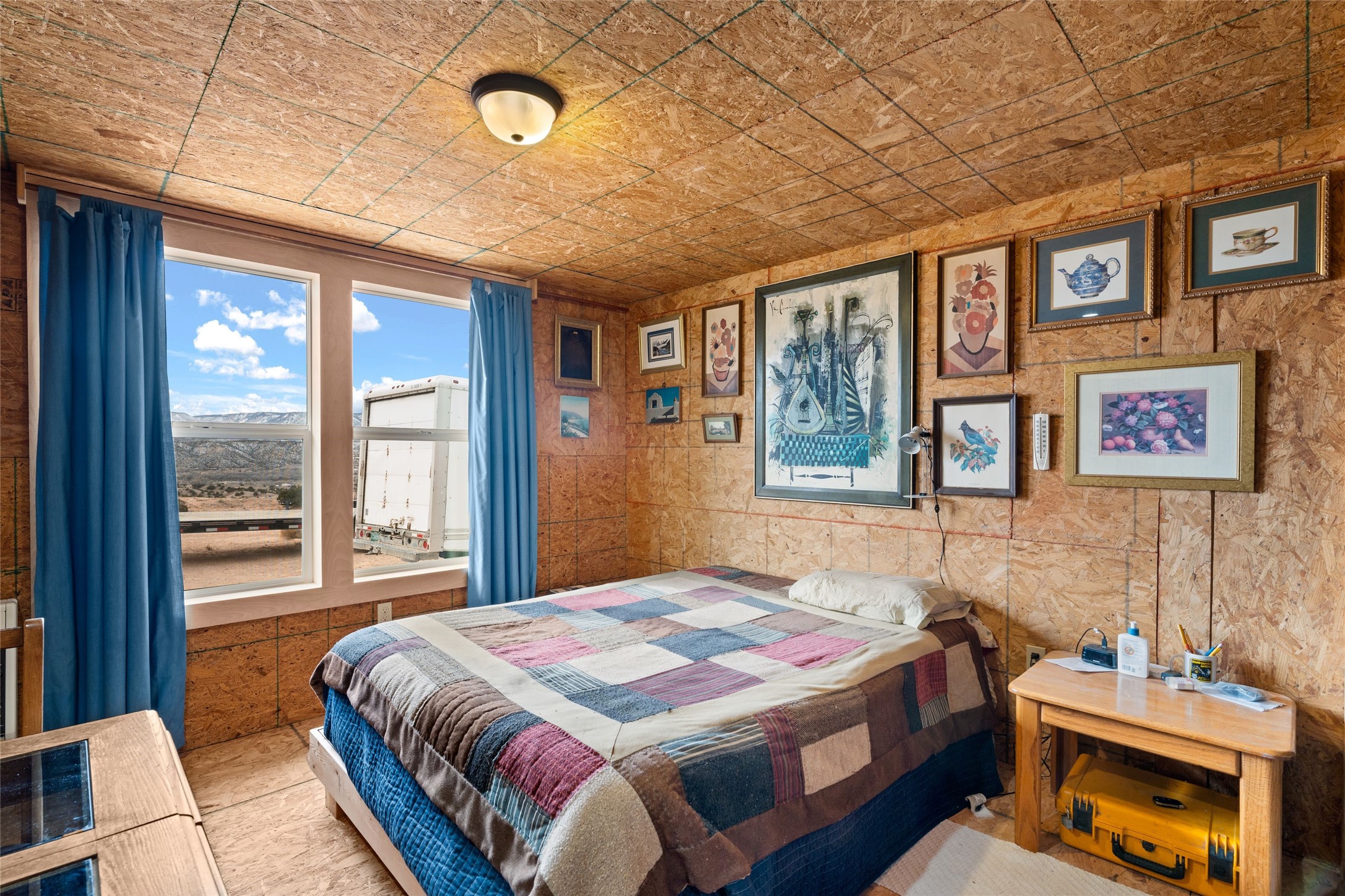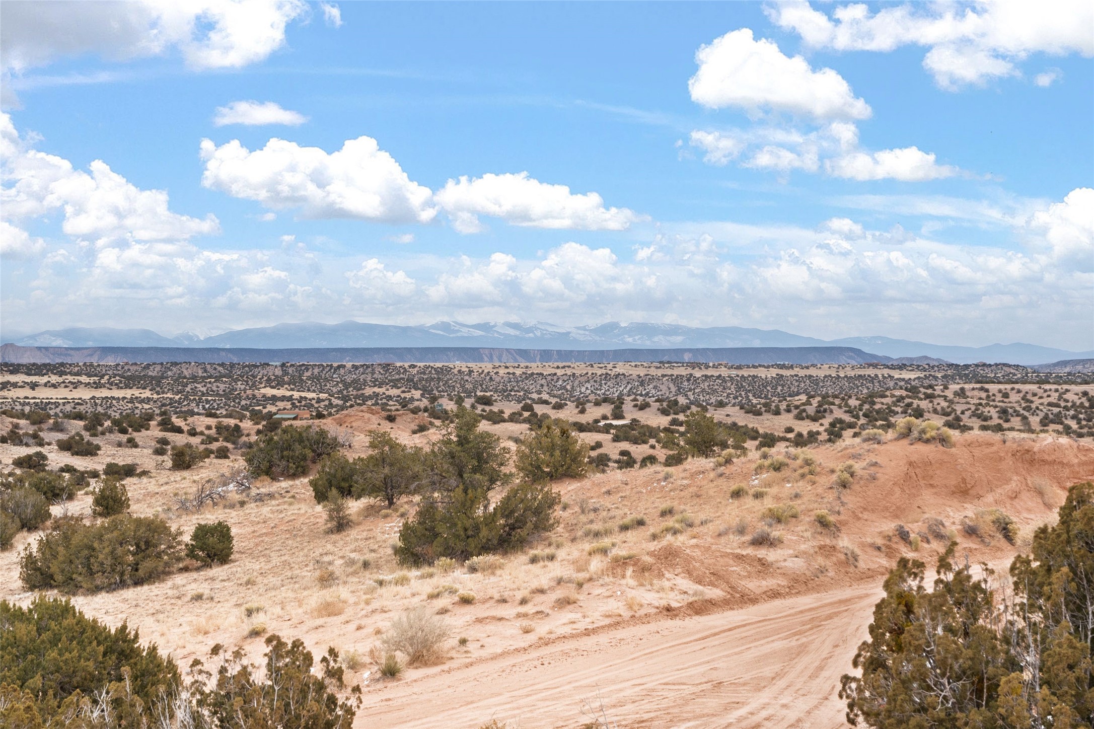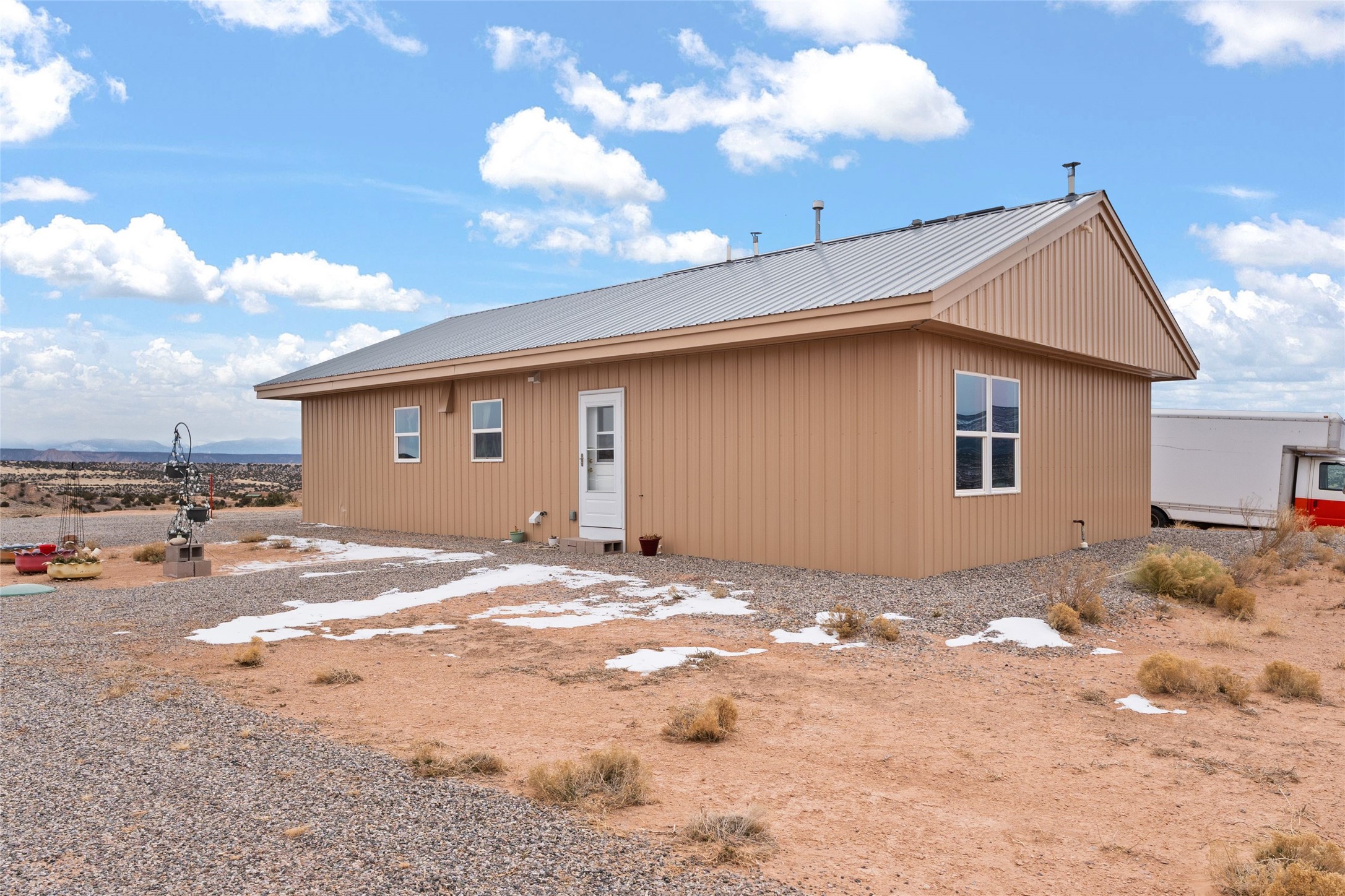 Great possibilities and 360 views from this unique, off the grid property in the hills of Abiquiu. Wonderful location with direct line views of the Pedernal, Plaza Blanca and Santa Fe and Taos mountains. This offering includes two separately deeded, one acre lots. The functional home has Pro Panel roofing and siding and benefits from solar energy, a private well and efficient, well-designed systems, featuring three bedrooms and two baths and an open living room, dining and kitchen area. Outbuildings include a large garage/shop/RV storage building as well as another separate storage building.