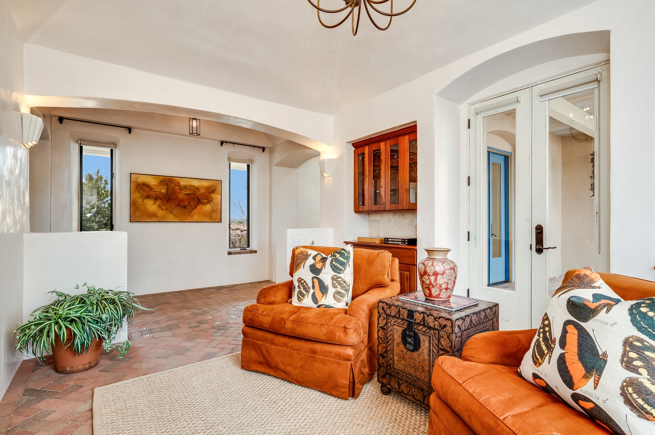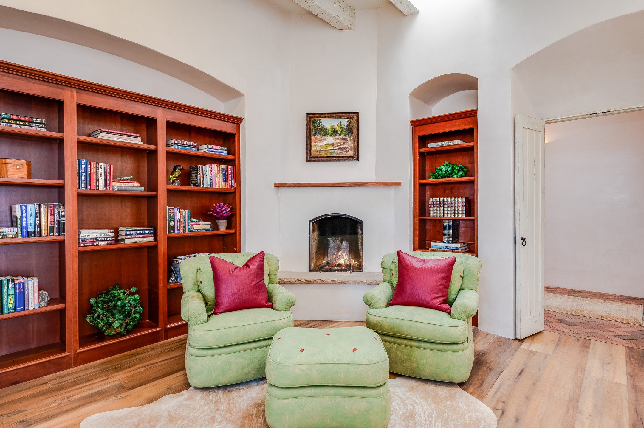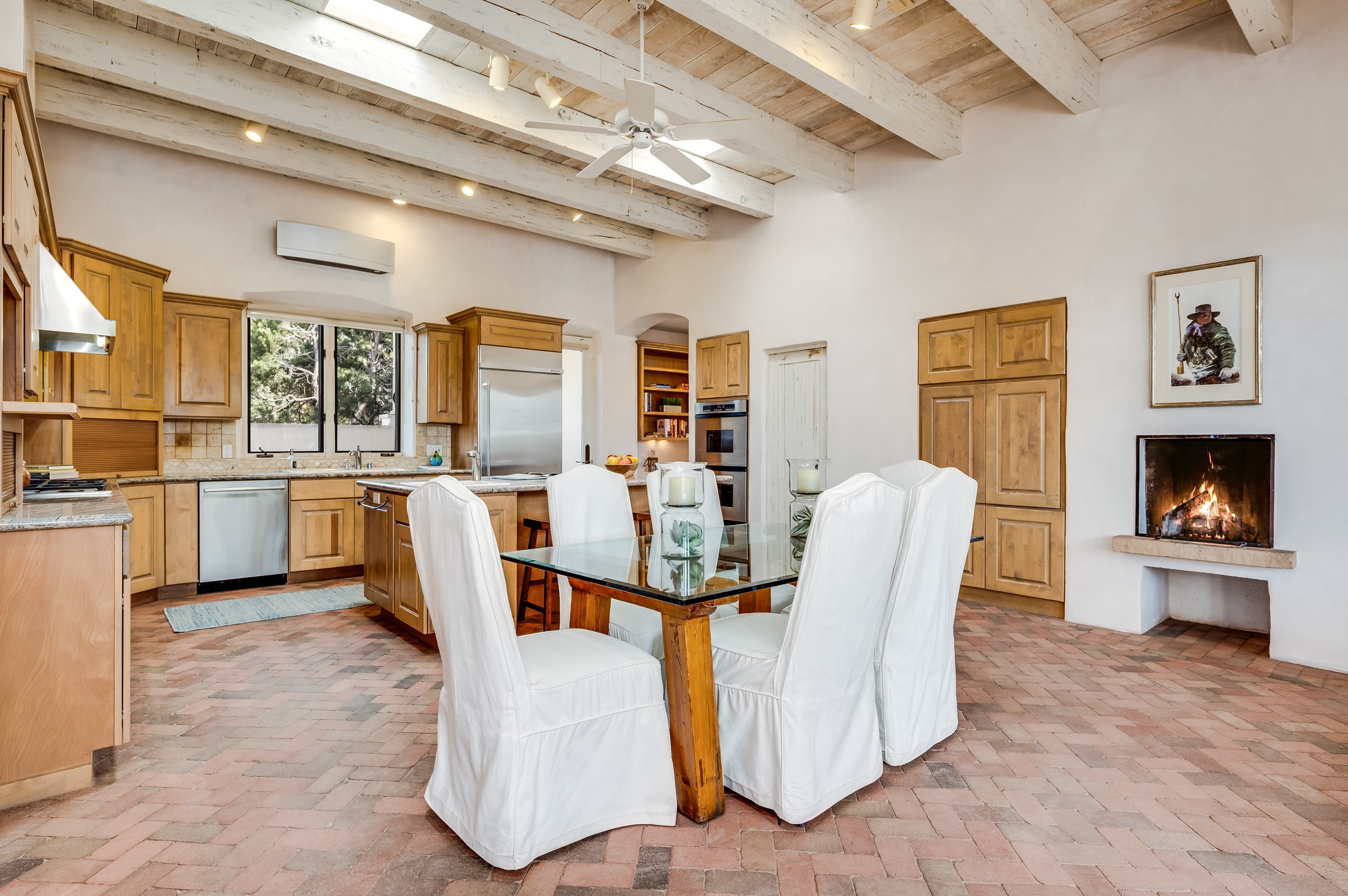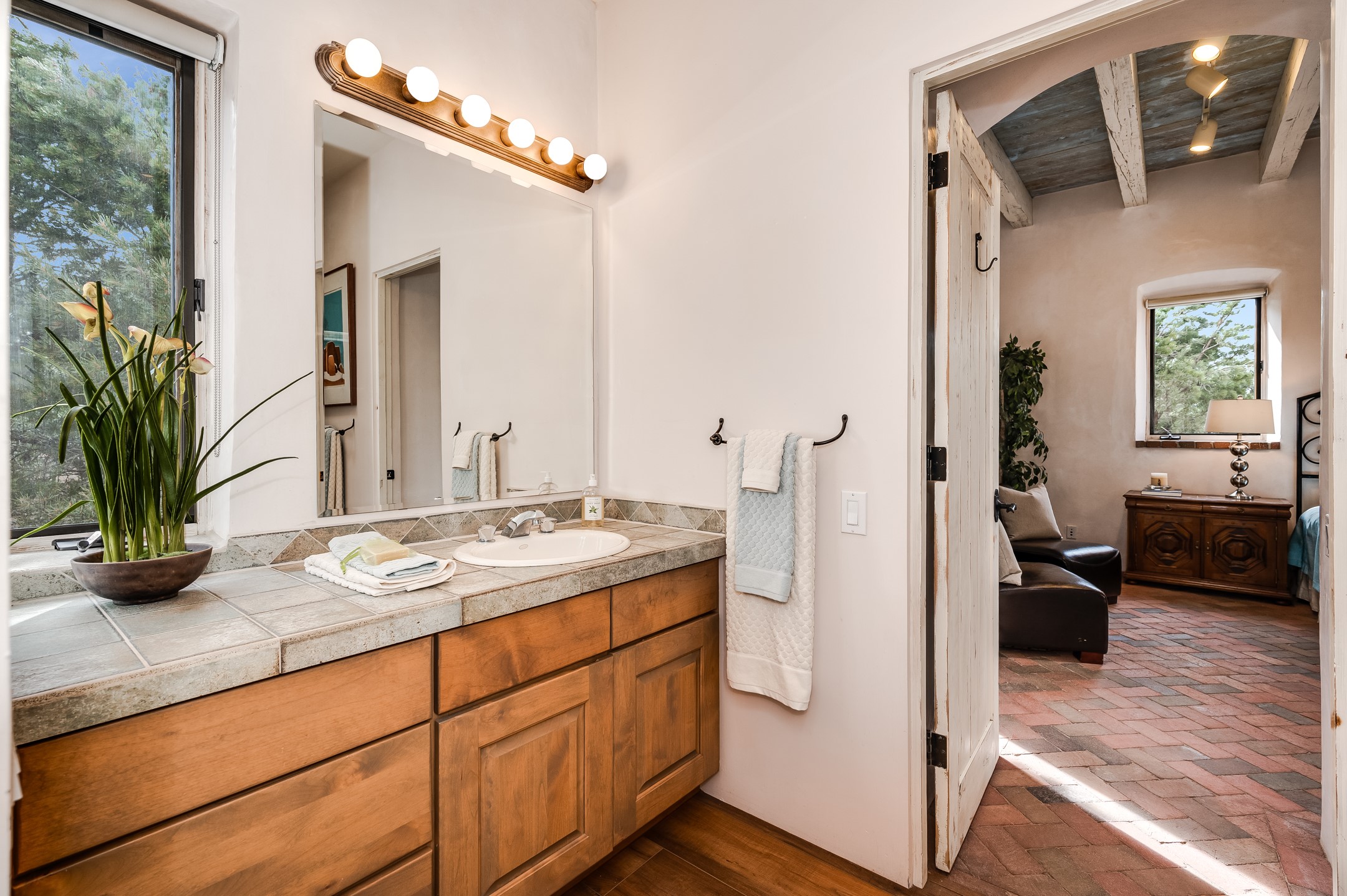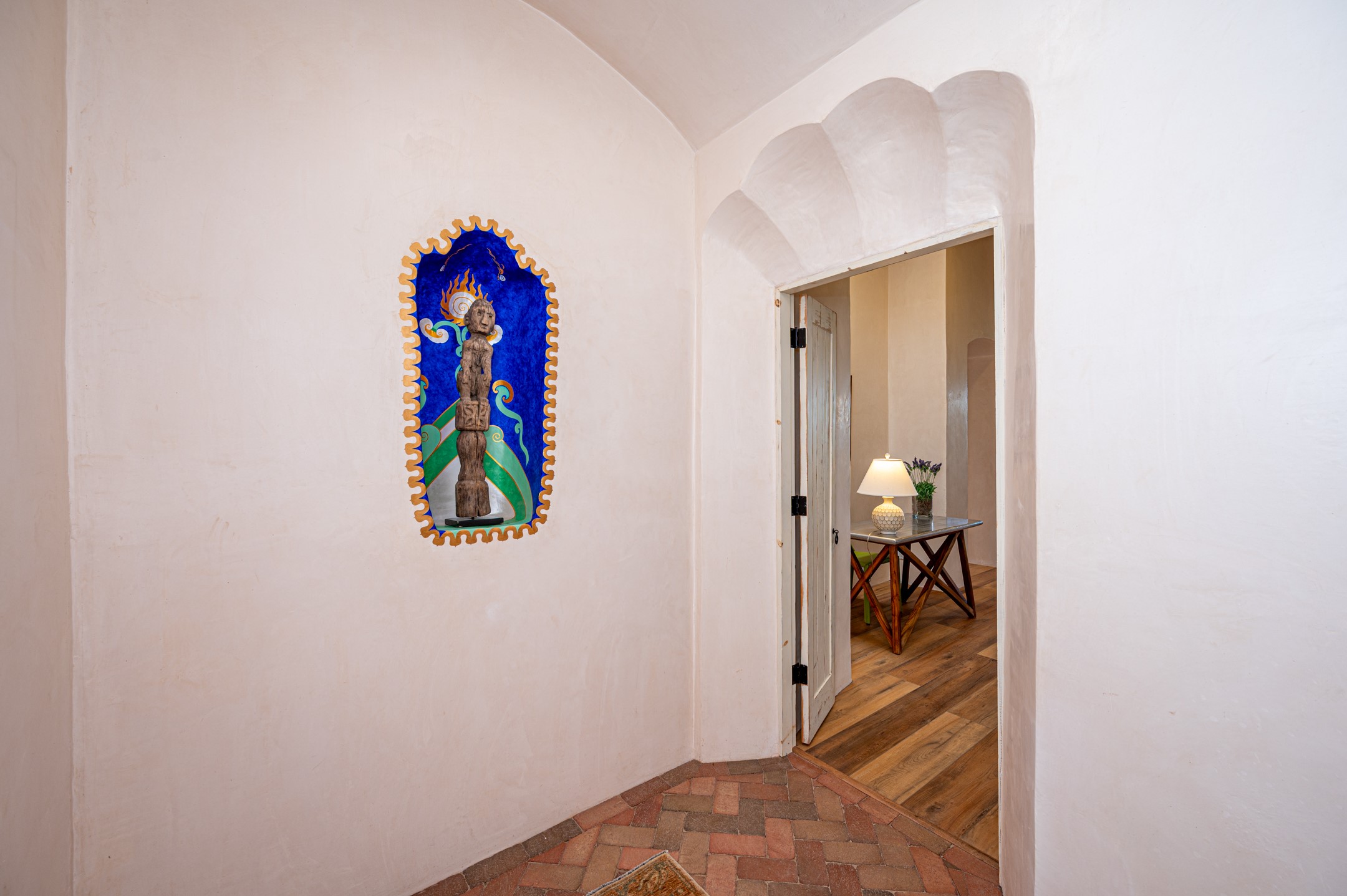 Rastra built beauty by award-winning Paragon Builder and winner of four awards in the Hacienda Parade of Homes! Own a slice of paradise where peace, privacy, and panoramic views exist. Located on a paved dead end cul-de-sac, this 2.5 acre lot is a perfectly sited single level solar equipped, and owned, with new battery back-ups which equals zero negative bills! All utilities are underground for unobstructed 320 degree views of three mountain ranges. One enters through a walled courtyard replete with fountain into a spacious sanctuary with higher than high beamed ceilings. Hand troweled plaster walls, tumbled herringbone brick floors, wide plank wood floors and vaulted ceilings. Normanesque archways, custom solid wood doors with deep set scalloped archways. Bathed in light, the Living Room's French doors flank the Vermont Casting wood stove and lead out to a secluded sheltered patio. Split bedroom floor plan. Ensuite Grand Master with fireplace, office and sitting areas and private pergola covered patio. The large luxurious bathroom has heated bancos, jetted tub, separate shower and a ginormous walk-in closet. Eat-in Kitchen is a cook's delight & is absolutely perfect for entertaining a multitude of guests. Oversized slab granite island with prep sink, fireplace, walk-in pantry, office area and a private, pergola covered patio for breakfast or bbq-ing. Two guest bedrooms share a Jack 'n' Jill bathroom and have access to the portal. Powder room, huge utility room with sink, cabinetry and folding area, central vacuum, built-in sounds speaker and 34 skylights. 1,200 sq. ft. of covered portals for al fresco dining and Margarita sunsets. Three fabulous fireplaces, central vac, closets and storage galore, non-toxic, low VOC, wherever possible, and a shared well maintained by the HOA. Water-wise organic regenerative gardens with mature trees, vegetation & a pet-friendly enclosed back yard. Last, but not least, A three car heated garage. This property is not to be missed!
