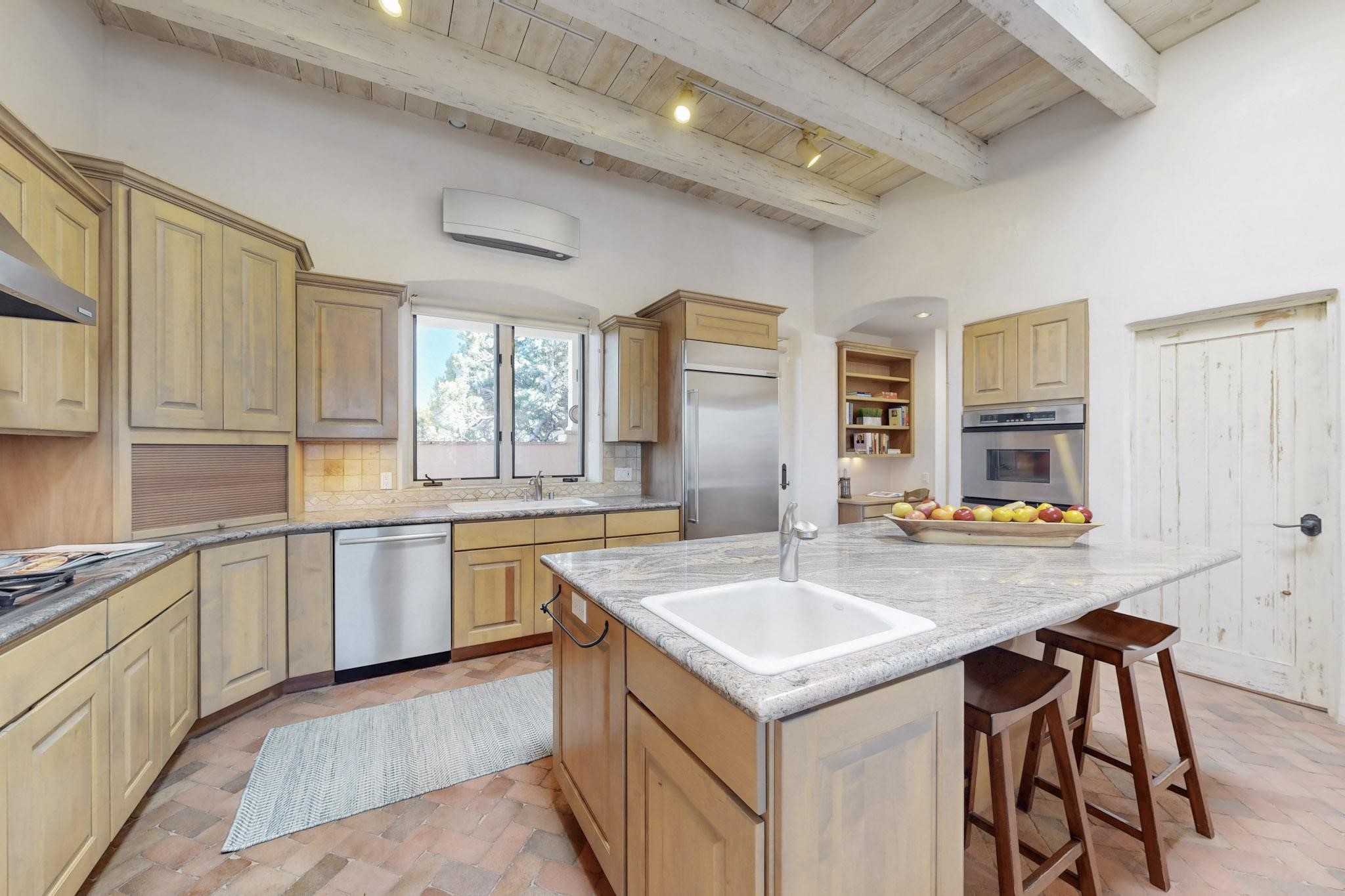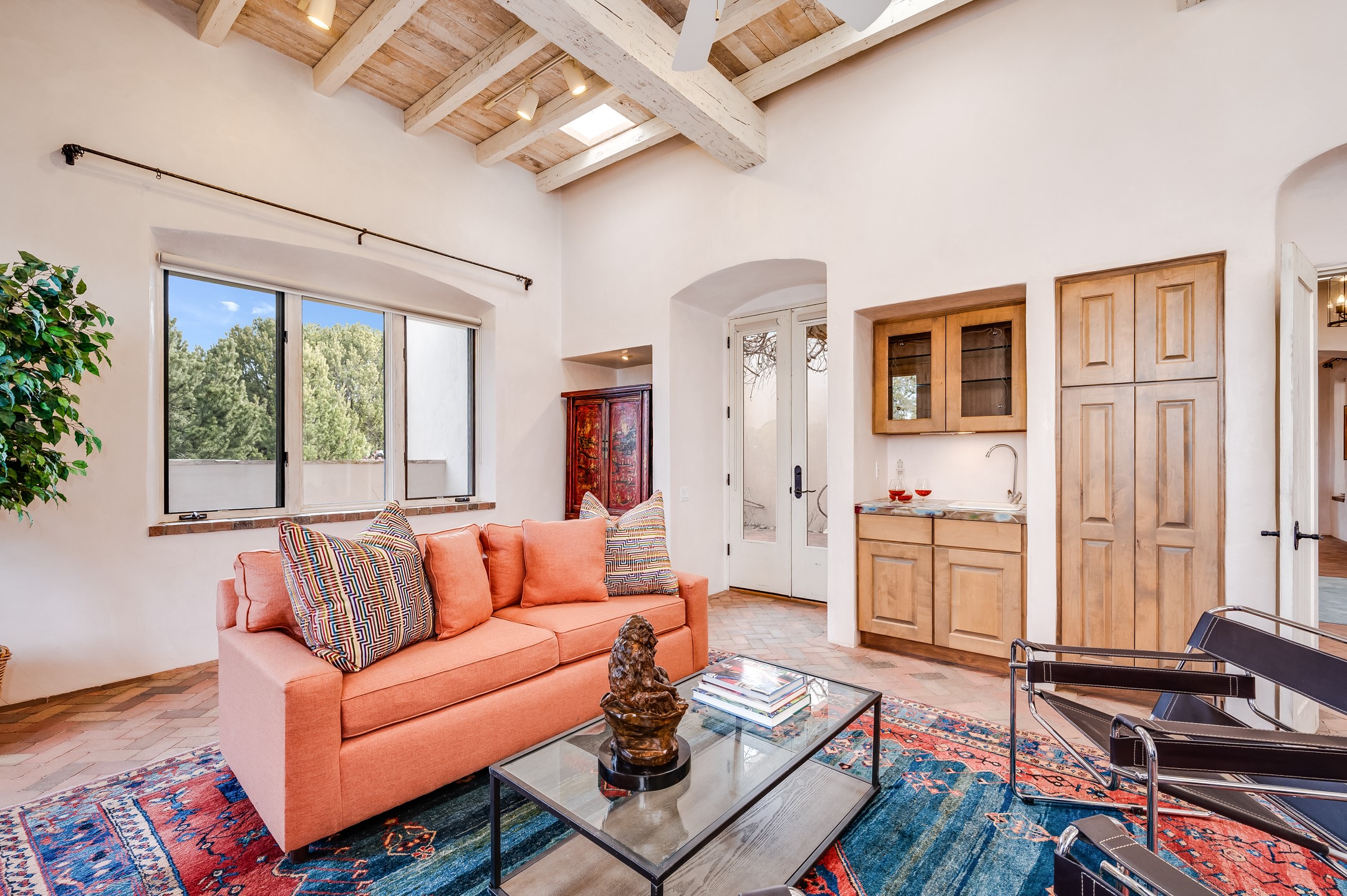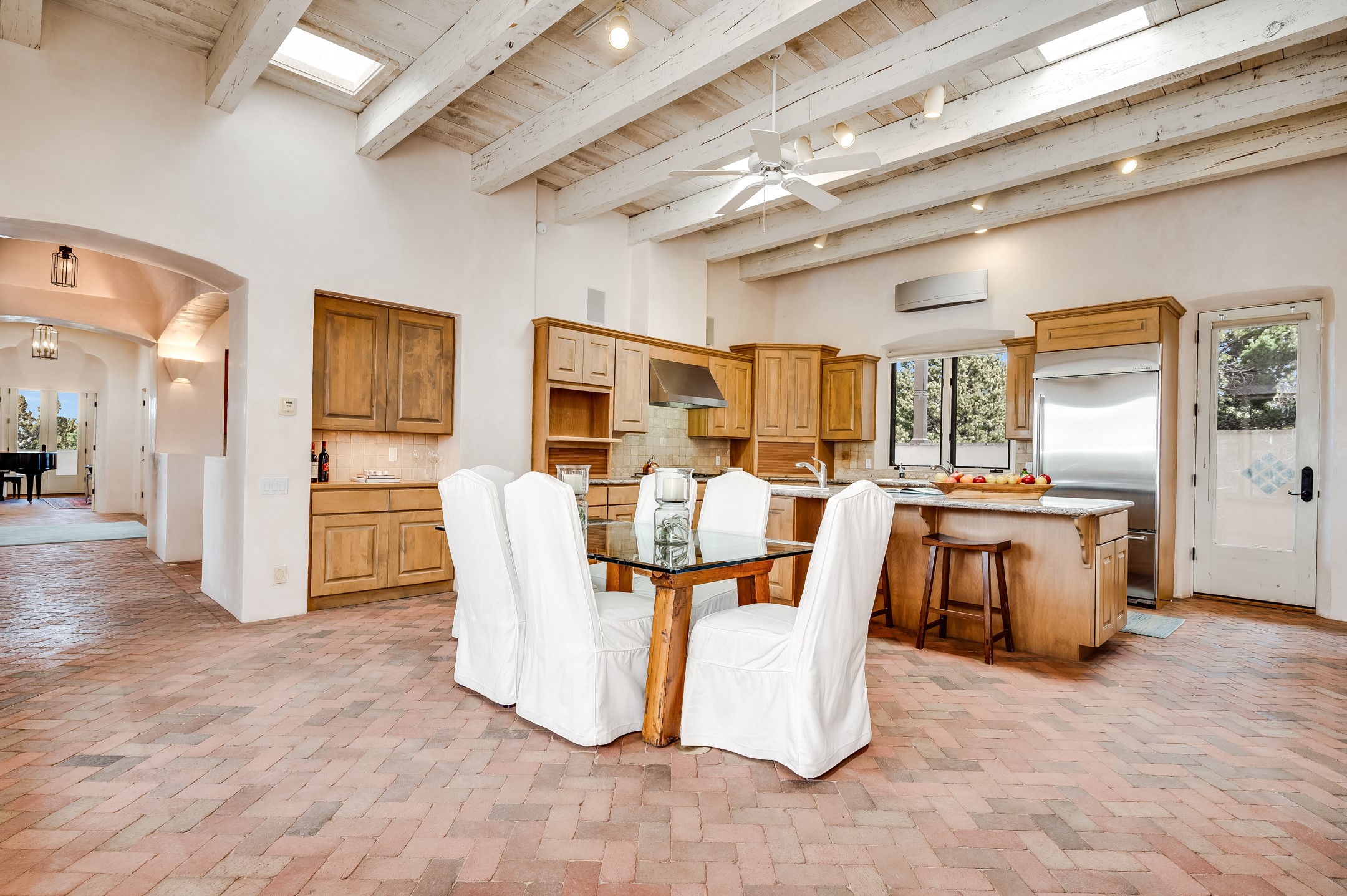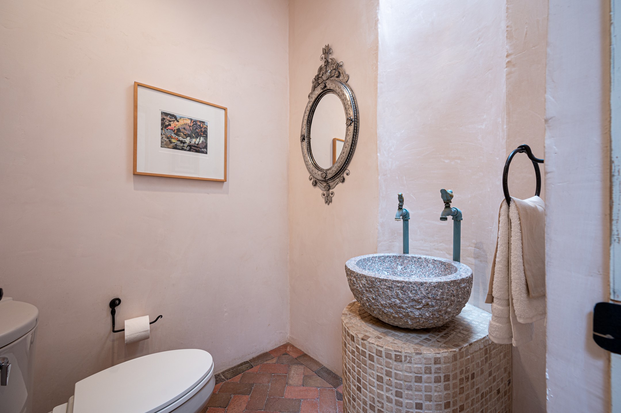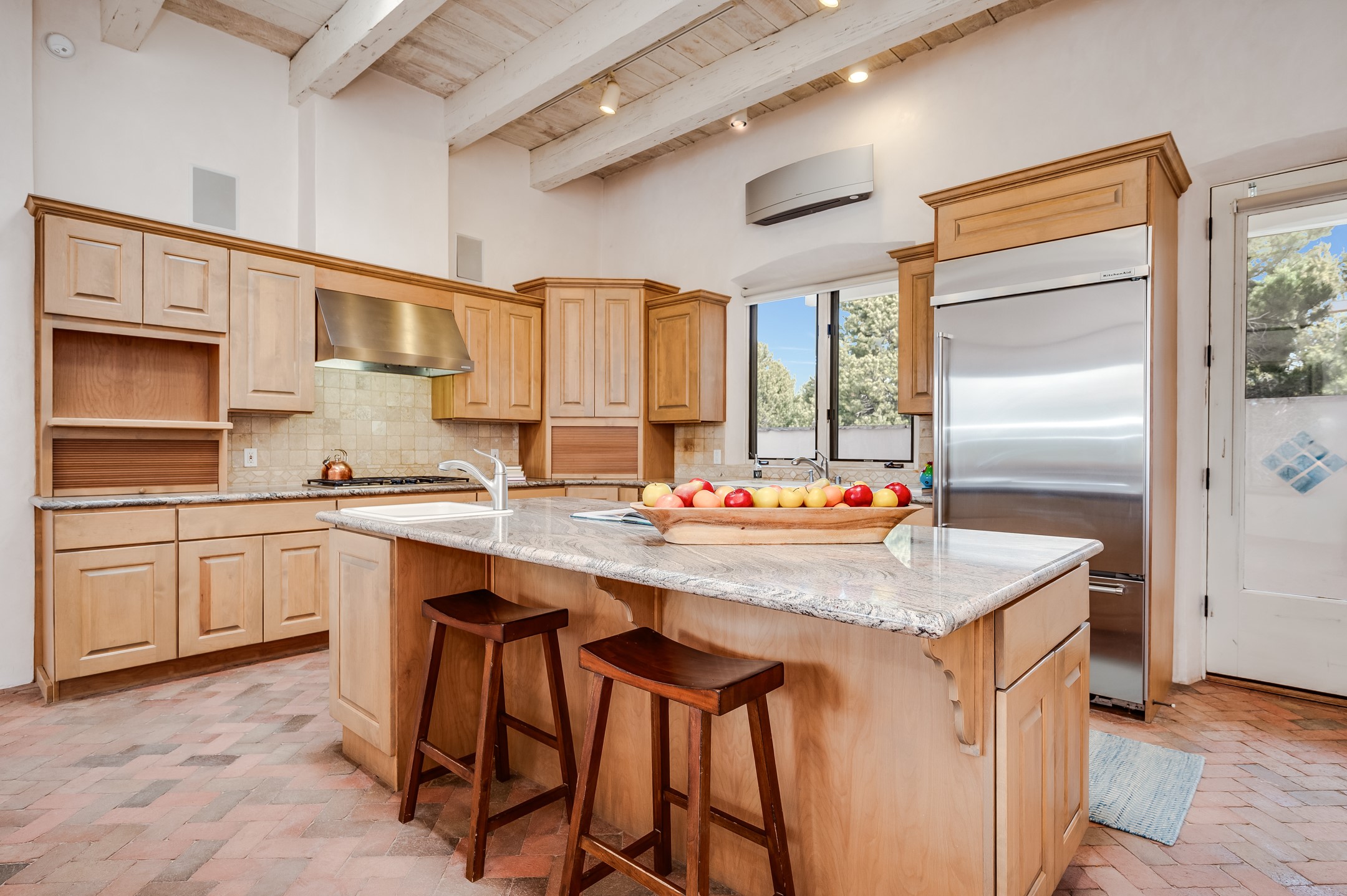 Rastra built beauty by award-winning Paragon Builder and winner of four awards in the Hacienda Parade of Homes! Own a slice of paradise where peace, privacy, and panoramic views exist. Located on a paved dead end cul-de-sac, this 2.5 acre lot is a perfectly sited single level solar equipped, and owned, with new battery back-ups which equals zero negative bills! All utilities are underground for unobstructed 320 degree views of three mountain ranges. One enters through a walled courtyard replete with fountain into a spacious sanctuary with higher than high beamed ceilings. Hand troweled plaster walls, tumbled herringbone brick floors, wide plank wood floors and vaulted ceilings. Normanesque archways, custom solid wood doors with deep set scalloped archways. Bathed in light, the Living Room's French doors flank the Vermont Casting wood stove and lead out to a secluded sheltered patio. Split bedroom floor plan. Ensuite Grand Master with fireplace, office and sitting areas and private pergola covered patio. The large luxurious bathroom has heated bancos, jetted tub, separate shower and a ginormous walk-in closet. Eat-in Kitchen is a cook's delight & is absolutely perfect for entertaining a multitude of guests. Oversized slab granite island with prep sink, fireplace, walk-in pantry, office area and a private, pergola covered patio for breakfast or bbq-ing. Two guest bedrooms share a Jack 'n' Jill bathroom and have access to the portal. Powder room, huge utility room with sink, cabinetry and folding area, central vacuum, built-in sounds speaker and 34 skylights. 1,200 sq. ft. of covered portals for al fresco dining and Margarita sunsets. Three fabulous fireplaces, central vac, closets and storage galore, non-toxic, low VOC, wherever possible, and a shared well maintained by the HOA. Water-wise organic regenerative gardens with mature trees, vegetation & a pet-friendly enclosed back yard. Last, but not least, A three car heated garage. This property is not to be missed!