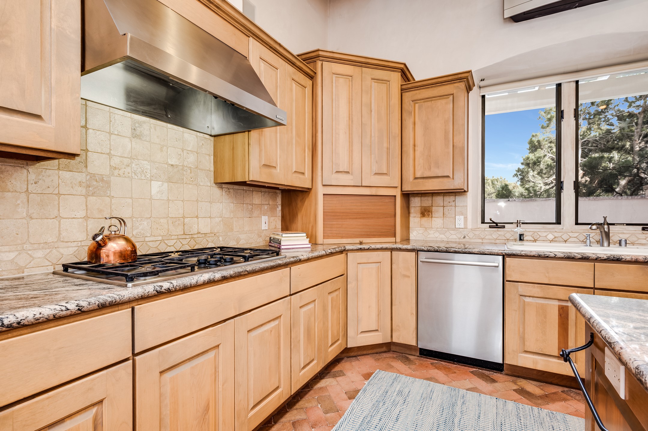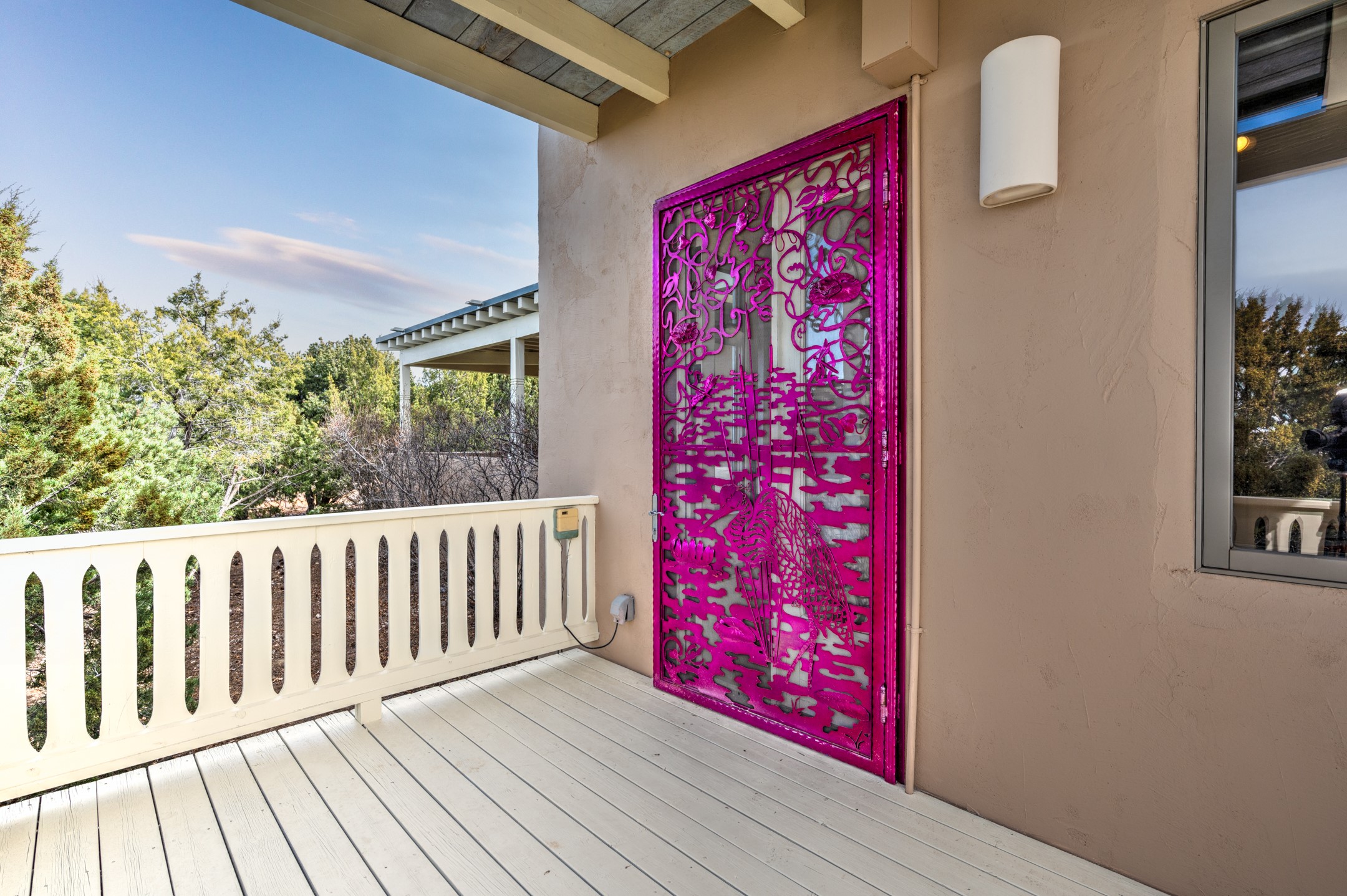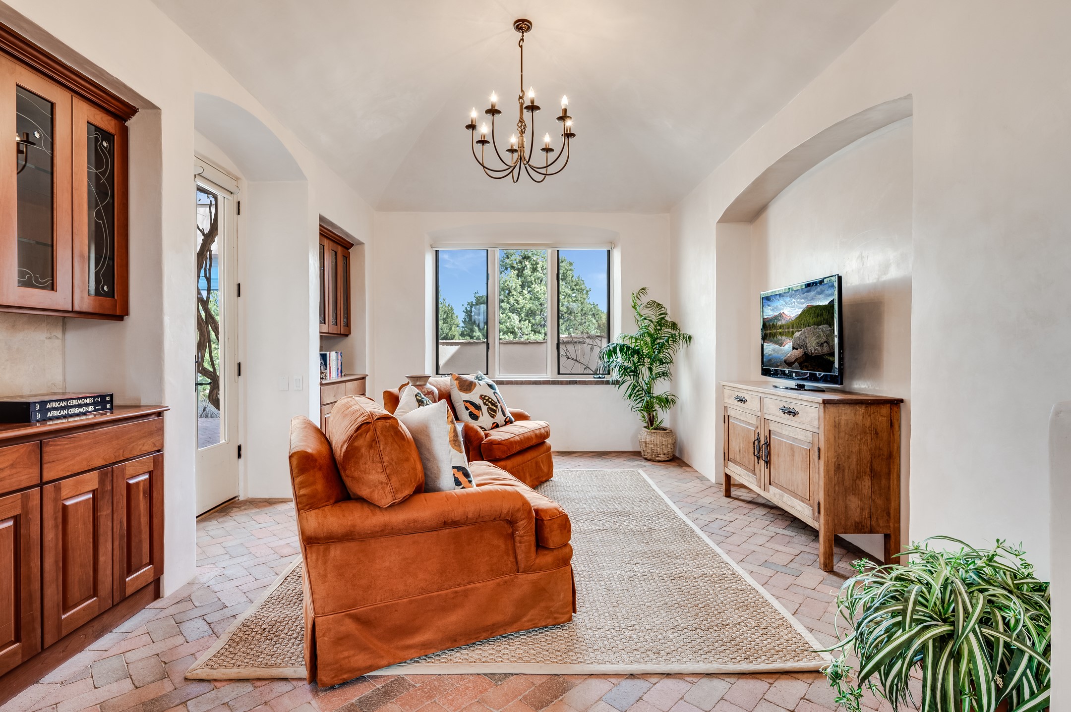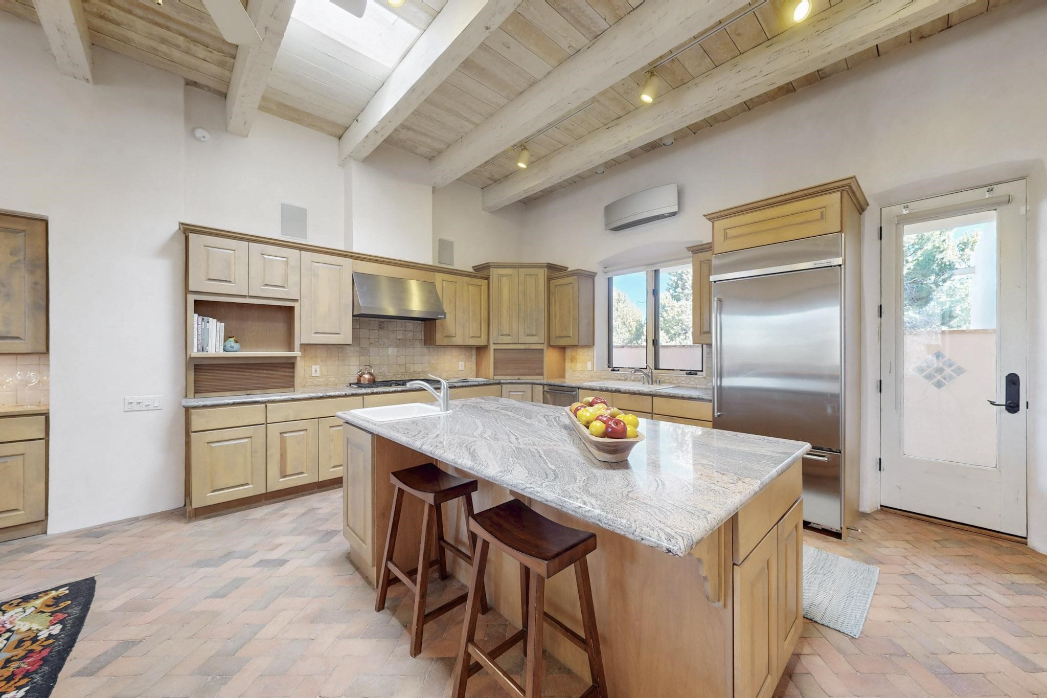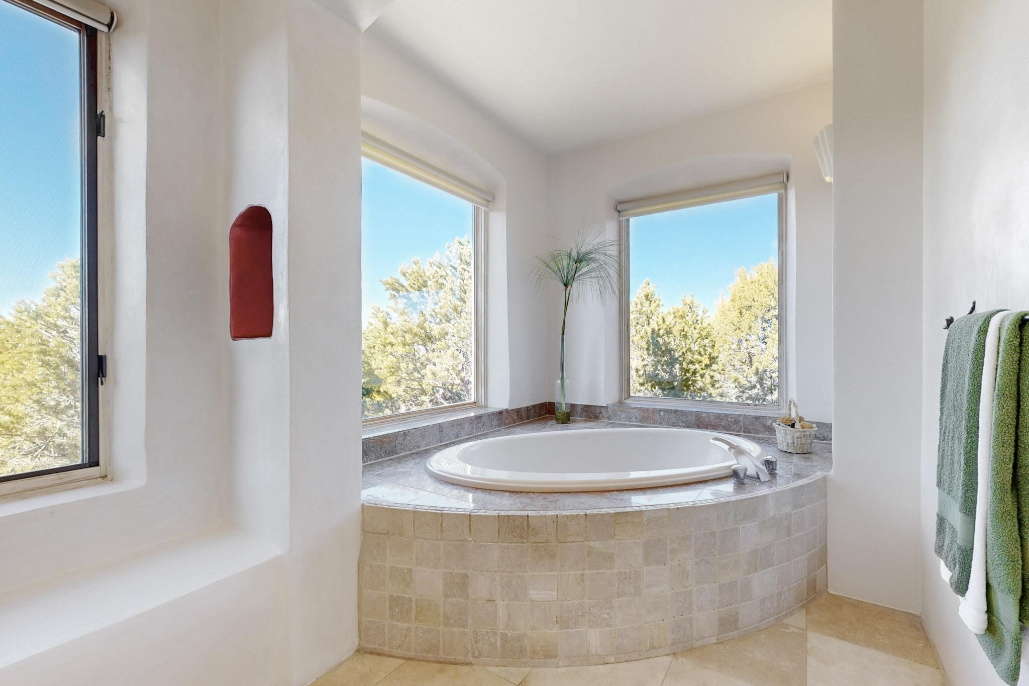 Rastra built beauty by award-winning Paragon Builder and winner of four awards in the Hacienda Parade of Homes! Own a slice of paradise where peace, privacy, and panoramic views exist. Located on a paved dead end cul-de-sac, this 2.5 acre lot is a perfectly sited single level solar equipped, and owned, with new battery back-ups which equals zero negative bills! All utilities are underground for unobstructed 320 degree views of three mountain ranges. One enters through a walled courtyard replete with fountain into a spacious sanctuary with higher than high beamed ceilings. Hand troweled plaster walls, tumbled herringbone brick floors, wide plank wood floors and vaulted ceilings. Normanesque archways, custom solid wood doors with deep set scalloped archways. Bathed in light, the Living Room's French doors flank the Vermont Casting wood stove and lead out to a secluded sheltered patio. Split bedroom floor plan. Ensuite Grand Master with fireplace, office and sitting areas and private pergola covered patio. The large luxurious bathroom has heated bancos, jetted tub, separate shower and a ginormous walk-in closet. Eat-in Kitchen is a cook's delight & is absolutely perfect for entertaining a multitude of guests. Oversized slab granite island with prep sink, fireplace, walk-in pantry, office area and a private, pergola covered patio for breakfast or bbq-ing. Two guest bedrooms share a Jack 'n' Jill bathroom and have access to the portal. Powder room, huge utility room with sink, cabinetry and folding area, central vacuum, built-in sounds speaker and 34 skylights. 1,200 sq. ft. of covered portals for al fresco dining and Margarita sunsets. Three fabulous fireplaces, central vac, closets and storage galore, non-toxic, low VOC, wherever possible, and a shared well maintained by the HOA. Water-wise organic regenerative gardens with mature trees, vegetation & a pet-friendly enclosed back yard. Last, but not least, A three car heated garage. This property is not to be missed!