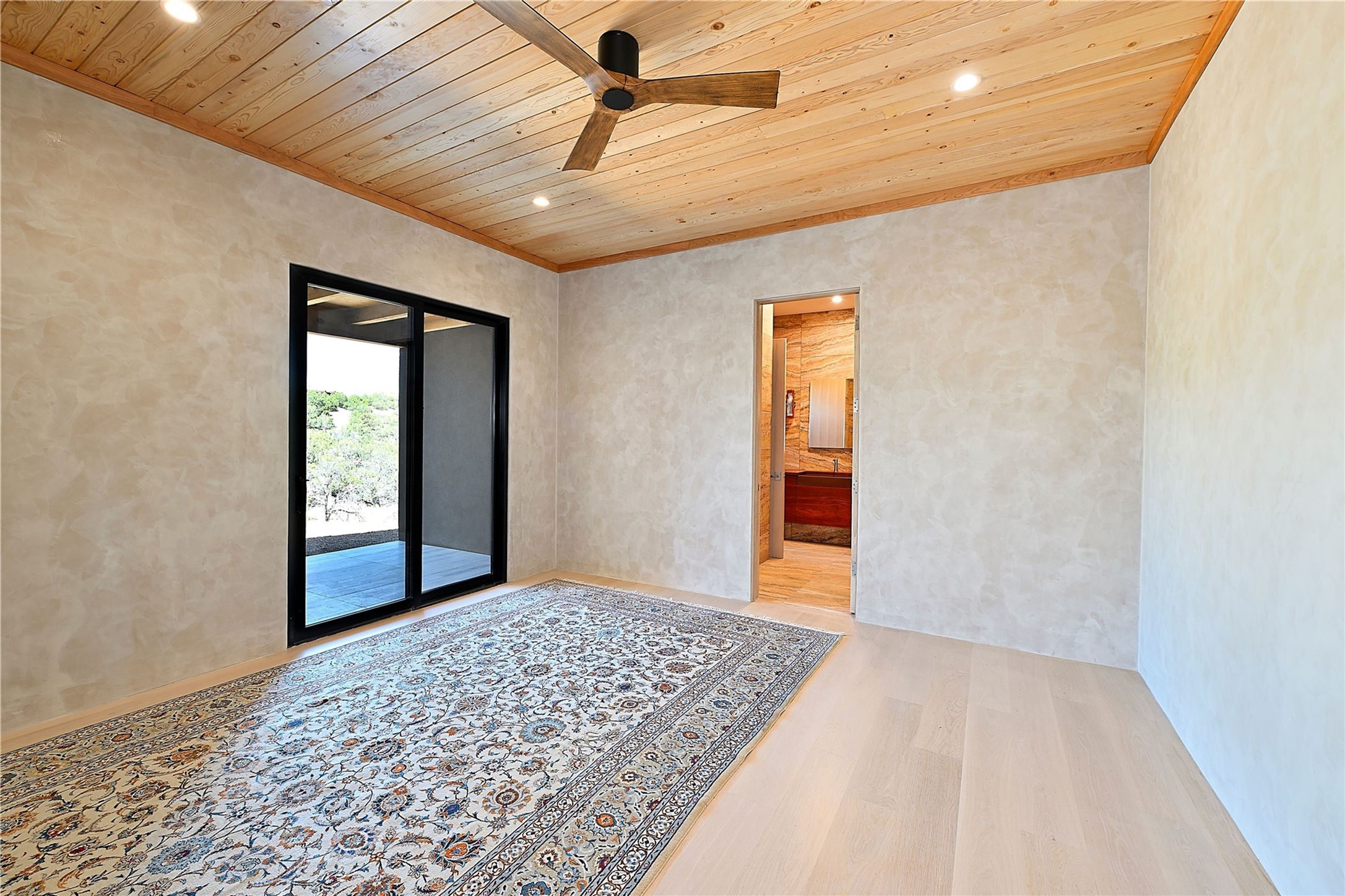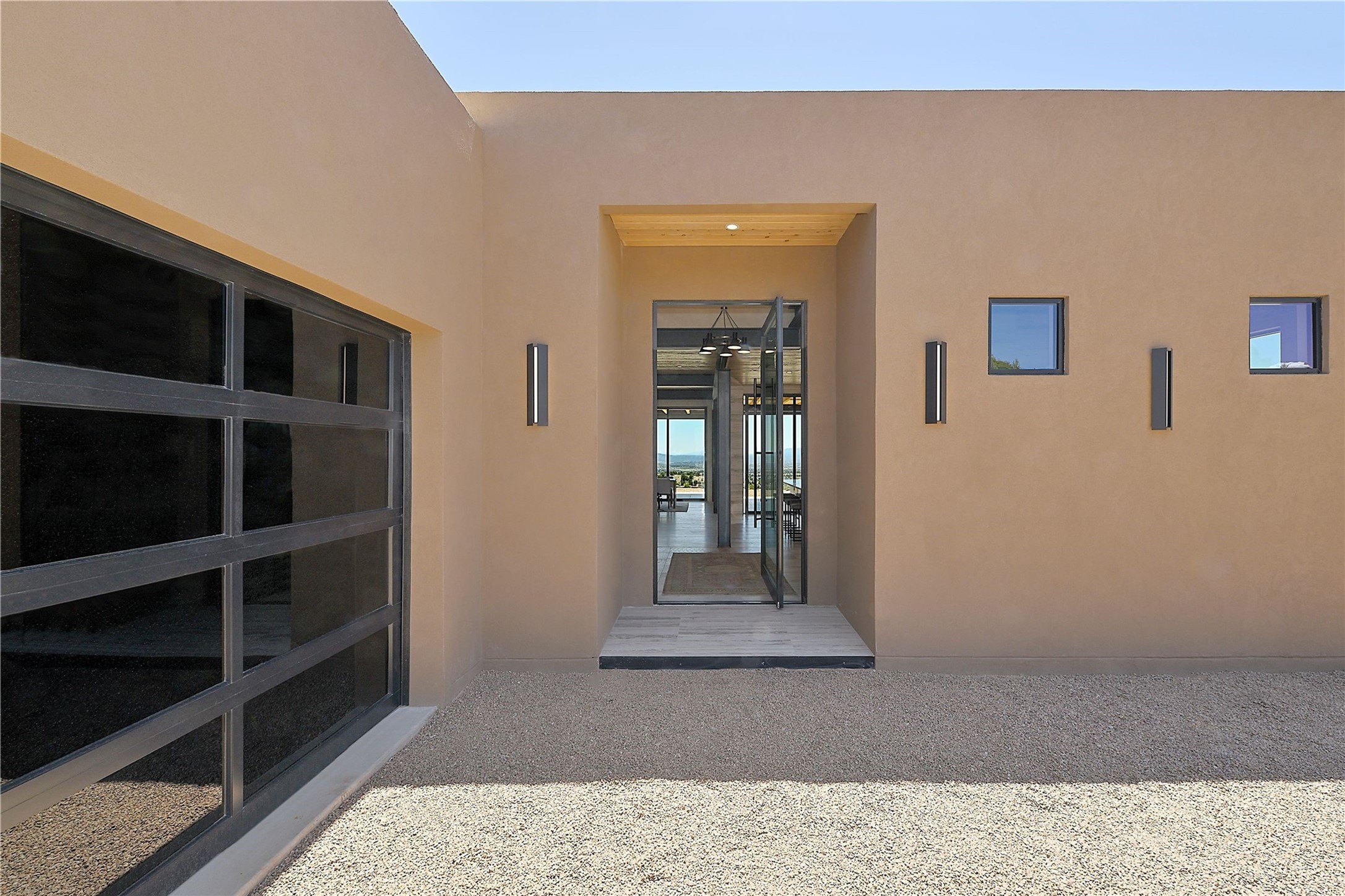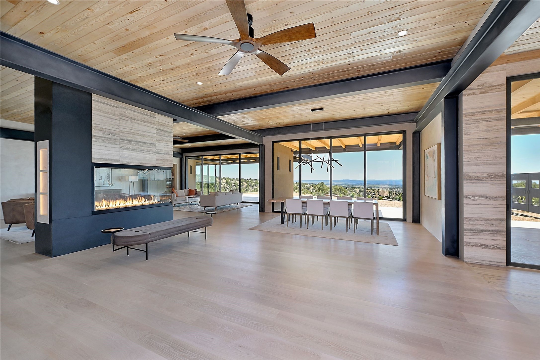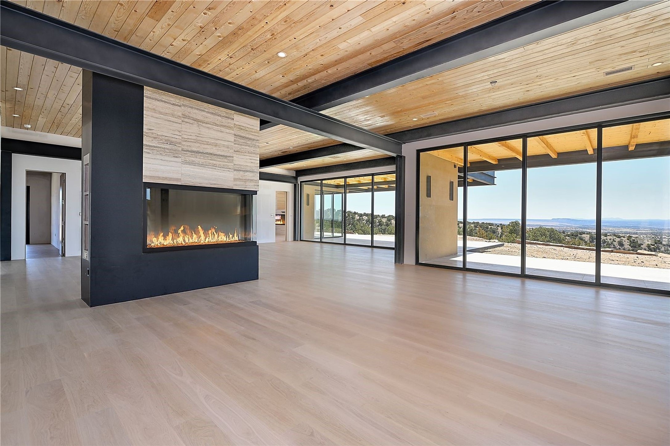 ** 2025 Grand Hacienda Winner!17 Vista Bella will be the #1 Property on the Haciendas 2025 Parade of Homes Tour 8/8-8/10 and 8/15-8/17. Breathtaking views and stellar night skies- this new build is move in ready! Boasting (approx.) 4,400 sq. ft. & nestled on 12.68 acres, this home offers unparalleled views of the Galisteo Basin and mountains. Designed by Mark Schwebel of Big Art Builders, 2024 Parade of Homes for Natural Materials winner, this masterpiece blends cantilevered steel beams, glass, natural wood, and stone to harmonize with its high-desert surroundings. A contemporary design brings the outdoors in, with expansive windows, a stunning outdoor kitchen, and spaces perfect for entertaining. Each element has been meticulously crafted to highlight the surrounding beauty while creating a warm, luxurious environment. The kitchen's stunning centerpiece is crafted from white oak slabs, complemented by Italian stone floors and walls. Counters are custom-milled Brazilian stone, with BlueStar appliances and True refrigeration. Each bathroom is a work of art, clad in exotic stones sourced from Mexico, Turkey, and Italy. Vanities are crafted from exotic hardwoods like West African Padauk and Black Limba, paired with countertops of Persian travertine, Brazilian Taj Mahal, and Namibian granite. The powder room features Italian stone and a unique concrete sink. Refined details include: 7" French white oak floors, Lake Tahoe white fir ceilings, and two showpiece gas fireplaces: a modern shepherd's design in the primary suite and a black granite-clad peninsula in the living room. Take advantage of the unrivaled comfort this home offers with High-efficiency Carrier forced air heating and cooling, radiant heating throughout, and superior insulation with closed-cell spray foam (R60 ceilings, R30 walls). This home is a celebration of luxury, nature, and artistry, a truly one-of-a-kind property that must be experienced.