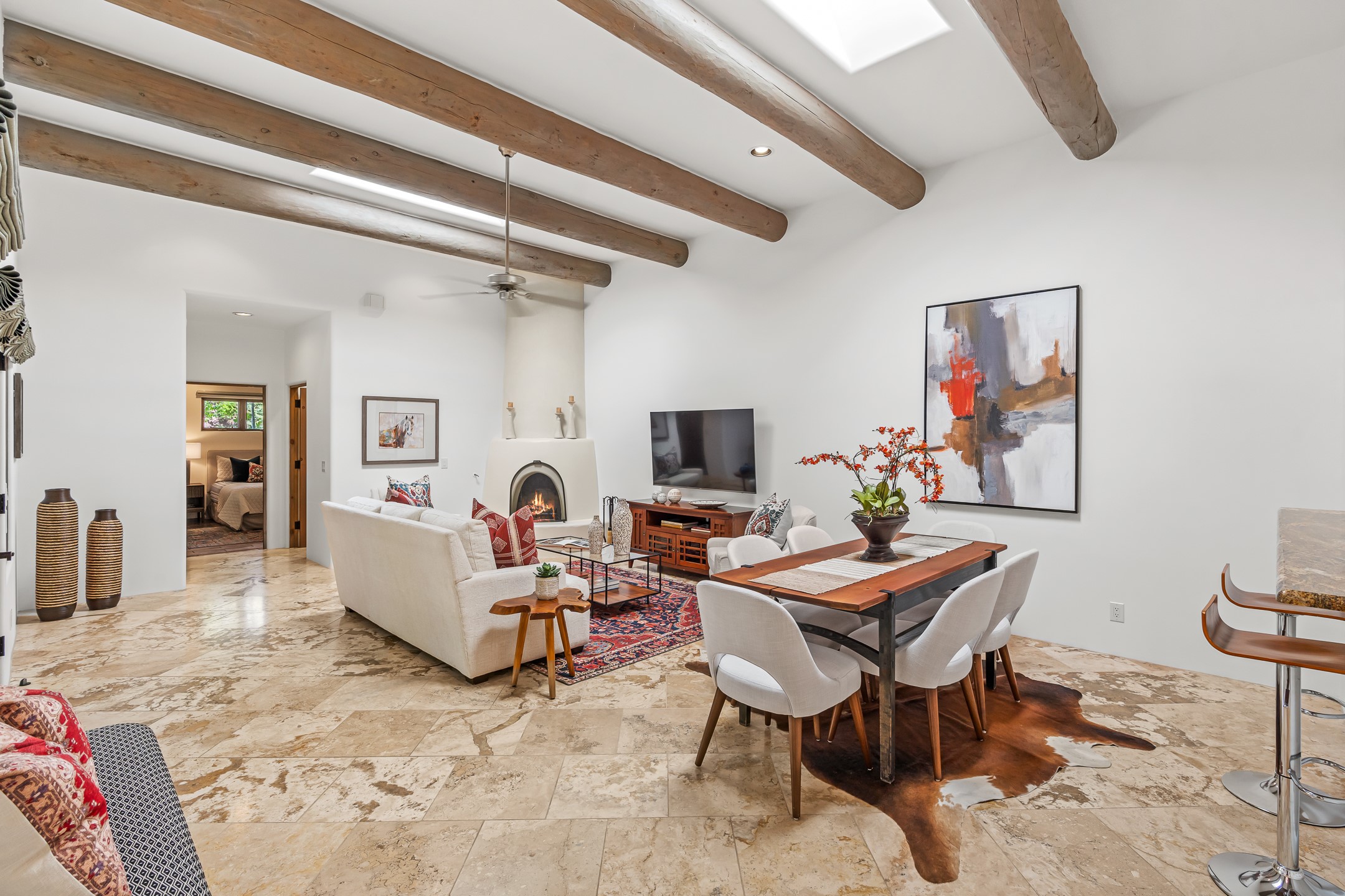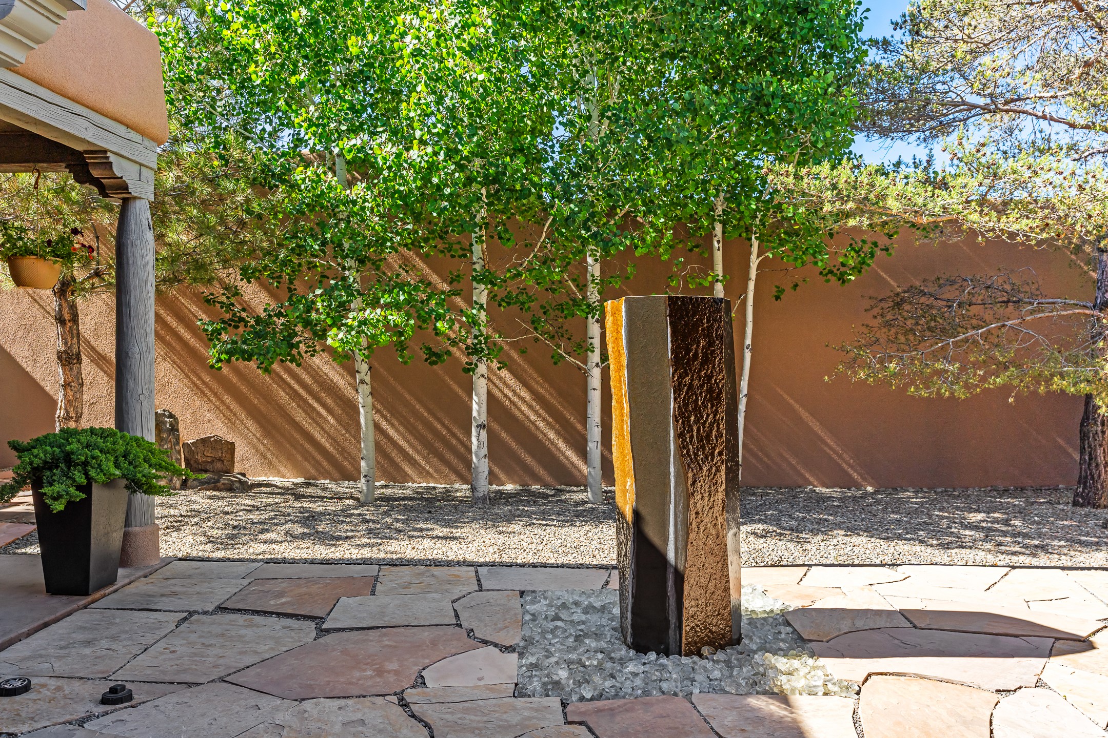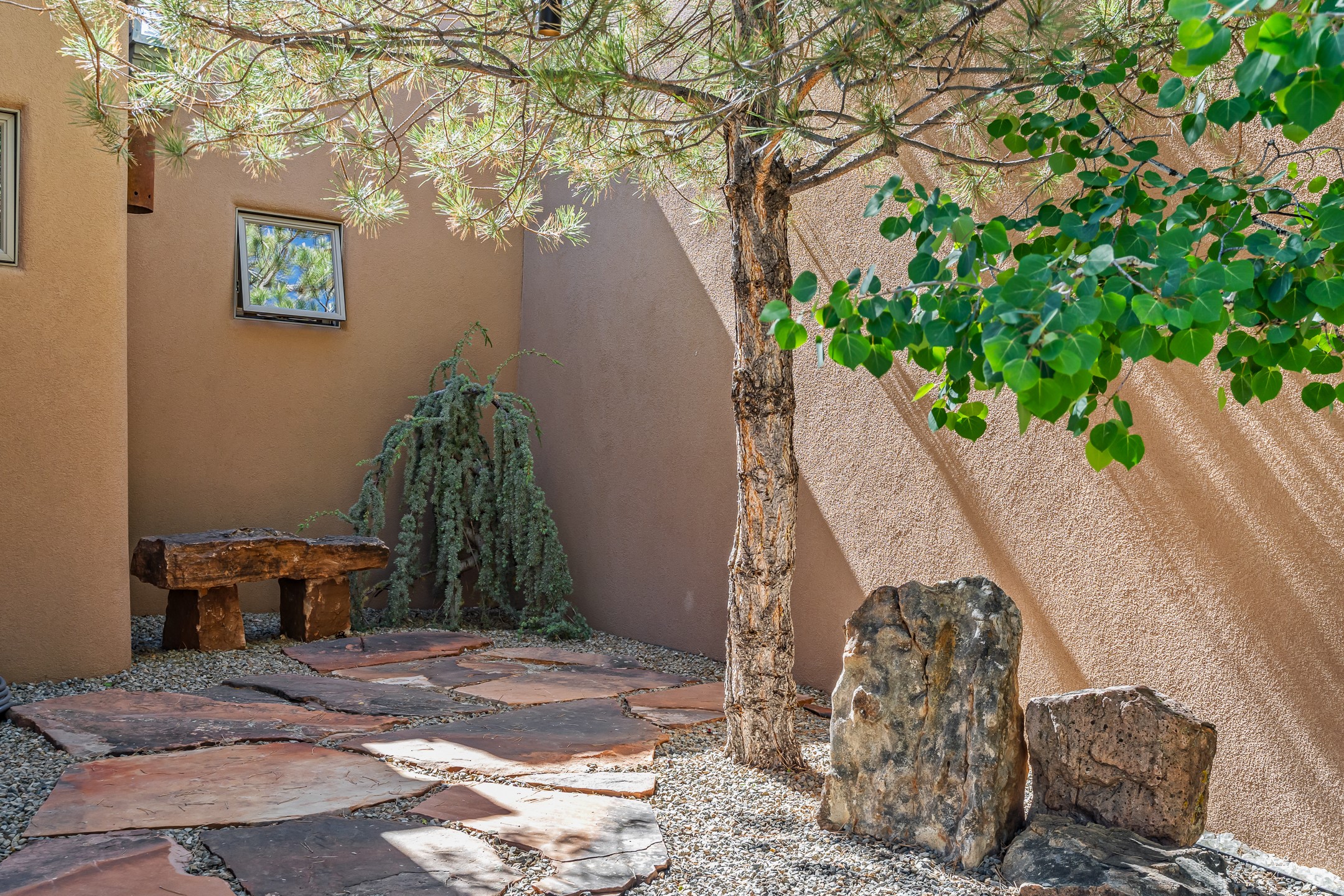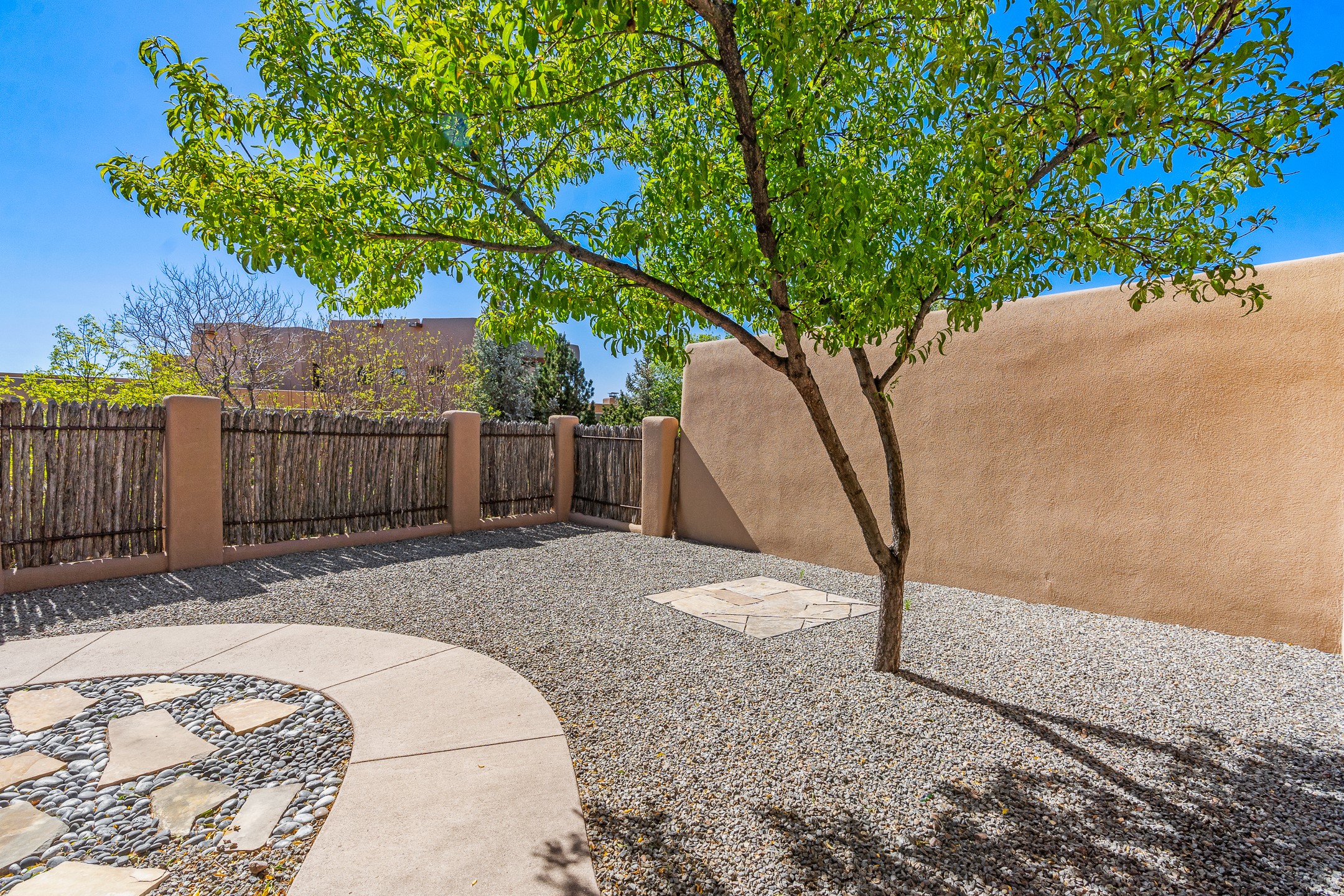 Experience Effortless Elegance in Aldea de Santa FeWelcome to your enchanting Santa Fe retreat -- a refined lock-and-leave courtyard residence crafted by Casas De Vistas. This 2-bedroom, 2-bath home effortlessly blends timeless Southwestern charm with modern comfort, offering a serene lifestyle all on one level and just minutes from the heart of Santa Fe. Step through private gates into a sun-drenched courtyard, where covered portals invite morning coffee, sunset cocktails, and peaceful moments of reflection. Inside, warm French doors open to a living space that radiates character -- soaring beamed ceilings, a cozy kiva fireplace, and cool travertine stone floors set the stage for relaxed luxury. The chef's kitchen is both functional and beautiful, with granite countertops, artful tile backsplashes, and sleek stainless steel appliances -- a perfect space to create and entertain. Both bedrooms are private sanctuaries with elegant tile floors, while the primary suite offers a tray ceiling and French doors that open directly to your secluded courtyard oasis. A spacious two-car garage adds practicality, and a fenced backyard provides the perfect space for your four-legged companions to roam safely. Whether you're seeking a full-time home or a seasonal escape, this Santa Fe gem offers low-maintenance luxury and authentic style in one of the region's most desirable communities. Here you will find 13 miles of walking trails, Tennis, pickle ball and Basket ball court, many parks throughout, including one with a playground, acres of open space with views and a coffee shop on the plaza. On site HOA Management. Come explore the active lifestyle this new urbanist community has to offer.