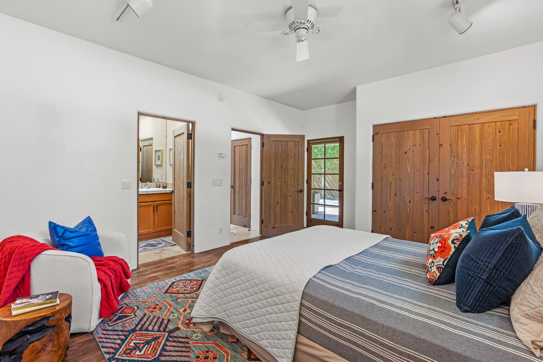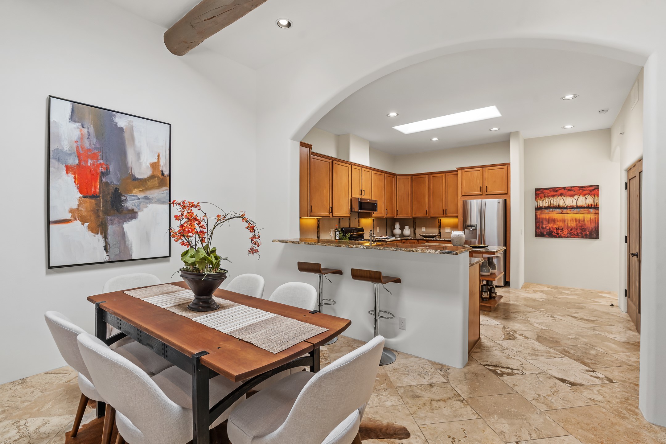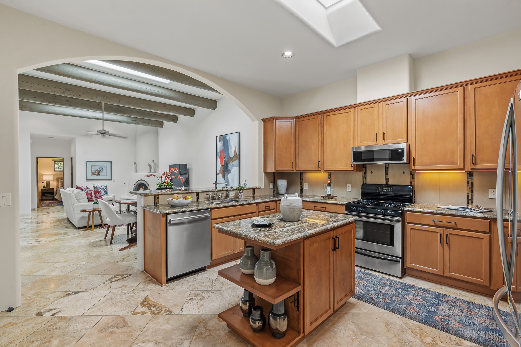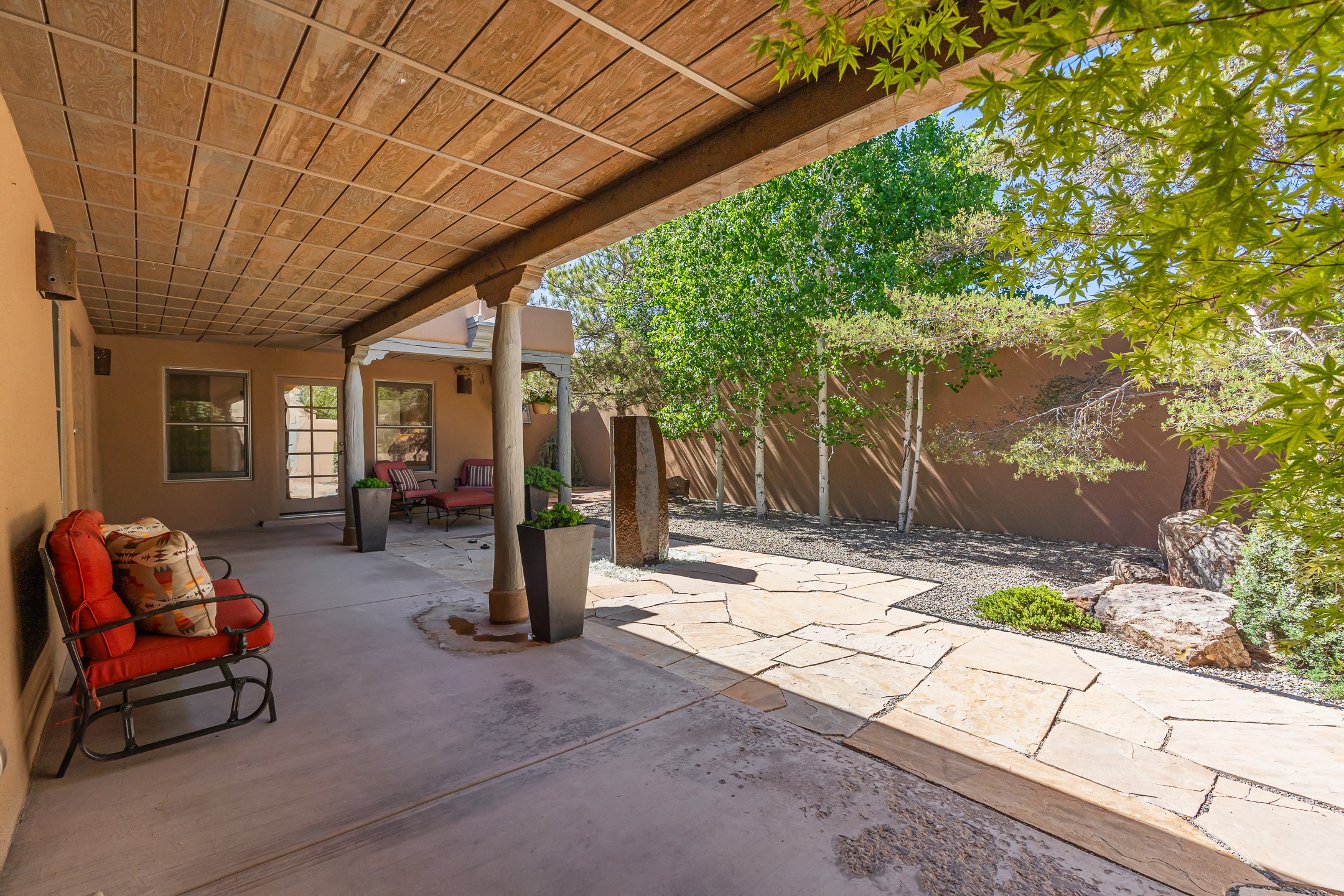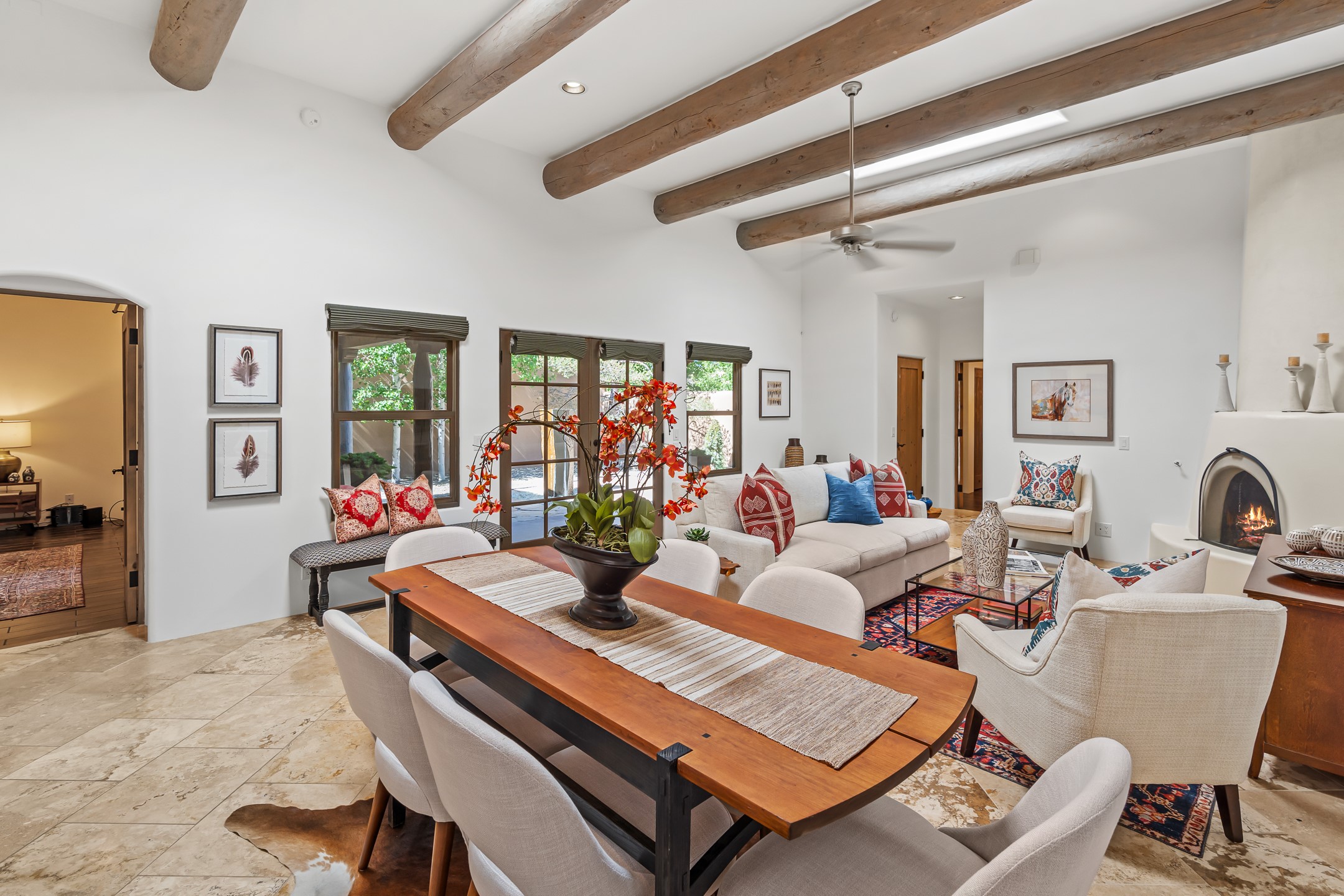 Experience Effortless Elegance in Aldea de Santa FeWelcome to your enchanting Santa Fe retreat -- a refined lock-and-leave courtyard residence crafted by Casas De Vistas. This 2-bedroom, 2-bath home effortlessly blends timeless Southwestern charm with modern comfort, offering a serene lifestyle all on one level and just minutes from the heart of Santa Fe. Step through private gates into a sun-drenched courtyard, where covered portals invite morning coffee, sunset cocktails, and peaceful moments of reflection. Inside, warm French doors open to a living space that radiates character -- soaring beamed ceilings, a cozy kiva fireplace, and cool travertine stone floors set the stage for relaxed luxury. The chef's kitchen is both functional and beautiful, with granite countertops, artful tile backsplashes, and sleek stainless steel appliances -- a perfect space to create and entertain. Both bedrooms are private sanctuaries with elegant tile floors, while the primary suite offers a tray ceiling and French doors that open directly to your secluded courtyard oasis. A spacious two-car garage adds practicality, and a fenced backyard provides the perfect space for your four-legged companions to roam safely. Whether you're seeking a full-time home or a seasonal escape, this Santa Fe gem offers low-maintenance luxury and authentic style in one of the region's most desirable communities. Here you will find 13 miles of walking trails, Tennis, pickle ball and Basket ball court, many parks throughout, including one with a playground, acres of open space with views and a coffee shop on the plaza. On site HOA Management. Come explore the active lifestyle this new urbanist community has to offer.