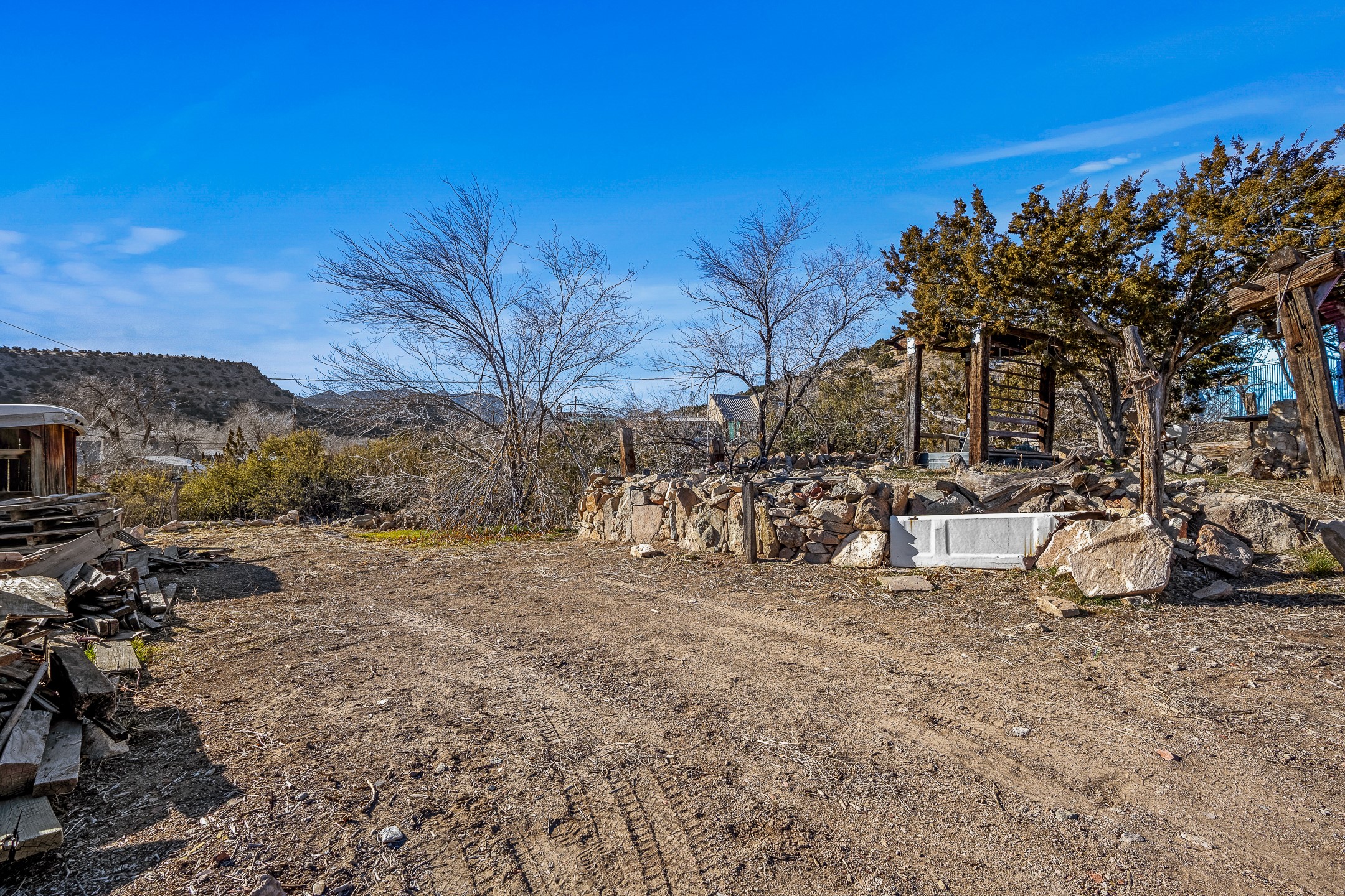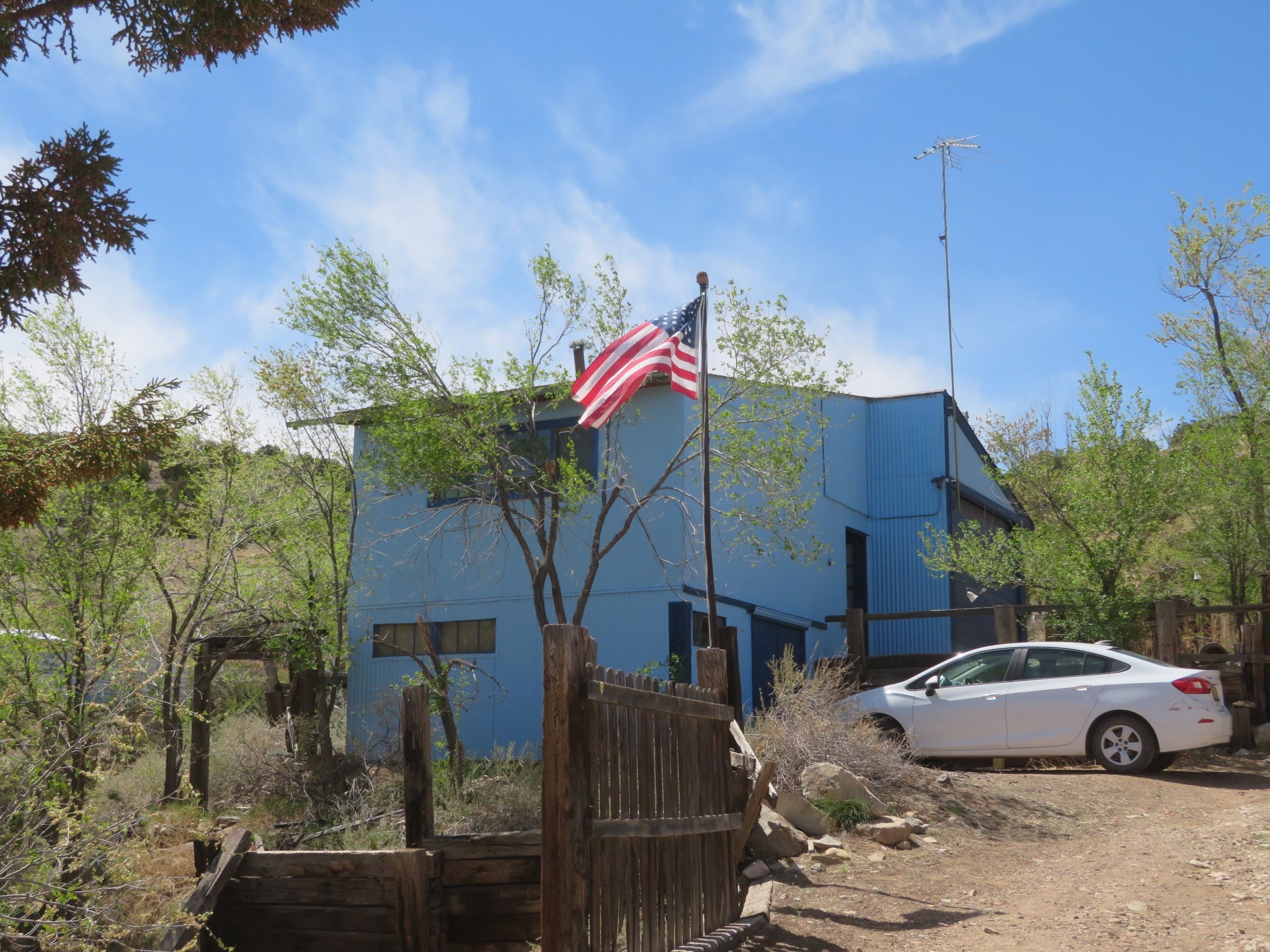 Fix 'em up!--project opportunity in Madrid on nice view lot. Recent price improvement, too. Two homes, two addresses---2 Grasshopper and 29 Backroad, both one of a kind, Madrid-style structures, of stone, wood, and metal siding, both with striking views of hillsides, mountains and town. The much-loved home and semi- industrial metal building --the "warehouse/apartment" will make great projects! You can live in one while you fix up or rent the other as the past owner did, or use as your workshop, home business, storage, garage, etc. On a treed, spacious lot with landscaped terraces and a rocky little arroyo, there's room to park and relax in the yard. Elements of Madrid's old mining days abound: beams from the old Madrid mine building and "found objects" incorporated into the facade. The County Assessor estimates the stone/wood house at 1112 sq ft and the warehouse/apartment at approx. 784 sq ft. Conventional electric, Madrid water membership. Nearby to everything Madrid including the tavern, dispensary, restaurants and galleries, trails, ballpark, and more.