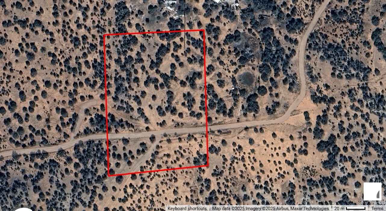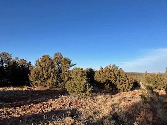 Pinon and juniper wooded acreage with no HOA or covenants, no utilities, but wonderful close up views of Starvation Peak. Good places to build. Good dirt road to property, only about a mile from the paved frontage road. Electricity is at the lot line with the neighboring property. Fenced on two sides.