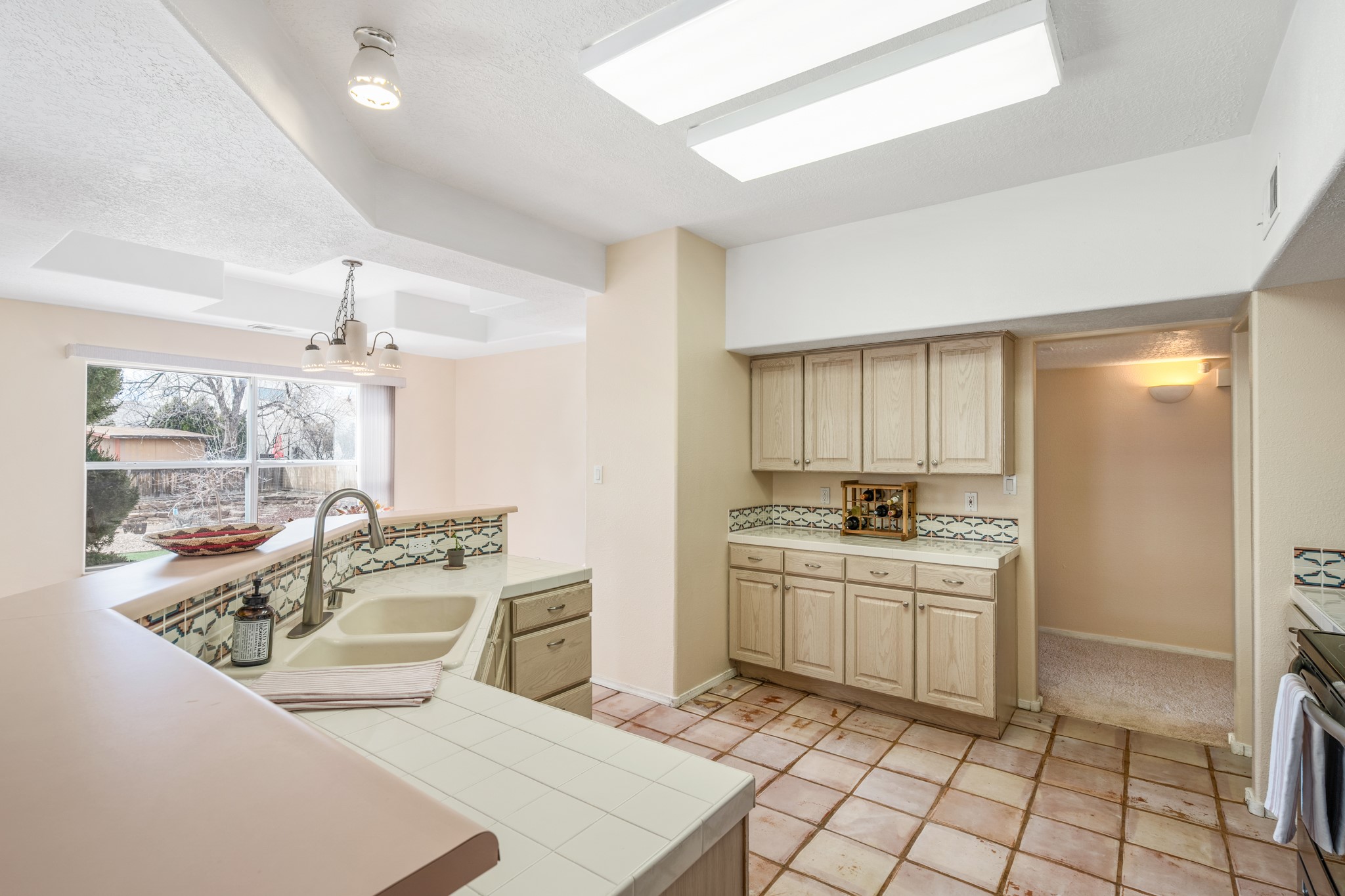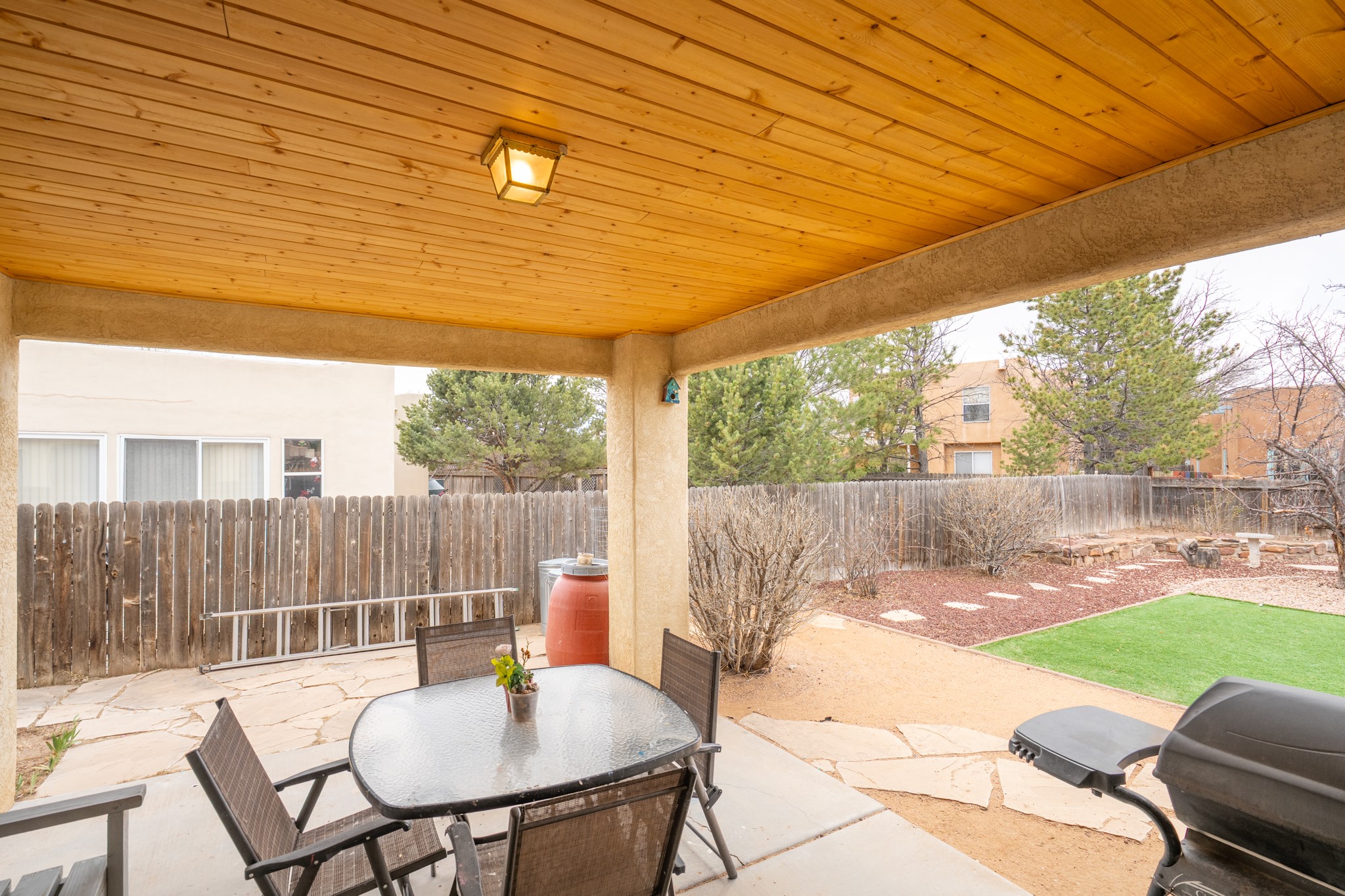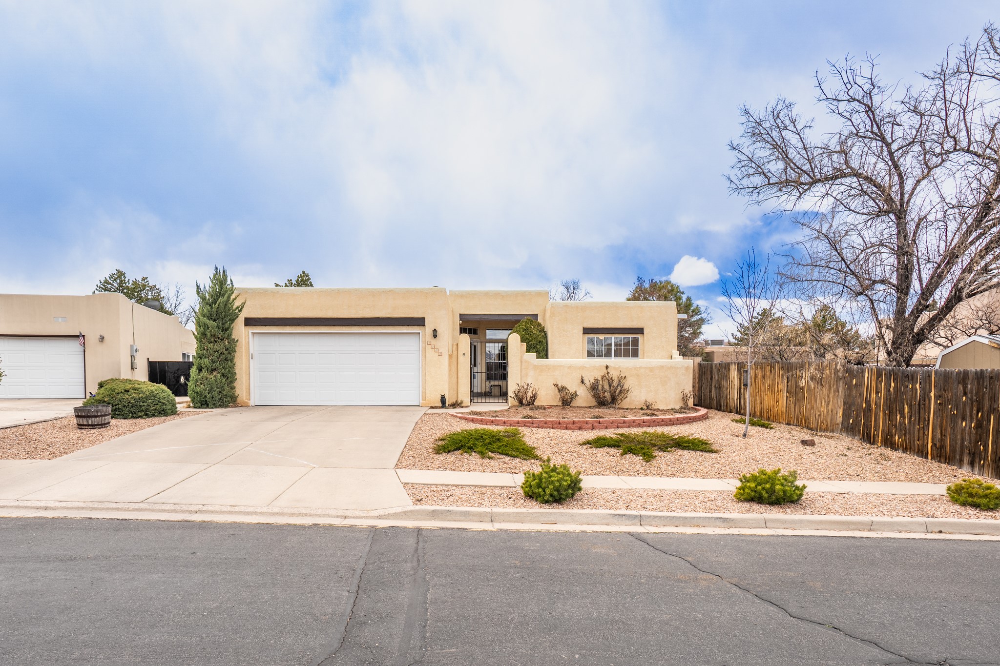 Tucked away in a peaceful cul-de-sac within a desirable gated community, this beautiful 3-bedroom, 2-bathroom home offers the perfect blend of comfort, tranquility, convenience, and modern living. Designed with an open floor plan and abundant natural light, this home feels bright and welcoming.The spacious kitchen is a standout feature, boasting newer appliances, ample counter space, and generous storage--ideal for cooking enthusiasts and entertainers alike. The airy living and dining areas flow seamlessly, creating a welcoming atmosphere for gatherings or quiet evenings at home.Step outside and enjoy the xeriscaped front and back yards, designed for low maintenance and water efficiency. The large backyard is a dream for pet owners, especially dogs, offering plenty of space to run and play. Established fruit trees bring natural beauty and seasonal harvests to your private outdoor retreat. Located in a family-friendly neighborhood, this home offers exclusive access to a private park, perfect for outdoor activities and community events. With easy access to NM 599, commuting and daily errands are a breeze.Additional features include a roof warranty for peace of mind, new dining and family room blinds, a new sliding glass door, a new evaporative cooling system, fresh interior paint, and stucco maintenance.Don't miss this rare opportunity to own a beautiful home in a serene, secure, and welcoming community!