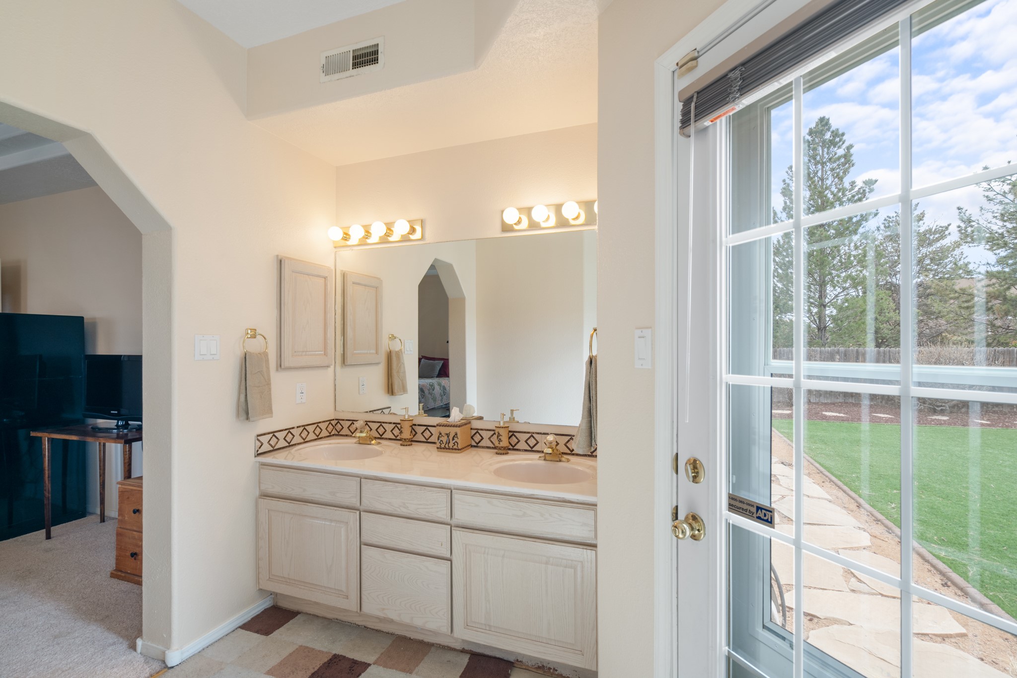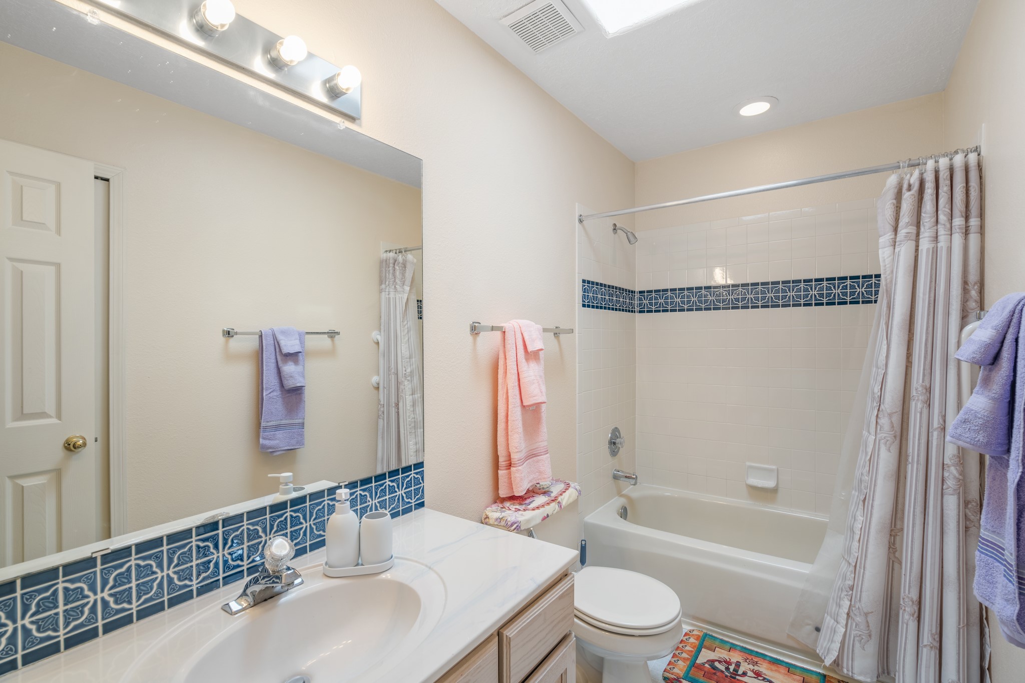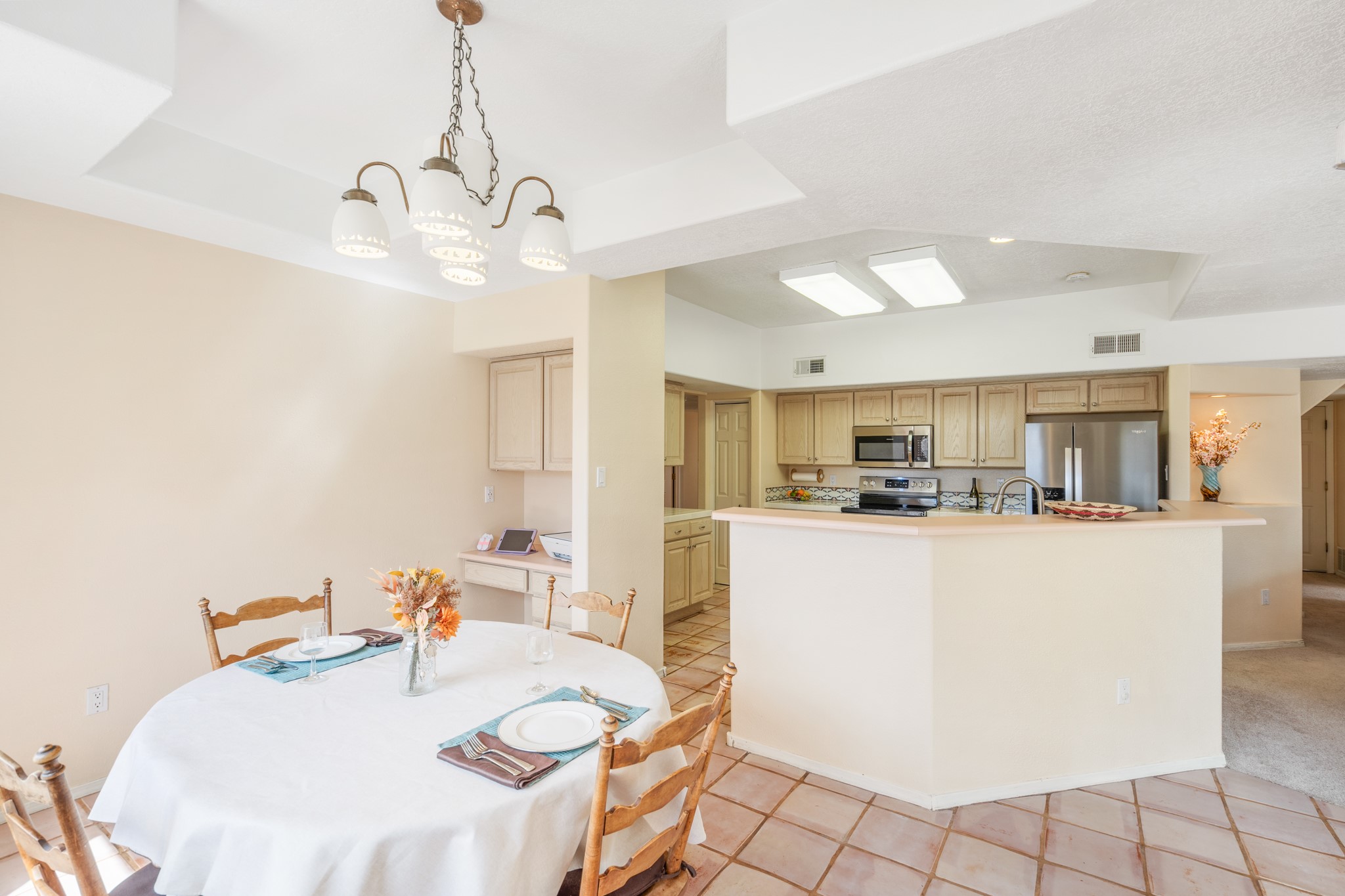 Tucked away in a peaceful cul-de-sac within a desirable gated community, this beautiful 3-bedroom, 2-bathroom home offers the perfect blend of comfort, tranquility, convenience, and modern living. Designed with an open floor plan and abundant natural light, this home feels bright and welcoming.The spacious kitchen is a standout feature, boasting newer appliances, ample counter space, and generous storage--ideal for cooking enthusiasts and entertainers alike. The airy living and dining areas flow seamlessly, creating a welcoming atmosphere for gatherings or quiet evenings at home.Step outside and enjoy the xeriscaped front and back yards, designed for low maintenance and water efficiency. The large backyard is a dream for pet owners, especially dogs, offering plenty of space to run and play. Established fruit trees bring natural beauty and seasonal harvests to your private outdoor retreat. Located in a family-friendly neighborhood, this home offers exclusive access to a private park, perfect for outdoor activities and community events. With easy access to NM 599, commuting and daily errands are a breeze.Additional features include a roof warranty for peace of mind, new dining and family room blinds, a new sliding glass door, a new evaporative cooling system, fresh interior paint, and stucco maintenance.Don't miss this rare opportunity to own a beautiful home in a serene, secure, and welcoming community!