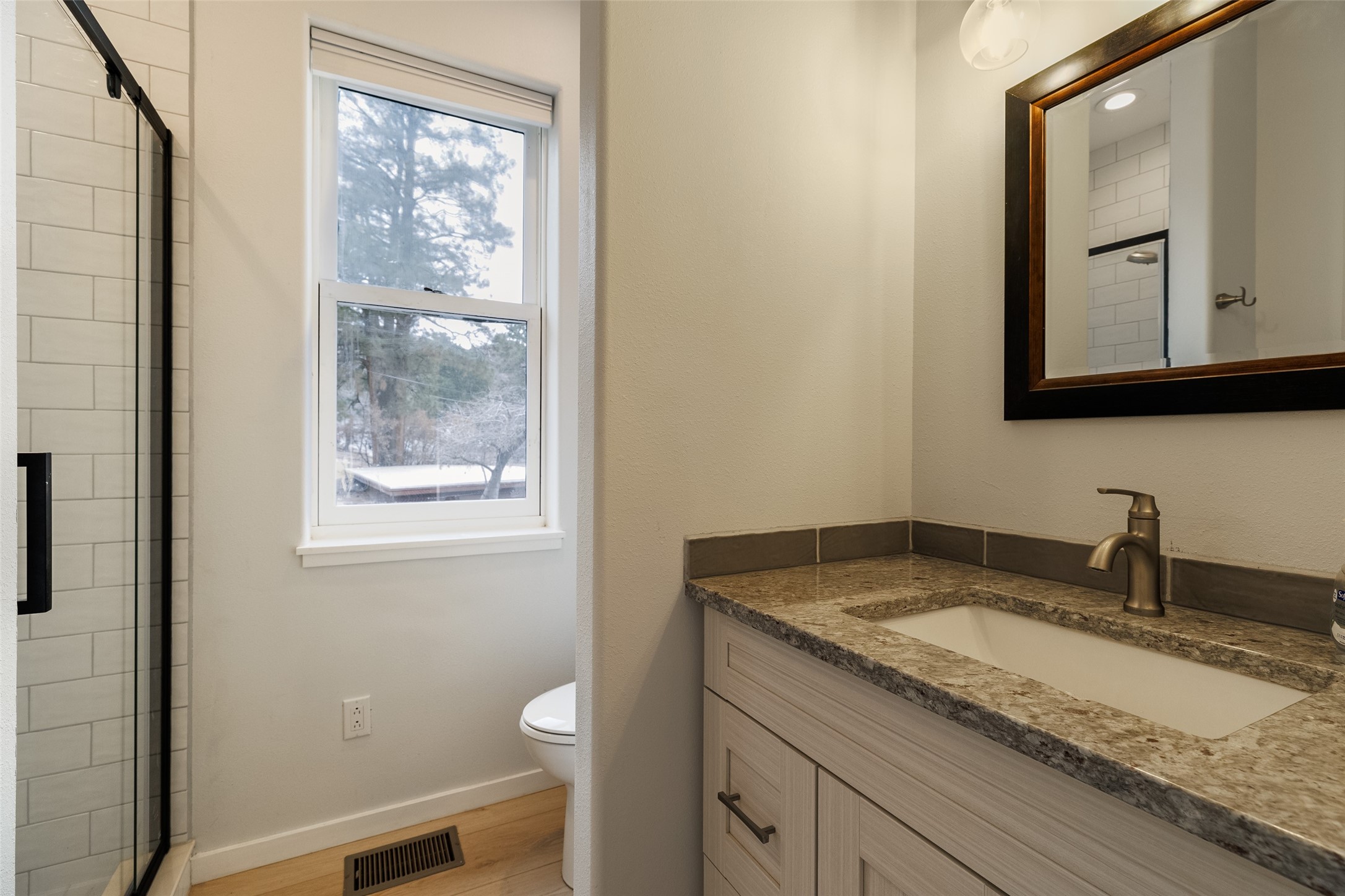 Welcome to this beautiful home completed in 2024 and built by Rob Eaton owner of Home Builders of Los Alamos. Featuring a bright and open floor plan, this home offers 4 bedrooms and 3 bathrooms, making it perfect for comfortable living.Inside, you'll find luxury vinyl flooring throughout, adding both elegance and durability. The kitchen boasts granite countertops, a Sub-zero refrigerator, Bosch stove and cooktop, and an LG dishwasher--all premium appliances for effortless cooking and entertaining.Enjoy the convenience of a Bosch washer and dryer, along with a 50-gallon hot water tank and recirculation system, ensuring hot water is always available. Stay cool in the summer with a refrigerated air conditioning system and cozy in the winter with an efficient forced air heating system.The heated garage is designed for versatility, providing ample space for parking and projects. A large, well-lit storage area at the back adds extra functionality.Situated in a great location, this home is conveniently located between Los Alamos High School and the middle school. Plus, you'll be just minutes from the Los Alamos Golf Course for weekend recreation.Permit for home was pulled in 2019 - construction and occupancy completed in 2024.Don't miss the opportunity to make this exceptional home yours!