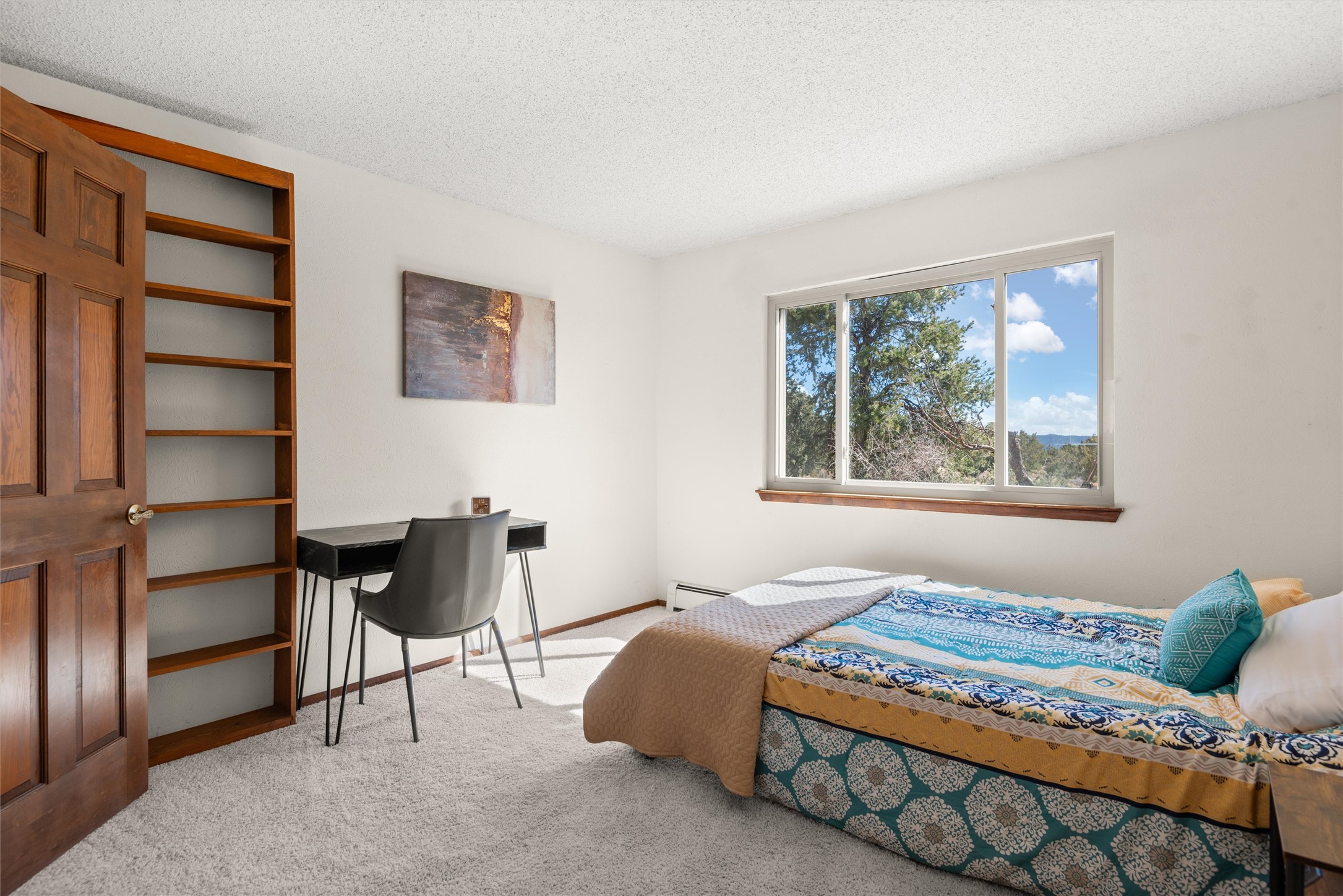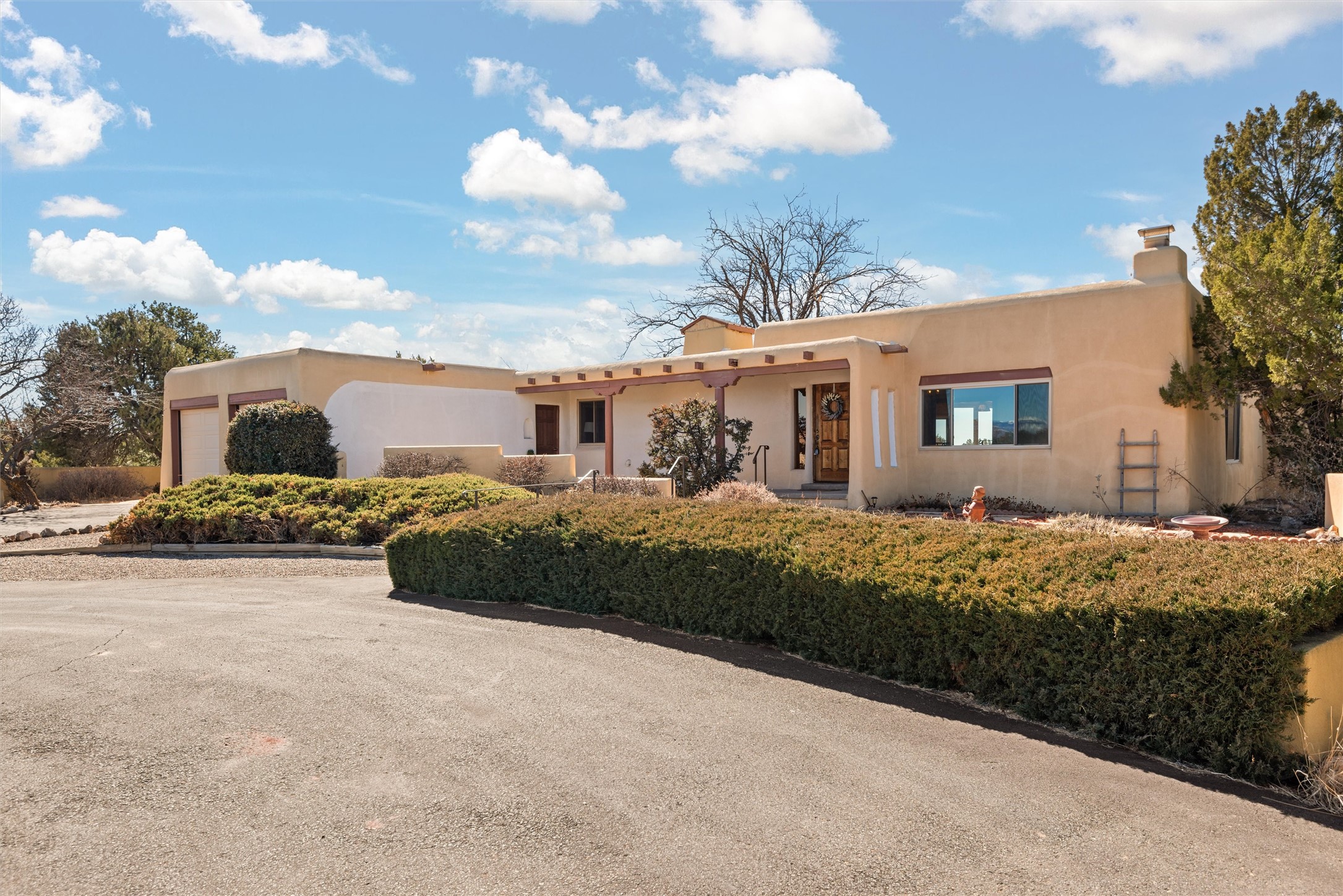Welcome to 102 La Senda where dreams become reality! As you approach the entrance to your very own private residence you will find a spacious driveway and beautifully landscaped entry area. Take a deep breath you're about to enter into this rare pueblo style home with towering 11' ceilings adorned with natural wood vigas including a kiva hearth built right into this living space area. Above the newer tiled floors the dining area boasts traditional lighting from a candelabrum light fixture. Continuing into the home through the double doors that lead you into a warm passive solar sunroom with seating areas featuring floor to ceiling windows facing the west where you can enjoy the dancing colors of the famed NM sunsets in the evenings. Plenty of potential here with space for indoor plants, hot tub and a small pond in the corner. As you gaze into the sunset in the sunroom you can retreat through double doors again into the master bedroom where you will find a en suite bathroom tiled all around including a fully functioning jetted tub. In this private north side area of the home the privacy is astonishing with the south side bedrooms on the opposite side of the home. Let's work our way around the home towards the other sleeping quarters. This area of the home on the south side has two additional bedrooms and a full bathroom which is beautifully tiled from floor to ceiling. As you head back into the living room you will find a 3/4 guest bathroom to accommodate your visitors. This bathroom also features a full walk-in shower with tiled sink area from floor to ceiling. Let's walk into your kitchen where you can't help but notice these natural hardwood floors throughout. This leads into a separate dining area/living space to make your own. Tucked away in this living area is a washer/dryer closet with storage above in cabinets and shelves. Facing towards the east side of the dining room you will find garage access through a separate locking door. As you walk into the garage watch your step! That is where you will find space here for two cars and plenty of built in cabinets for storage. Working your way around the exterior of the house you will find various landscaping with space for planters to grow your very own vegetables or fruits. The rear side of the home has a flagstone patio walled and gated. Take a look around the larger sized lot encompassing over 2.52 acres of space leading as far west as NM4 and North to Piedra Loop. The very size of this private corner lot is astonishing. So so much potential all around the property inside and out! If a large lot in Los Alamos county is your thing don't hesitate to come by and see how vast 102 La Senda really is! Don't forget this space allows for your Equine as well!