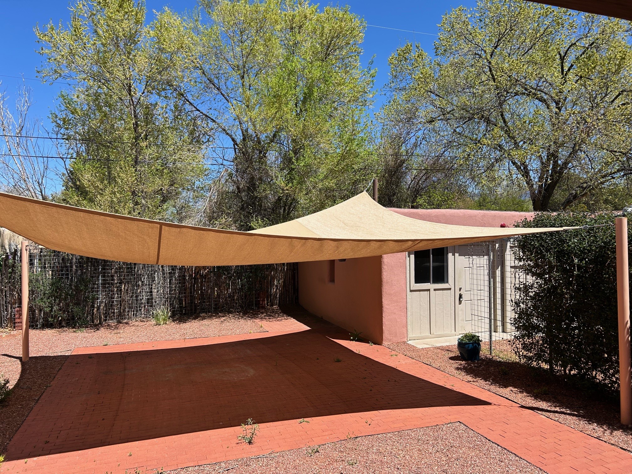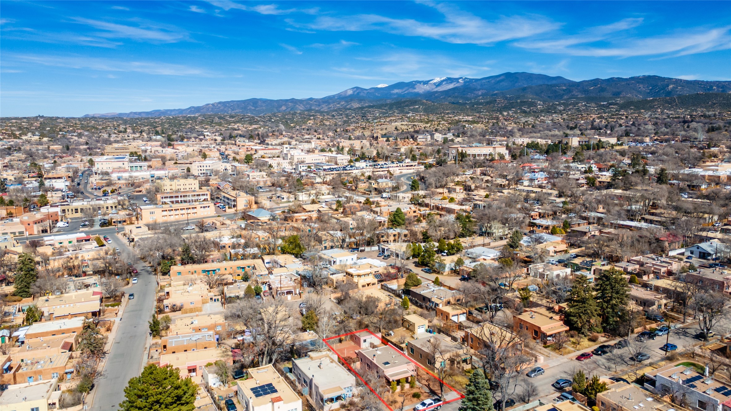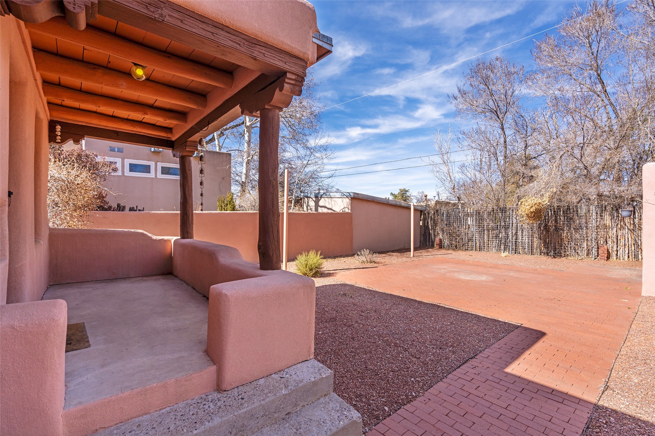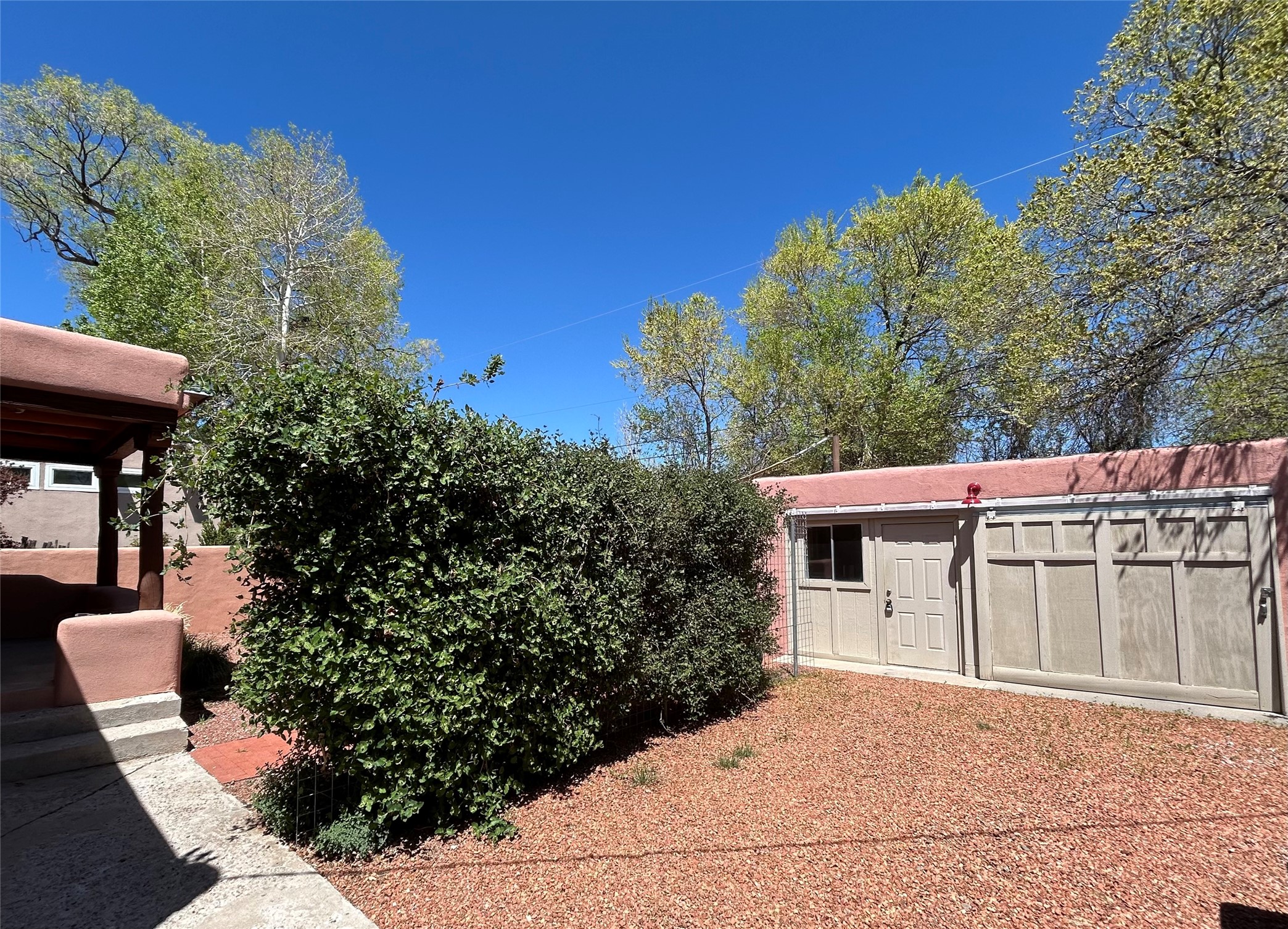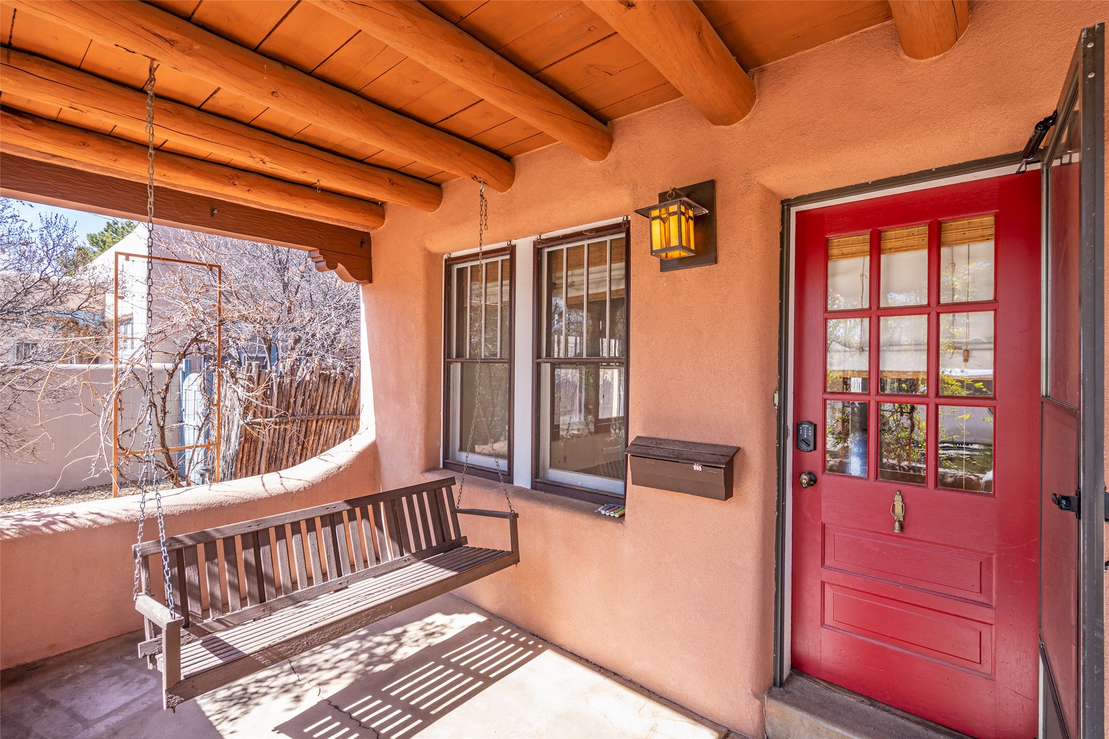 South Capital Charmer. One of the first homes built on Anita Place. Recently professionally staged, this 1726 square foot home has a fresh clean look with the living, dining and two bedrooms professionally re-painted. This gem is on 2 levels. The upstairs level has a total of 2 bedrooms, with one 3/4 bathroom and another 3/4 bathroom in the spacious, finished basement. Updated kitchen and bathrooms. Hardwood floors are in excellent shape. Carpet and tile flooring downstairs. Relax on the front porch swing and or enjoy the spacious back yard. There is also a non heated, 420 square foot detached studio/garage and or workshop. Wonderful location on a quiet street. Less than a mile to the Santa Fe Plaza and the Railyard District.