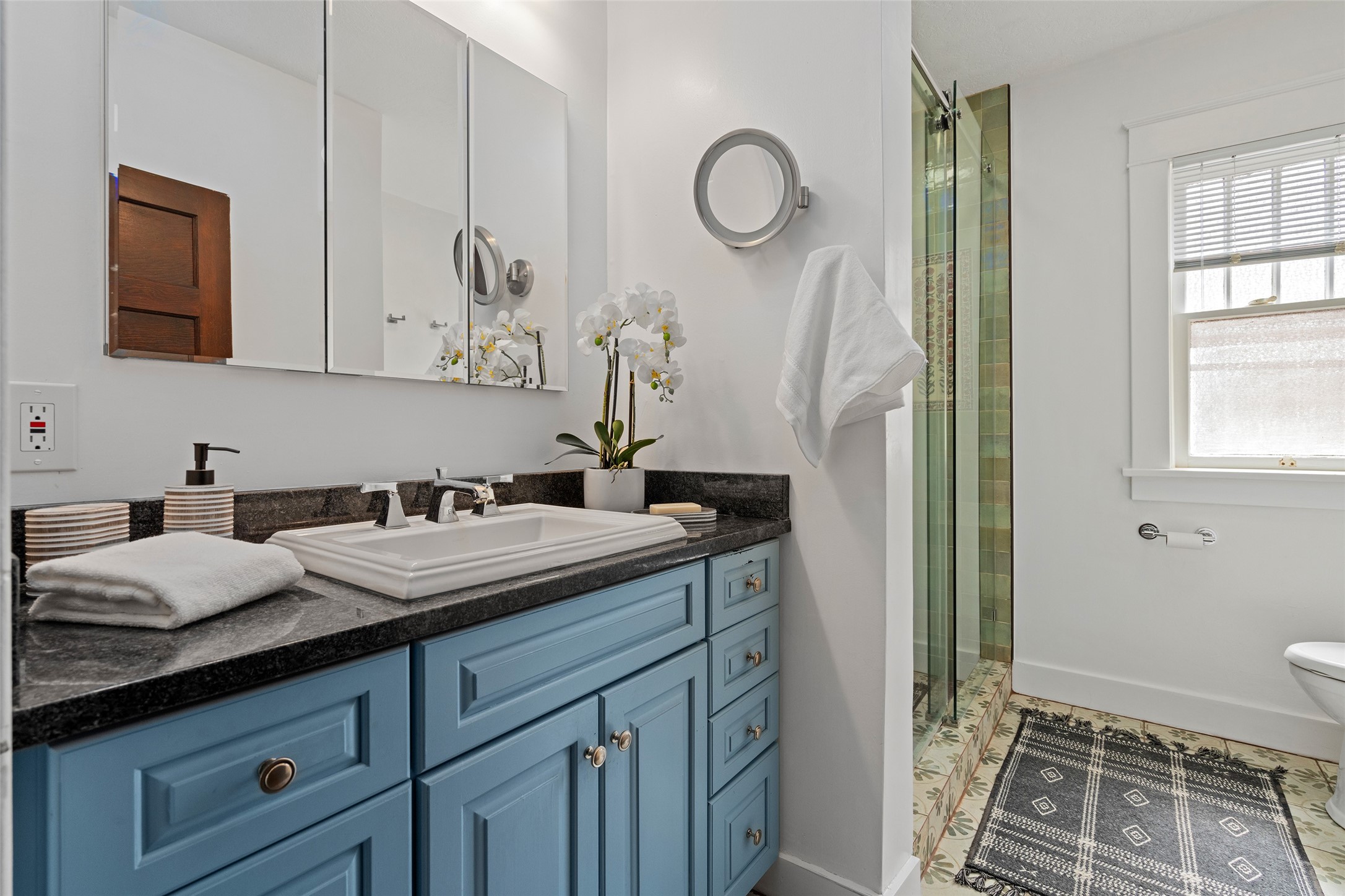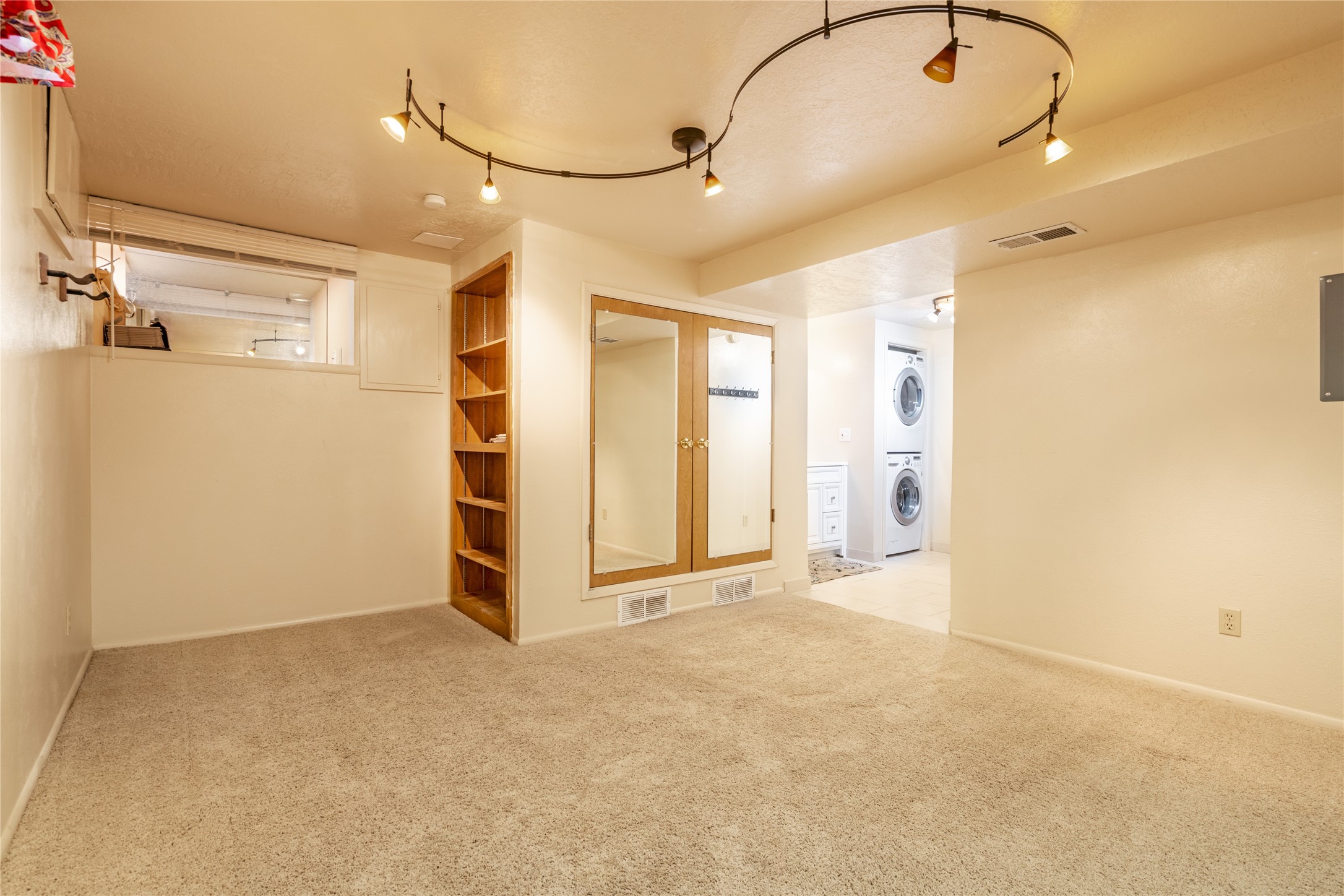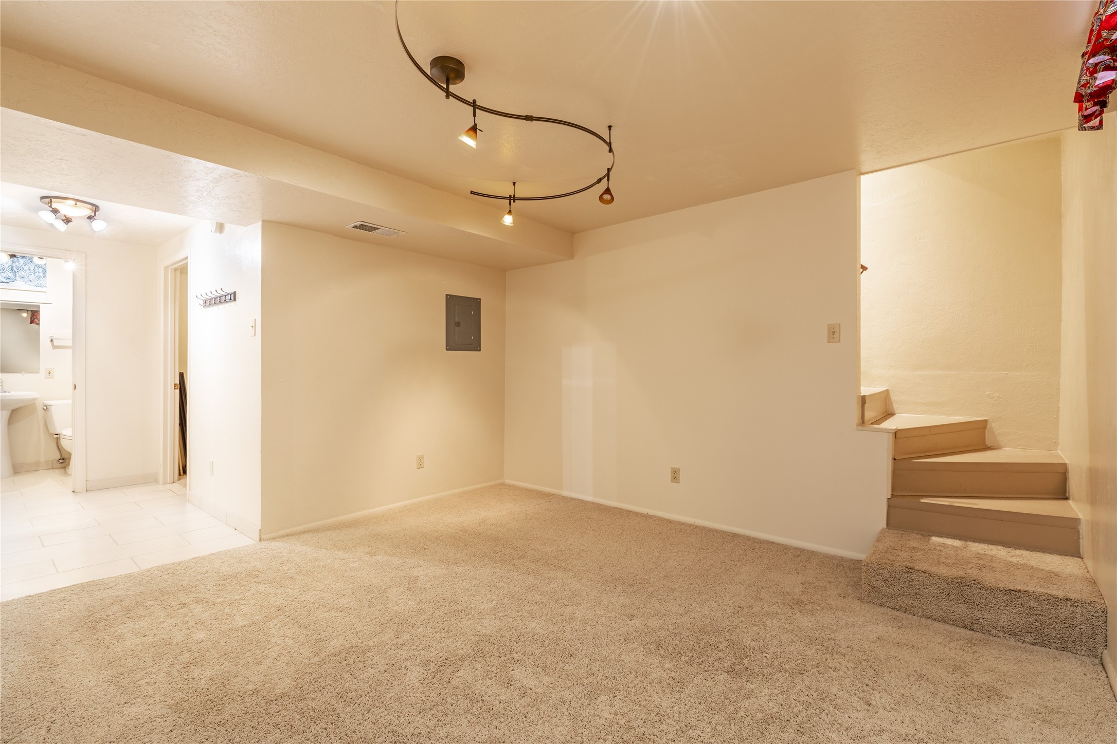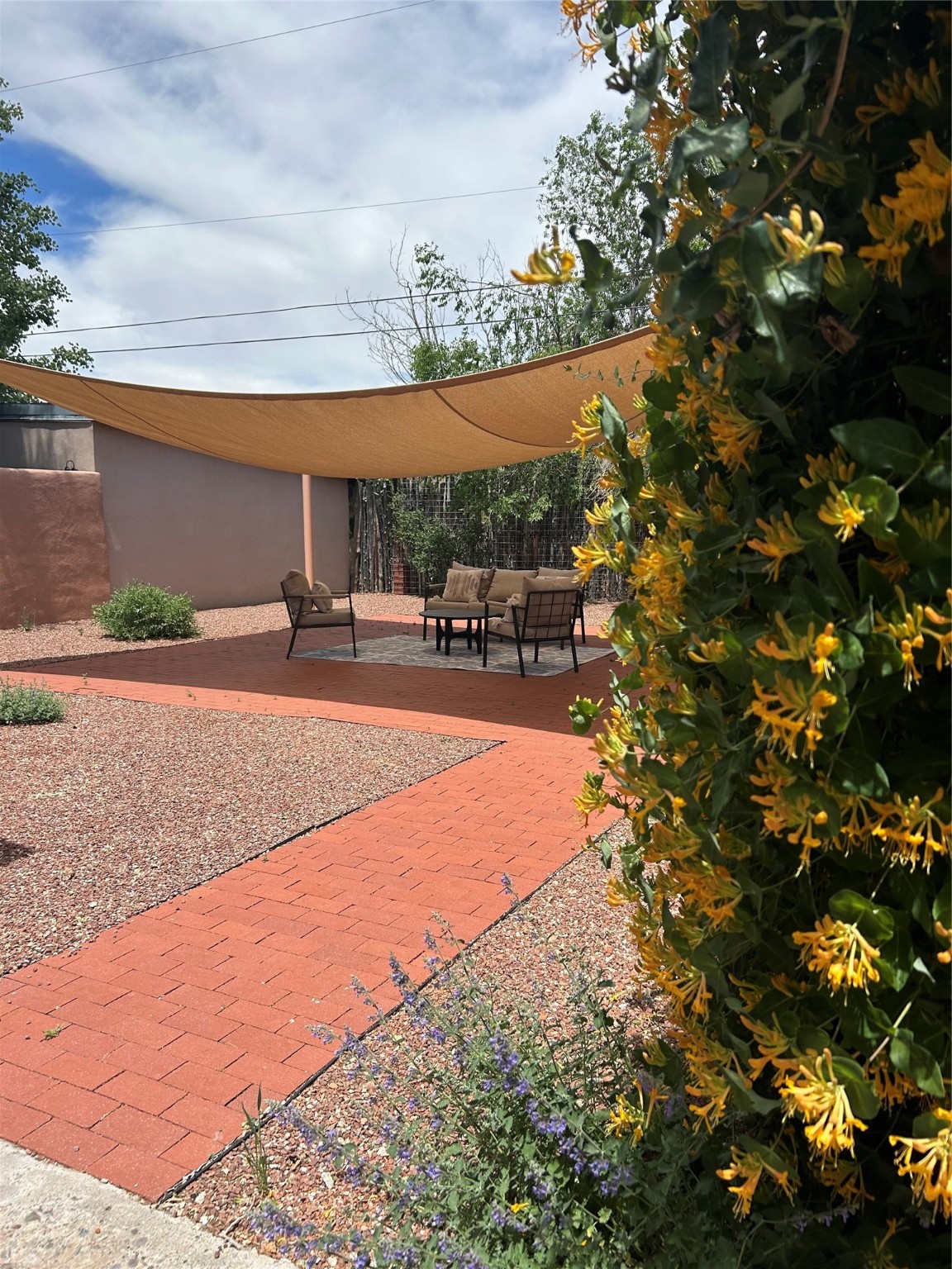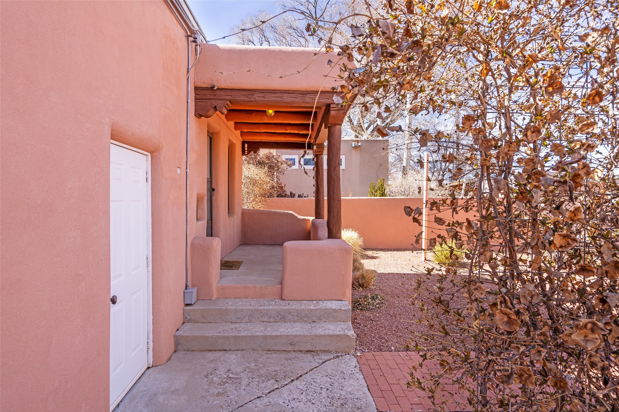 South Capital Charmer. One of the first homes built on Anita Place. Recently professionally staged, this 1726 square foot home has a fresh clean look with the living, dining and two bedrooms professionally re-painted. This gem is on 2 levels. The upstairs level has a total of 2 bedrooms, with one 3/4 bathroom and another 3/4 bathroom in the spacious, finished basement. Updated kitchen and bathrooms. Hardwood floors are in excellent shape. Carpet and tile flooring downstairs. Relax on the front porch swing and or enjoy the spacious back yard. There is also a non heated, 420 square foot detached studio/garage and or workshop. Wonderful location on a quiet street. Less than a mile to the Santa Fe Plaza and the Railyard District.