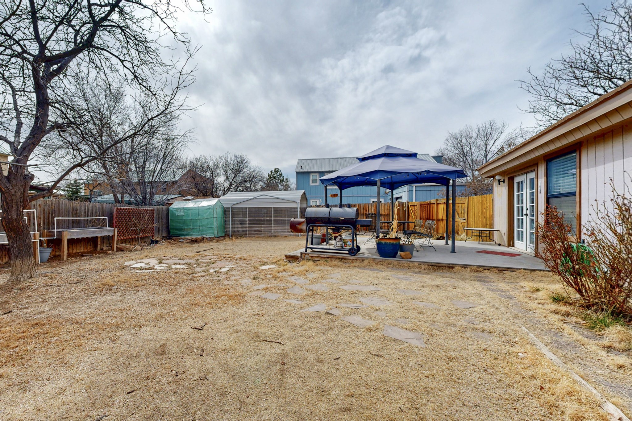Sellers are feeling motivated! This Chapman home has so much to offer with its spacious, versatile floorplan. Four bedrooms, 3 bathrooms, a main living room, separate den space with wood burning fireplace and expansive loft (with a closet) that can double as a 5th bedroom, office or hobby room. The possibilities are endless with a separate entry to the 4th bedroom with attached 3/4 bath. This addition is the perfect opportunity for a mother-in-law suite or a future income possibility. The home sits on a corner lot in a cul-de-sac and offers a larger yard than most, including a fenced area and doggie door for pets to help keep your main yard tidy and ready for summer fun and barbecues. This home offers plenty of parking with an attached 2 car garage that includes shelving and pegboards to get organized, as well as a side parking space leading into the backyard with an anchored carport and an 8'x8' shed. The landscape is mature and offers two peach trees and one apple tree in the backyard as well as lilac bushes and well-established bulbs and vinca ground cover in the front. Entertaining is easy with French doors opening to the gazebo-covered deck and large backyard, and lots of sun-filled days with maximum sun exposure for your container garden or morning coffee on the patio. Welcome home!