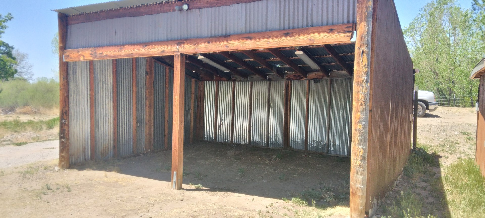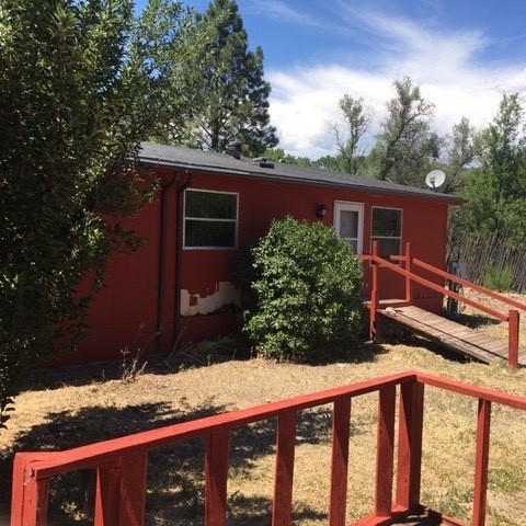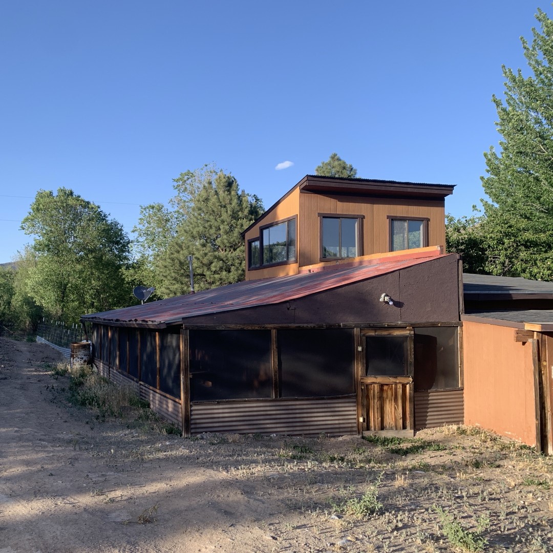 Two homes,ideally located in Velarde, NM were built in 1986. The two-story home features 2 bedrooms / 1 bath and the manufactured 3 bedrooms/2 bath. Each has a large covered porch. The main house also has a large exterior deck. Totalscreened porches and deck=1120 sq '. The property is fenced with orchard, pasture/garden area and shed with attached workshop.There are 3 additional smaller storage sheds, one metal,one adobe,(once the pumphouse)and one woodframe attached to guesthouse. The 2-stall carport/workshop is centrally located. Rio Grande is 300' away for fishing and birding.The property has Water Right bordering the Acequia.a goldmmine There are two 250 gallon propane tanks owned. propane heat and wood stove. LOCATED 1/2 WAY-30 min. between Santa Fe and Taos and 10 min to Commercial Ctr. at Espanola. The manufactured has cathedral ceilings, while the guesthouse has 360 view of the mesas and massive rivertrees with its 360 surround windows.