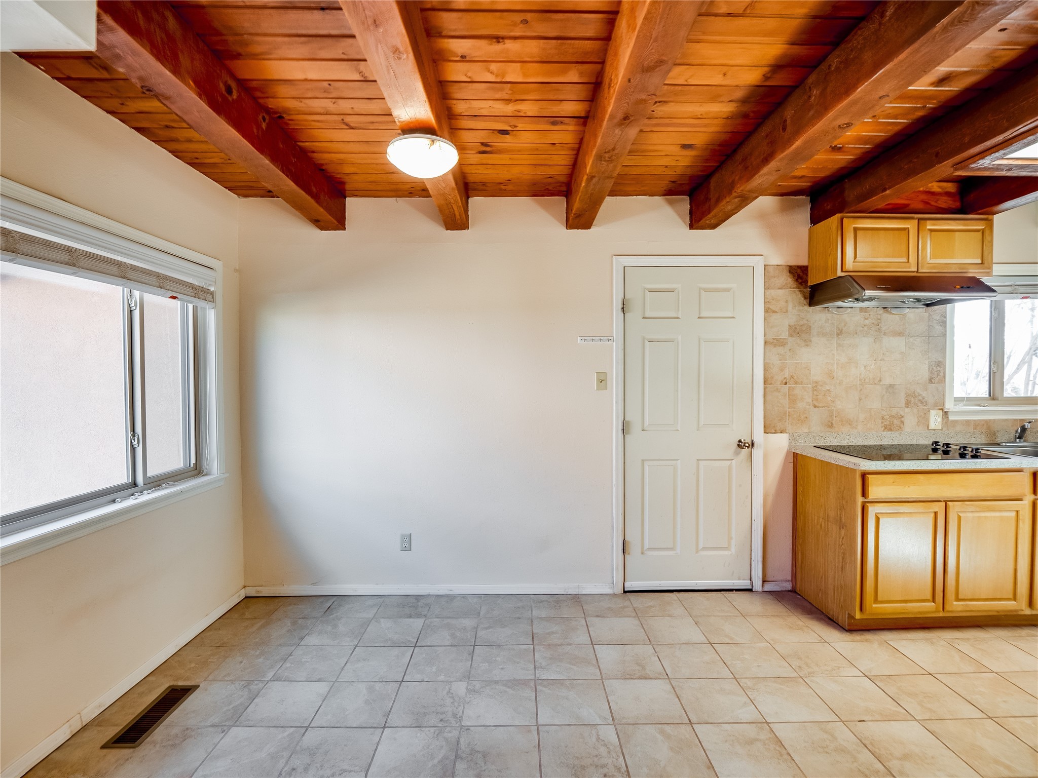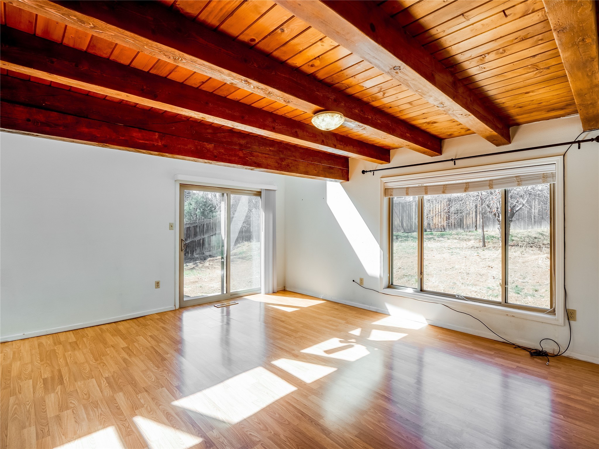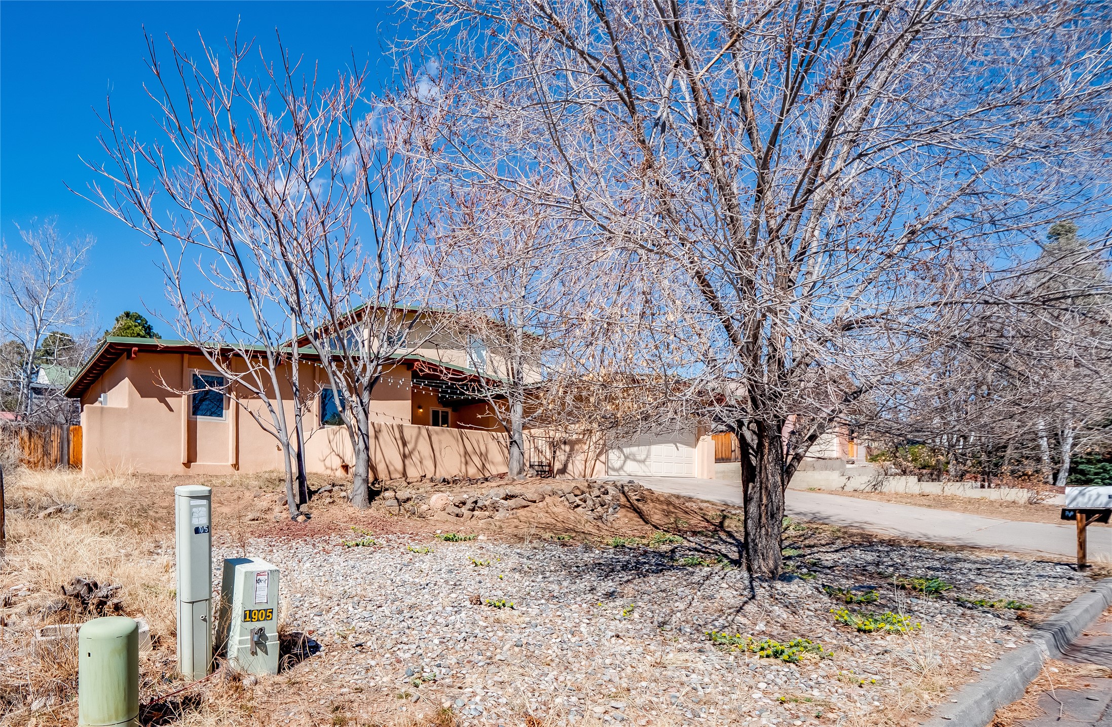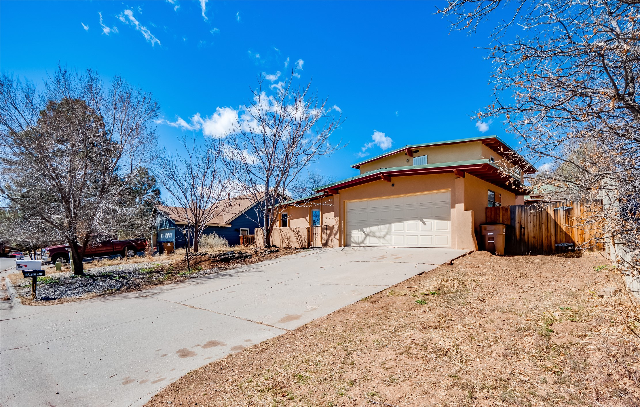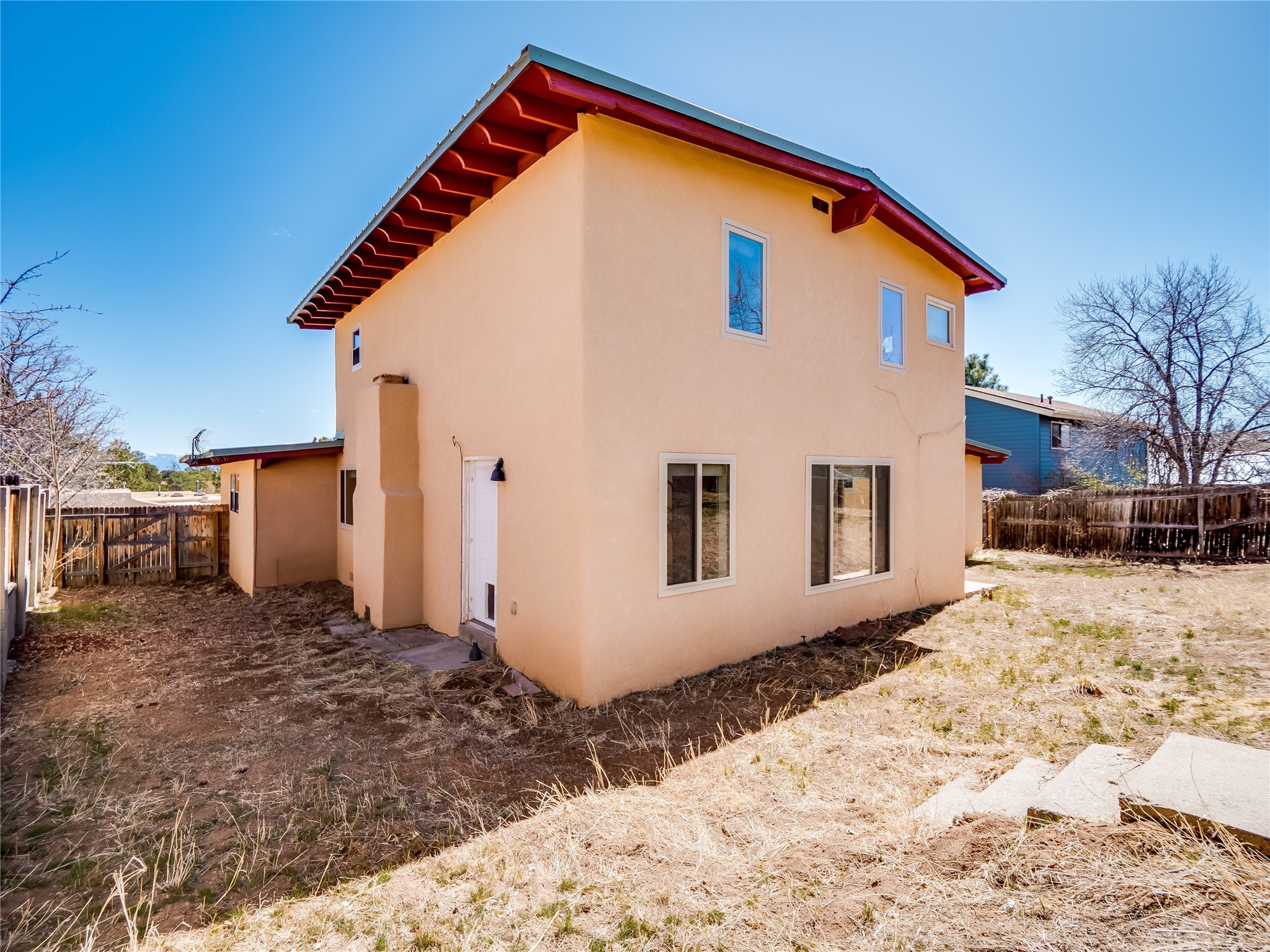 Located in a North Mesa neighborhood, this charming two-story home offers a perfect blend of warmth and character. A low-maintenance front yard with mature trees and a gated front courtyard welcomes you into this inviting residence. Once inside you'll find wood laminate floors that flow throughout the home, complemented by vaulted wood-beamed ceilings and large windows that fill the space with natural light. To the left, a versatile bonus room/den awaits. The bright and airy living room features a partial dropped wood-beamed ceiling that extends into the main living areas, along with sliding doors that lead to the backyard. Adjacent to the living room is another cozy bonus space--ideal for an office or reading nook--with access to the side yard. The intimate dining area is perfectly situated next to the kitchen and features a deep storage closet for added convenience. The kitchen boasts rich wood cabinetry, tile floors, a stylish tiled backsplash, a stainless steel refrigerator, and a brand-new electric cooktop. An additional open space in the kitchen offers the flexibility for a dining nook or a coffee or beverage bar. From here, you'll also find access to the two-car garage. Down the hallway, a guest bath, a spacious guest bedroom, and a guest en-suite provide comfortable accommodations for family and visitors. The conveniently located laundry room adds to the home's practical design. Upstairs, another guest bedroom awaits, along with the expansive primary en-suite, which features double walk-in closets and a well-appointed bath with dual sink vanities and a tiled shower/tub combination. The home has seen significant updates in 2017, including a new metal roof, stucco, windows, garage door, hot water heater, and furnace, offering peace of mind and energy efficiency. The large fenced-in backyard features mature fruit trees and ample space to design your dream outdoor oasis. Close to schools, parks, horse stables, and scenic trails, this unique home could be yours!