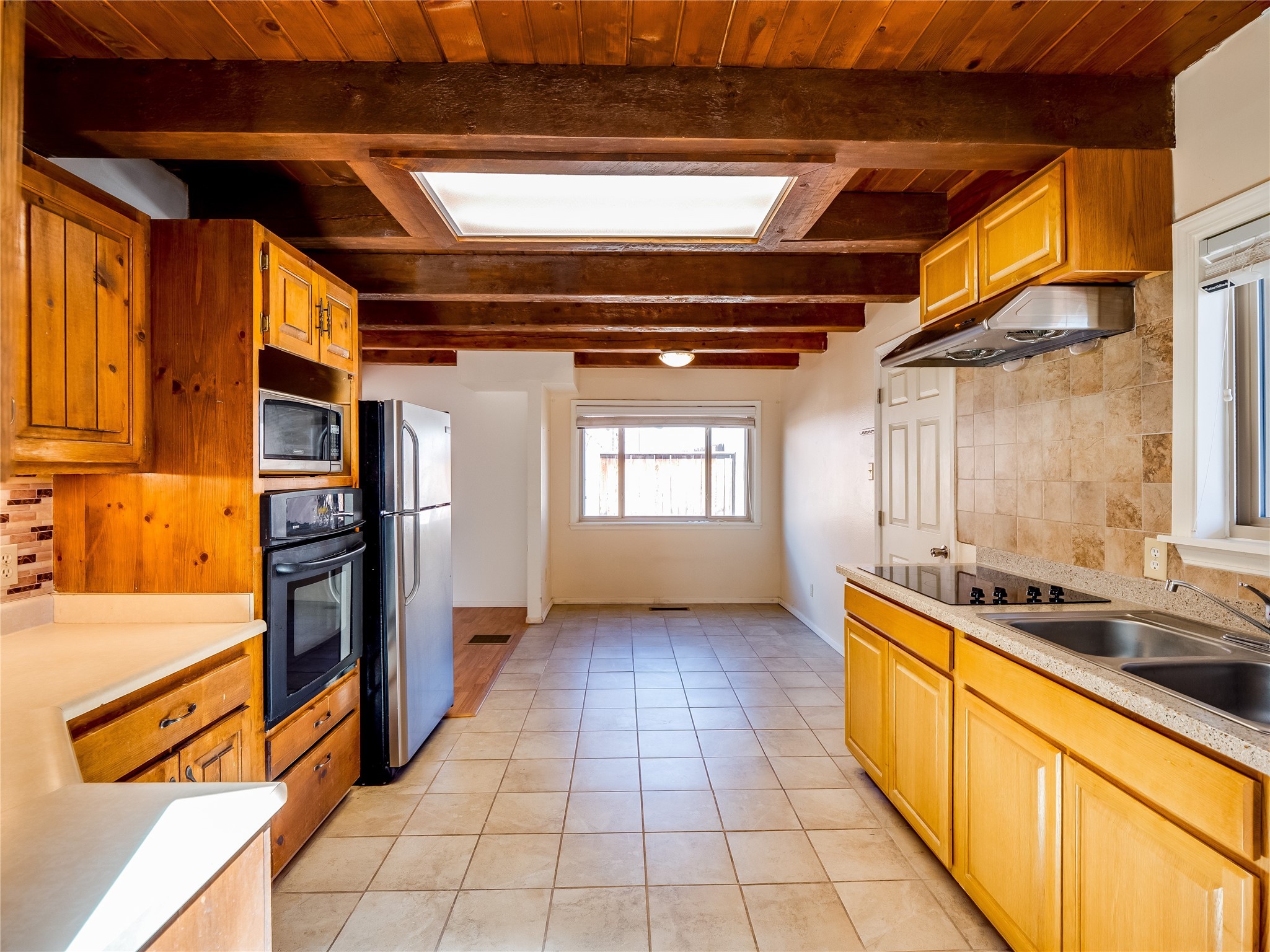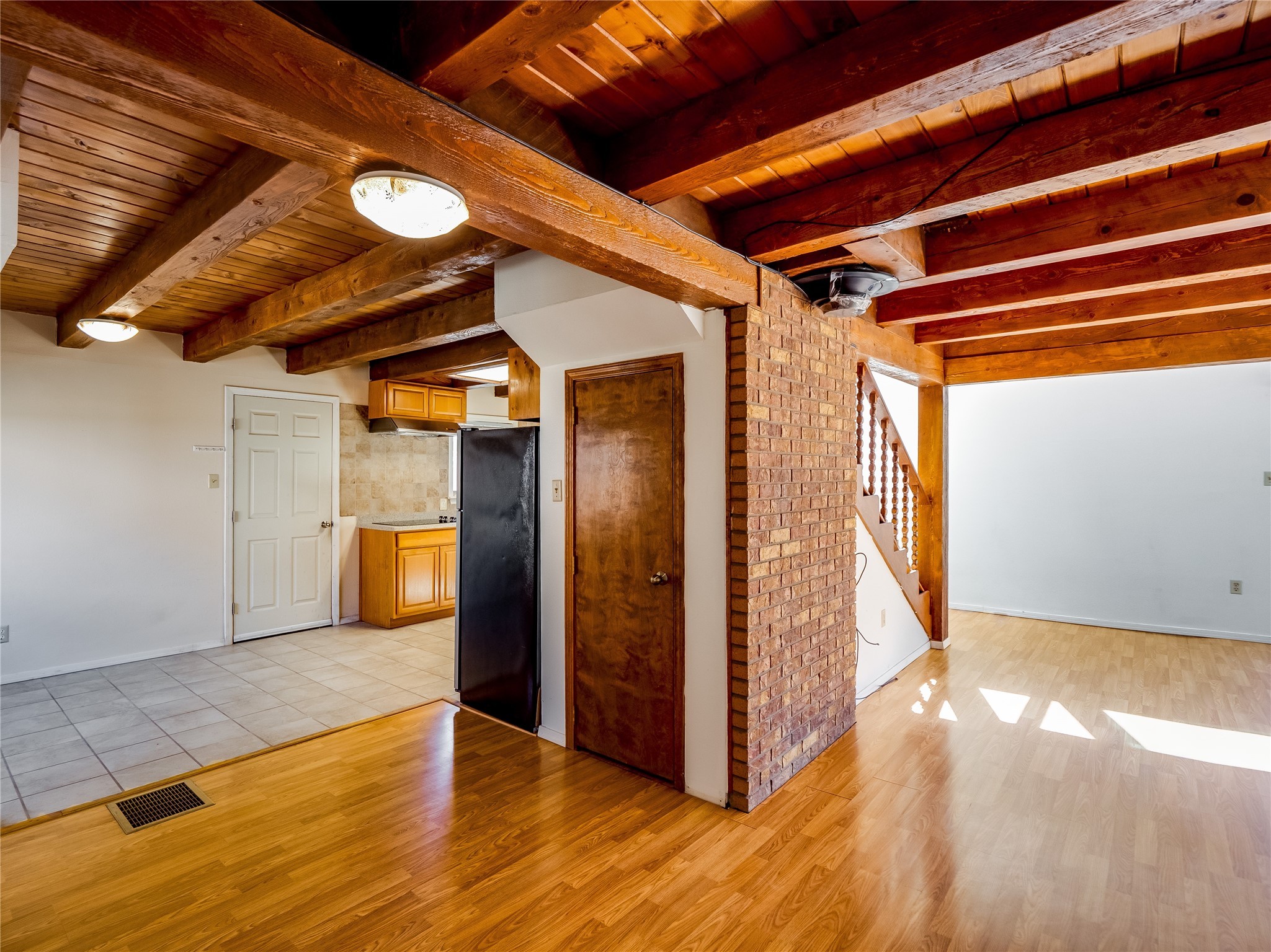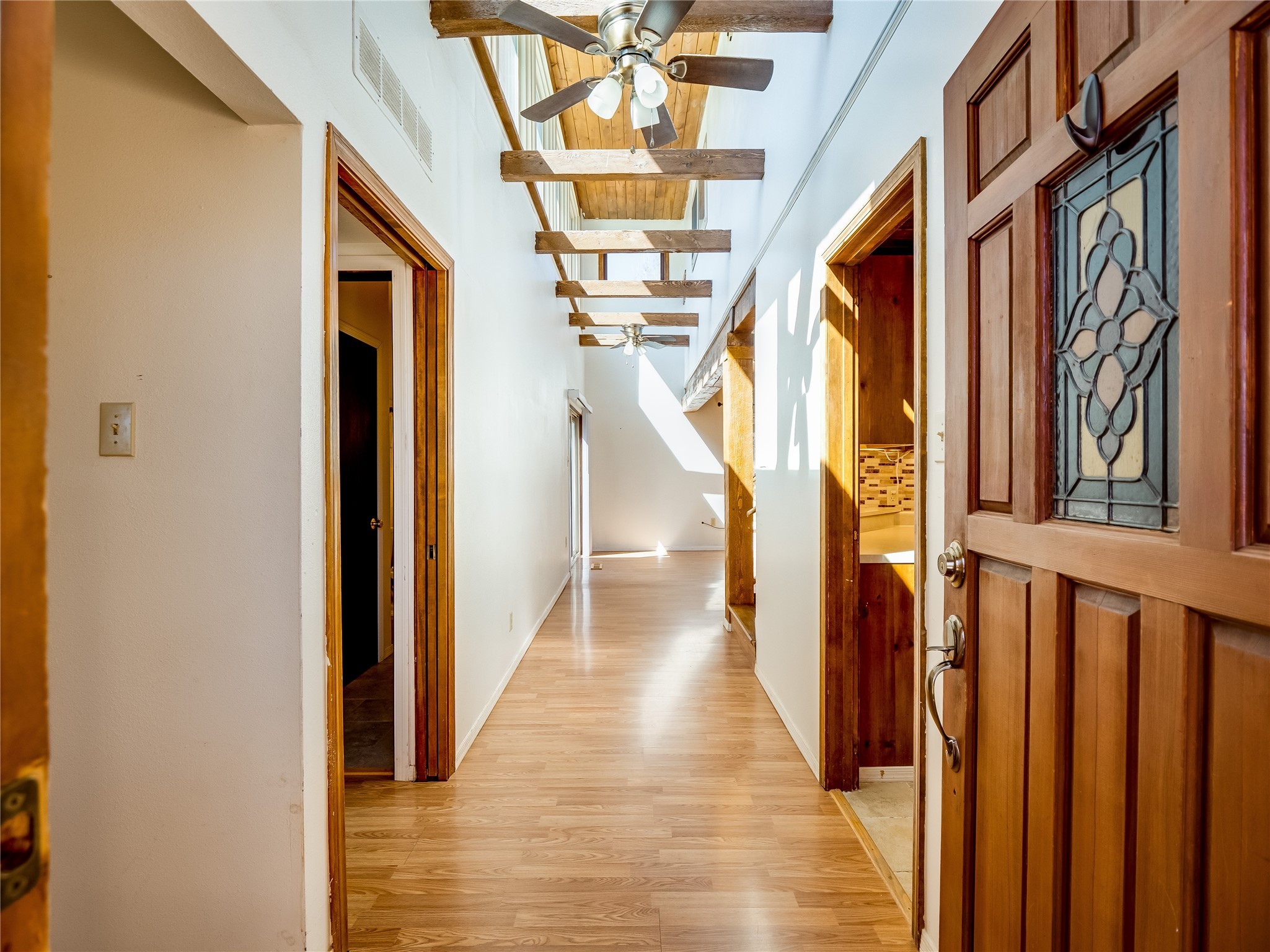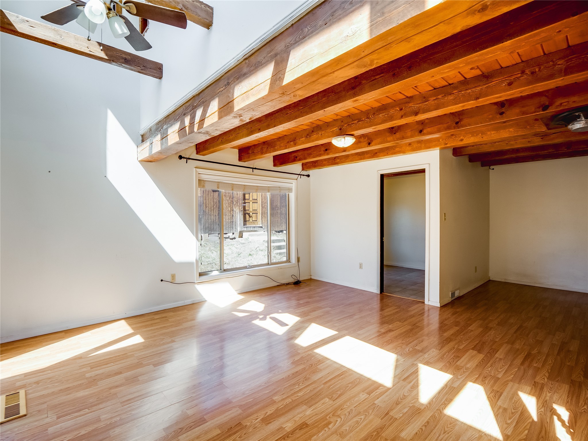 Located in a North Mesa neighborhood, this charming two-story home offers a perfect blend of warmth and character. A low-maintenance front yard with mature trees and a gated front courtyard welcomes you into this inviting residence. Once inside you'll find wood laminate floors that flow throughout the home, complemented by vaulted wood-beamed ceilings and large windows that fill the space with natural light. To the left, a versatile bonus room/den awaits. The bright and airy living room features a partial dropped wood-beamed ceiling that extends into the main living areas, along with sliding doors that lead to the backyard. Adjacent to the living room is another cozy bonus space--ideal for an office or reading nook--with access to the side yard. The intimate dining area is perfectly situated next to the kitchen and features a deep storage closet for added convenience. The kitchen boasts rich wood cabinetry, tile floors, a stylish tiled backsplash, a stainless steel refrigerator, and a brand-new electric cooktop. An additional open space in the kitchen offers the flexibility for a dining nook or a coffee or beverage bar. From here, you'll also find access to the two-car garage. Down the hallway, a guest bath, a spacious guest bedroom, and a guest en-suite provide comfortable accommodations for family and visitors. The conveniently located laundry room adds to the home's practical design. Upstairs, another guest bedroom awaits, along with the expansive primary en-suite, which features double walk-in closets and a well-appointed bath with dual sink vanities and a tiled shower/tub combination. The home has seen significant updates in 2017, including a new metal roof, stucco, windows, garage door, hot water heater, and furnace, offering peace of mind and energy efficiency. The large fenced-in backyard features mature fruit trees and ample space to design your dream outdoor oasis. Close to schools, parks, horse stables, and scenic trails, this unique home could be yours!