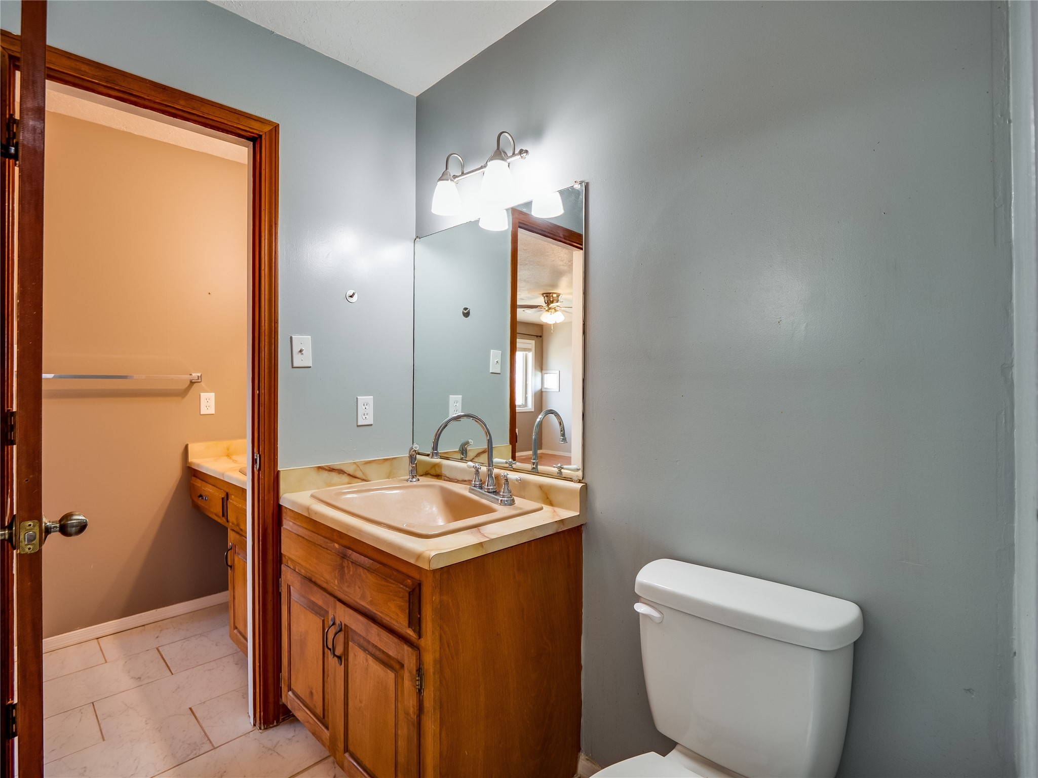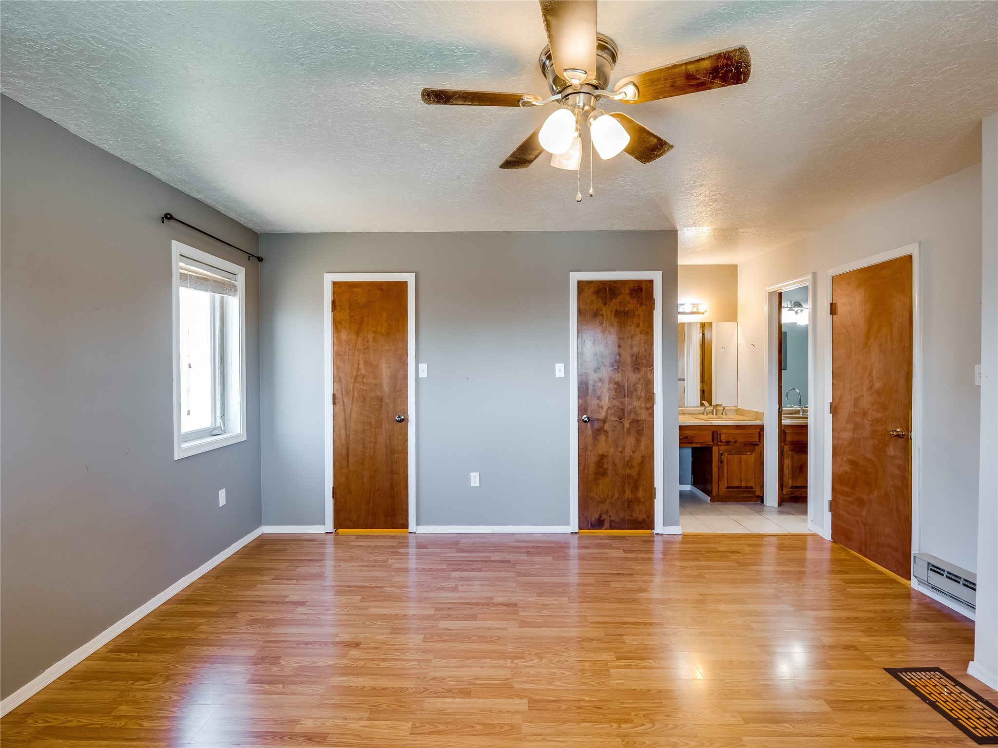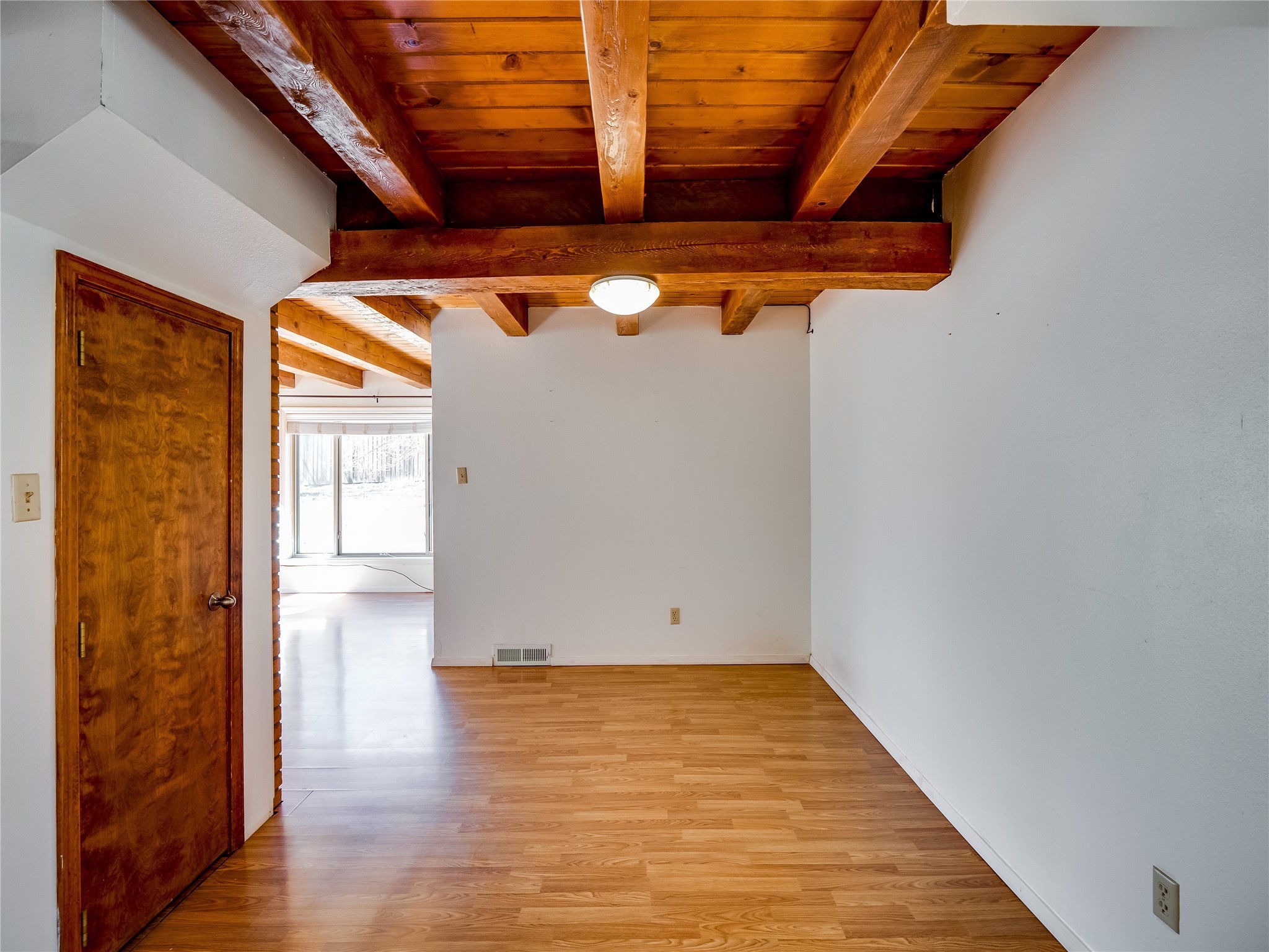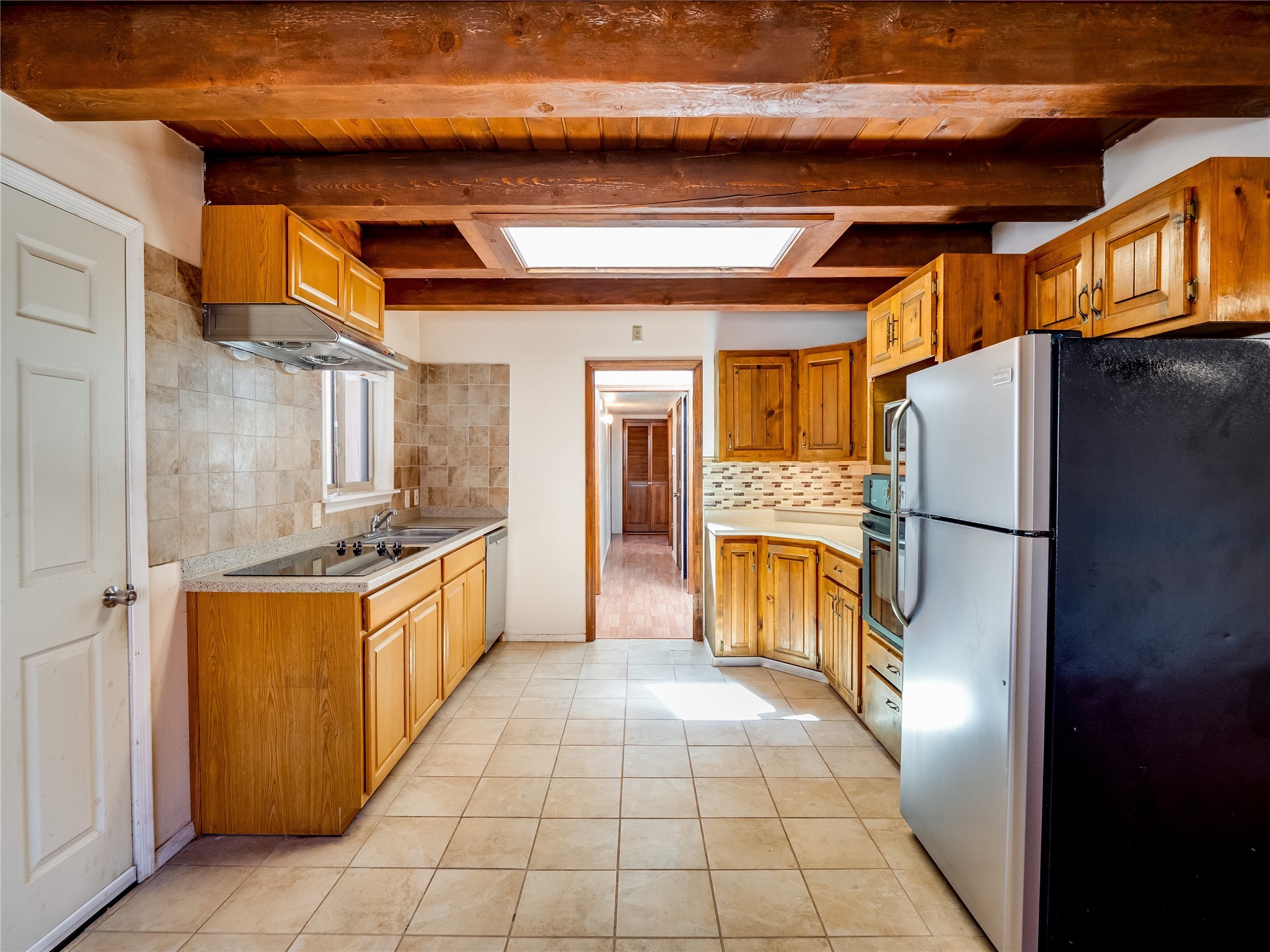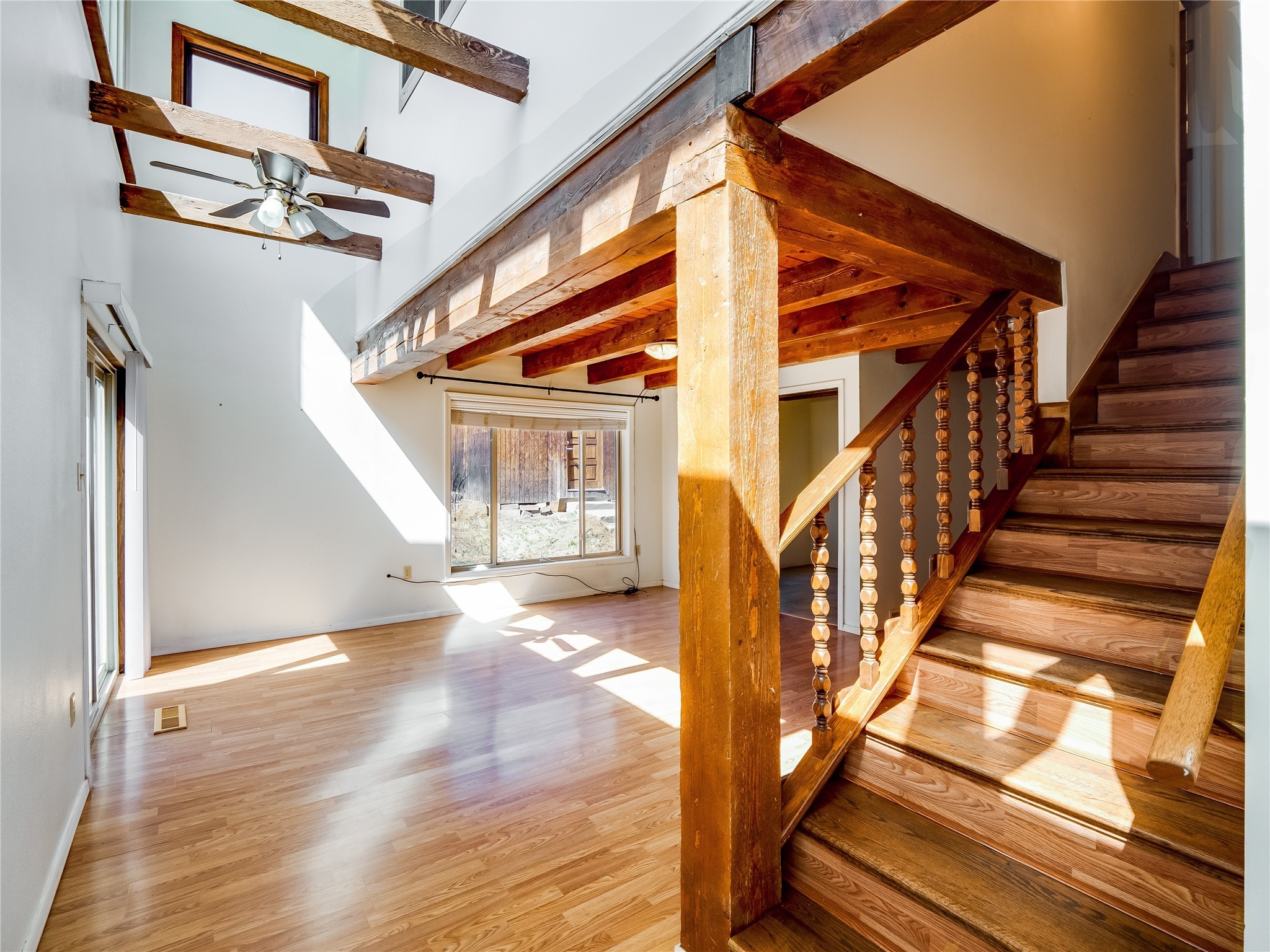 Located in a North Mesa neighborhood, this charming two-story home offers a perfect blend of warmth and character. A low-maintenance front yard with mature trees and a gated front courtyard welcomes you into this inviting residence. Once inside you'll find wood laminate floors that flow throughout the home, complemented by vaulted wood-beamed ceilings and large windows that fill the space with natural light. To the left, a versatile bonus room/den awaits. The bright and airy living room features a partial dropped wood-beamed ceiling that extends into the main living areas, along with sliding doors that lead to the backyard. Adjacent to the living room is another cozy bonus space--ideal for an office or reading nook--with access to the side yard. The intimate dining area is perfectly situated next to the kitchen and features a deep storage closet for added convenience. The kitchen boasts rich wood cabinetry, tile floors, a stylish tiled backsplash, a stainless steel refrigerator, and a brand-new electric cooktop. An additional open space in the kitchen offers the flexibility for a dining nook or a coffee or beverage bar. From here, you'll also find access to the two-car garage. Down the hallway, a guest bath, a spacious guest bedroom, and a guest en-suite provide comfortable accommodations for family and visitors. The conveniently located laundry room adds to the home's practical design. Upstairs, another guest bedroom awaits, along with the expansive primary en-suite, which features double walk-in closets and a well-appointed bath with dual sink vanities and a tiled shower/tub combination. The home has seen significant updates in 2017, including a new metal roof, stucco, windows, garage door, hot water heater, and furnace, offering peace of mind and energy efficiency. The large fenced-in backyard features mature fruit trees and ample space to design your dream outdoor oasis. Close to schools, parks, horse stables, and scenic trails, this unique home could be yours!