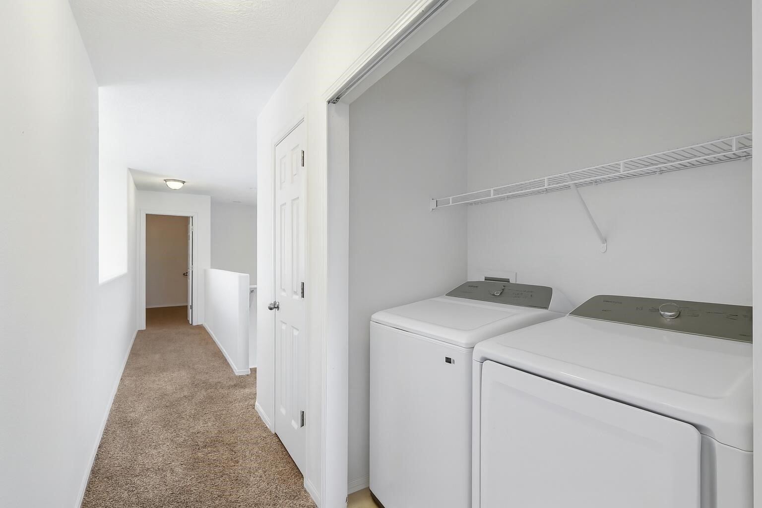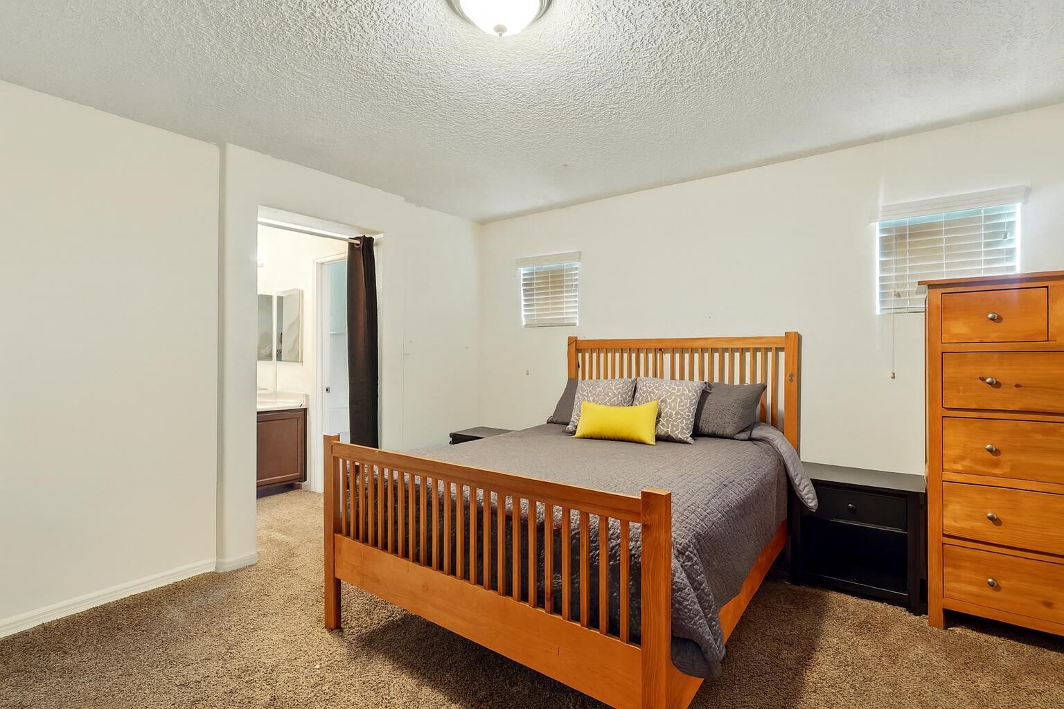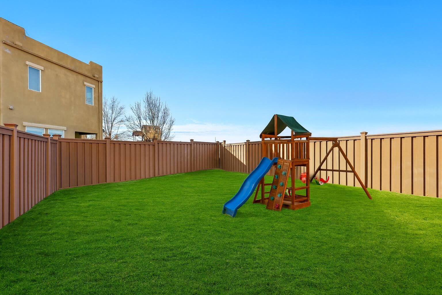 Discover this charming home in Turquoise Trail, Santa Fe! Featuring 3 bedrooms, 2 with en suite baths, plus a convenient downstairs half-bath. Dishwasher and range replaced May 2024. Microwave replaced March 2025. New carpet was installed 4/25/2025. The garage has been temporarily converted into a second living area but can easily be restored. Enjoy a prime location near I-25 and a community with private parks, playgrounds, and ample guest parking. Opportunity knocks. Will you answer?