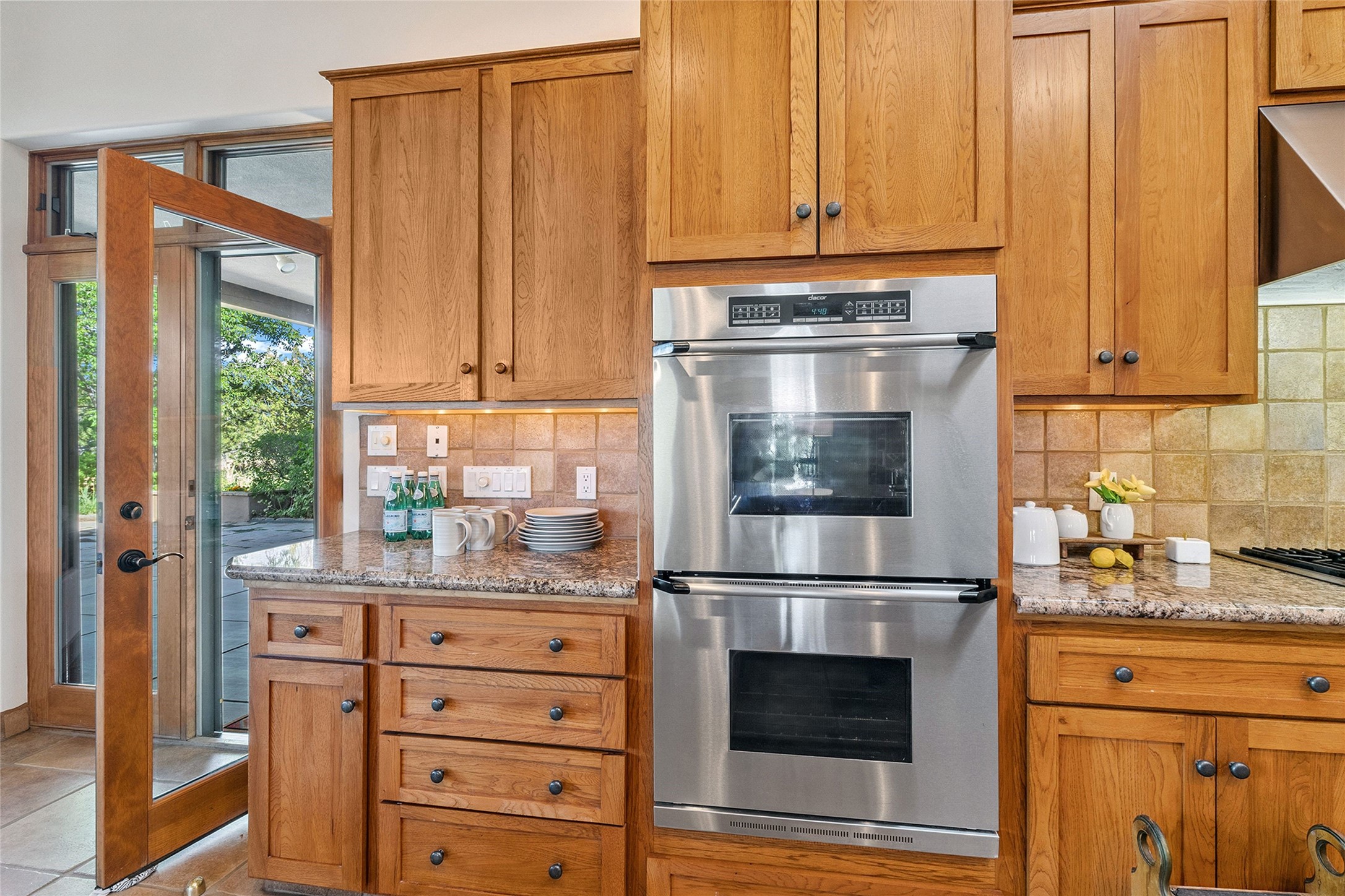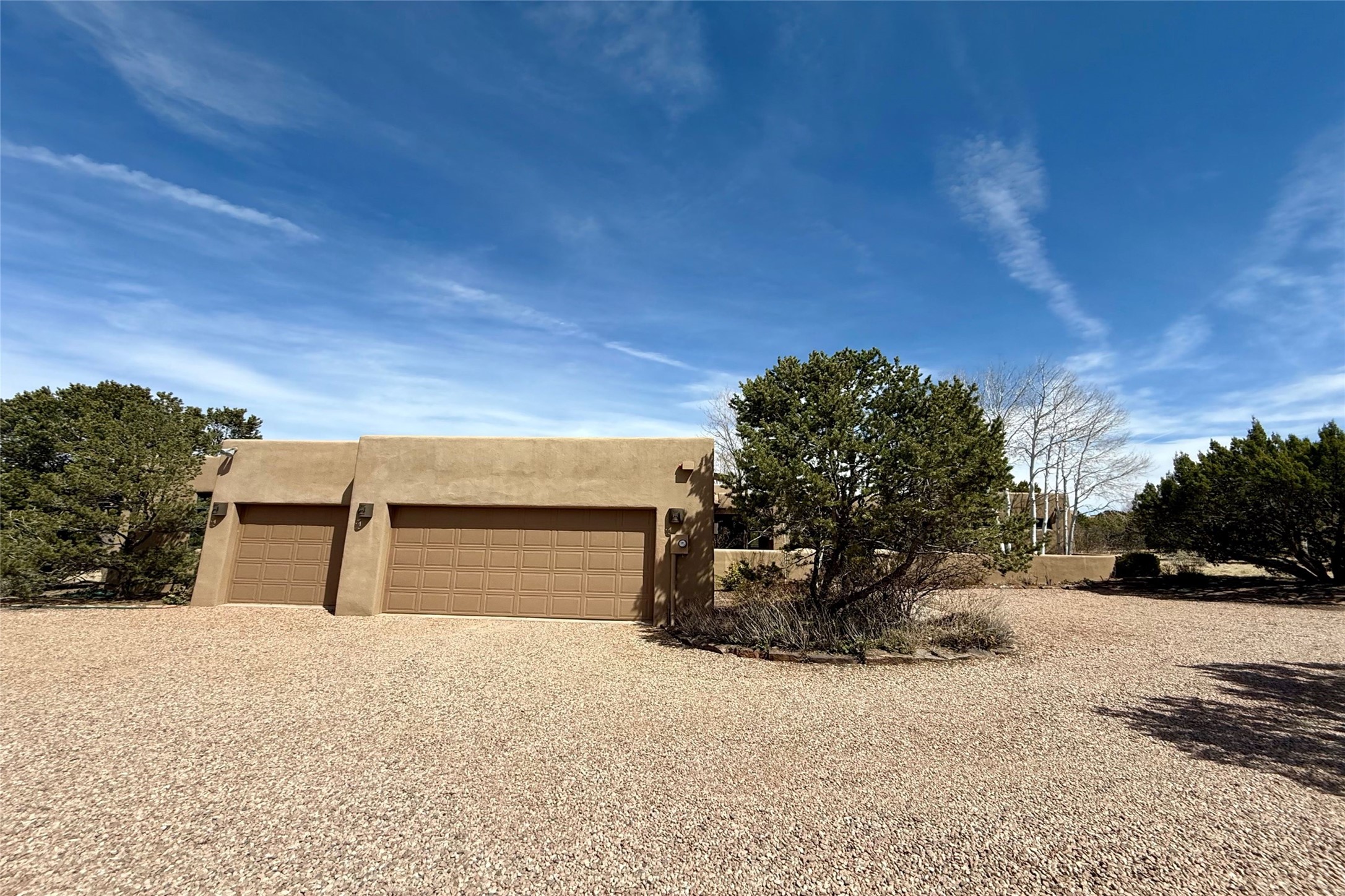Welcome to 5 Estates Drive, an exciting home with stunning Sangre De Cristo Mountain views and a rare, flexible floor plan, featuring 4 bedrooms plus an attached studio and a heated 3-car garage. Located within the famed community of Las Campanas and sited for maximum privacy and serenity, on a 2-acre view lot, this exceptional single level home impresses with captivating design features and quality craftsmanship. Located within close proximity to the iconic Santa Fe Plaza and The Club at Las Campanas, this extraordinary home offers the ultimate blend of modern design, with the inherent warmth of an iconic Santa Fe home. Design highlights include a welcoming formal living room directly off the front entrance, with framed mountain views and an expansive casual living room with soaring ceilings, rich beams, view windows, a grand fireplace and custom built-in shelving. Ideal for entertaining, the beautifully appointed chef's kitchen with a wraparound breakfast bar, opens to the casual living room and breakfast dining area, with direct access to the outdoor dining area, built-in Viking BBQ and vast outdoor entertainment areas and gardens. The owner's suite delights with views, fireplace, backyard access and a spacious bath with a soaking tub, walk-in shower and a large walk-in closet. Adjacent to the owner's suite is an ideal office or guest bedroom, with an adjacent bath complete with a steam shower. Separate from the main living areas are 2 additional, guest bedrooms which share bath. The attached heated studio is accessed through the garage, complete with a utility sink and built-in shelving. The outdoor living experience is one of the finest, ideal for large gatherings, gardening or simply to just enjoy the vibrant gardens, fountains, surround aspens and pure tranquility. The owner's Equity Social Membership to The Club at Las Campanas is available for purchase on a separate bill of sale. This one is not to be missed and is move-in ready, just in time for summer!