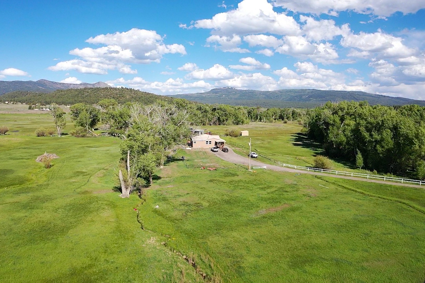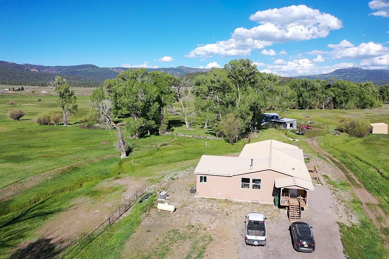 Looking for a very private and end of the road farm? Welcome to Brazos Valley Home and Farm. Lush green pastures with 25 (+,-) ACRES OF WATER RIGHTS INCLUDED, beautiful views, abundant wildlife, a spacious home with room for livestock and horses come with this very unique 28+ acre farm. Located 10 minutes south of Chama, NM within Rio Arriba County. Elevation is approx. 7350'. Entrance to the property is on Hwy 84 via a gated and private gravel road shared with less than a handful of neighbors. The 5 bedroom 3.5 bath home is 2800+ sq. ft. and has 2 living areas, a large kitchen, separate laundry/mudroom, raised ceilings, tiled wet areas, carpeted bedrooms, walk in closets, ceiling fans, refrigerated AC, wood burner and forced air heat, pro panel (snow load) roofing. Utility services include a private well and septic system, propane gas and public electricity and a Back Up Generator. Additional improvements include covered hay and equipment storage, a small workshop and covered pen for livestock. Irrigation water is provided from the Brazos River via a "Private Irrigation ditch". Twenty Five acres of Adjudicated Water Rights will convey with the property. Currently the farm is planted in Timothy Hay and produces roughly 2000 ea., 65# bales per season. Hay income is estimated at $20,000+ per year. This area generally provides one cut per season, typically early fall. Wildlife visiting the farm on a daily basis include plenty of elk and lots of mule deer. The current owners have applied for 2025 season EPlus Landowner Elk permits. Certainly this property would qualify and rate at the top of the scoring program with food, cover, water and frequency. 2025 season Elk permits issued will convey w/ the property. Recreation within the area is some of the best New Mexico has to offer! Hunting, fishing, hiking and boating are all within minutes of the property. Santa Fe, NM is a 1.5 hr commute to the south and Pagosa Springs, Co is a brief 1 hr drive north.