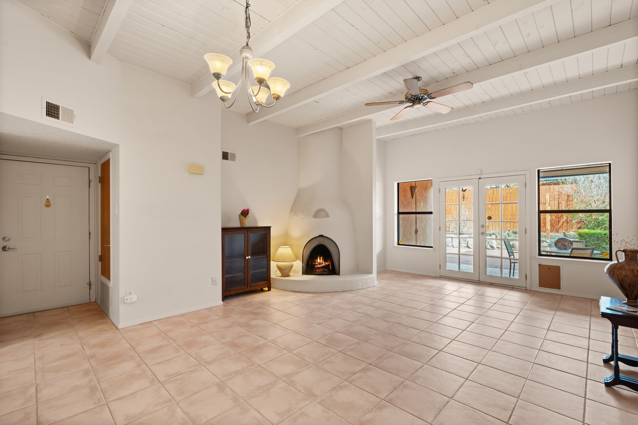 Welcome to 2986 Camino Piedra Lumbre, a stunning Santa Fe oasis! This impeccably designed home showcases traditional Santa Fe-style architecture with modern amenities. Step inside to discover a light-filled living space with stunning vistas and a cozy fireplace, perfect for relaxing evenings. The well-appointed kitchen features plenty of cabinets and ample counter space. Retreat to the spacious primary suite with an en-suite bath, and enjoy the tranquil outdoor space, complete with beautiful landscaping and a private patio for entertaining. Located in a vibrant community near cultural sites, shopping, and dining, this home perfectly blends luxury and convenience. Don't miss out--schedule your showing today!