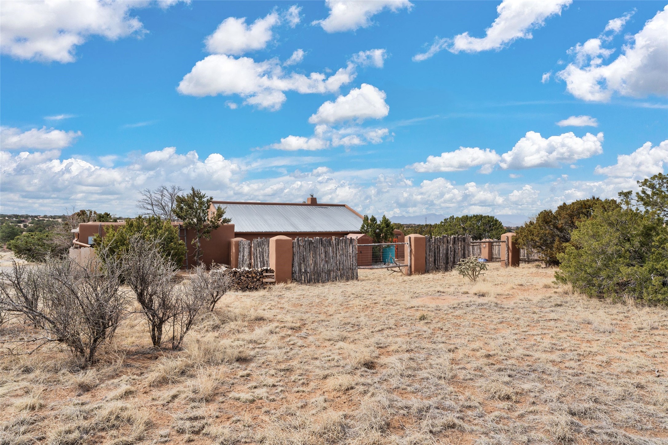 Happy, light and bright adobe designed by award-winning architect Beverley Spears and built by Rational Alternatives. This darling traditional passive solar home has trombe walls, deep window sills and charm galore! Bedrooms have vaulted, planked ceilings with clerestory windows. Mostly brick floors with some hardwood. Oversized heated one-car garage has studio/workshop space and a generous closet for storage. Three splits provide heating and air conditioning. Sited high on a cul-de-sac to maximize the wonderful mountain views. Two steps up to bedrooms. Walled front courtyard and generous and fully fenced backyard. NO CARPET. Radon mitigation in place. Super sweet and ready to go!