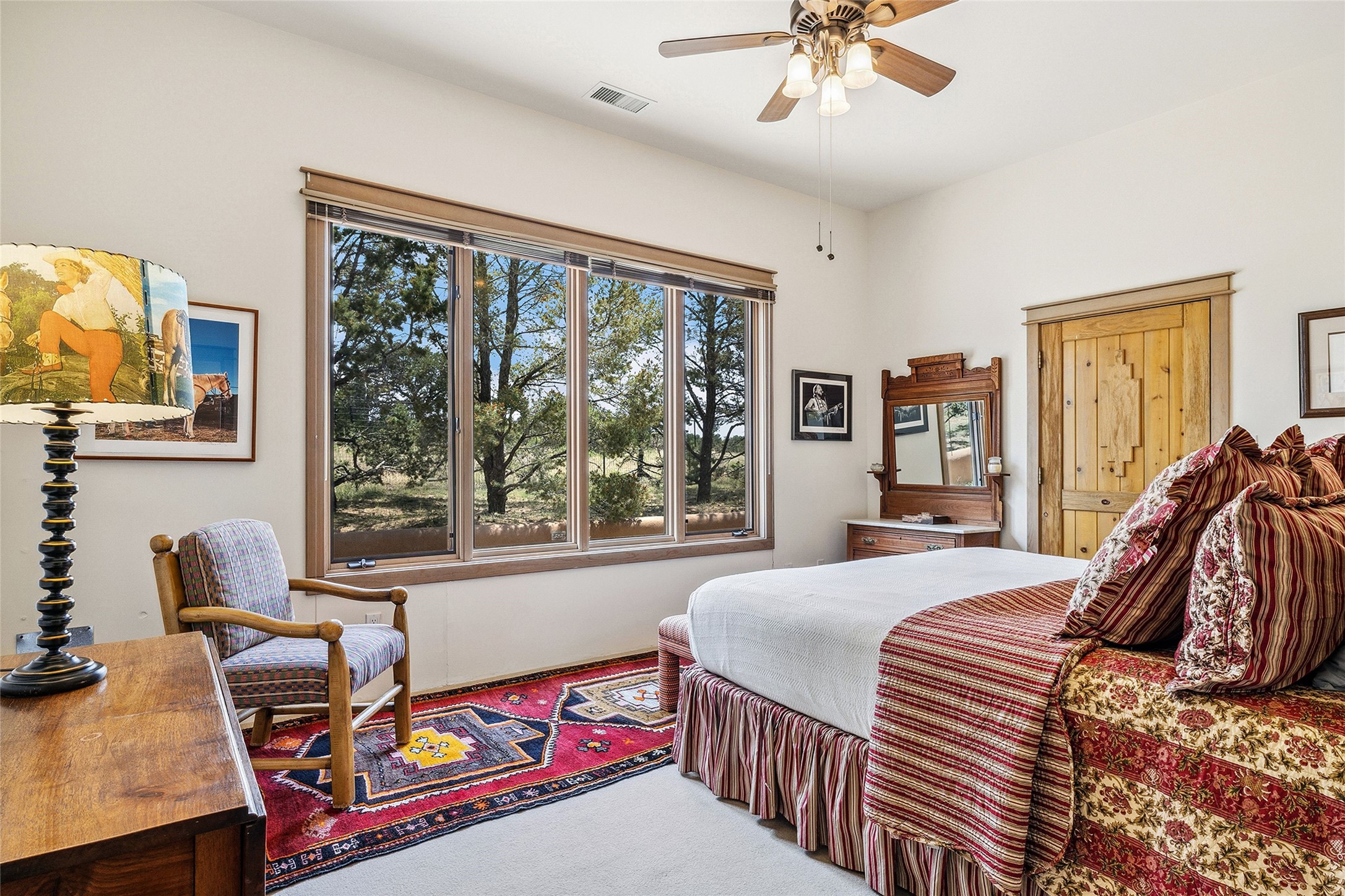 One of the most majestic estates in all of Santa Fe, this rare, exceptional compound impresses with TWO separate homes, (4) lots with 10+ acres total, (2) wells, a 3-stall barn and absolutely stunning Sangre Mountain views! This extraordinary estate excites and captivates with two impressive, separate homes, (6) garage spaces total, a stable with flexible use of space and some of the most magical and lush grounds found anywhere in Santa Fe, all within a 10-minute drive to the historic Santa Fe Plaza. The main house impresses with 4,919 square feet, inherent warmth and an expansive ranch-style porch which overlooks the fenced pastures and Sangre De Cristo Mountain views. The second home delights with 3,697 square and an open-concept design, ideal for large gatherings. This estate must be seen to fully appreciate the rarity of this land, the incredible homes and the opportunity to own one of the most iconic estates in all of Santa Fe.