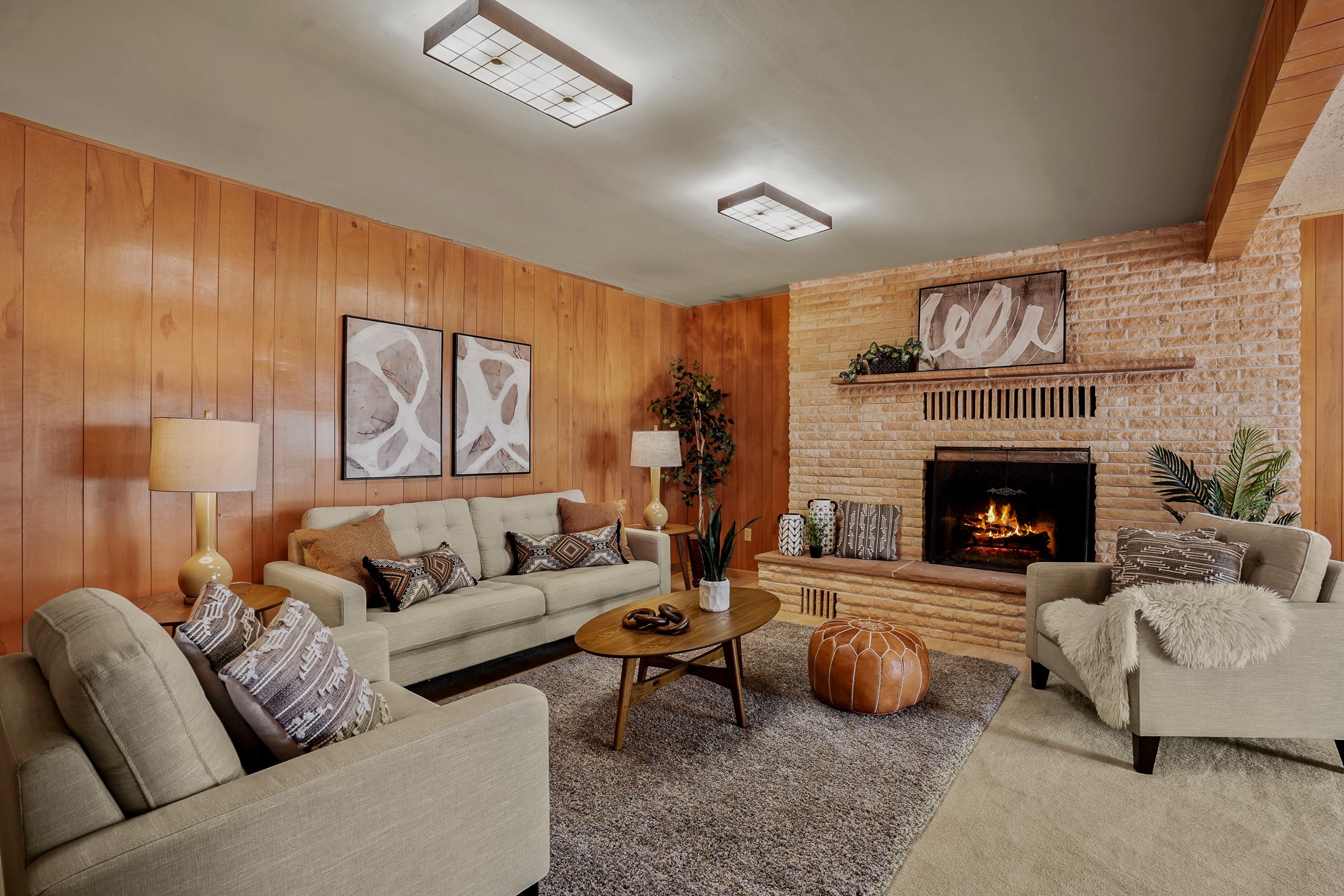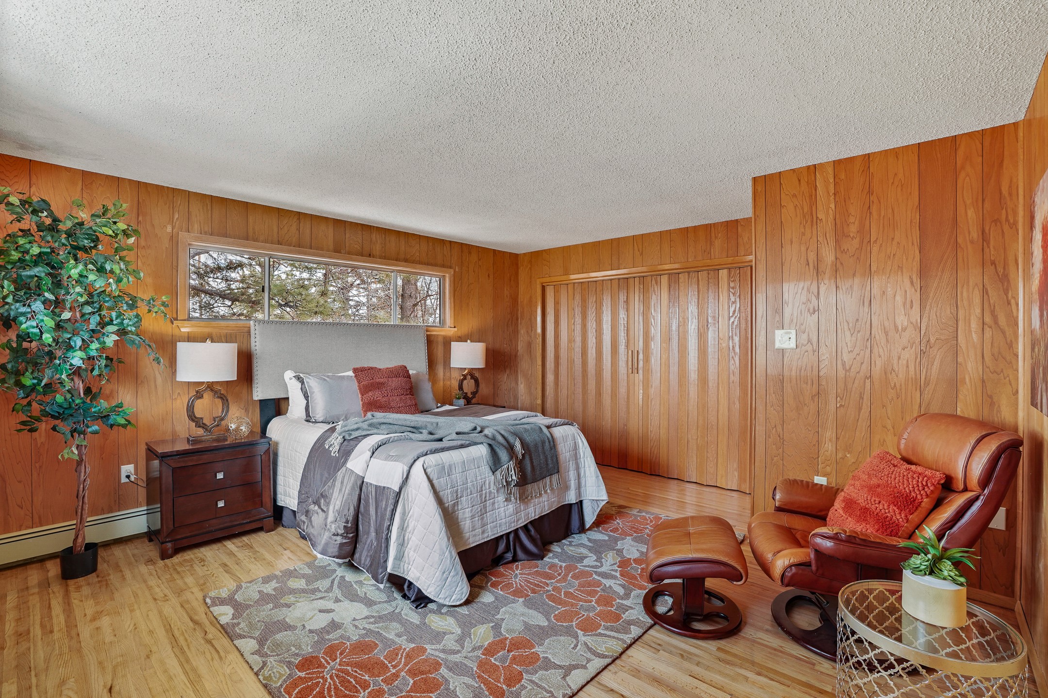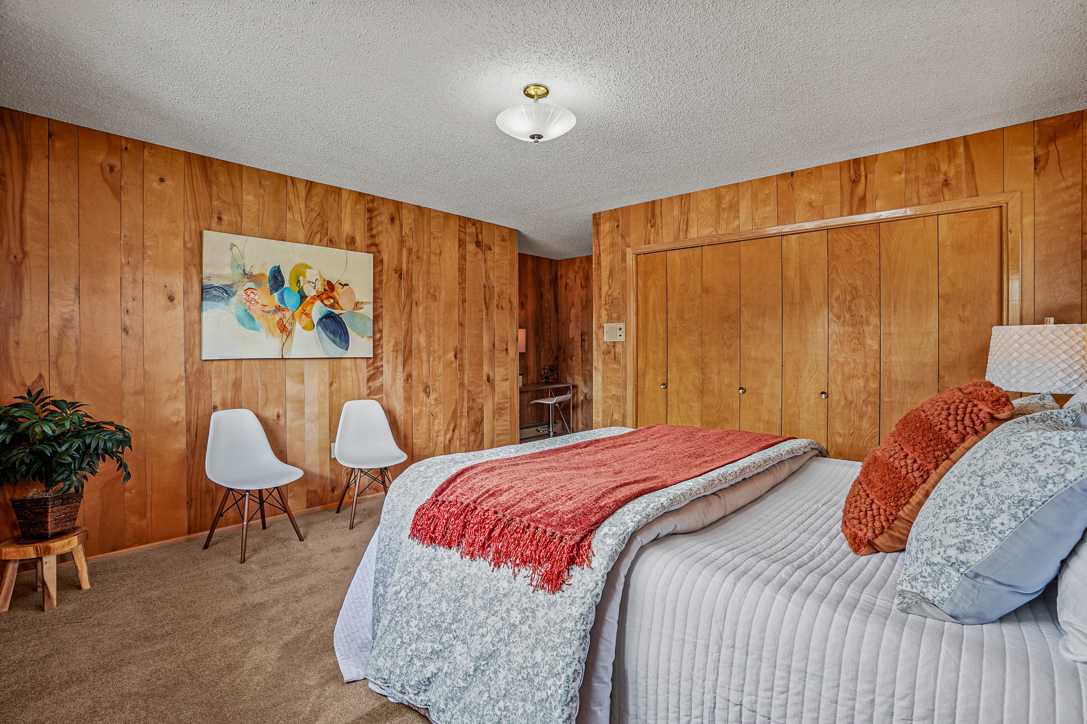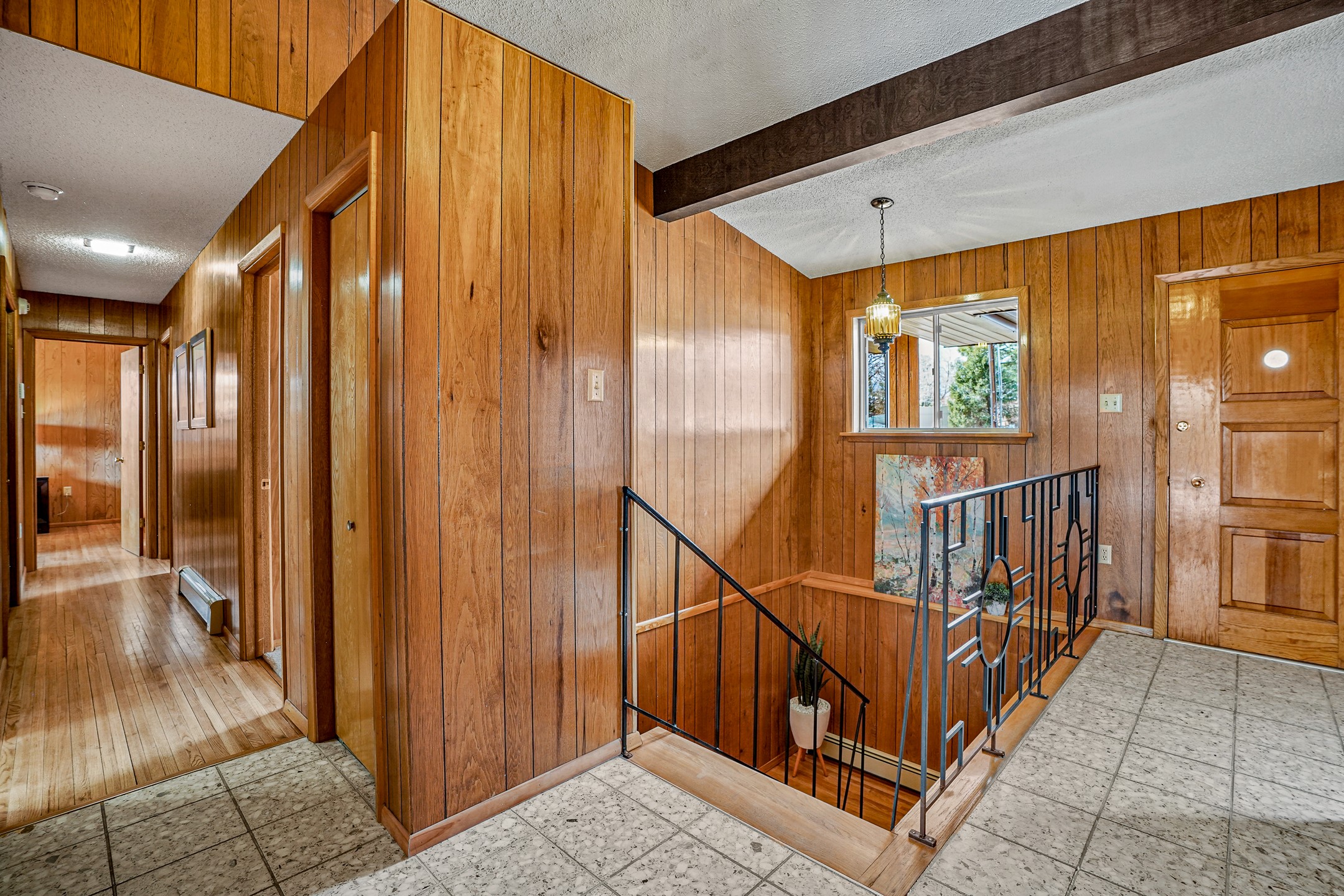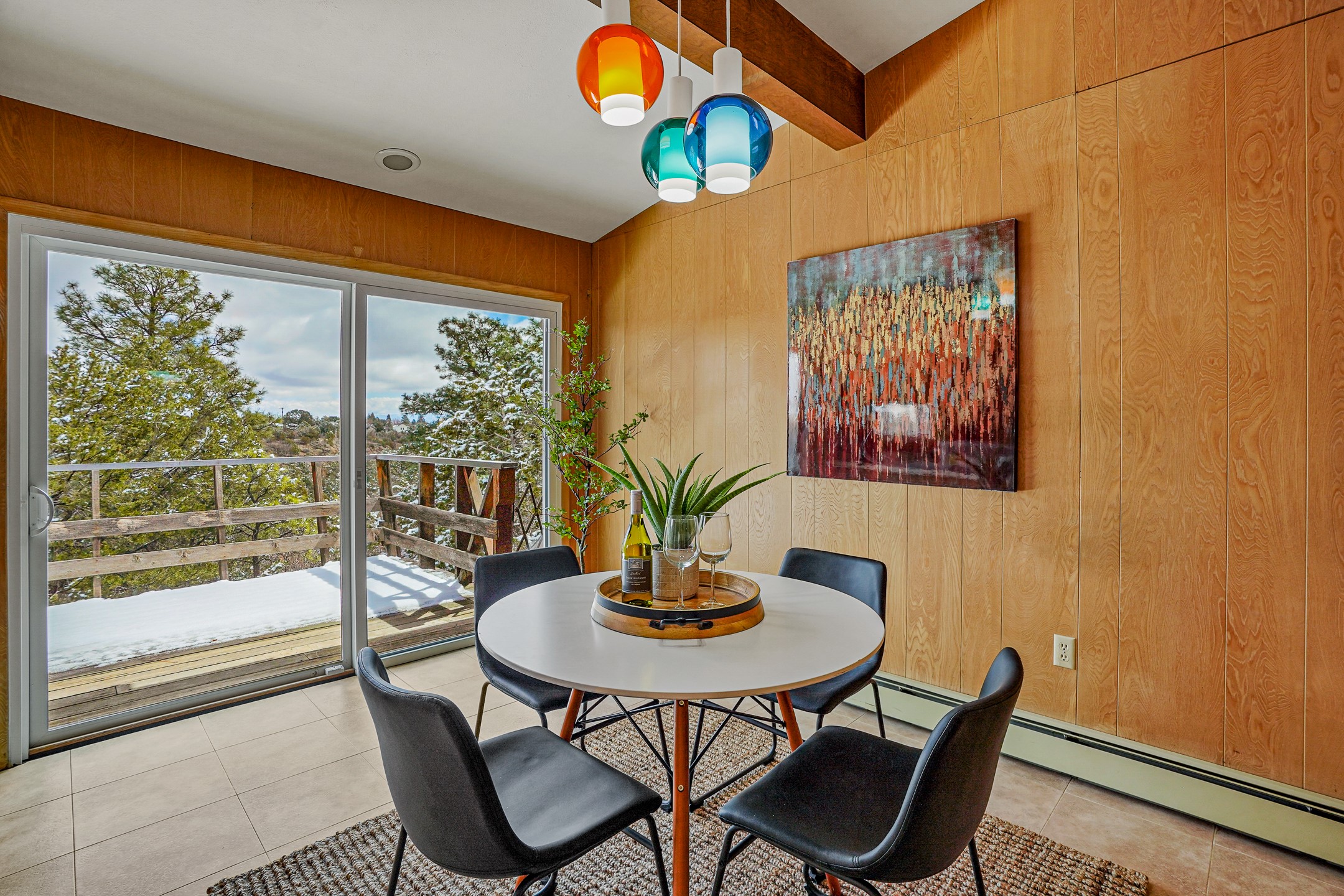 Brimming with vintage appeal and thoughtful details, this spacious 5-bedroom, 3-bathroom home strikes the perfect balance between retro charm and move-in-ready comfort. From the rich wood paneling to the stunning mid-century modern white brick fireplace, every corner tells a story. Vaulted ceilings with exposed beams create an airy sense of space, while large windows flood the home with natural light. Unique retro light fixtures add a fun, stylish flair, and the impeccably maintained interior offers a perfect canvas for your personal touch. Upstairs, you'll find three generously sized bedrooms and two full bathrooms, designed with functionality in mind. Downstairs, the walk-out basement expands your living space with two additional large bedrooms, a second cozy living area with its own fireplace, and a spacious laundry/utility room with ample storage--ideal for a workshop, craft space, or simply keeping things organized. Out back, enjoy the tranquility of open space with direct access to nearby trails and schools just minutes away. The yard boasts multiple fruit trees including apple, apricot and pear. Whether you're a mid-century enthusiast or simply looking for a solid, spacious home in a prime location, this one has the bones, the vibe, and the potential to make it truly yours.