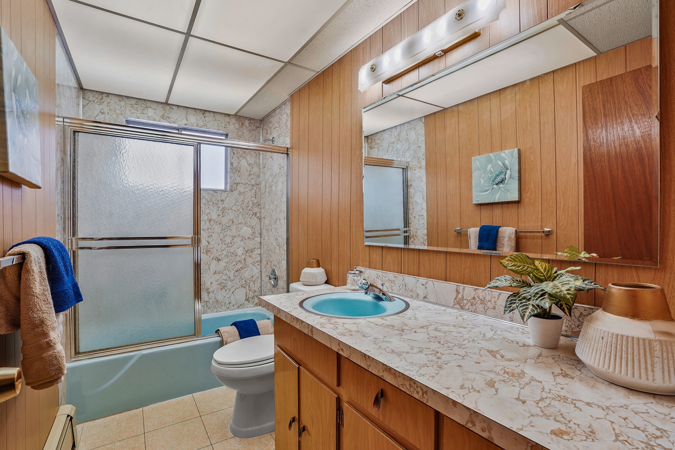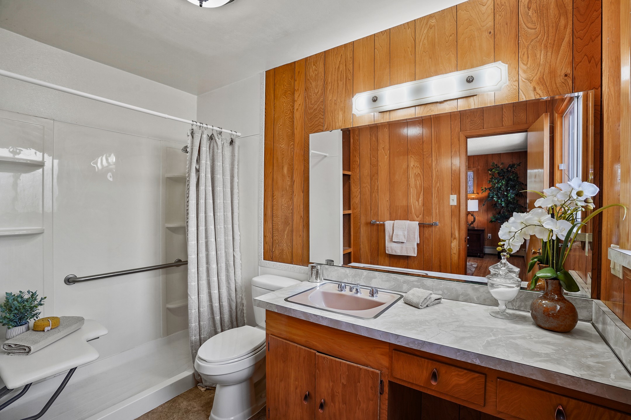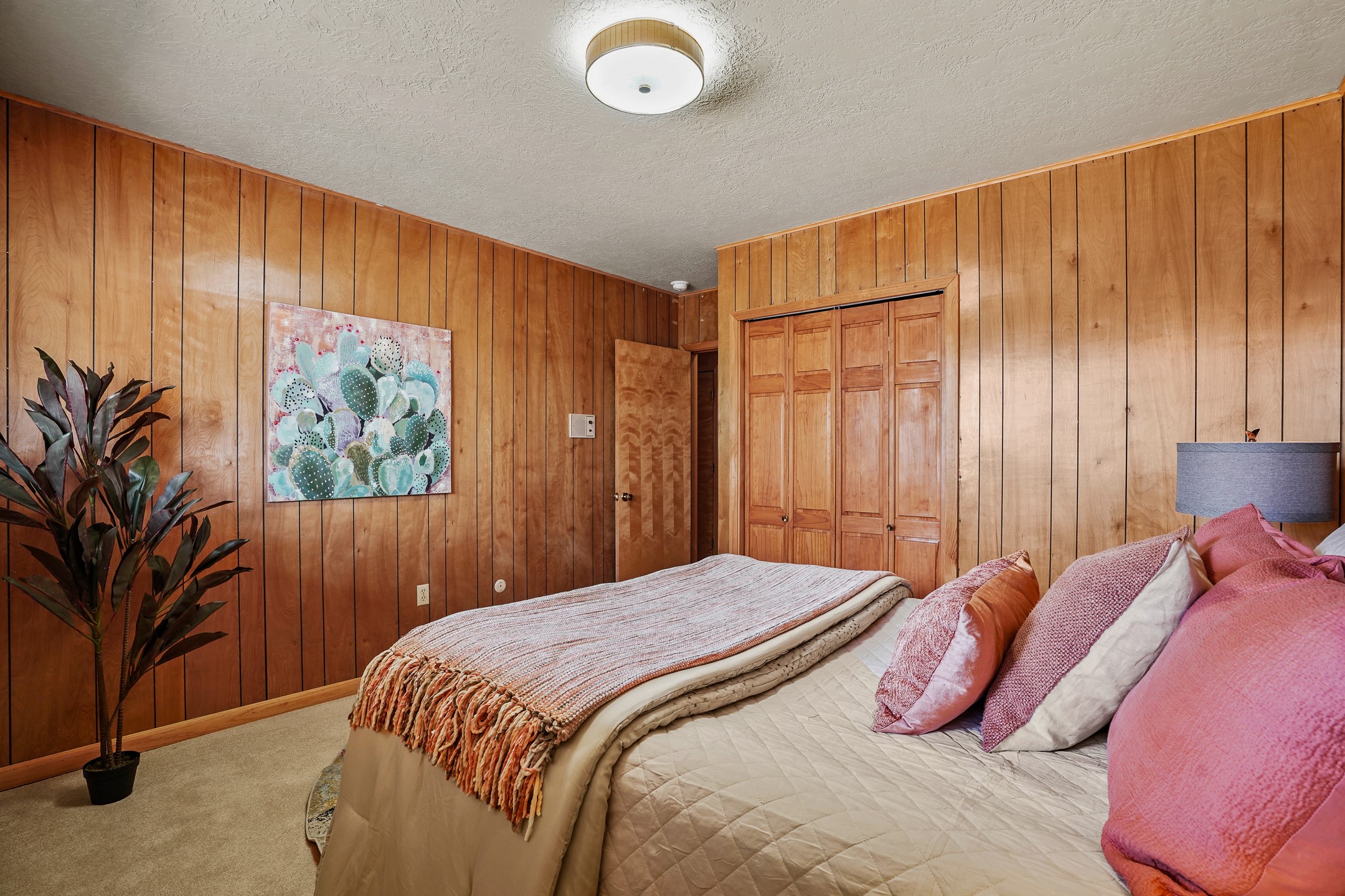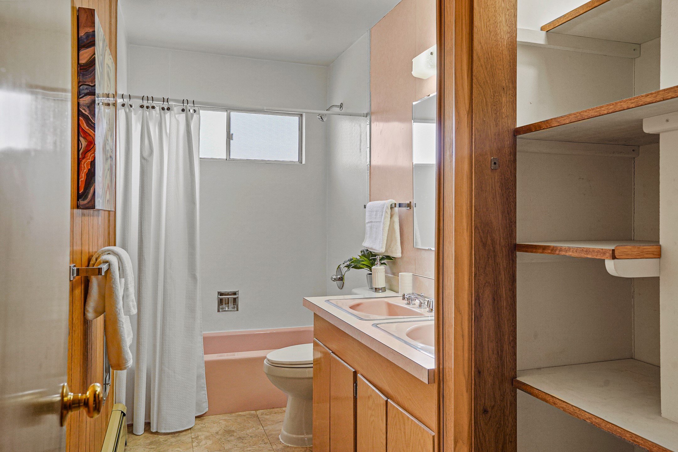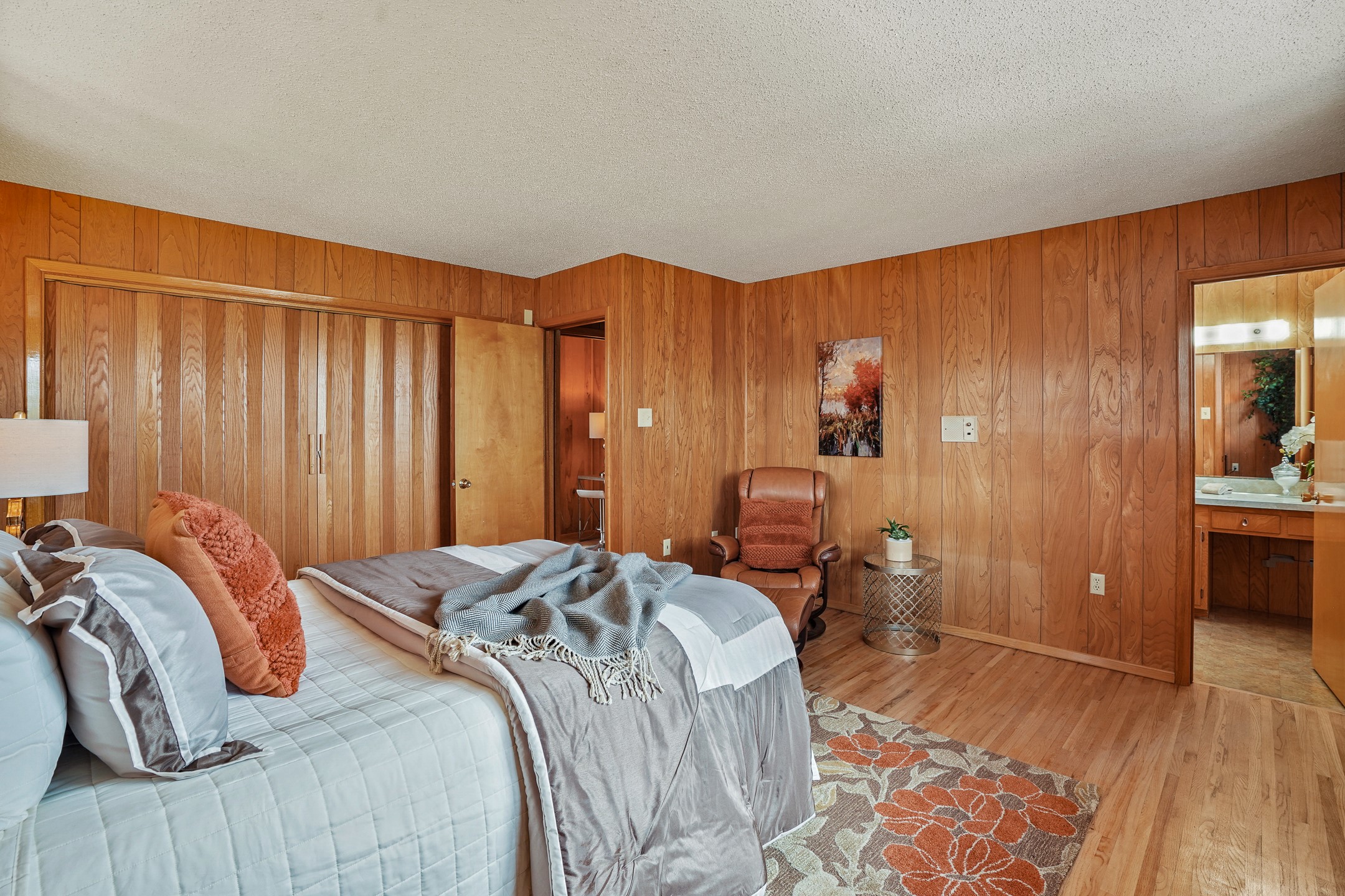 Brimming with vintage appeal and thoughtful details, this spacious 5-bedroom, 3-bathroom home strikes the perfect balance between retro charm and move-in-ready comfort. From the rich wood paneling to the stunning mid-century modern white brick fireplace, every corner tells a story. Vaulted ceilings with exposed beams create an airy sense of space, while large windows flood the home with natural light. Unique retro light fixtures add a fun, stylish flair, and the impeccably maintained interior offers a perfect canvas for your personal touch. Upstairs, you'll find three generously sized bedrooms and two full bathrooms, designed with functionality in mind. Downstairs, the walk-out basement expands your living space with two additional large bedrooms, a second cozy living area with its own fireplace, and a spacious laundry/utility room with ample storage--ideal for a workshop, craft space, or simply keeping things organized. Out back, enjoy the tranquility of open space with direct access to nearby trails and schools just minutes away. The yard boasts multiple fruit trees including apple, apricot and pear. Whether you're a mid-century enthusiast or simply looking for a solid, spacious home in a prime location, this one has the bones, the vibe, and the potential to make it truly yours.