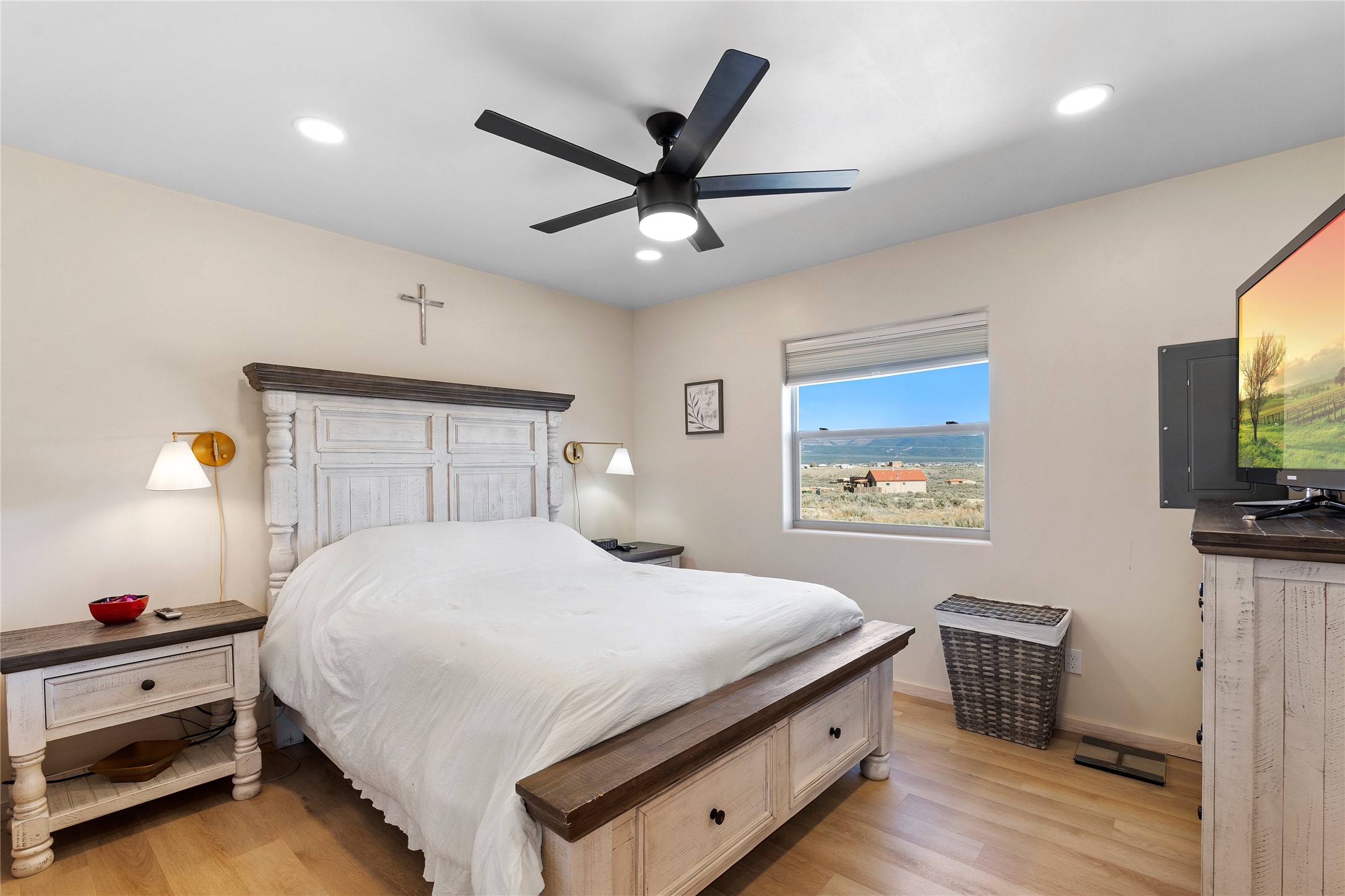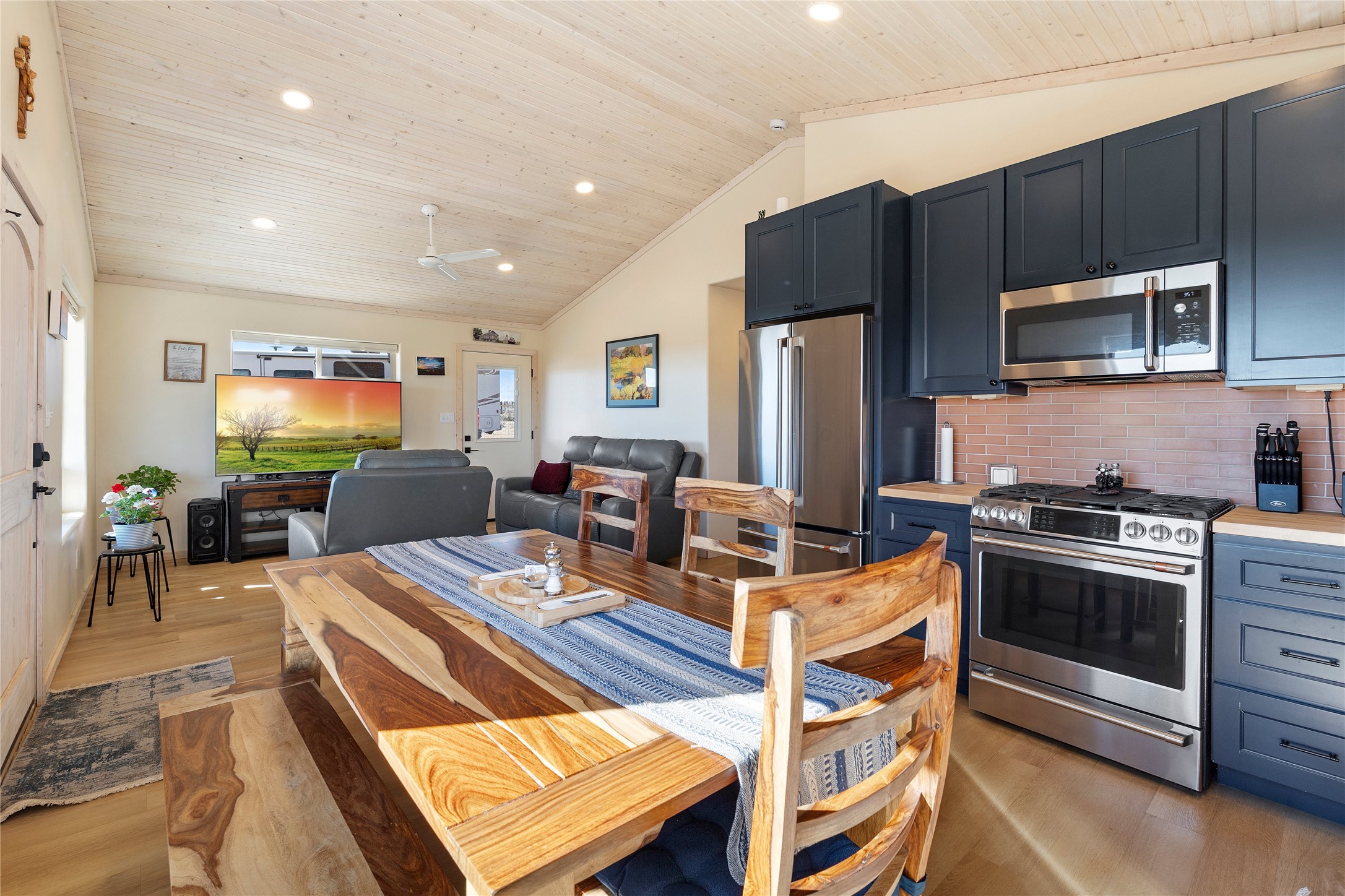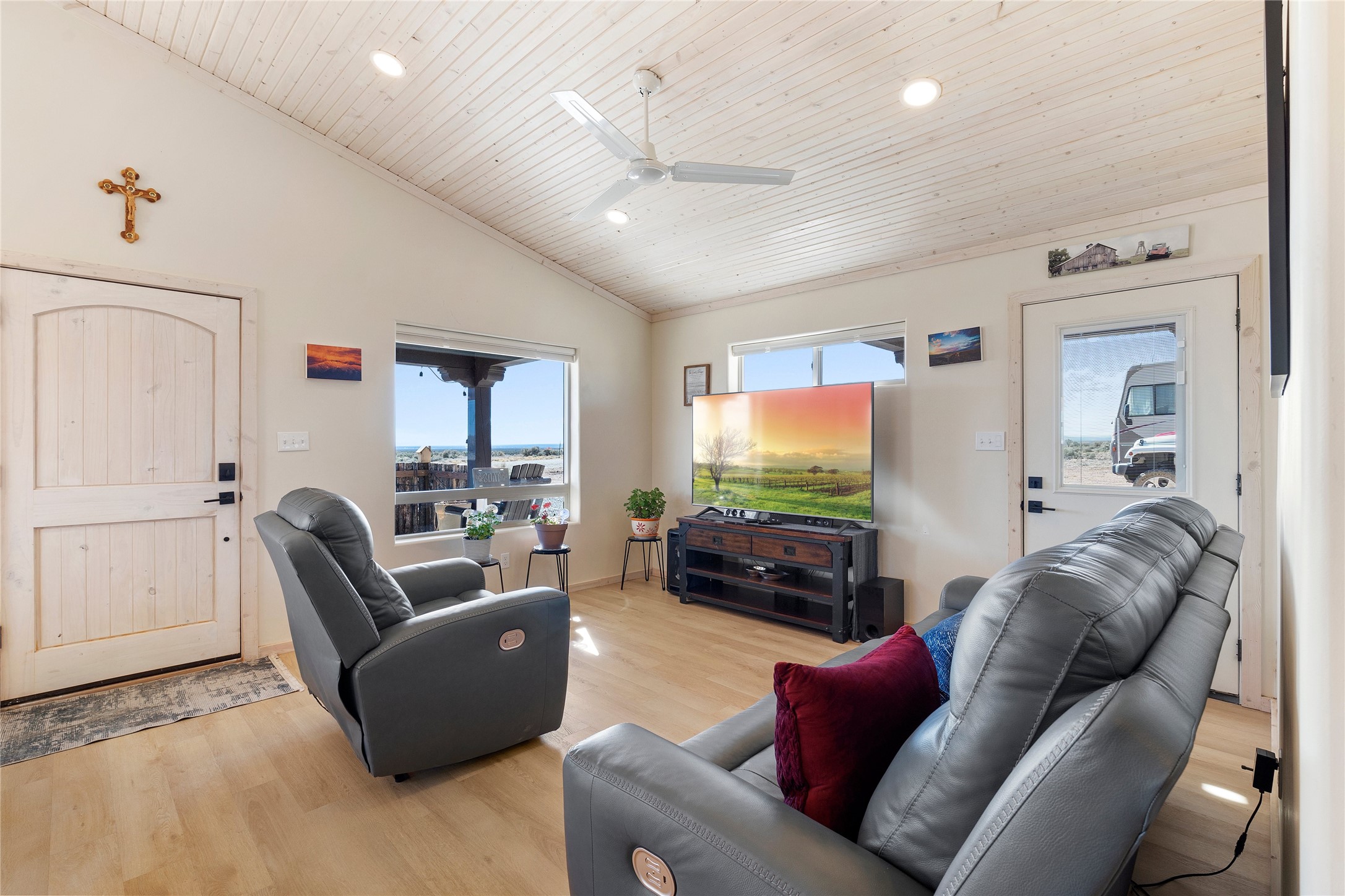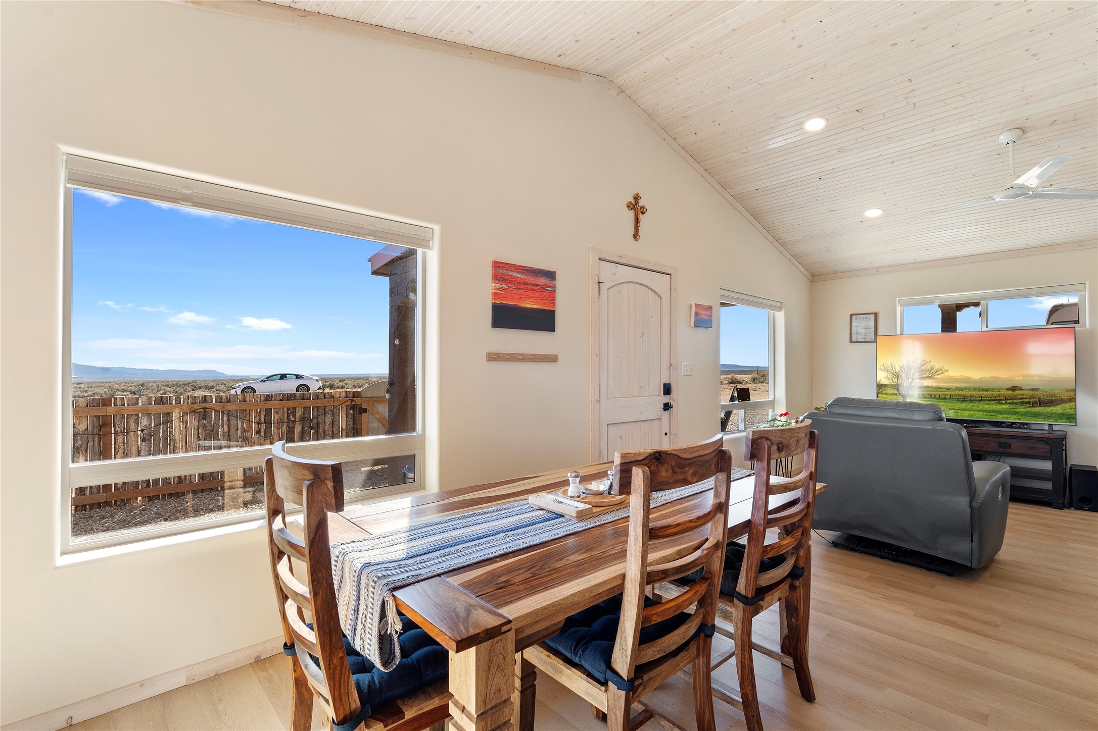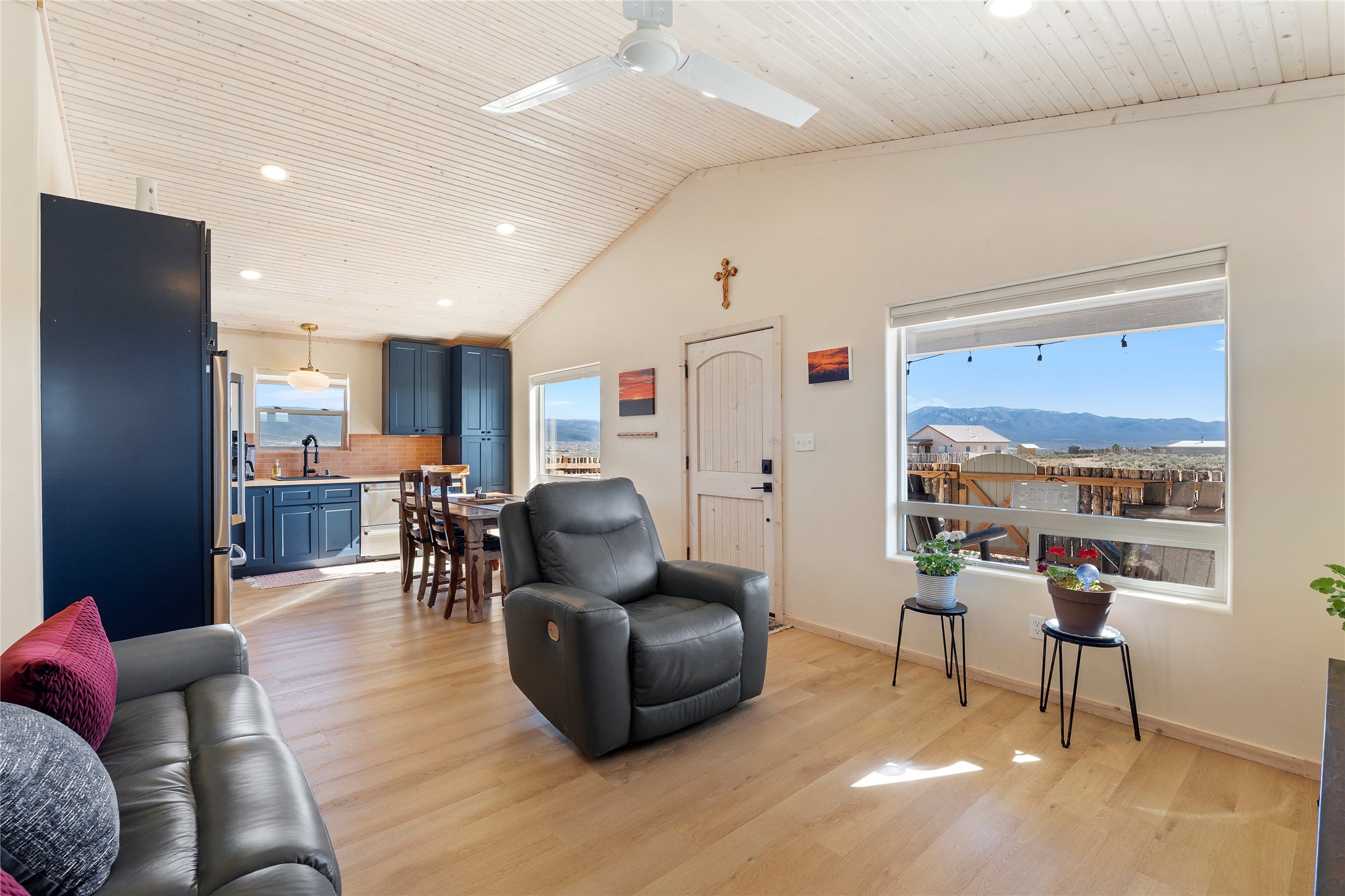 $5,000 credit with acceptable offer! Unbelievable views! Perfect for watching those beautiful morning sunrises and evening sunsets! This cute country home has an updated light and bright kitchen with stainless steel appliances and butcher block countertops, 2 bedrooms and 2 baths with all the space for your toys! Home is energy efficient with radiant floor heating, natural gas with NM gas company, Electric with Kit Carson, and internet with Taos net! Ceiling fans with dimmer lights throughout and blinds open from top or bottom. Come see this beauty today!