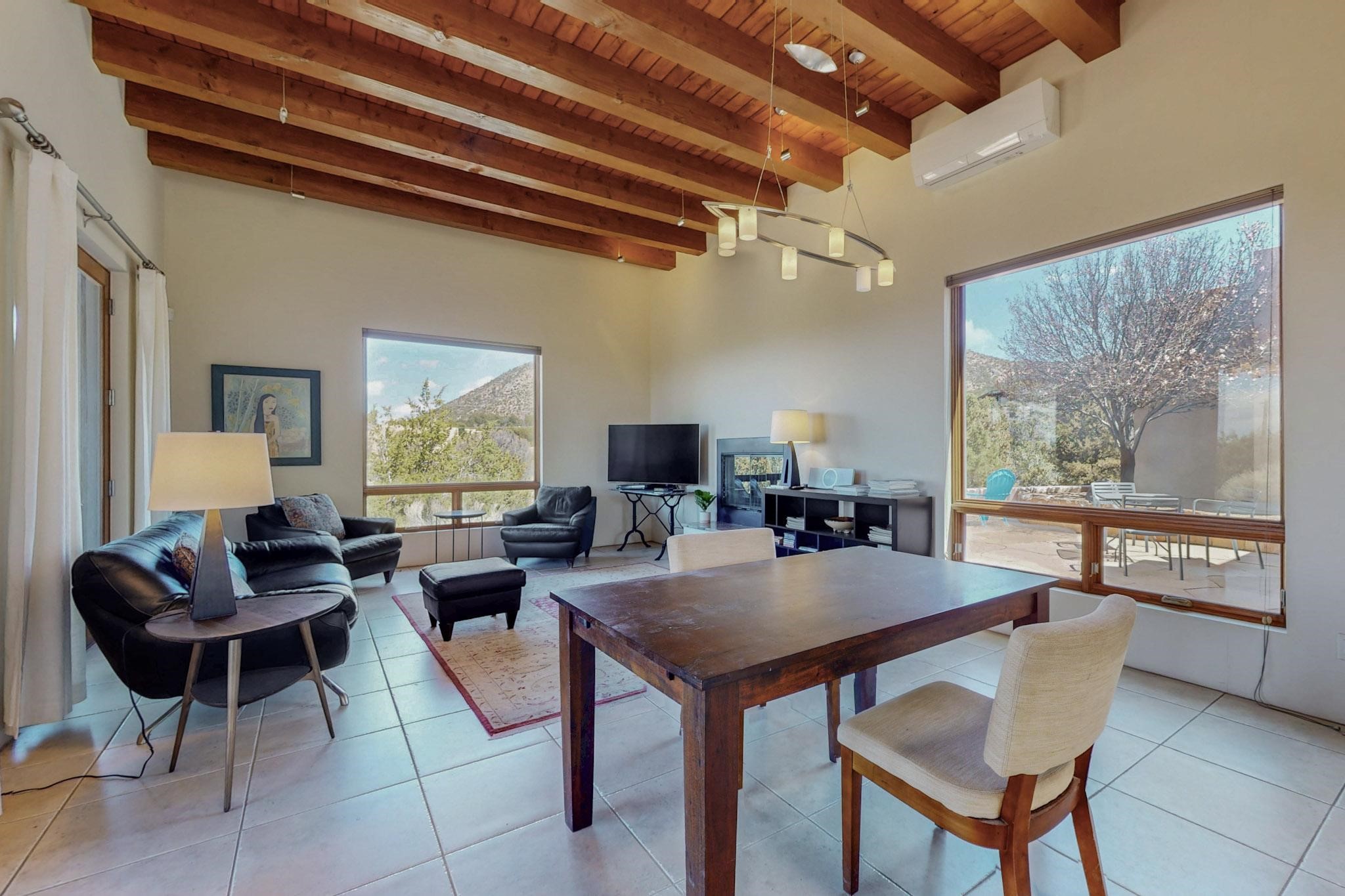 Soft contemporary custom built home on 1.6 rural acres beneath Sun & Moon mountains and very conveniently located for sporting amenities, restaurants, retail, hospitals, trails and galleries. Lightly lived in second home. The gourmet kitchen is open to the living/dining room. The primary suite, complete with fireplace, luxurious bathroom and a tub with a view, is on one side of the home and the guest bedrooms on the other. Both guest bedrooms have doors to the outside for independent access, home office etc. The wide connecting hallways and high ceilings bring in the light and the views, but can showcase art and sculpture too. Oversized finished garage could be additional living space. The portal off the living room is handy for outdoor dining and sunset watching; or use the sheltered back courtyard for contemplating the mountains. No HOA. Country living in a quiet gated community yet only a few minutes from downtown.