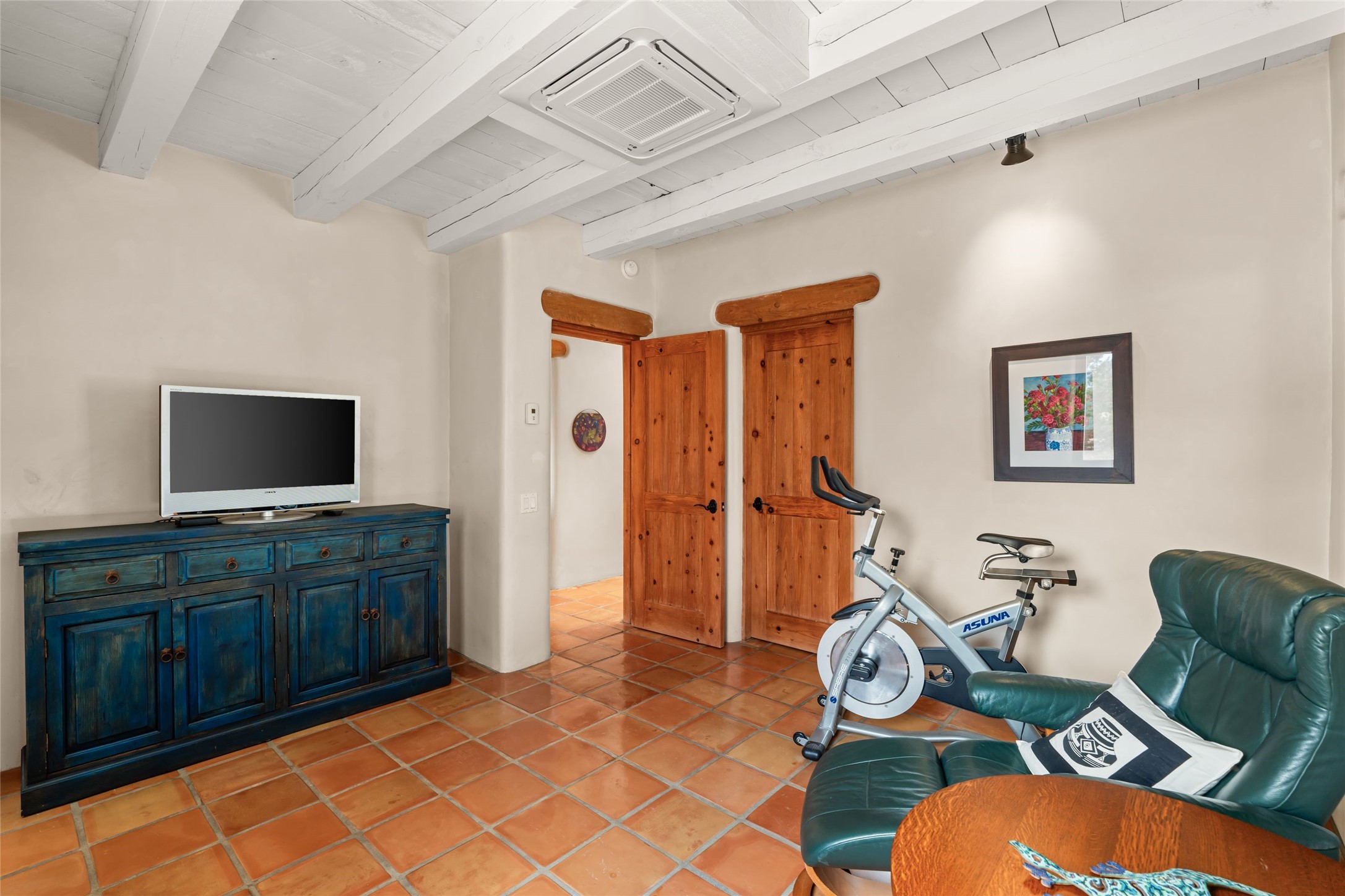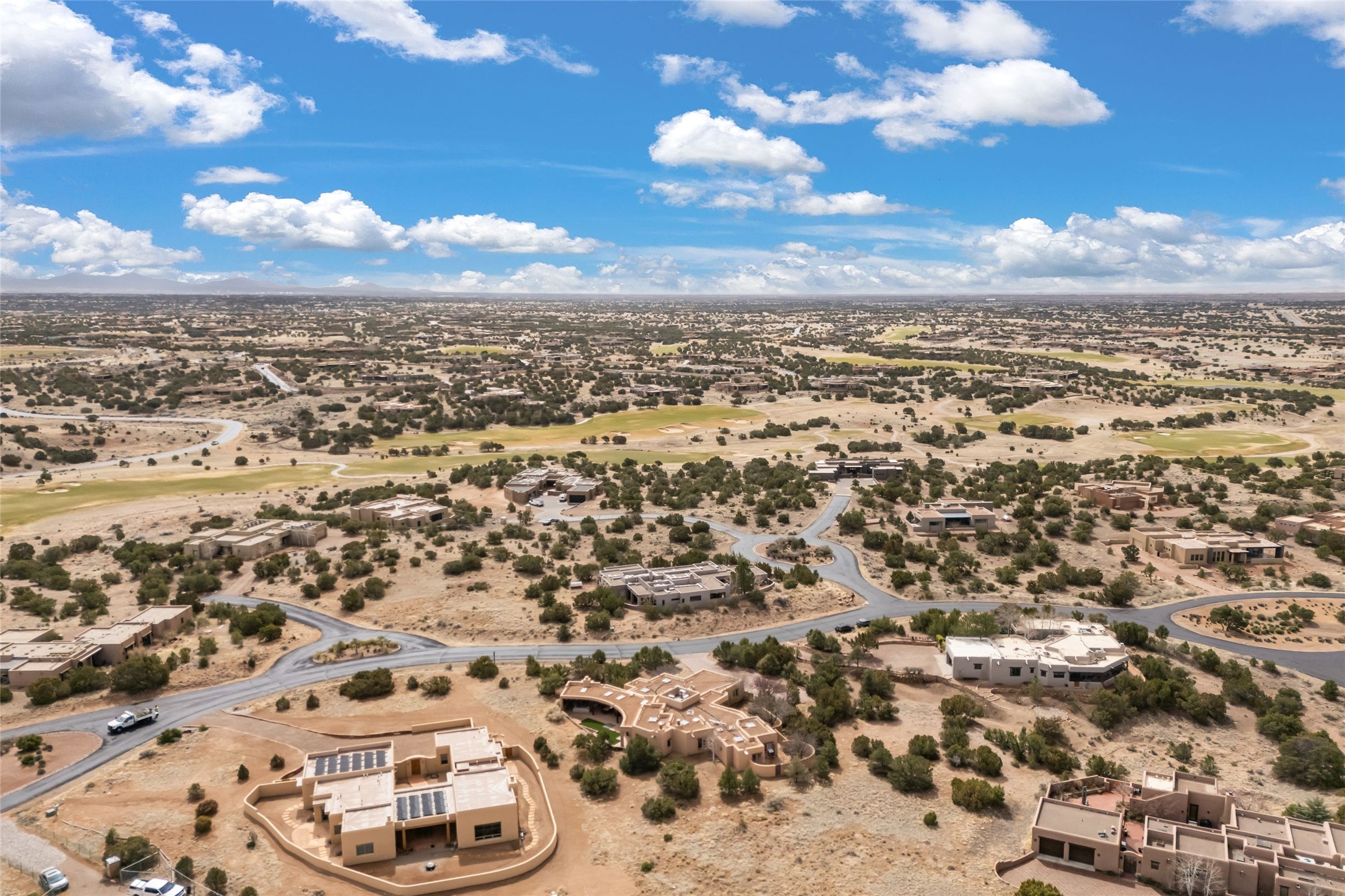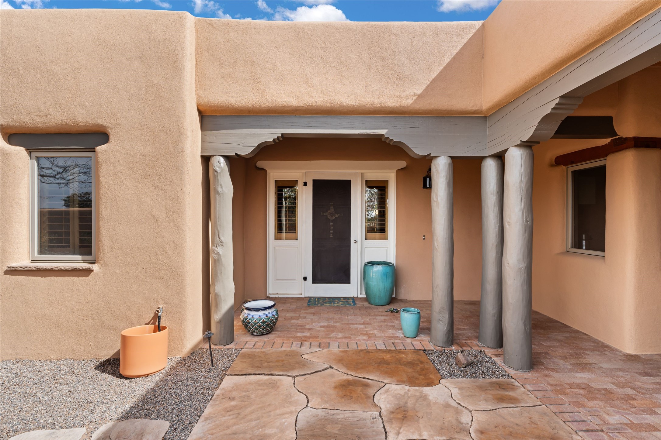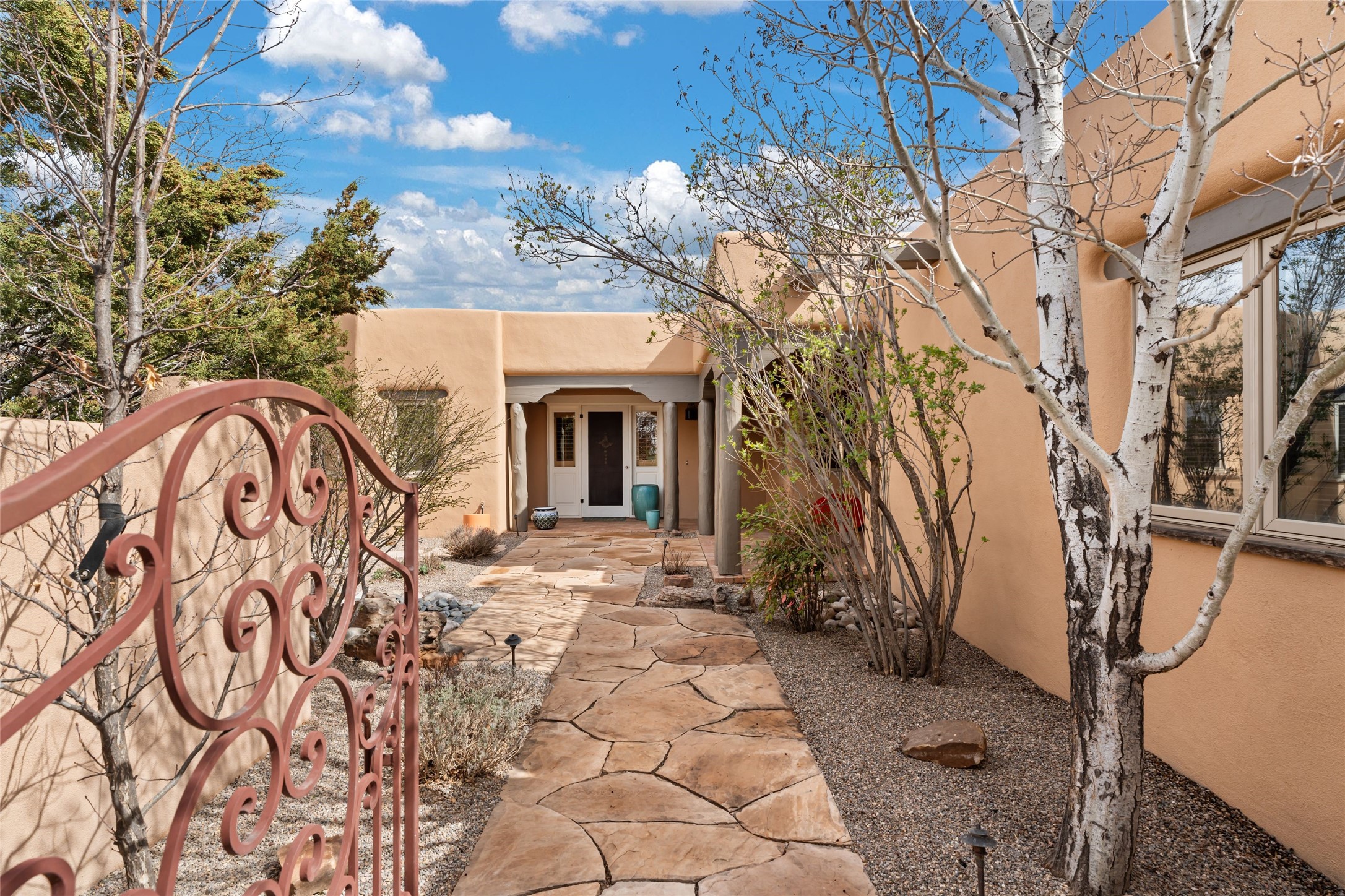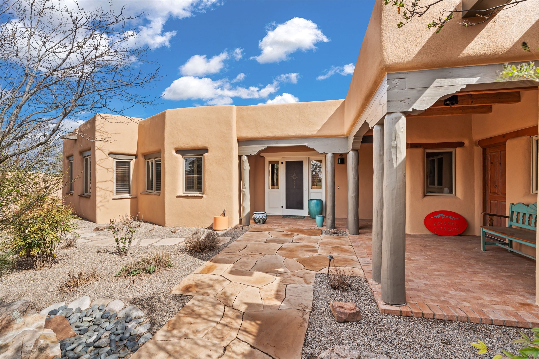 Welcome home to timeless elegance and a space that is as beautiful and functional on the inside as it is on the outside. Ideal living is captured with an open, recently updated kitchen which includes Wolf and Sub Zero appliances along with a charming beverage bar that overlooks the serene front courtyard, all enhanced with stylish Taj Majal quartzsite counters. Classic Saltillo tile, tall ceilings and rich wood accents tastefully adorn this peaceful space. True Santa Fe living is captured in the expansive rear portal with a full outdoor kitchen, Infratech heaters, fireplace and expert lighting. Between the large versatile space inside and the fabulous kitchen outside; this is the place to entertain! Entertainers come and see! Retire inside to an accommodating primary suite complete with an office, large bathroom and closet and charming outdoor space. Optimal separation of bedrooms, updated bathrooms, mini splits throughout, heated stone driveway, tasteful landscape with ample flagstone and meticulous maintenance combine to create a space which satisfies all the creature comforts. This gem is located a half mile from The Club in Las Campanas' popular Park Estates. Come and see!
