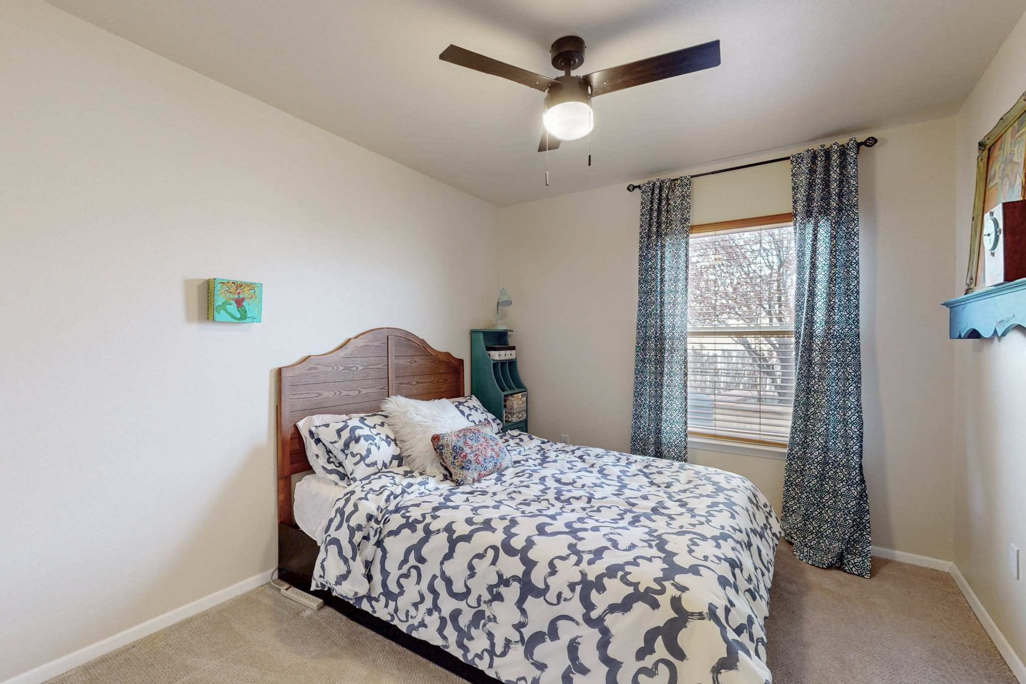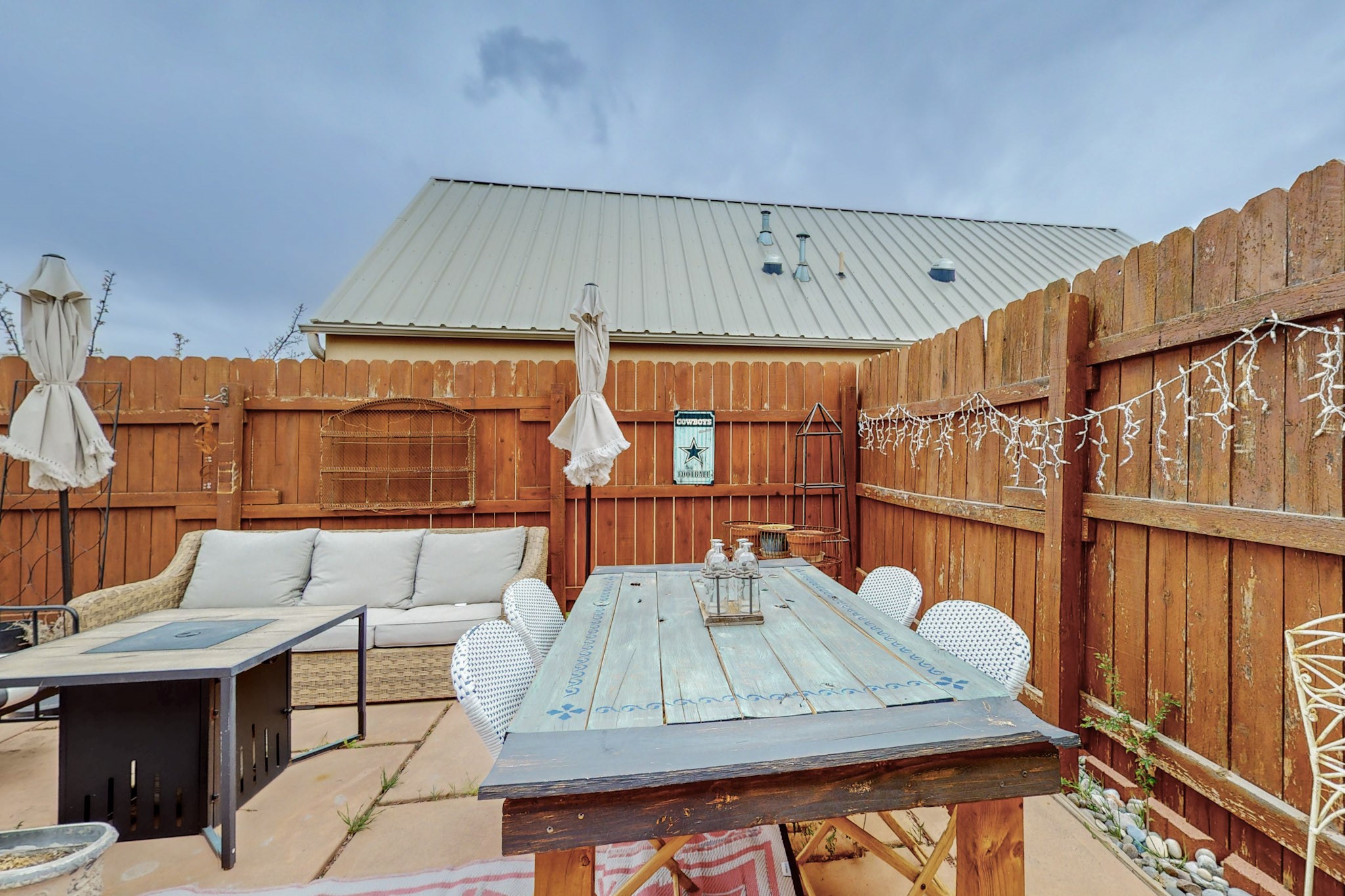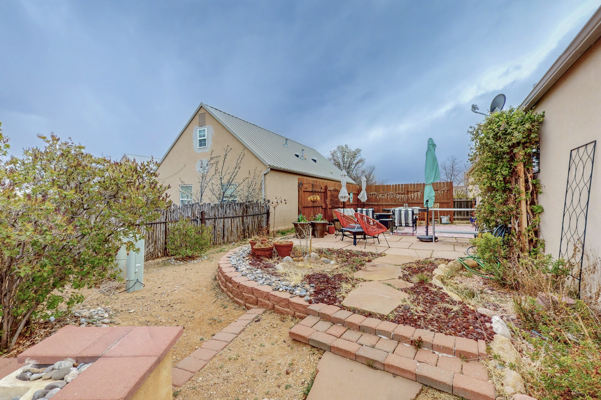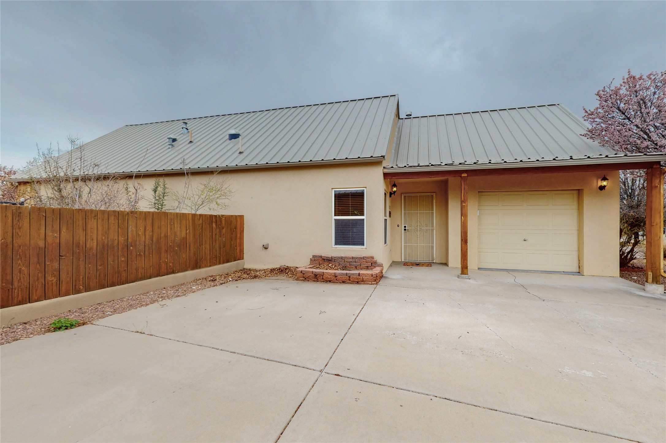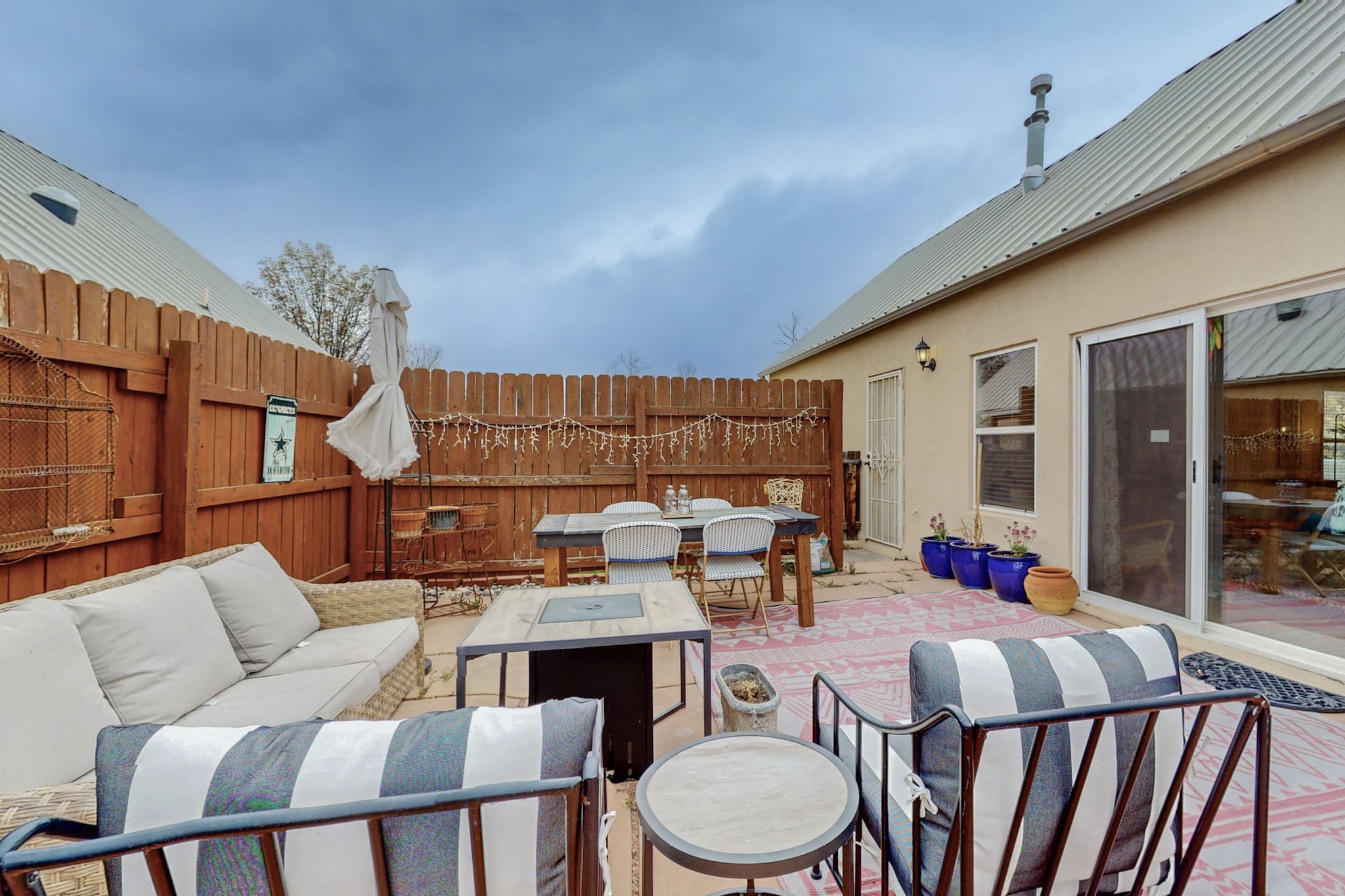 Stunning Northern New Mexico Style Home - Move-In Ready!This meticulously upgraded home blends timeless Northern New Mexico style with an eclectic southwest flair and modern amenities. Bathed in natural light, the home boasts vaulted ceilings, engineered hardwood floors, and a brand-new kitchen featuring a high-end Kucht stove. Every detail has been thoughtfully updated, from stylish light fixtures to ceiling fans, ensuring both comfort and style. The bathrooms have been tastefully updated, offering a fresh and eclectic southwest vibe.Step outside into the expansive backyard, perfect for hosting gatherings or simply relaxing. Located just minutes from schools, parks, shopping, and dining, this home combines charm with unmatched convenience.
