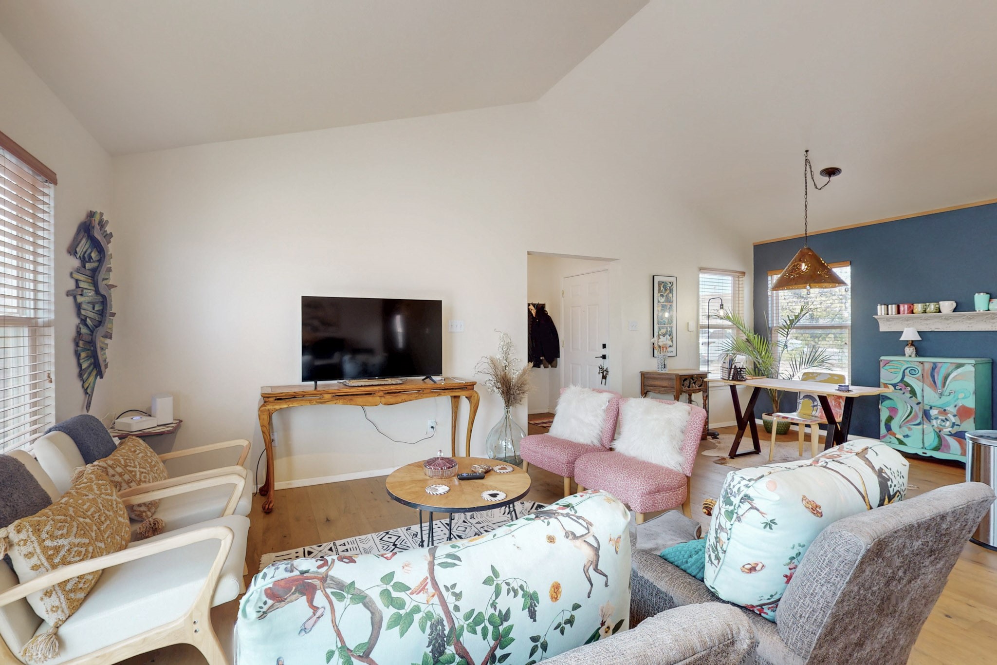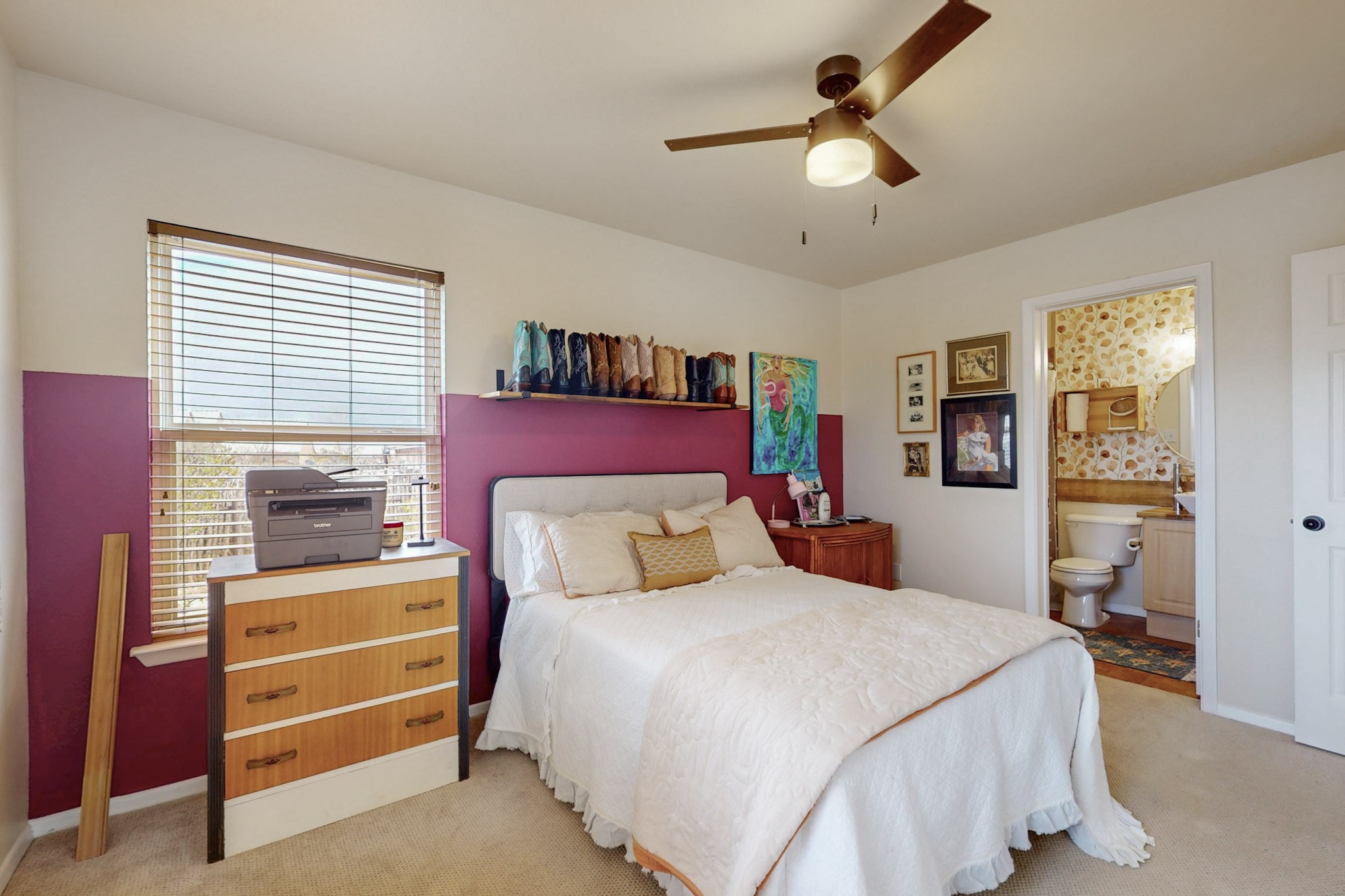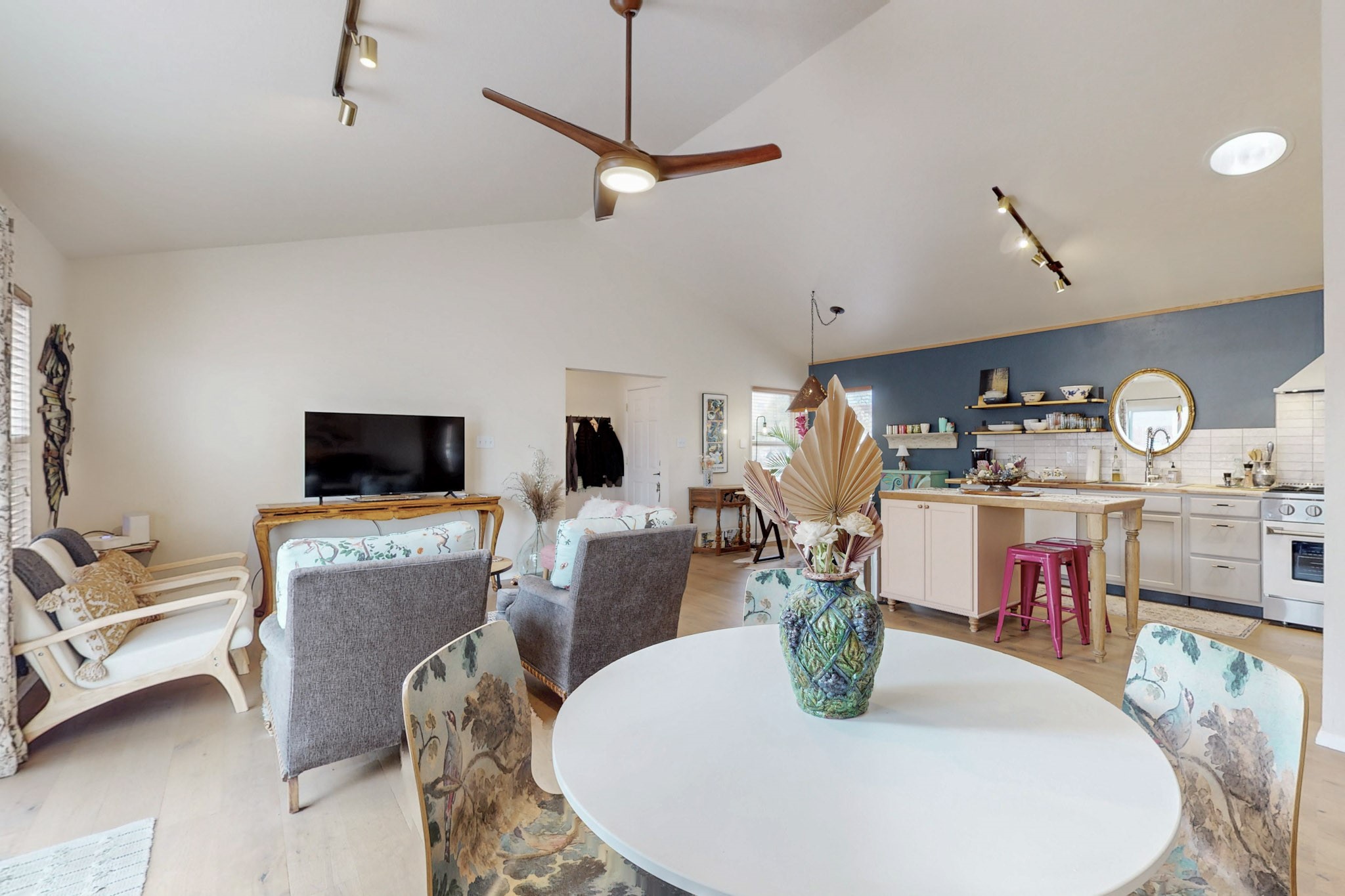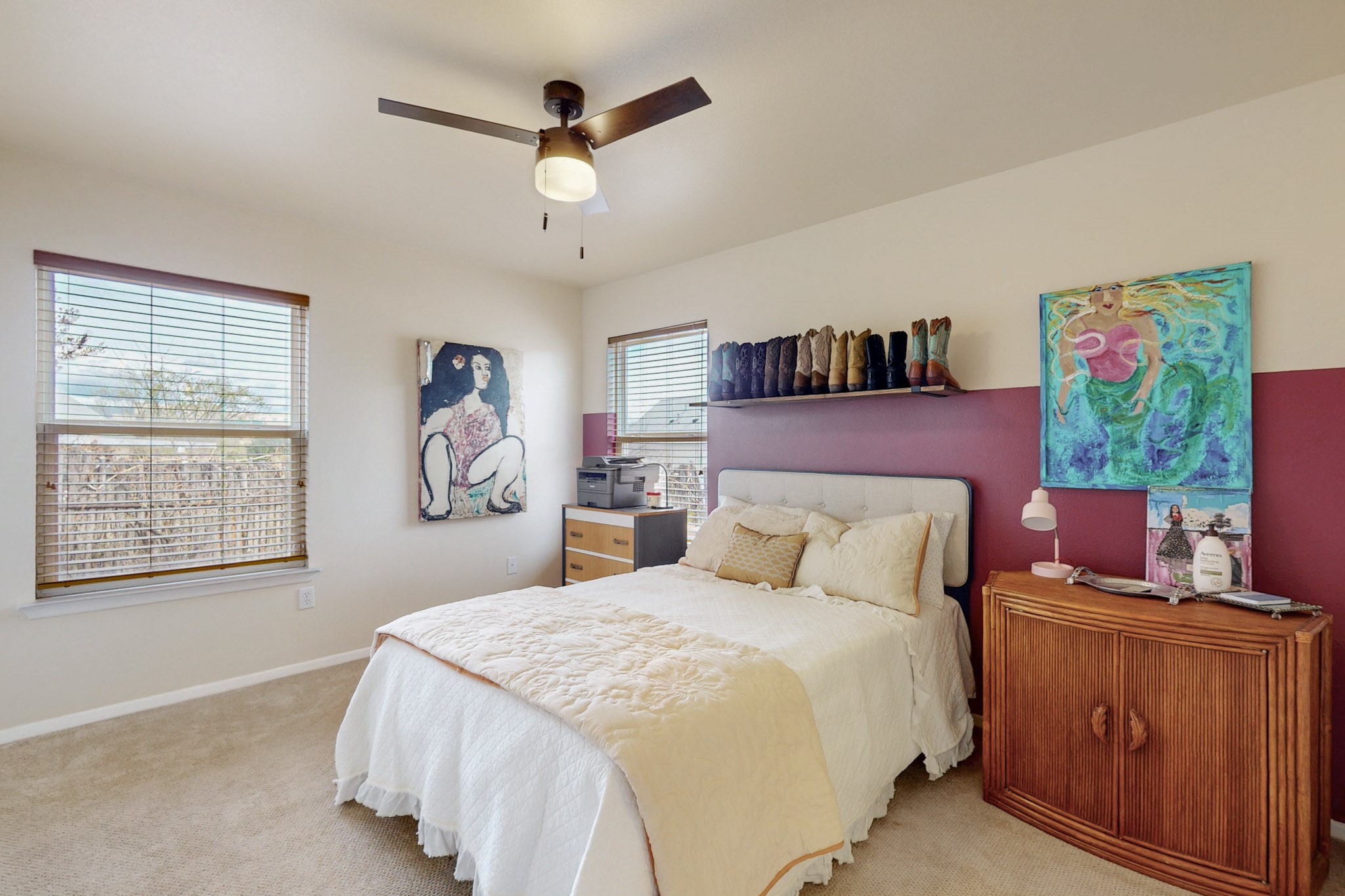 Stunning Northern New Mexico Style Home - Move-In Ready!This meticulously upgraded home blends timeless Northern New Mexico style with an eclectic southwest flair and modern amenities. Bathed in natural light, the home boasts vaulted ceilings, engineered hardwood floors, and a brand-new kitchen featuring a high-end Kucht stove. Every detail has been thoughtfully updated, from stylish light fixtures to ceiling fans, ensuring both comfort and style. The bathrooms have been tastefully updated, offering a fresh and eclectic southwest vibe.Step outside into the expansive backyard, perfect for hosting gatherings or simply relaxing. Located just minutes from schools, parks, shopping, and dining, this home combines charm with unmatched convenience.