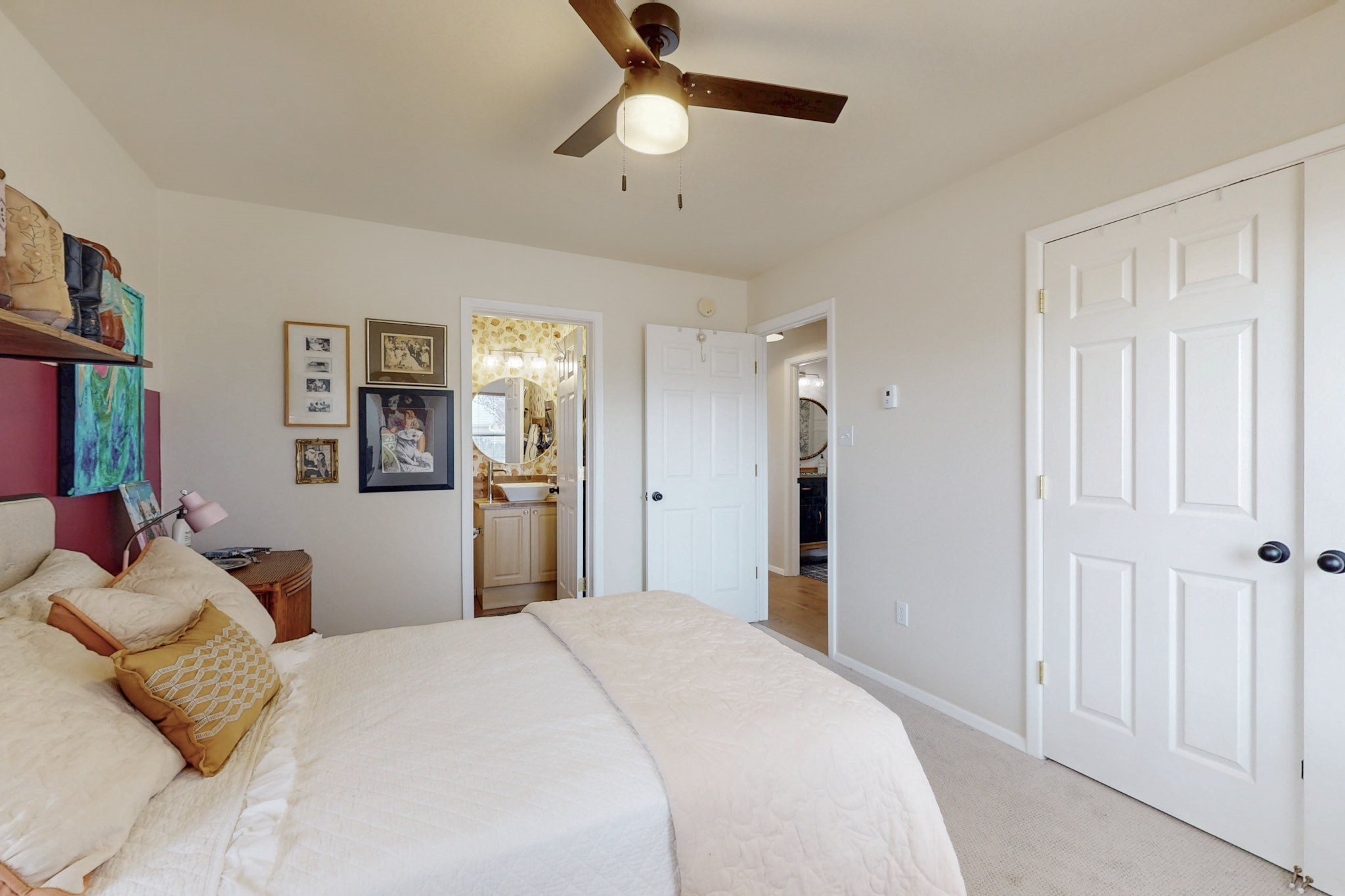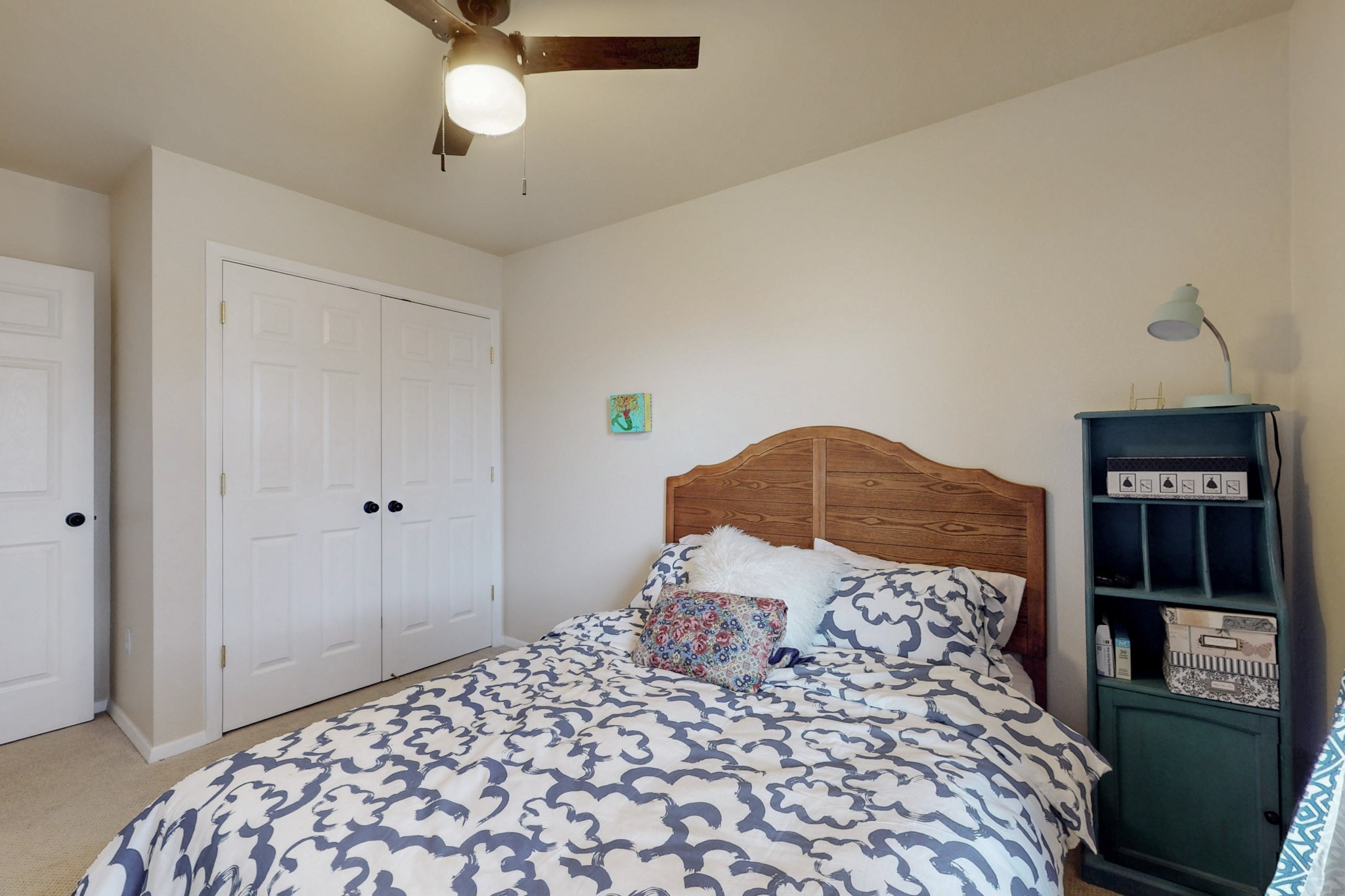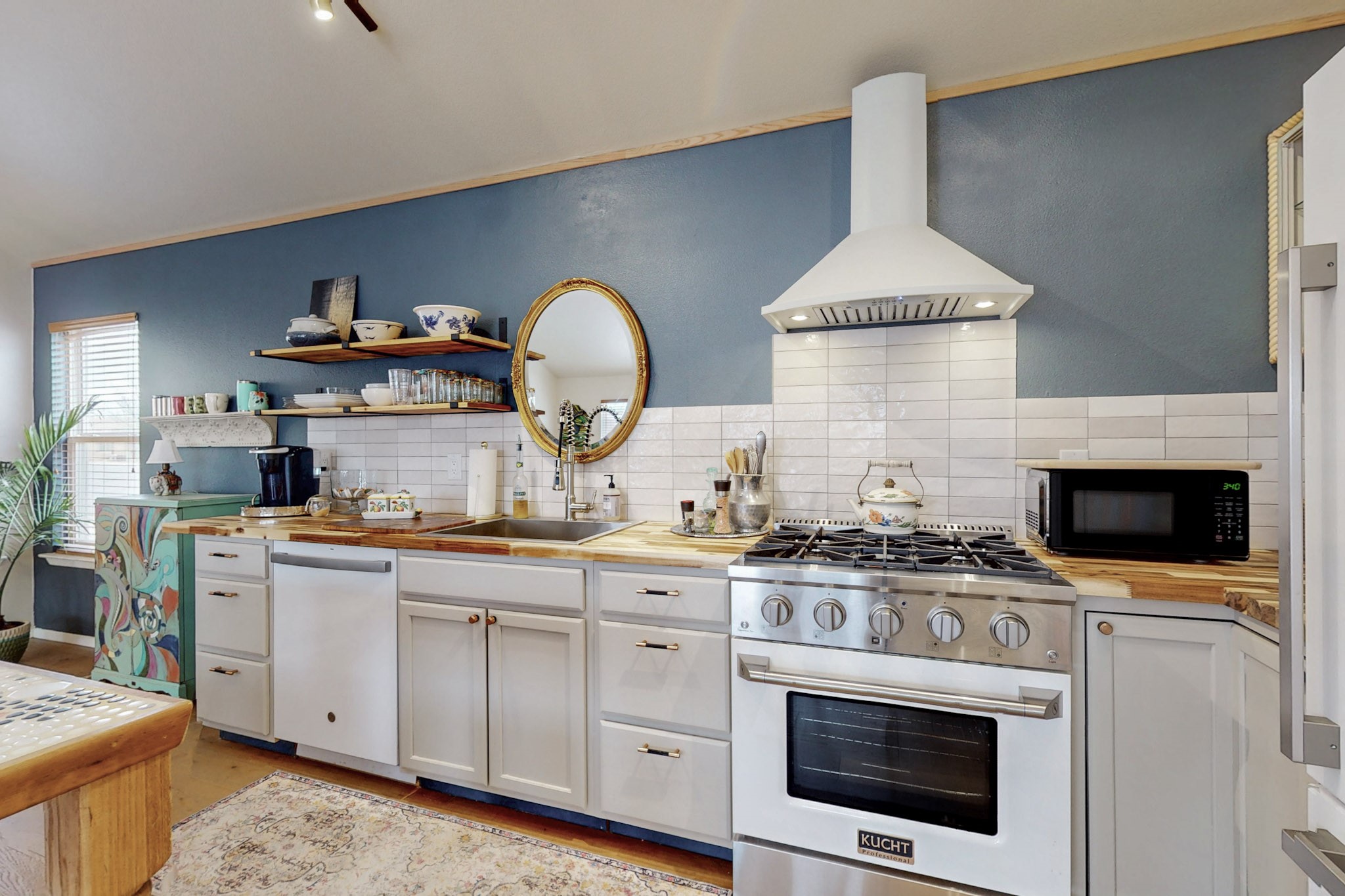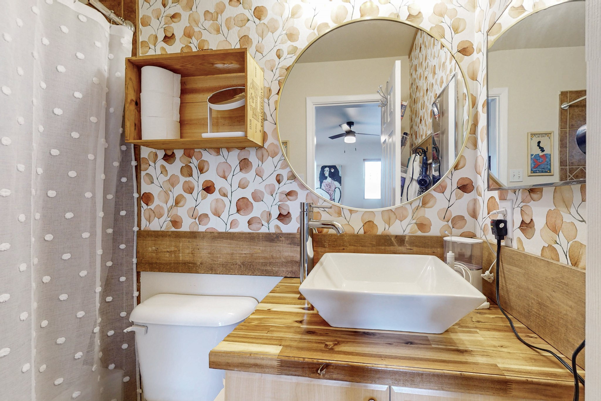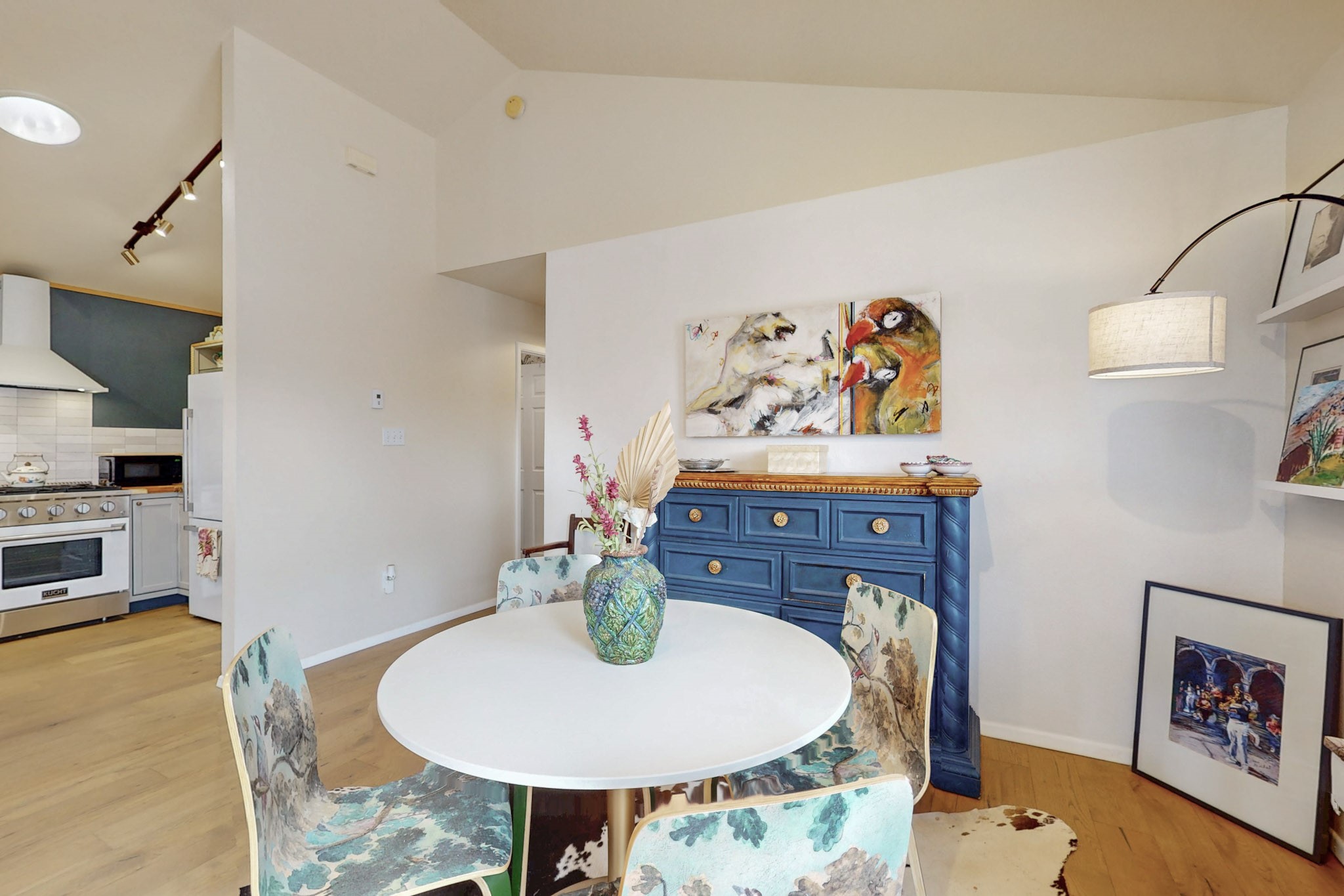 Stunning Northern New Mexico Style Home - Move-In Ready!This meticulously upgraded home blends timeless Northern New Mexico style with an eclectic southwest flair and modern amenities. Bathed in natural light, the home boasts vaulted ceilings, engineered hardwood floors, and a brand-new kitchen featuring a high-end Kucht stove. Every detail has been thoughtfully updated, from stylish light fixtures to ceiling fans, ensuring both comfort and style. The bathrooms have been tastefully updated, offering a fresh and eclectic southwest vibe.Step outside into the expansive backyard, perfect for hosting gatherings or simply relaxing. Located just minutes from schools, parks, shopping, and dining, this home combines charm with unmatched convenience.