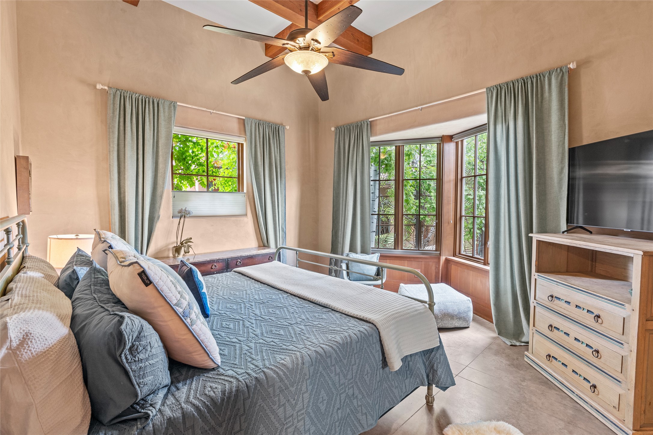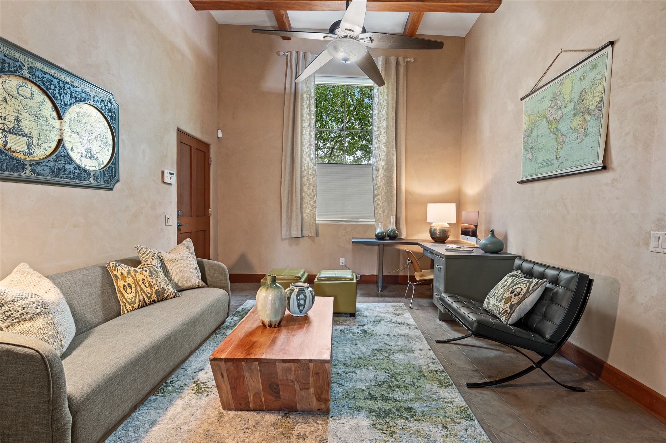 A Versatile Live/Work Opportunity in Prime Location.A rare find in the heart of Santa Fe's Eastside, this architect-designed property blends commercial versatility with residential charm. Zoned RAC (Residential Arts and Crafts), the home allows for office use, a live/work configuration, or an exceptional income-producing rental--perfect for a 3-bedroom Airbnb, a stylish 2-bedroom home with office, or your dream creative studio. Inside, you'll find soaring 12-foot ceilings, expansive windows that bathe the space in natural light, American Clay plaster finishes, polished granite countertops, and radiant in-floor concrete floors with mini split A/C systems. The flexible layout has functioned as an architect's studio, a short-term and long-term rental, and a personal residence.The contemporary kitchen features a long central island and seamlessly serves the open-concept living area. Two spacious ensuite bedrooms with baths offer private comfort, and the overall design supports many configurations.Additional highlights include two designated parking spaces, separate utility metering, and an outstanding location just minutes from the historic Plaza.Currently part of a family compound with 992 Old Pecos Trail, this home is available for individual sale, or it can be purchased in tandem with 992 to create an extraordinary multi-residence estate in the heart of Santa Fe. (See listing #202501407.)