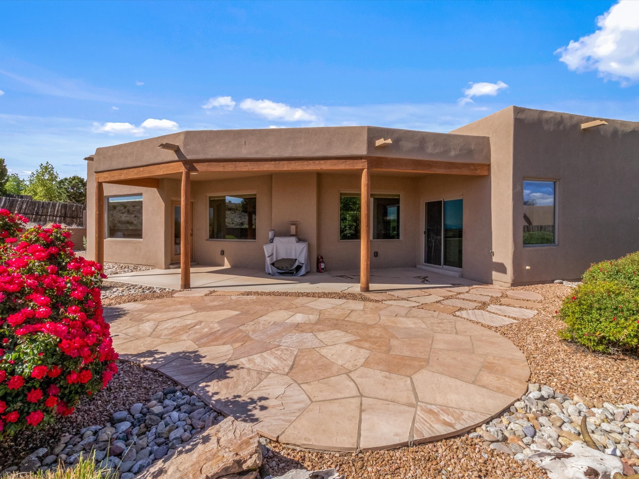 Welcome to 47 Caballo Viejo, a stunning Santa Fe home in the desirable La Pradera Community! This exceptional property boasts a fully finished, landscaped backyard oasis with open space and separation, perfect for outdoor living and entertaining. Discover a haven of luxury with granite countertops, custom woodwork, and cabinetry, showcasing the perfect blend of modern comfort and traditional Santa Fe charm. The community is meticulously maintained, offering ample open space and walking trails for a peaceful and active lifestyle. Additional features include a water softener, newly installed solar panels, and an electric car charging station, providing a sustainable and eco-friendly lifestyle. With its prime location, exceptional features, and serene atmosphere, 47 Caballo Viejo is the perfect choice for those seeking a tranquil and luxurious Santa Fe retreat. Take advantage of this incredible opportunity!