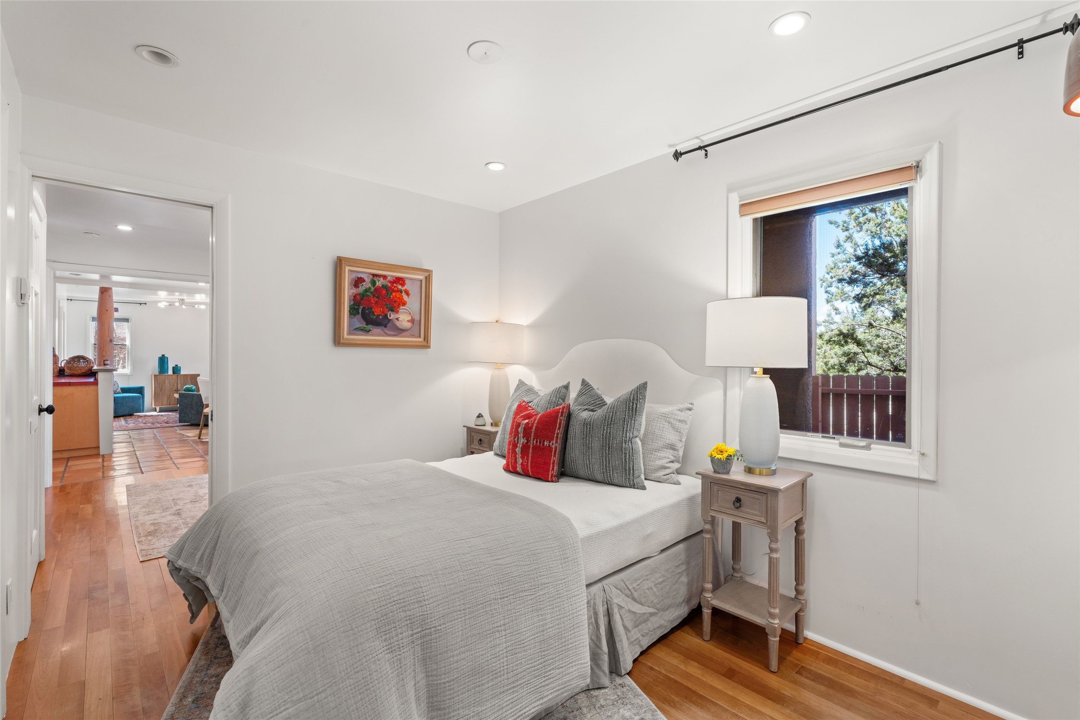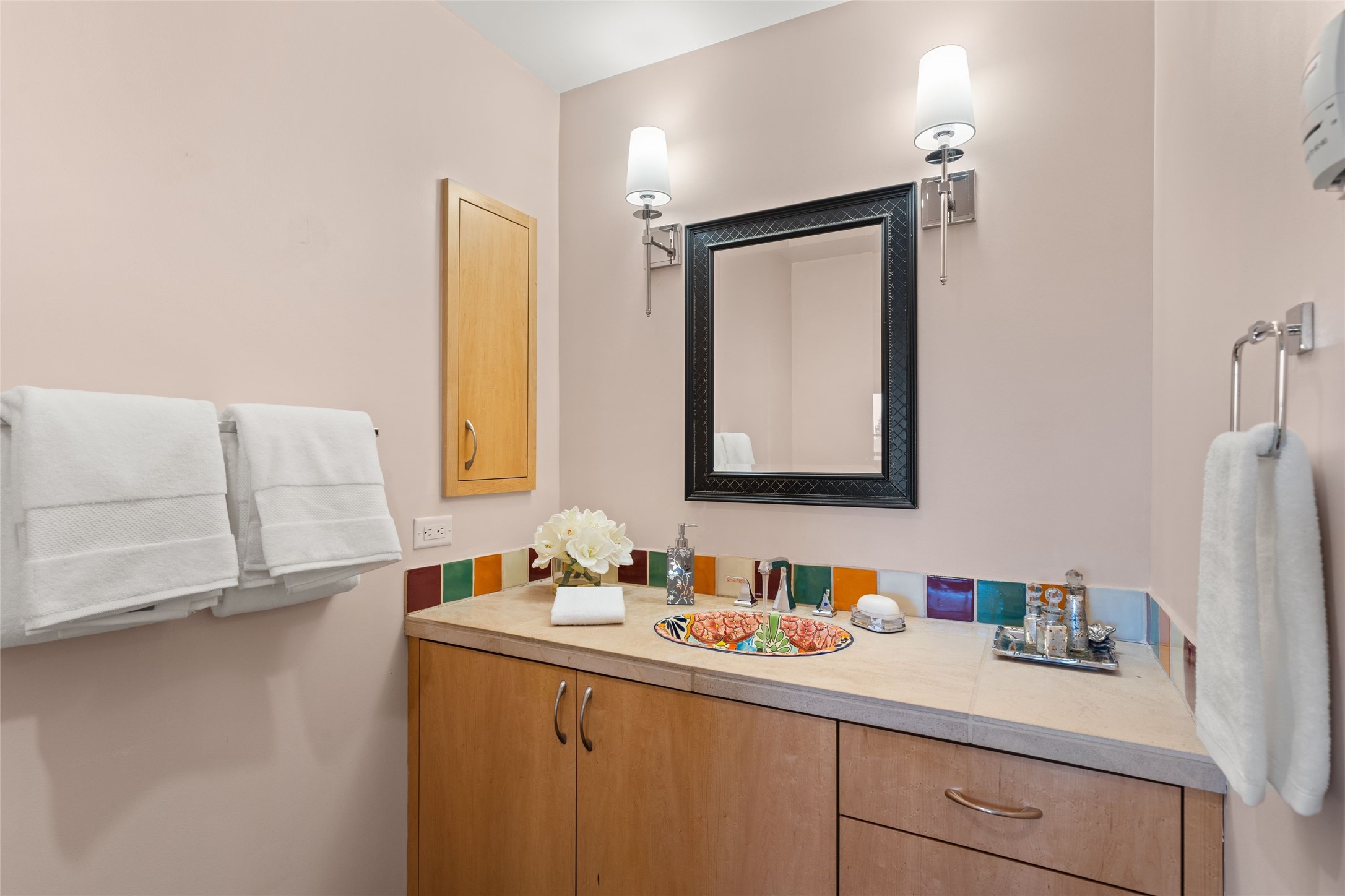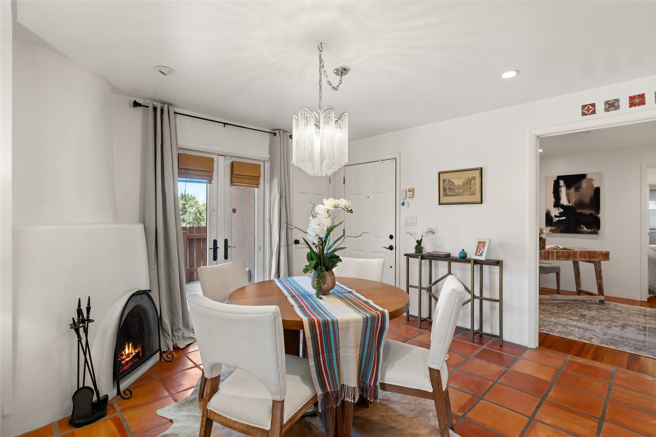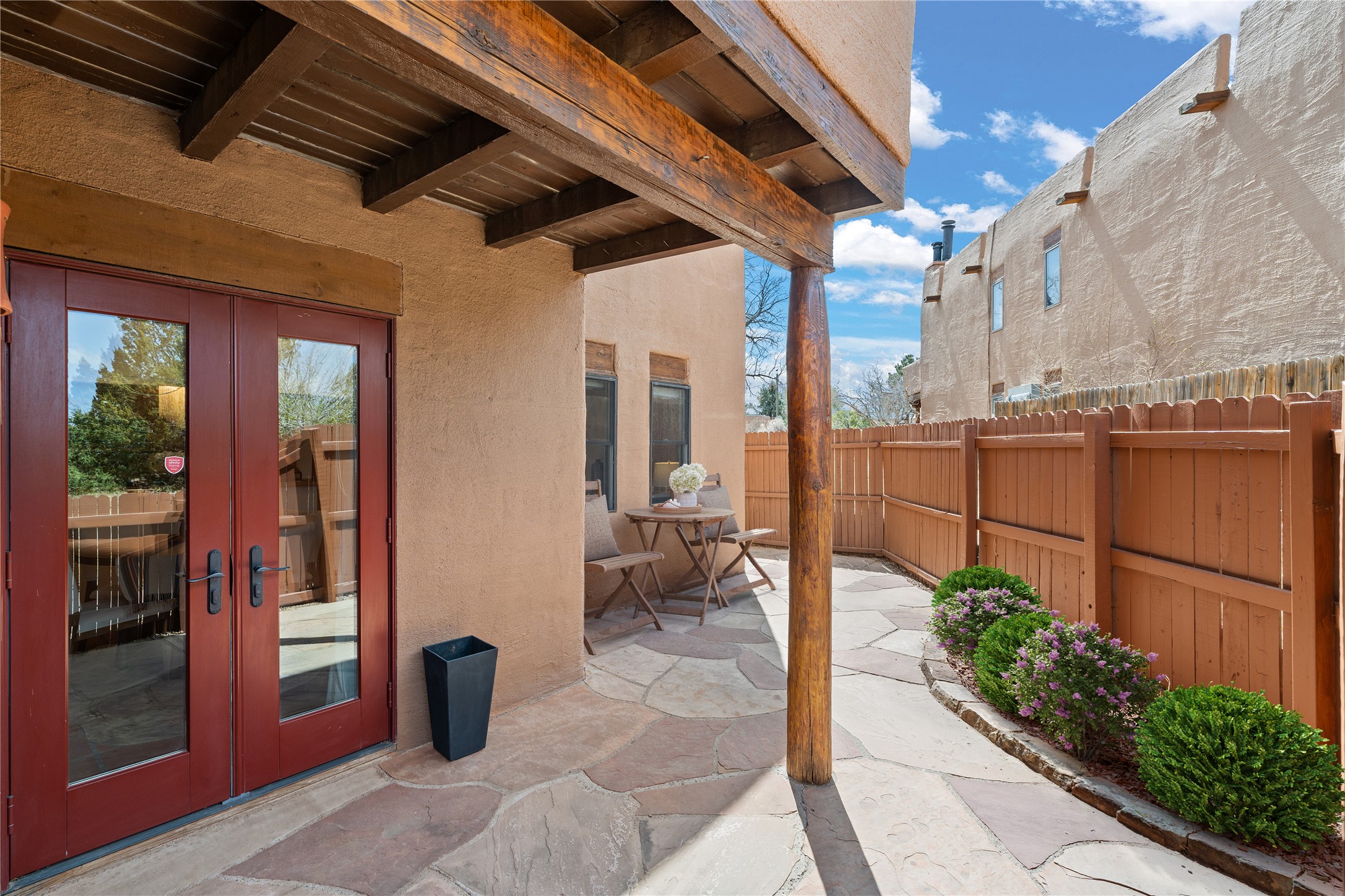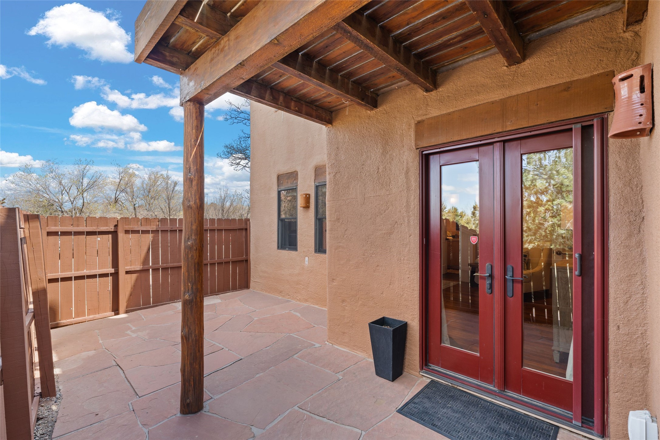 BRAND NEW PRICE!!! Tucked away down a private lane, this single level condo has exceptional CHARM! Beautifully updated and tastefully remodeled this light filled condo offers 1432 sf of living space in a flexible floor plan. It is pristine and was architecturally re-designed combining two units to create a one clever floor plan now offering a 3 bedroom, 3 bathroom condo. In addition it offers 2 spacious fenced courtyards and is an end unit situated on a gated 13.5 ac property. The community property offers a pool with ramada & BBQ, walking trails with foot bridges, vast Pinon groves, plus 2 large ponds filled with KOI and fountains. This is a MUST SEE condo!!The main living area offers dining room ensconced with a crystal chandelier and wood burning Kiva flowing into the living room. The kitchen appointed with custom cabinets, designer tile, stainless appliances, & the sink outfitted with a Hans Grohe faucet. Entire space opens to a west facing dining patio through charming French doors ....The large owner's suite is a retreat featuring wood floors, wood burning Kiva, walk-in closet, a beautifully appointed en-suite with Talavera sink, luxury jetted soaking tub, & separate shower with river rock floor. More French doors lead to 2nd fenced courtyard overlooking Pinion groves. The 2nd bed also includes en-suite, and the 3rd bed could also be perfect for office or den.The designated laundry area with washer/dryer has custom wood cabinets and counters for folding convenience. The Saltillo tiles & wood floors throughout offer radiant heat and efficient duct refrigerated air for the warmer seasons. If closet and storage space is a priority, well then this condo is for you! Aside from the 2 walk-in closets there are another 2 semi walk-in closets for storage. This is a rarity among condos!This is a one of a kind end unit that lives like a home with windows on all three sides, plus 4 designated parking spaces right next to the unit for your convenience, and excellent proximity to shopping centers and Ragle Park across the street.* Seller willing to pay 6 months of HOA dues.*Excellent opportunity to own large turn key condo that is priced to sell!