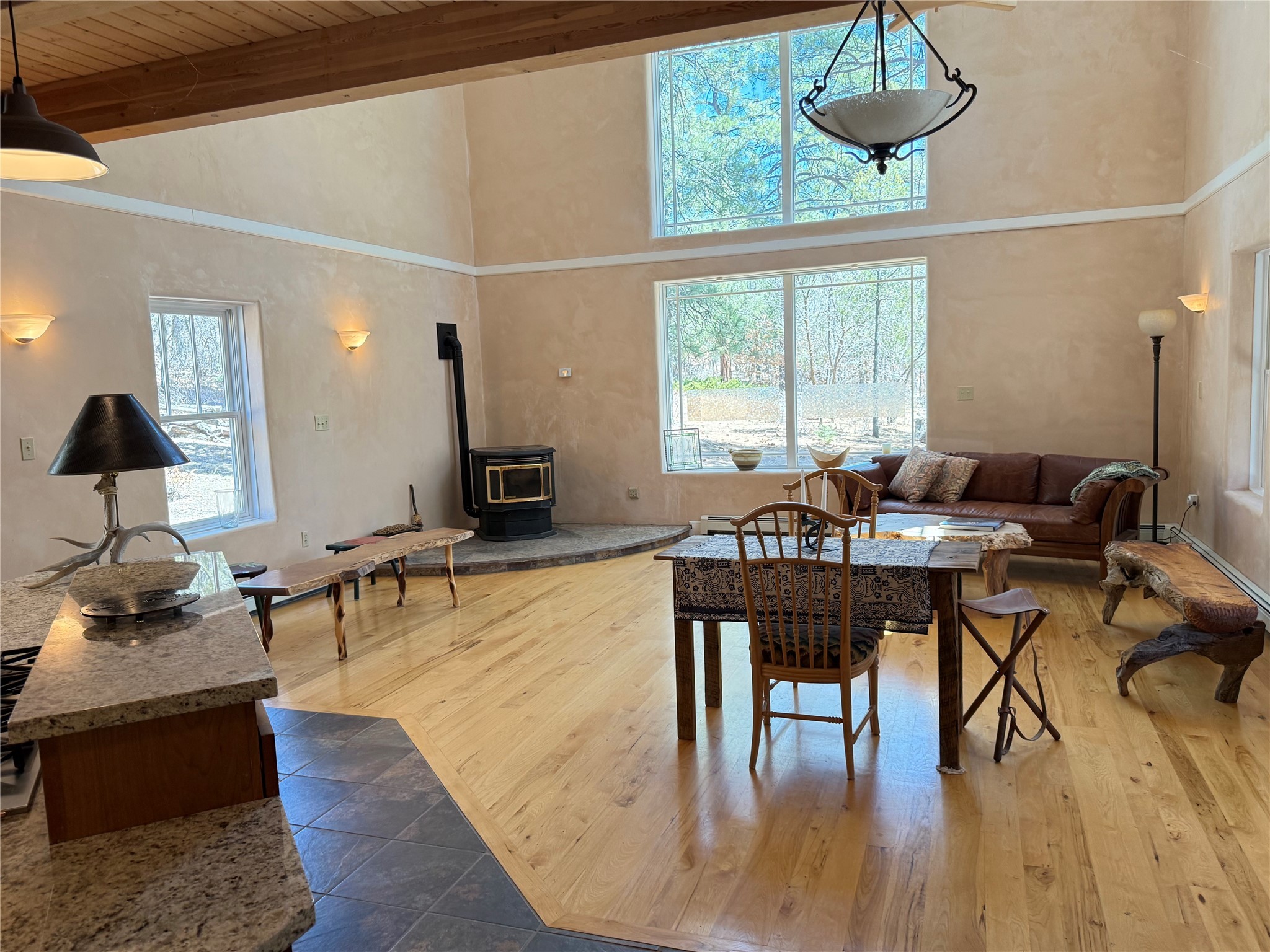 If you're looking for style, comfort and space for your family, this the place for you. Conveniently located off of State Rd 512 which leads to the Brazos Cliffs yet it offers peaceful serenity and seclusion. This custom home offers plenty of extras to include a detached two car garage with a workshop and a greenhouse for those who have a green thumb. There is a lovely back deck for sitting and relaxing and listening to the breeze blowing gently through the tall pines and watching wildlife such as deer, elk, squirrels. The inside offers hardwood flooring, tiled floors, custom cabinets, custom tiled showers, large living spaces for your family to stretch out. The kitchen opens up to the living area and the windows invite the outdoors in. Curl up in front of the pellet stove on those cool evenings. Also, for those fly fishing enthusiasts, the public access to the Brazos river is just a few miles away. There is also the Chama River and El Vado and Heron Lake state parks. The Carson National forest is also near for those who love to explore. This home offers everthing you need for stylish comfort. Perfect for four season living or weekend and summer use!