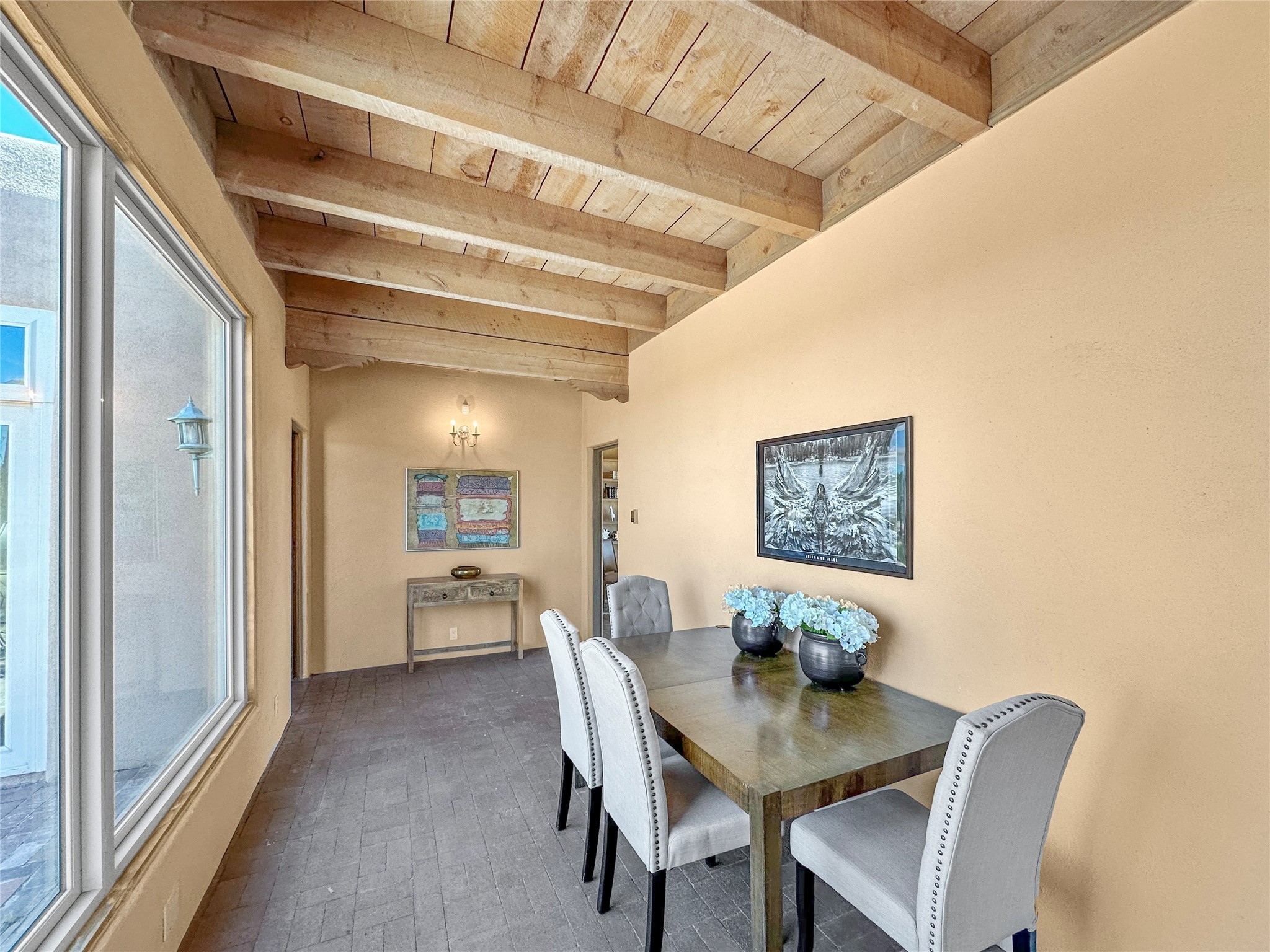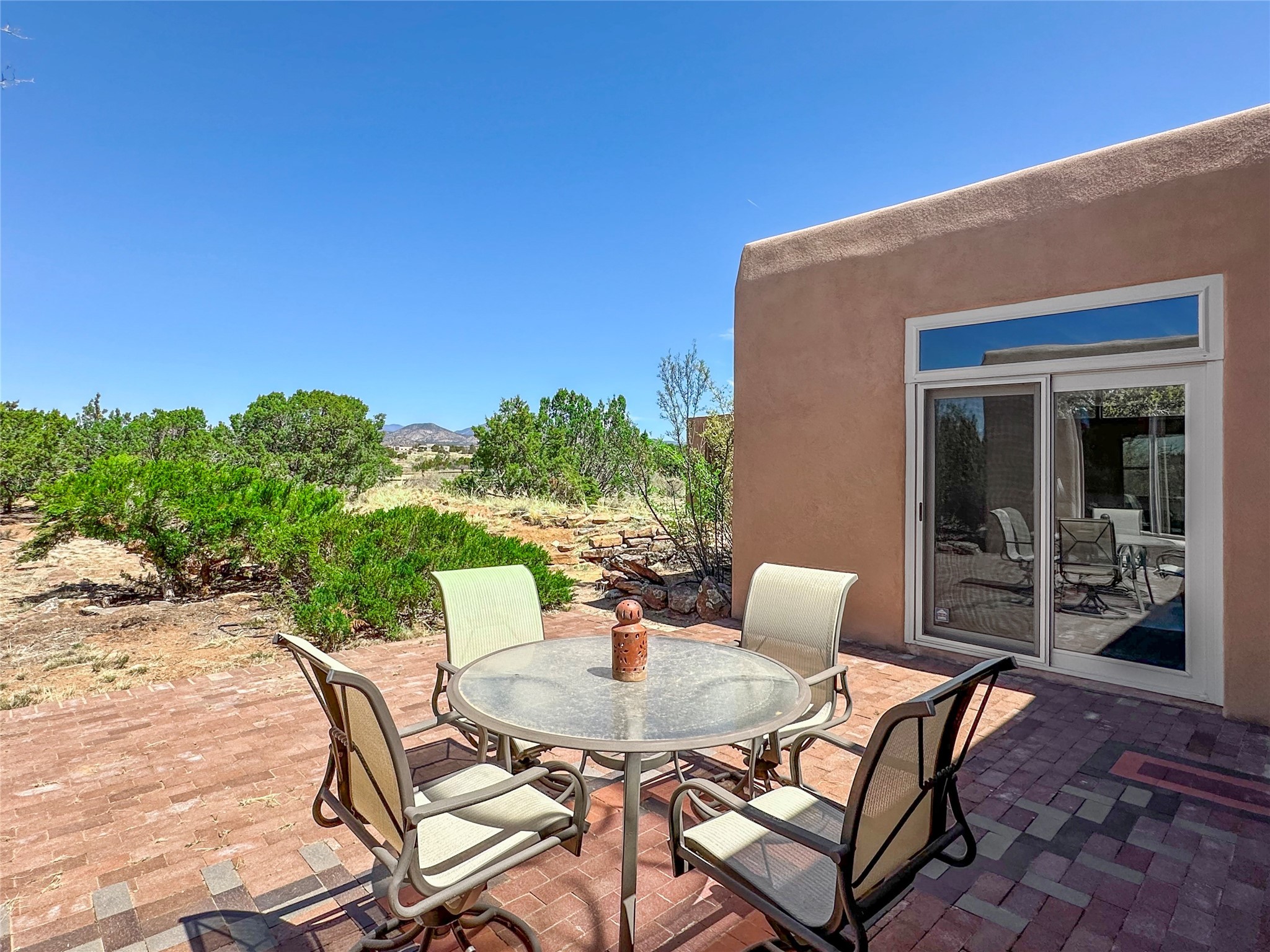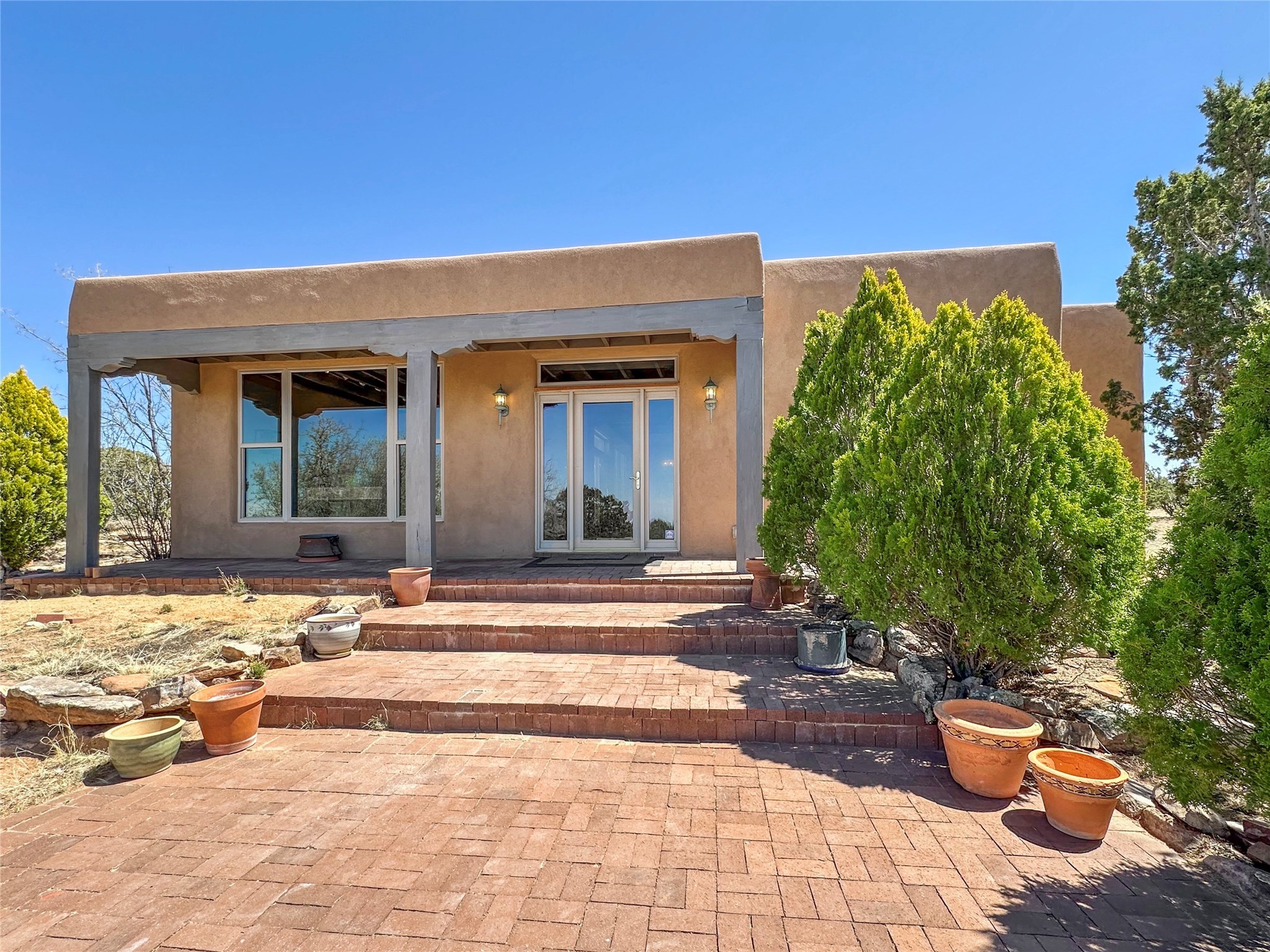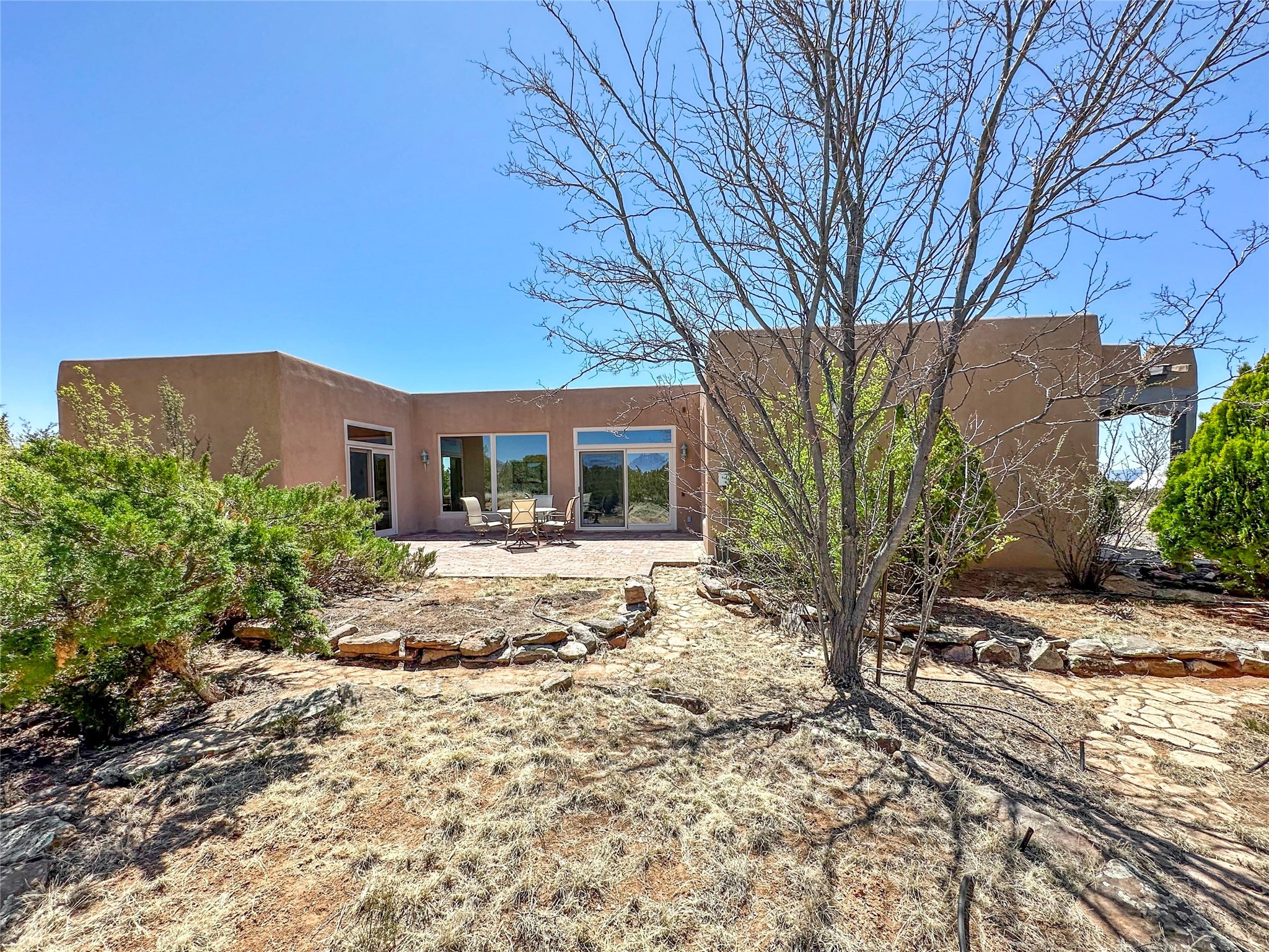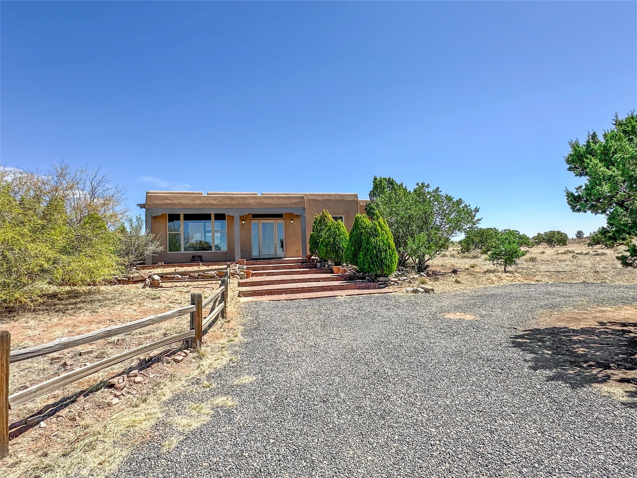Welcome to your serene oasis! This stunning 3-bedroom, 2-bath home sits on 5 acres with breathtaking views, offering plenty of privacy. Inside, you'll be greeted by abundant natural light from multiple skylights that create a warm and inviting atmosphere. Eldorado is a nature lover's paradise with miles of hiking and biking trails, a beautiful wilderness area, dog Park for summertime fun. Enjoy the shopping, and dining options, all while experiencing dark night skies so clear, you can see the Milky Way! Best of all, you'll be just 20 minutes from the vibrant Santa Fe Plaza, making this property the perfect blend of tranquility and convenience. Don't miss your opportunity to own this slice of paradise!