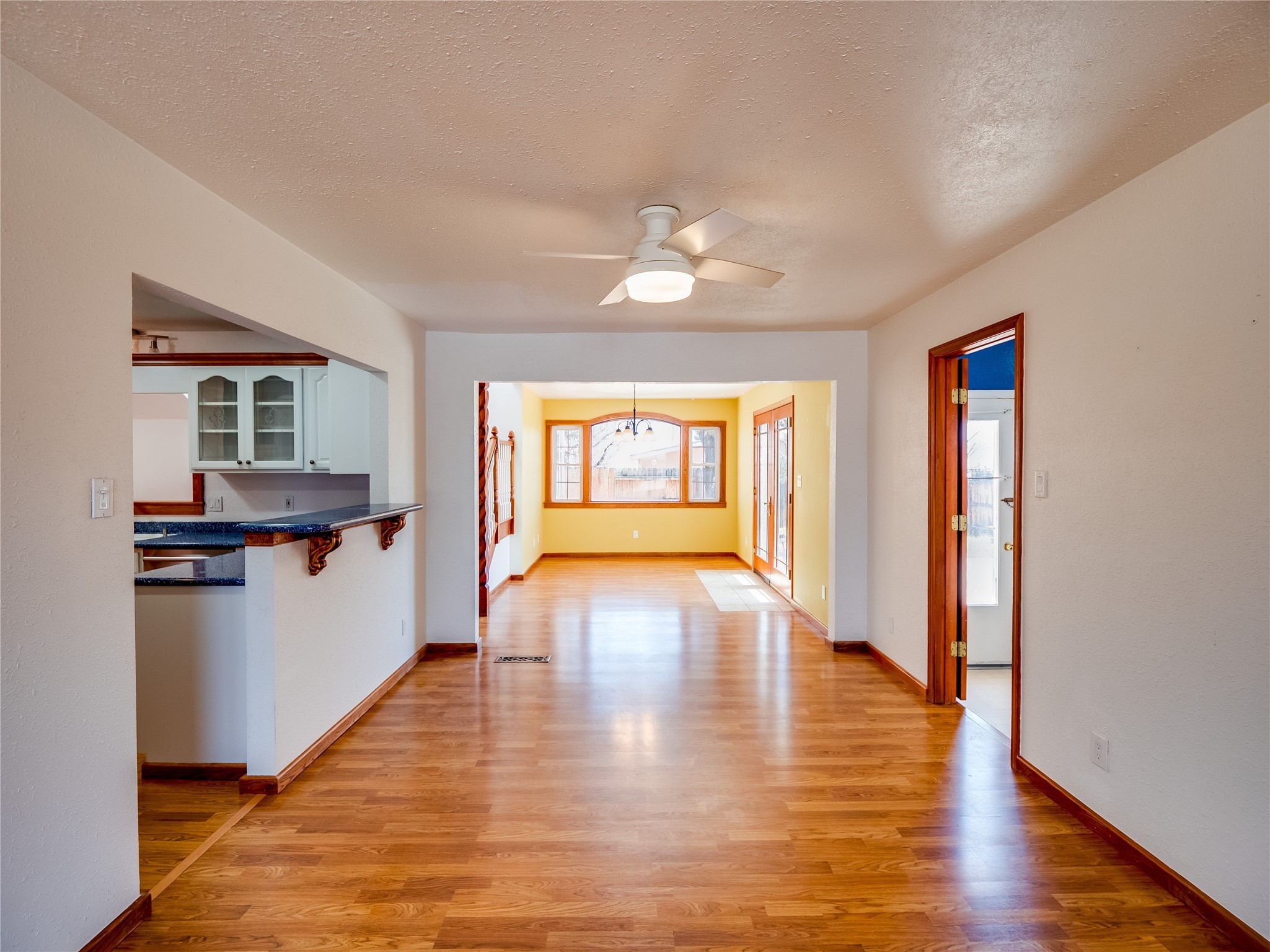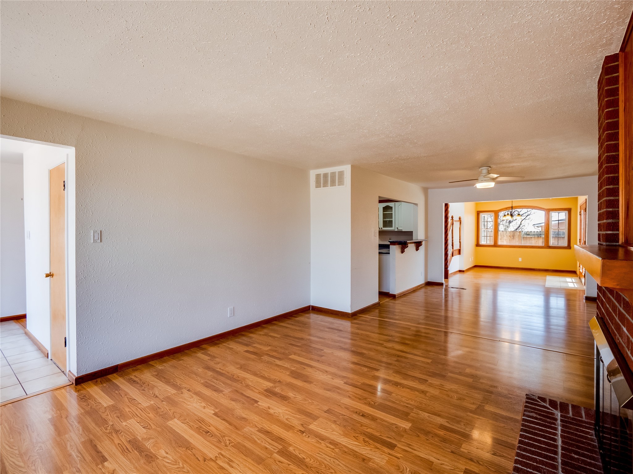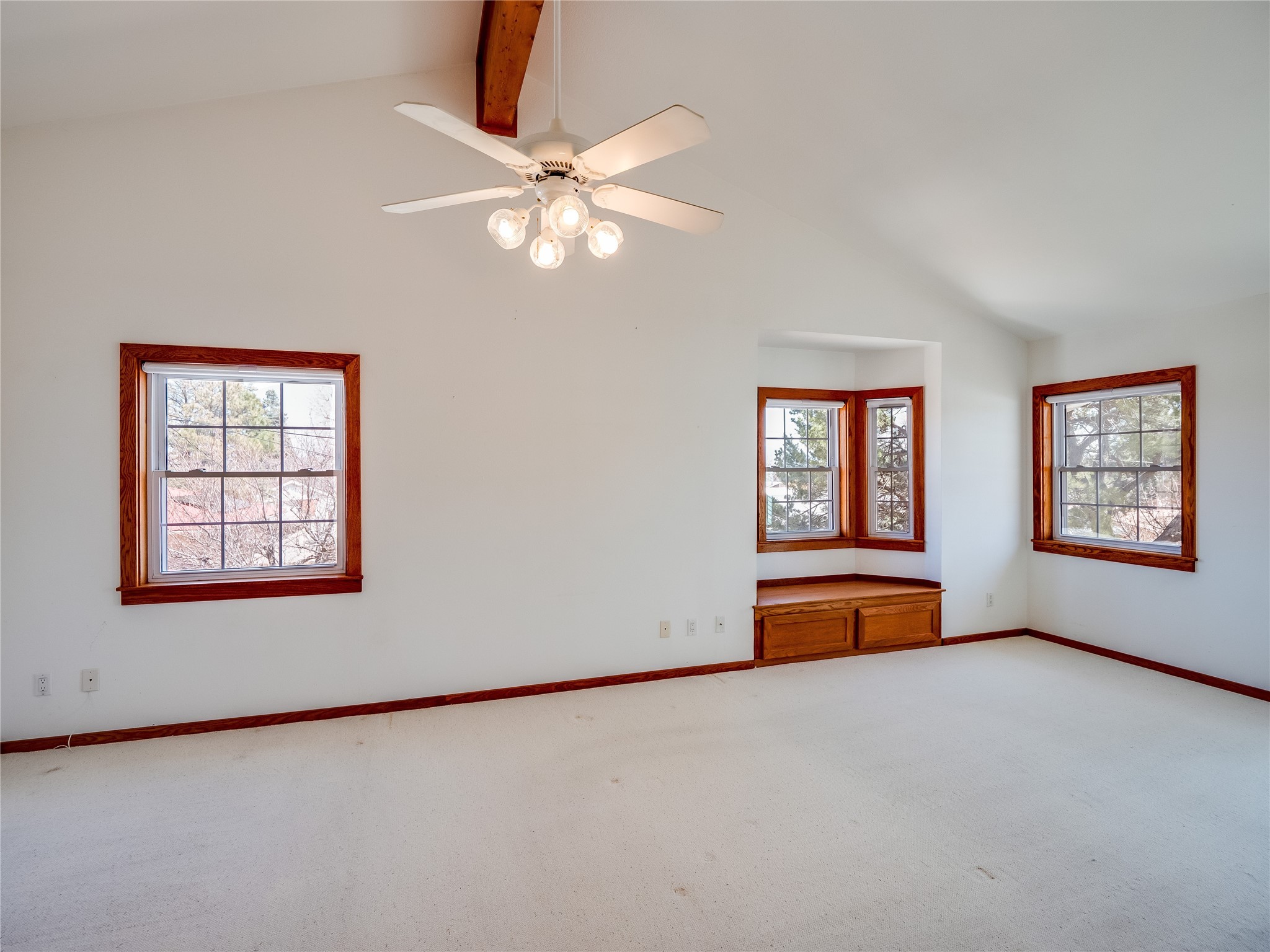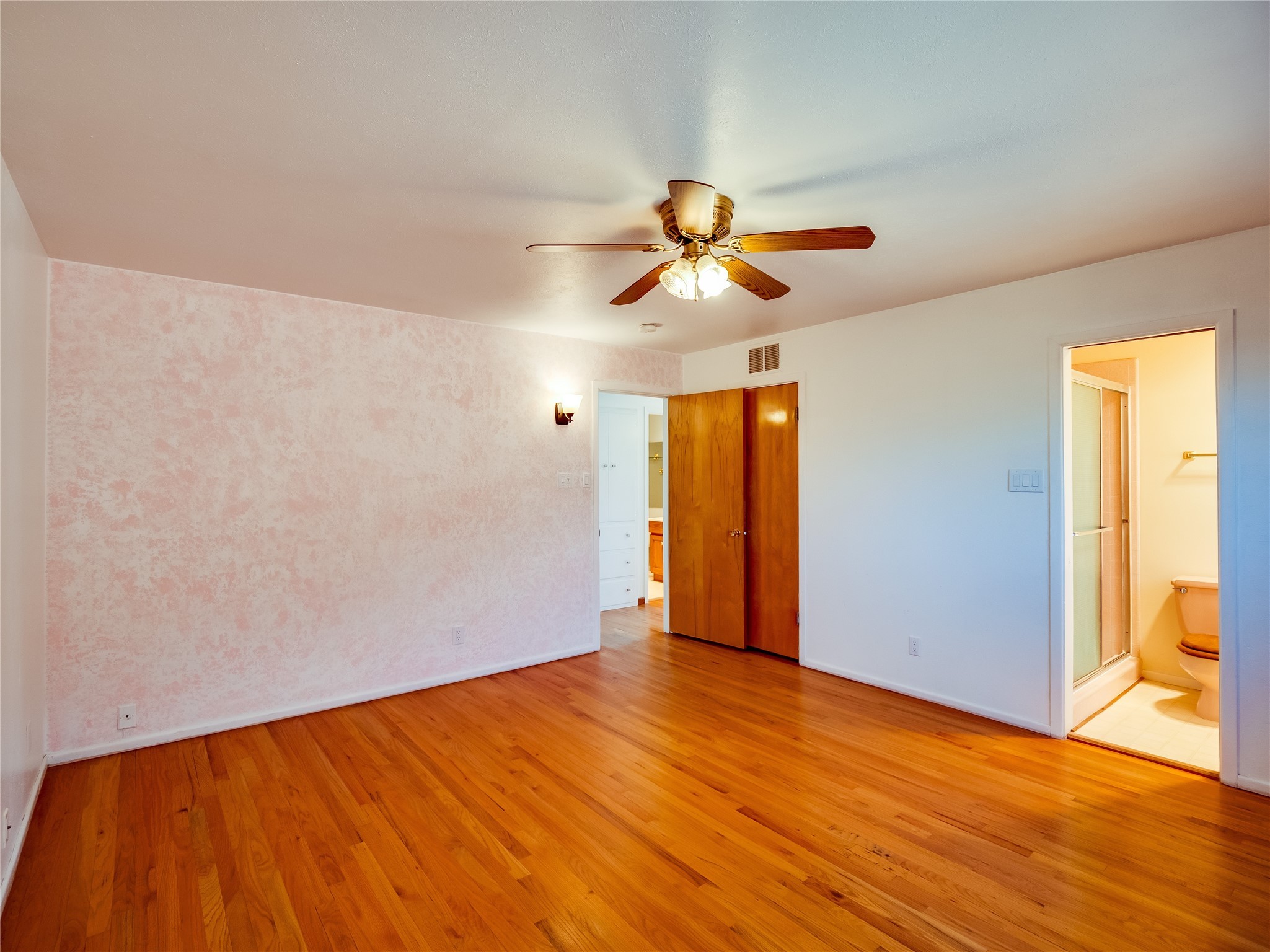 Welcome to this inviting two-story home located in the heart of White Rock, offering ample space, character-filled design, and a functional layout ideal for comfortable living. Nestled behind a large, low-maintenance front yard. Step into the foyer and head right into the cozy yet spacious living room, where warm wood floors and wood-paneled walls flank a charming brick wood-burning fireplace--the perfect centerpiece for relaxing evenings. Just off the living room is the bright, expansive kitchen featuring crisp white cabinetry, solid surface counters, tile flooring, a tile backsplash above the stove, stainless steel appliances, and bar seating for casual meals or entertaining. The kitchen flows seamlessly into the open dining room, filled with natural light and offering French doors that lead to the backyard patio, creating an easy indoor-outdoor living experience. Down the front hallway, you'll find a full guest bathroom and two generously sized guest bedrooms--one of which features its own private bathroom with a beautifully tiled walk-in shower and a walk-in closet. A separate hallway in the back of the home leads to two additional carpeted guest bedrooms, one with its own walk-in closet, and a bright and airy full bathroom with classic white tile and a single-sink vanity. Up the dramatic wood staircase is the spacious and private primary en-suite. Vaulted beamed ceilings and large windows make the space feel open and serene, while the private deck offers a peaceful outdoor escape. The suite also includes a large walk-in closet and a luxurious bathroom featuring a walk-in shower, a deep jetted soaking tub, and a double-sink vanity, creating the perfect retreat. The fully fenced backyard is ideal for entertaining or relaxing, complete with a cement patio, mature trees and landscaping, a shed, and a dog enclosure. Located close to trails, parks, and shopping, this home offers the best of White Rock living. Don't miss out--schedule your tour today!