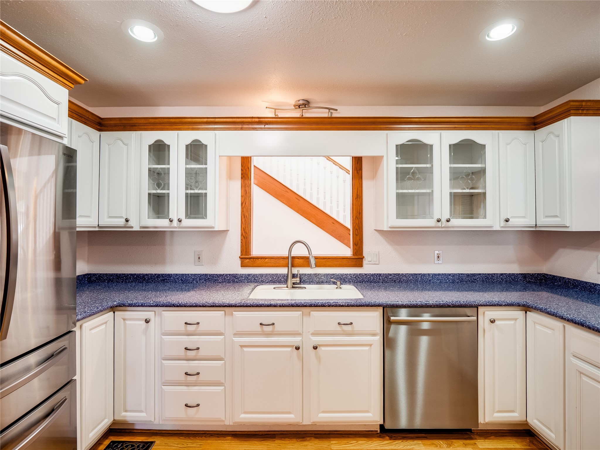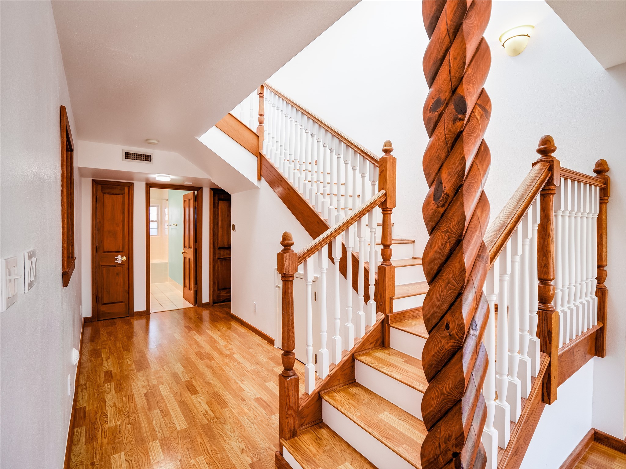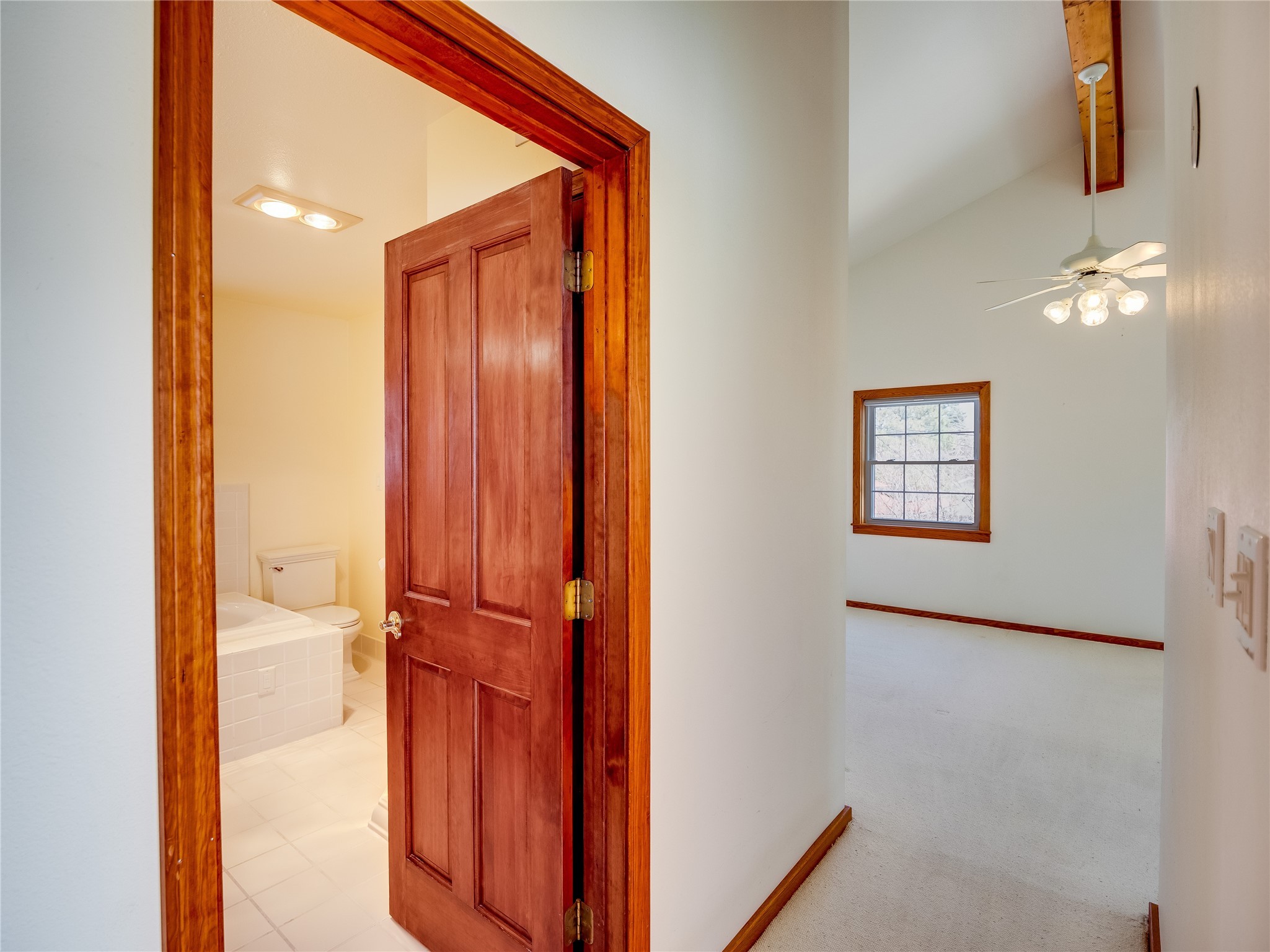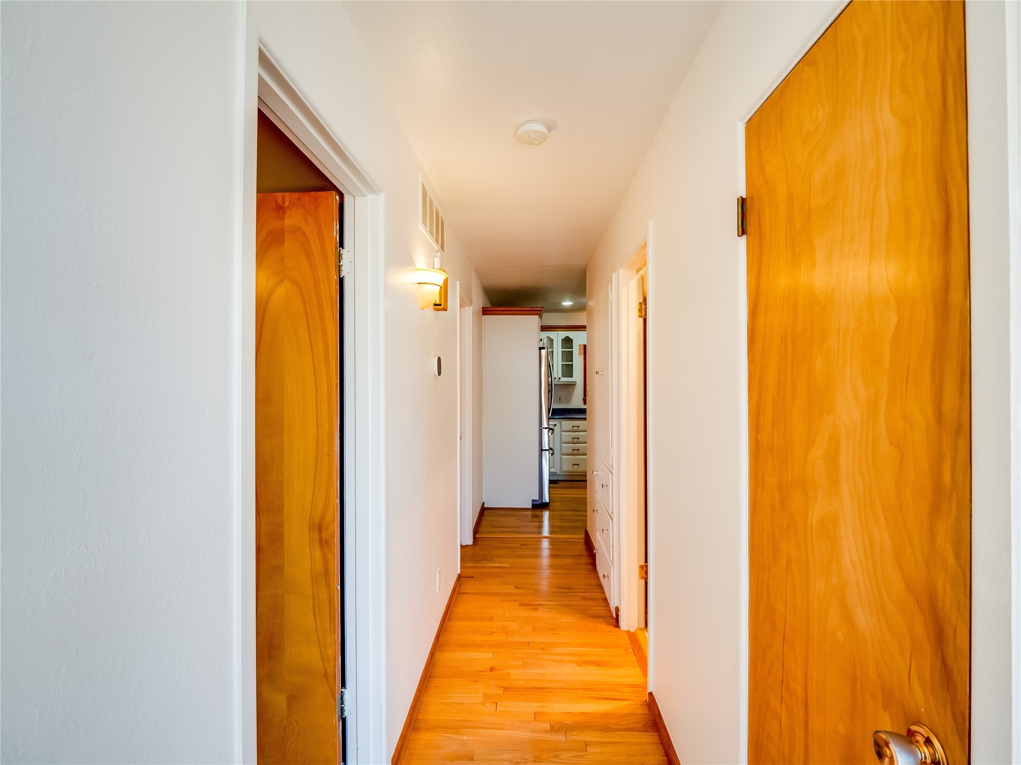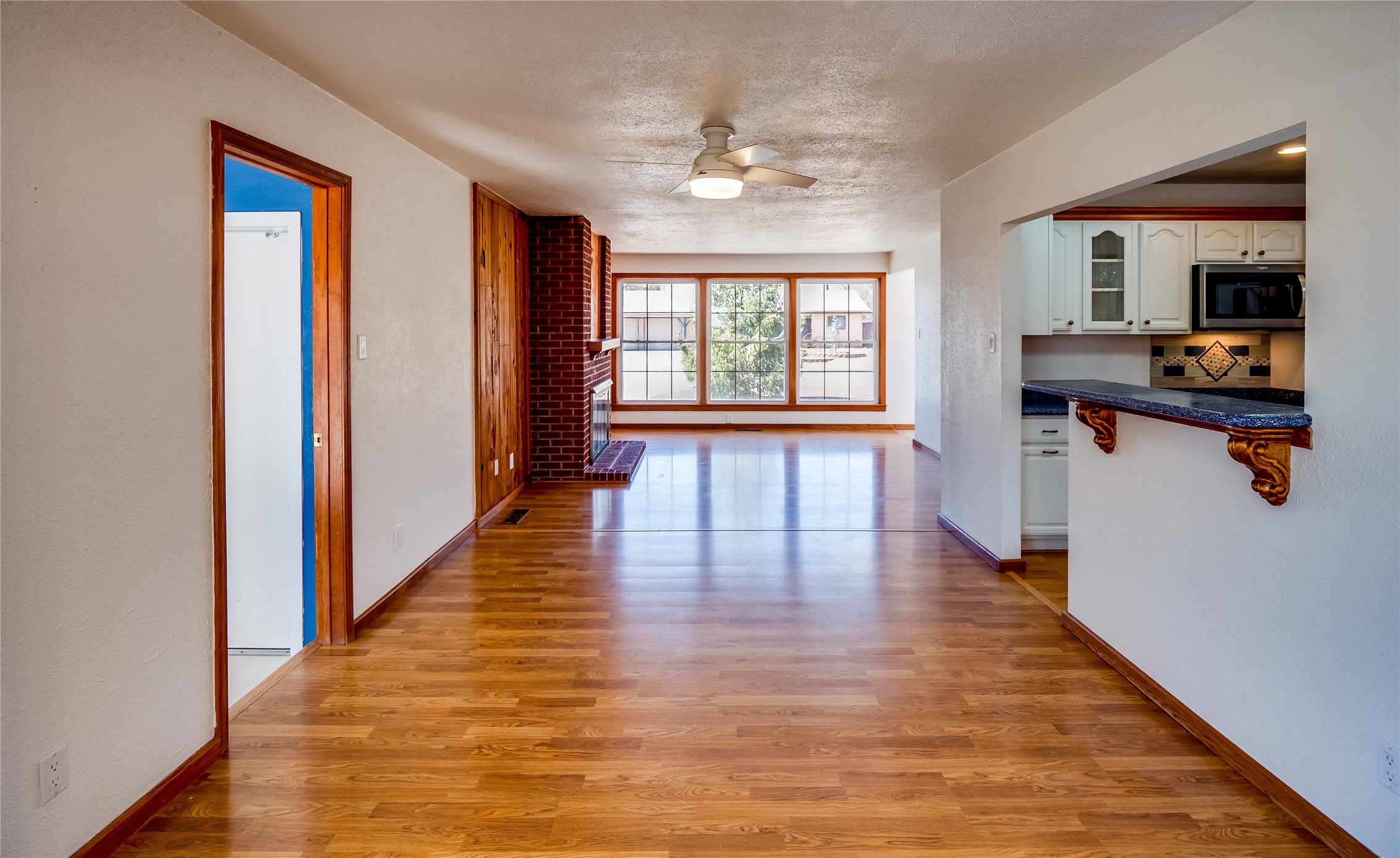 Welcome to this inviting two-story home located in the heart of White Rock, offering ample space, character-filled design, and a functional layout ideal for comfortable living. Nestled behind a large, low-maintenance front yard. Step into the foyer and head right into the cozy yet spacious living room, where warm wood floors and wood-paneled walls flank a charming brick wood-burning fireplace--the perfect centerpiece for relaxing evenings. Just off the living room is the bright, expansive kitchen featuring crisp white cabinetry, solid surface counters, tile flooring, a tile backsplash above the stove, stainless steel appliances, and bar seating for casual meals or entertaining. The kitchen flows seamlessly into the open dining room, filled with natural light and offering French doors that lead to the backyard patio, creating an easy indoor-outdoor living experience. Down the front hallway, you'll find a full guest bathroom and two generously sized guest bedrooms--one of which features its own private bathroom with a beautifully tiled walk-in shower and a walk-in closet. A separate hallway in the back of the home leads to two additional carpeted guest bedrooms, one with its own walk-in closet, and a bright and airy full bathroom with classic white tile and a single-sink vanity. Up the dramatic wood staircase is the spacious and private primary en-suite. Vaulted beamed ceilings and large windows make the space feel open and serene, while the private deck offers a peaceful outdoor escape. The suite also includes a large walk-in closet and a luxurious bathroom featuring a walk-in shower, a deep jetted soaking tub, and a double-sink vanity, creating the perfect retreat. The fully fenced backyard is ideal for entertaining or relaxing, complete with a cement patio, mature trees and landscaping, a shed, and a dog enclosure. Located close to trails, parks, and shopping, this home offers the best of White Rock living. Don't miss out--schedule your tour today!