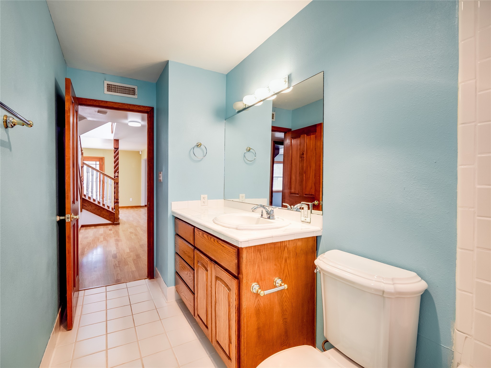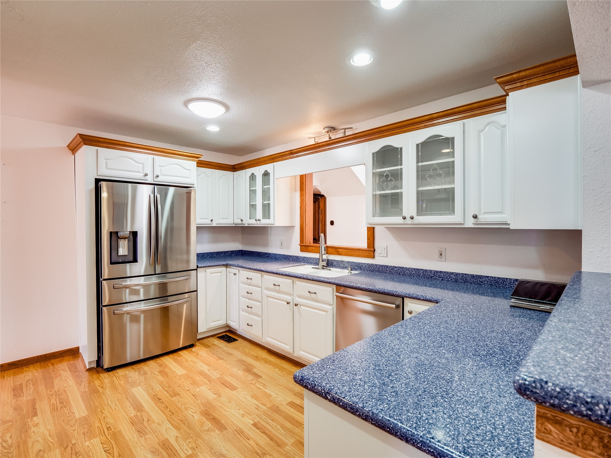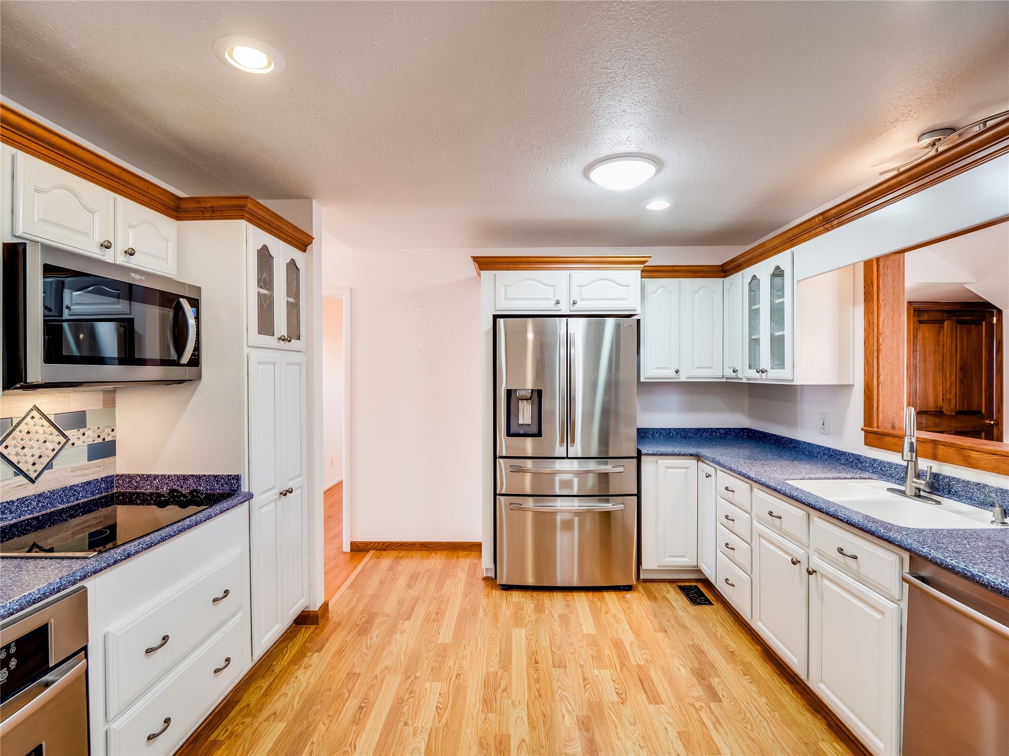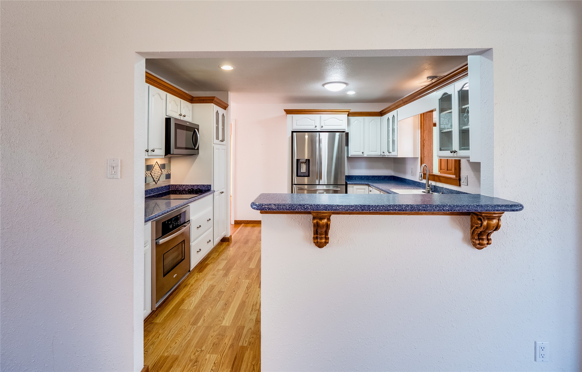Welcome to this inviting two-story home located in the heart of White Rock, offering ample space, character-filled design, and a functional layout ideal for comfortable living. Nestled behind a large, low-maintenance front yard. Step into the foyer and head right into the cozy yet spacious living room, where warm wood floors and wood-paneled walls flank a charming brick wood-burning fireplace--the perfect centerpiece for relaxing evenings. Just off the living room is the bright, expansive kitchen featuring crisp white cabinetry, solid surface counters, tile flooring, a tile backsplash above the stove, stainless steel appliances, and bar seating for casual meals or entertaining. The kitchen flows seamlessly into the open dining room, filled with natural light and offering French doors that lead to the backyard patio, creating an easy indoor-outdoor living experience. Down the front hallway, you'll find a full guest bathroom and two generously sized guest bedrooms--one of which features its own private bathroom with a beautifully tiled walk-in shower and a walk-in closet. A separate hallway in the back of the home leads to two additional carpeted guest bedrooms, one with its own walk-in closet, and a bright and airy full bathroom with classic white tile and a single-sink vanity. Up the dramatic wood staircase is the spacious and private primary en-suite. Vaulted beamed ceilings and large windows make the space feel open and serene, while the private deck offers a peaceful outdoor escape. The suite also includes a large walk-in closet and a luxurious bathroom featuring a walk-in shower, a deep jetted soaking tub, and a double-sink vanity, creating the perfect retreat. The fully fenced backyard is ideal for entertaining or relaxing, complete with a cement patio, mature trees and landscaping, a shed, and a dog enclosure. Located close to trails, parks, and shopping, this home offers the best of White Rock living. Don't miss out--schedule your tour today!