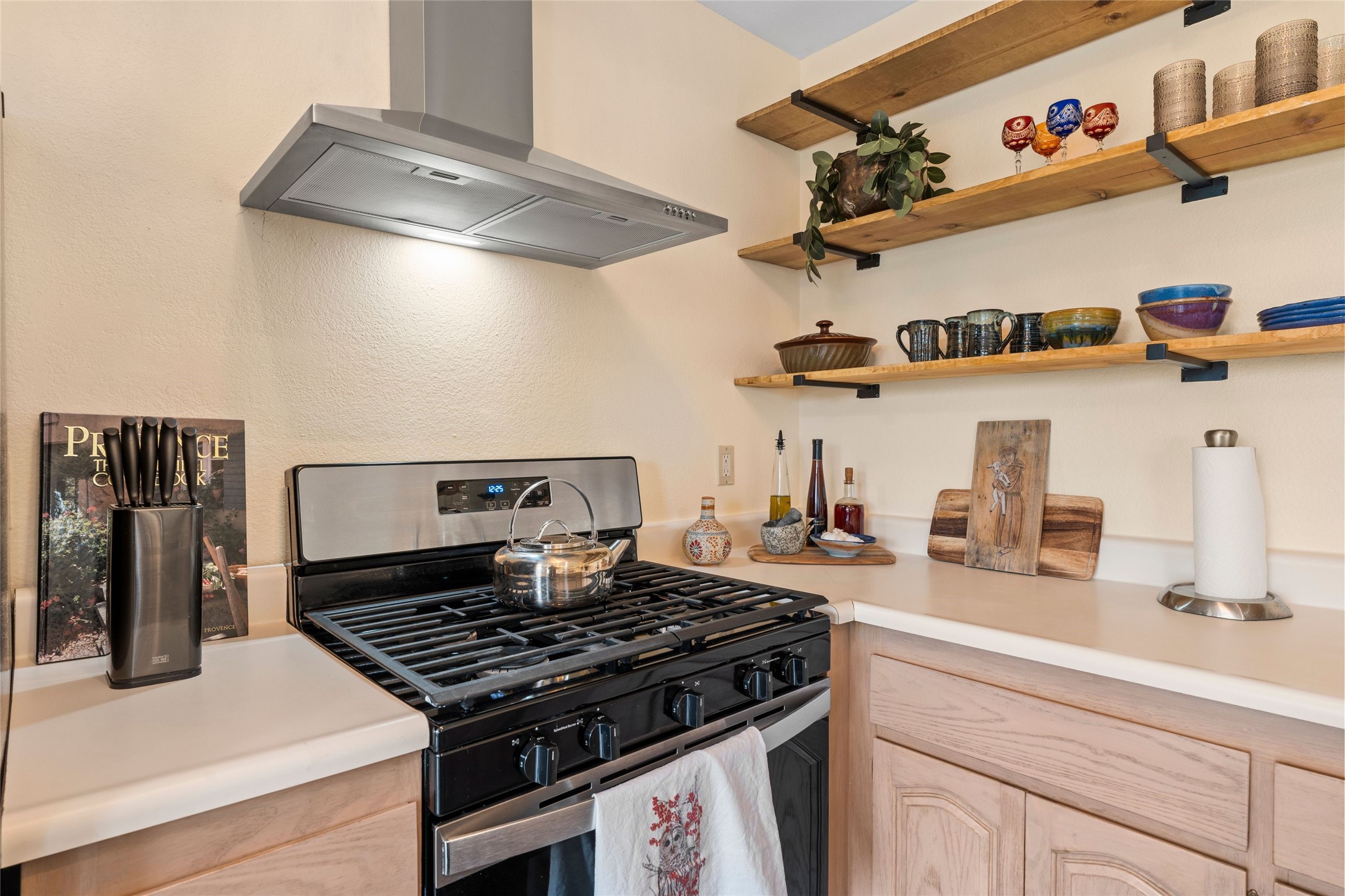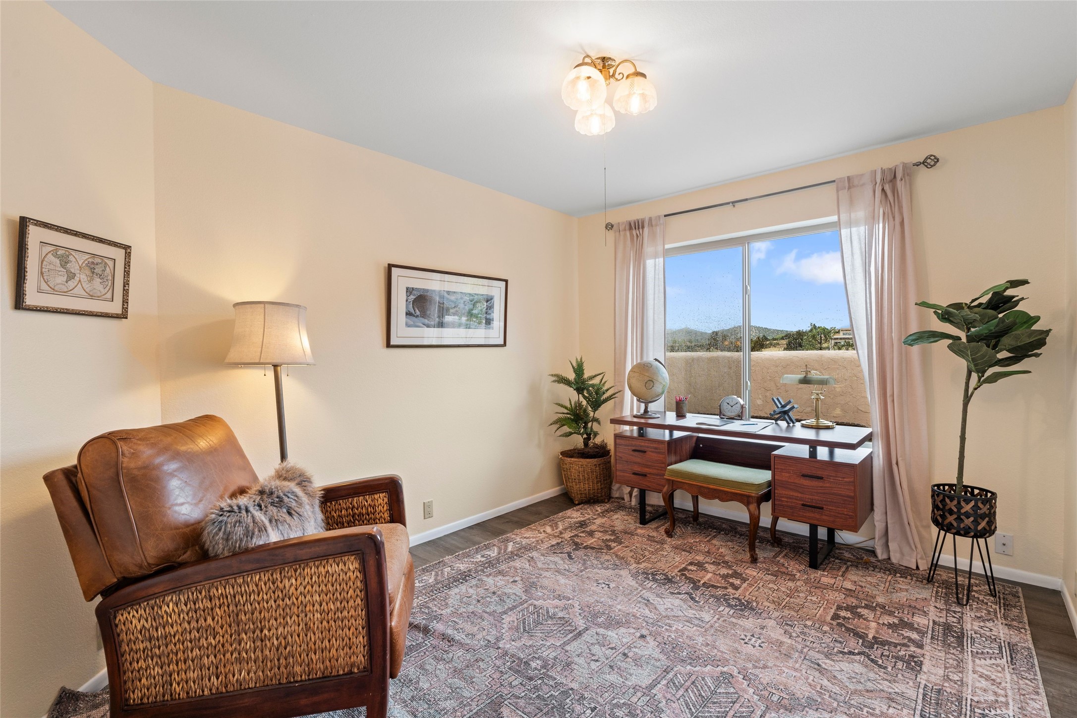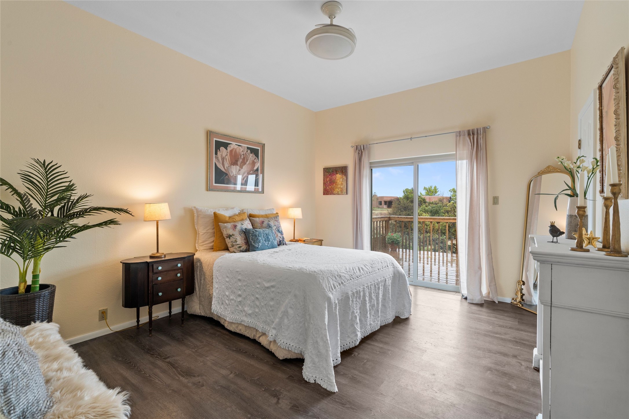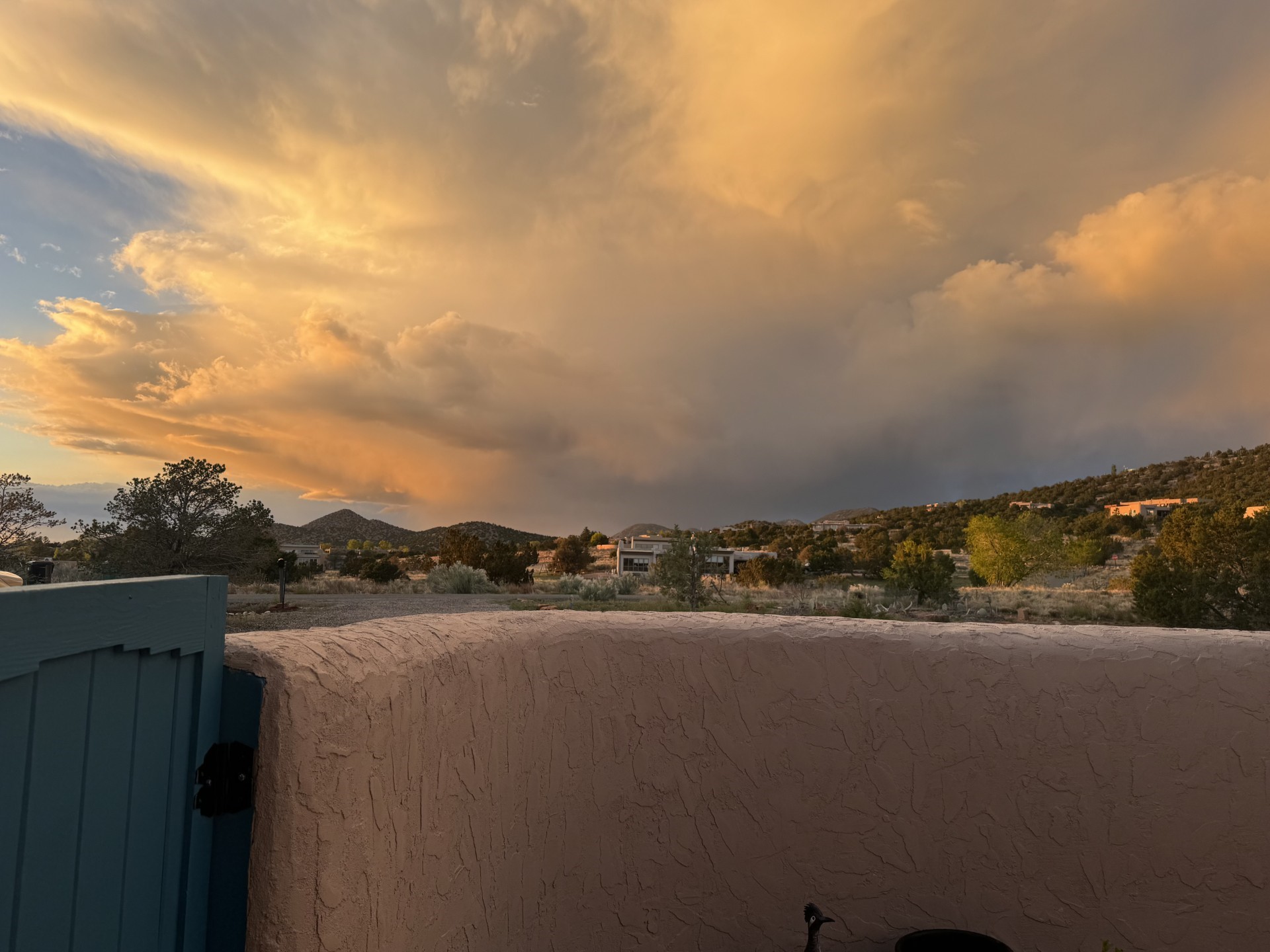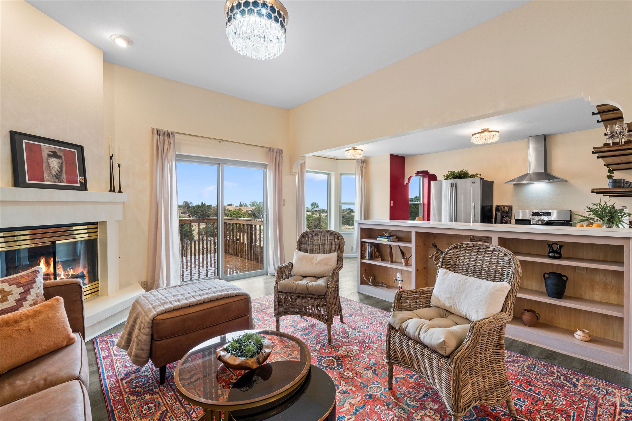 Here's a little pearl on a pretty lot with lovely views of the Sandia/Ortiz and Jemez mountains and the Sangre foothills. Updated by the current owners, this sweet home is filled with natural light, and move-in ready. Features include a six-year-old membrane roof, well-maintained stucco, new windows in 2024, new central air conditioning, new appliances, and a big finished garage with workshop area. Great location on all paved roads in the front of Eldorado, near the Agora and La Tienda shopping malls, and 15 minutes to the Plaza. Una Casa Mueca!