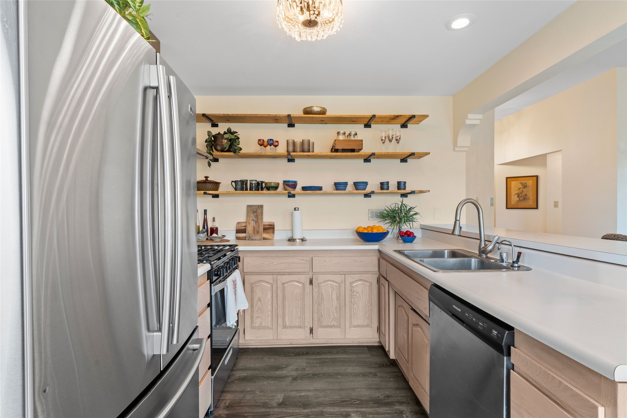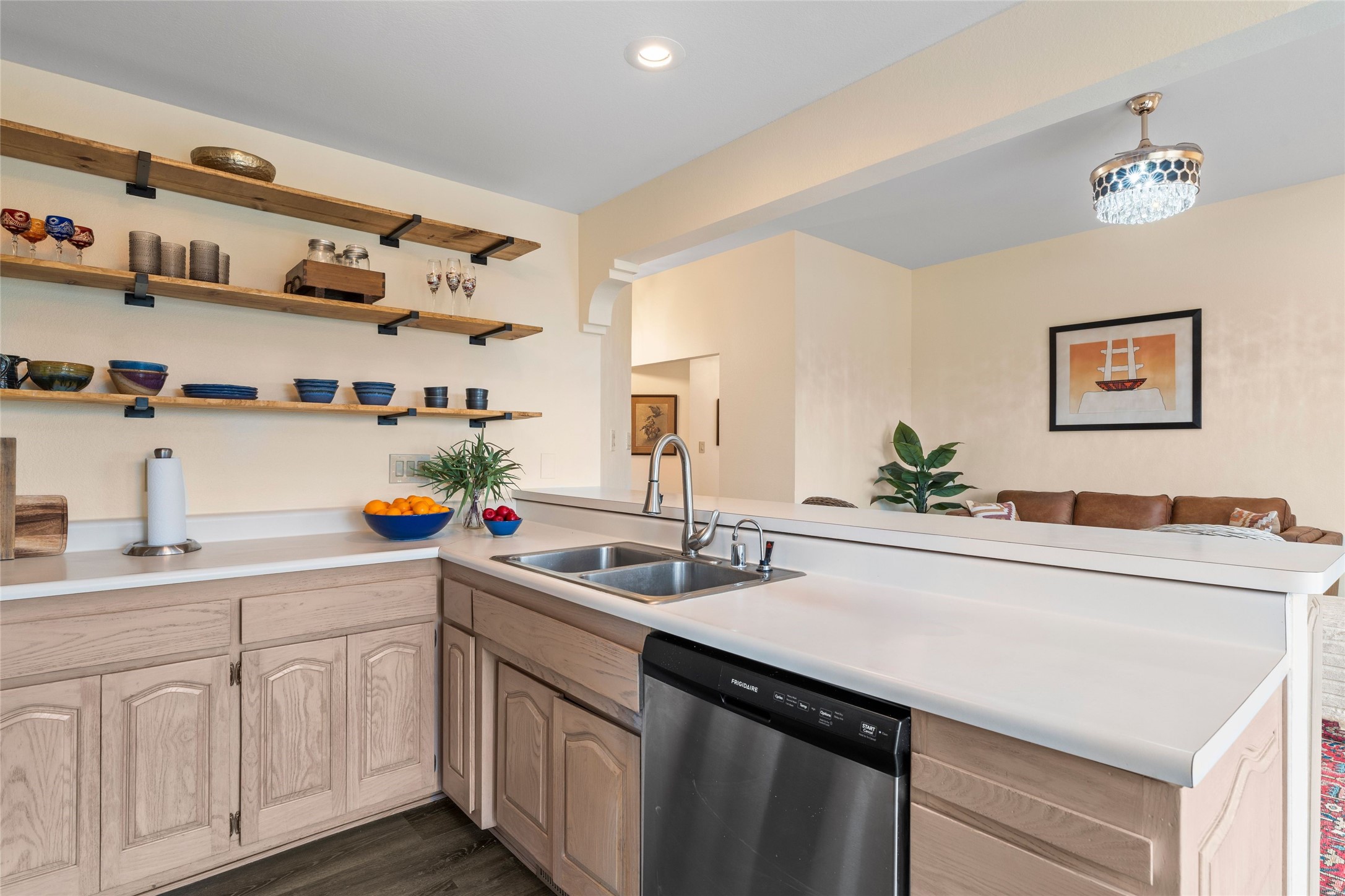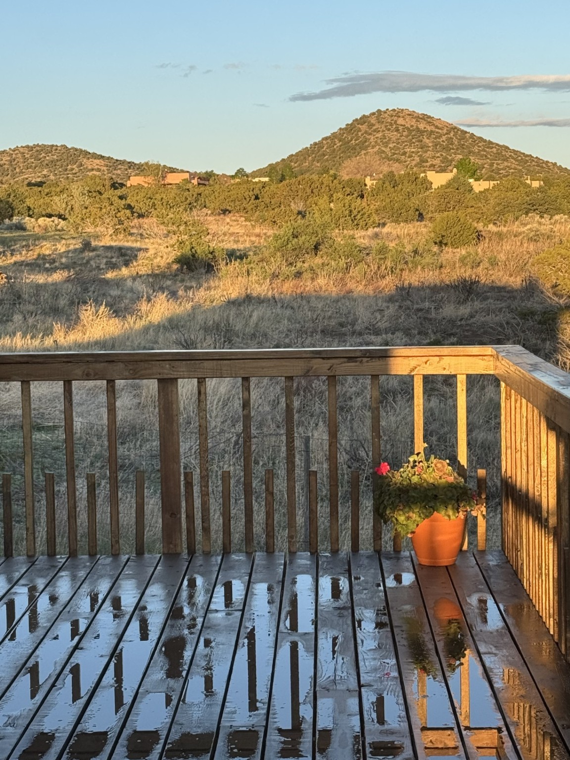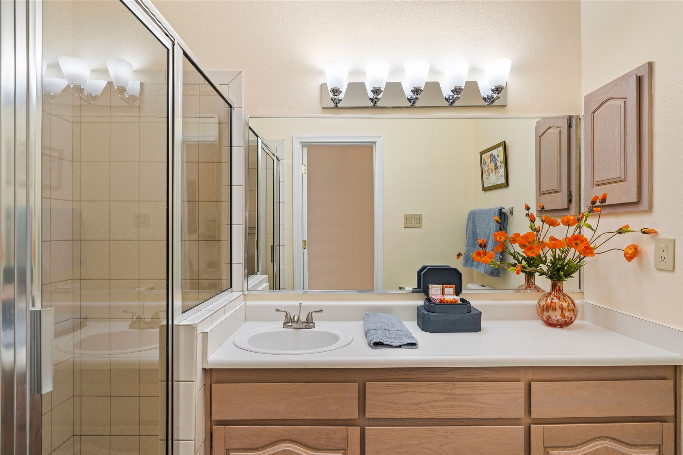 Here's a little pearl on a pretty lot with lovely views of the Sandia/Ortiz and Jemez mountains and the Sangre foothills. Updated by the current owners, this sweet home is filled with natural light, and move-in ready. Features include a six-year-old membrane roof, well-maintained stucco, new windows in 2024, new central air conditioning, new appliances, and a big finished garage with workshop area. Great location on all paved roads in the front of Eldorado, near the Agora and La Tienda shopping malls, and 15 minutes to the Plaza. Una Casa Mueca!