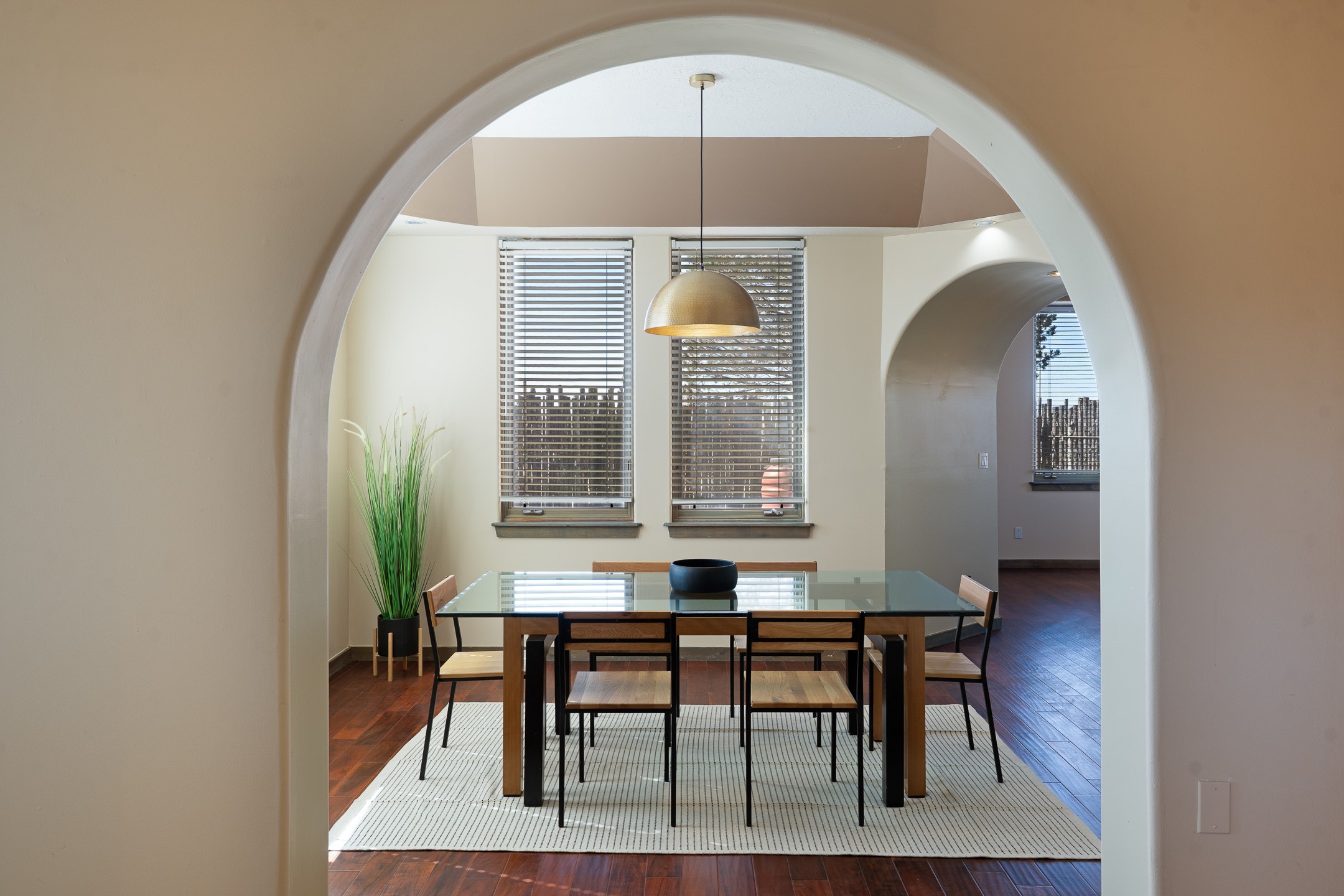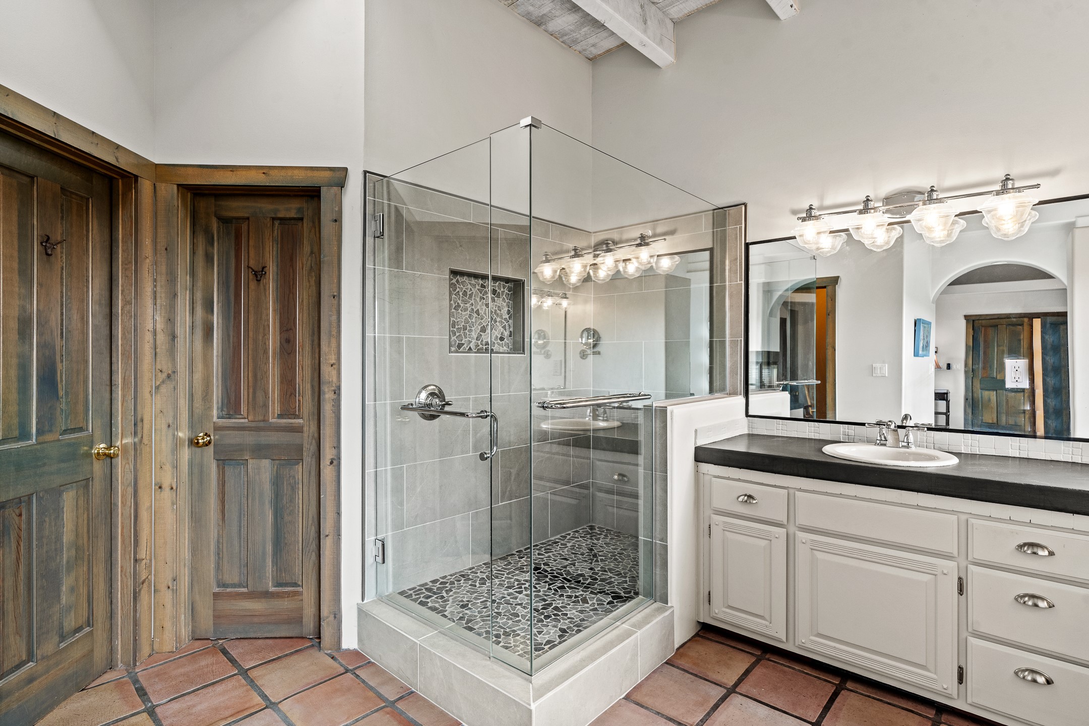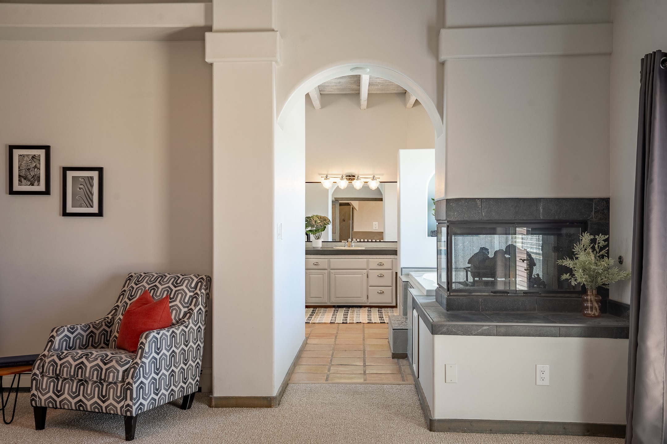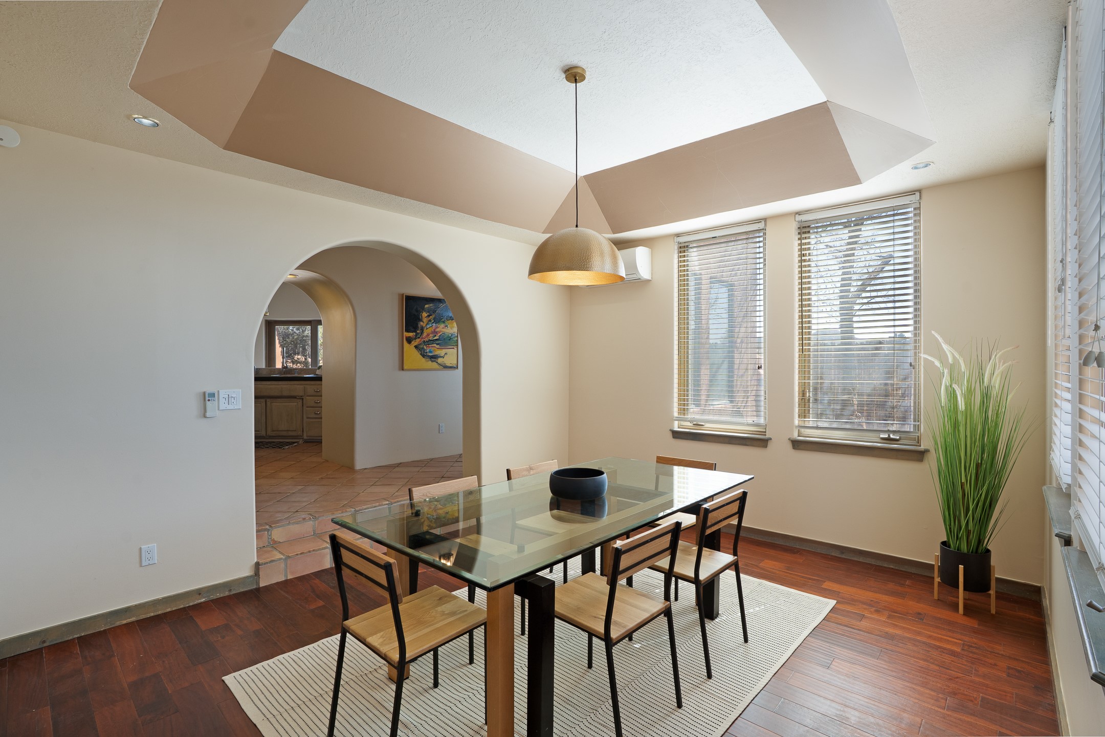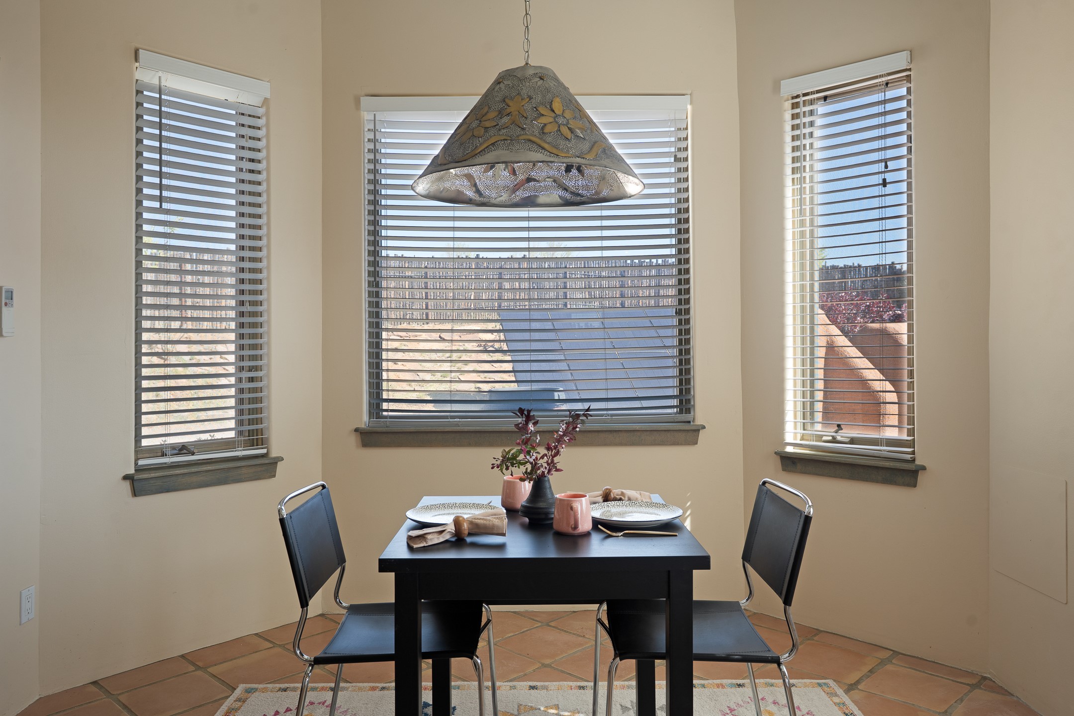 Located at the end of a quiet cul-de-sac in Eldorado, just a short walk from Eldorado Elementary and minutes from The Agora shopping center, this wonderful 4-bedroom, 3-bath home offers 3,294 square feet of comfortable living space on 2.3 acres. Nestled alongside a greenbelt, the property offers both privacy and versatility. The main level features two distinct living areas--one open to the newly renovated kitchen--along with a formal dining space and a guest bedroom currently serving as an office. The kitchen is a standout, showcasing concrete countertops with bar seating, custom tin-inlaid cabinetry, etched glass and tin lighting fixtures, and stainless steel appliances. From here, step outside to a fully fenced backyard complete with an outdoor kiva fireplace and generous space for entertaining or relaxing under the New Mexico sky.Upstairs, the expansive primary suite offers both East- and West-facing balconies, a cozy double-sided gas fireplace, deep soaking tub, glass-enclosed walk-in shower, and dual walk-in closets. Two additional guest bedrooms--each with their own private balcony--and a full guest bath complete the upper level. Recent upgrades include an 18-panel solar array, a new TPO roof with a transferable warranty, a tankless water heater, and a dedicated 30-amp service for RV power. Seamlessly blending modern updates with Southwestern charm, this home offers spacious, serene living in one of Santa Fe's most desirable communities.